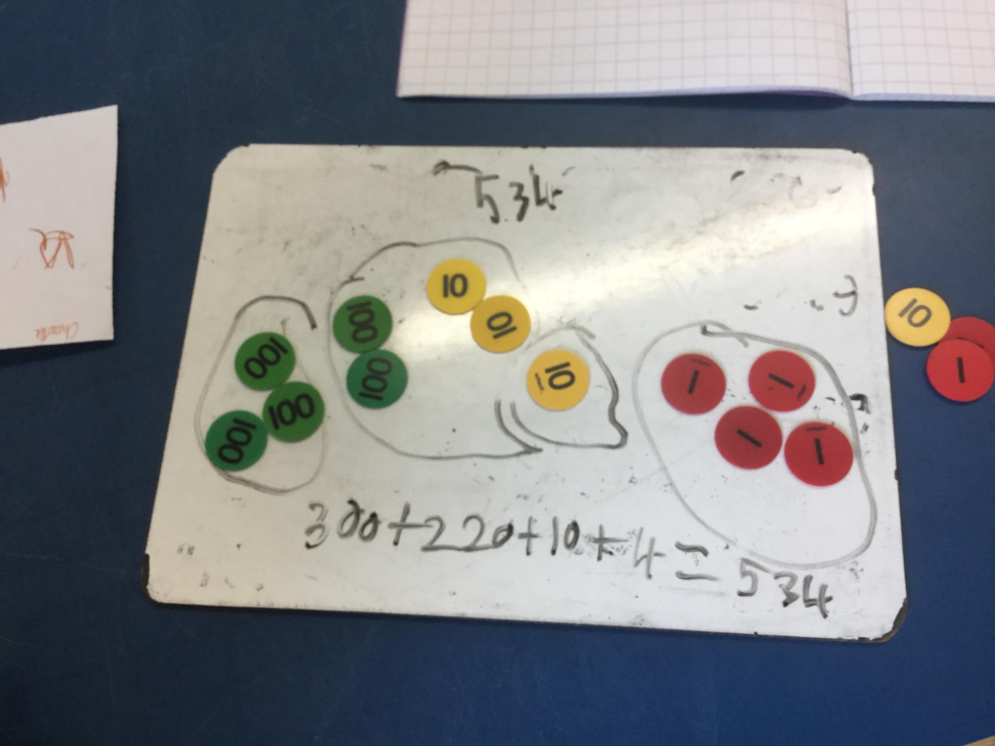 Today in maths we revised all the place value we learnt in Year 3 by using equipment, drawings and calculations to nt numbers in a variety of different ways to show our understanding of the place value of different digits. We worked in groups, pairs and individually.
