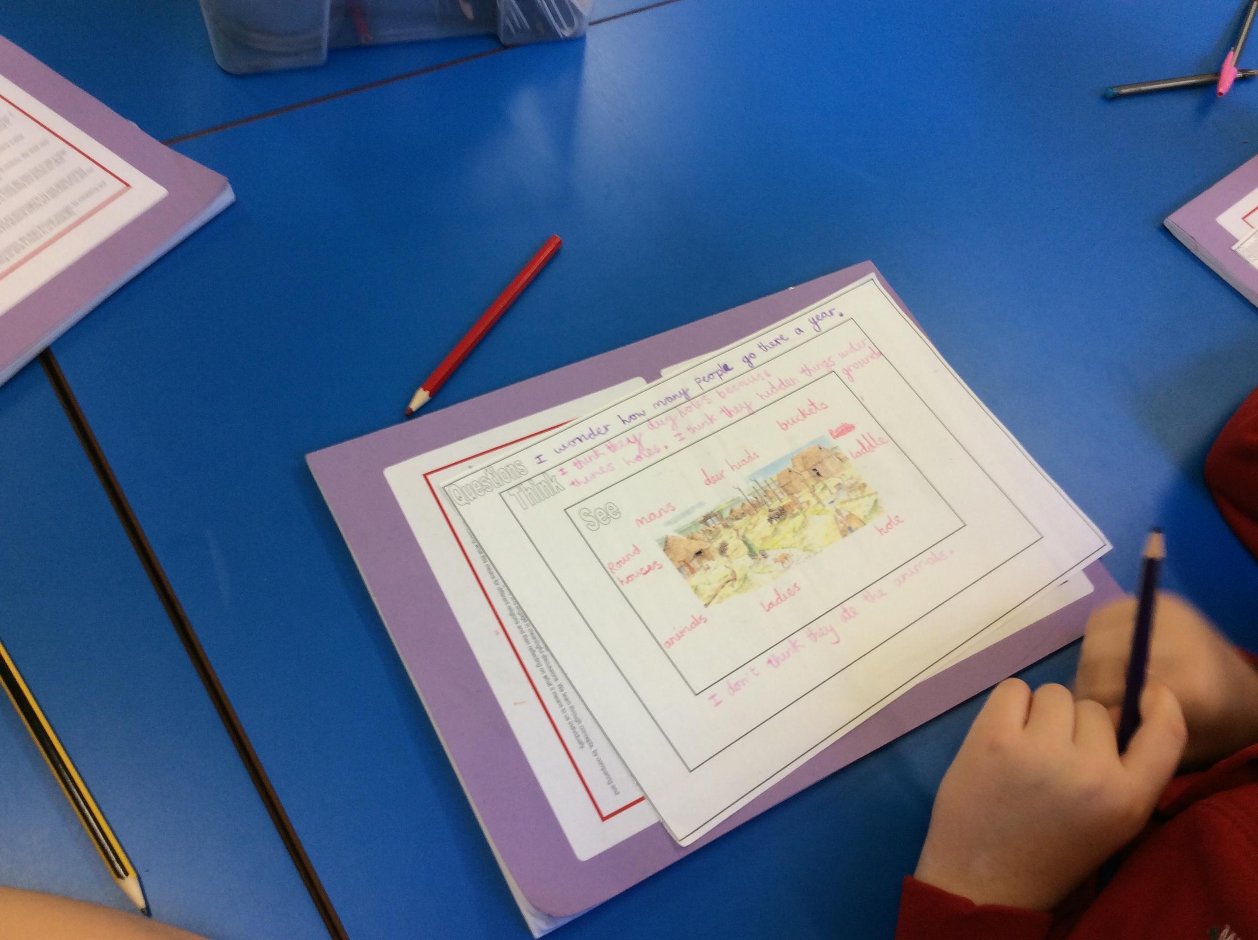 We used the stem sentence: There are ___ groups of ___ to help us describe pictures and arrays.