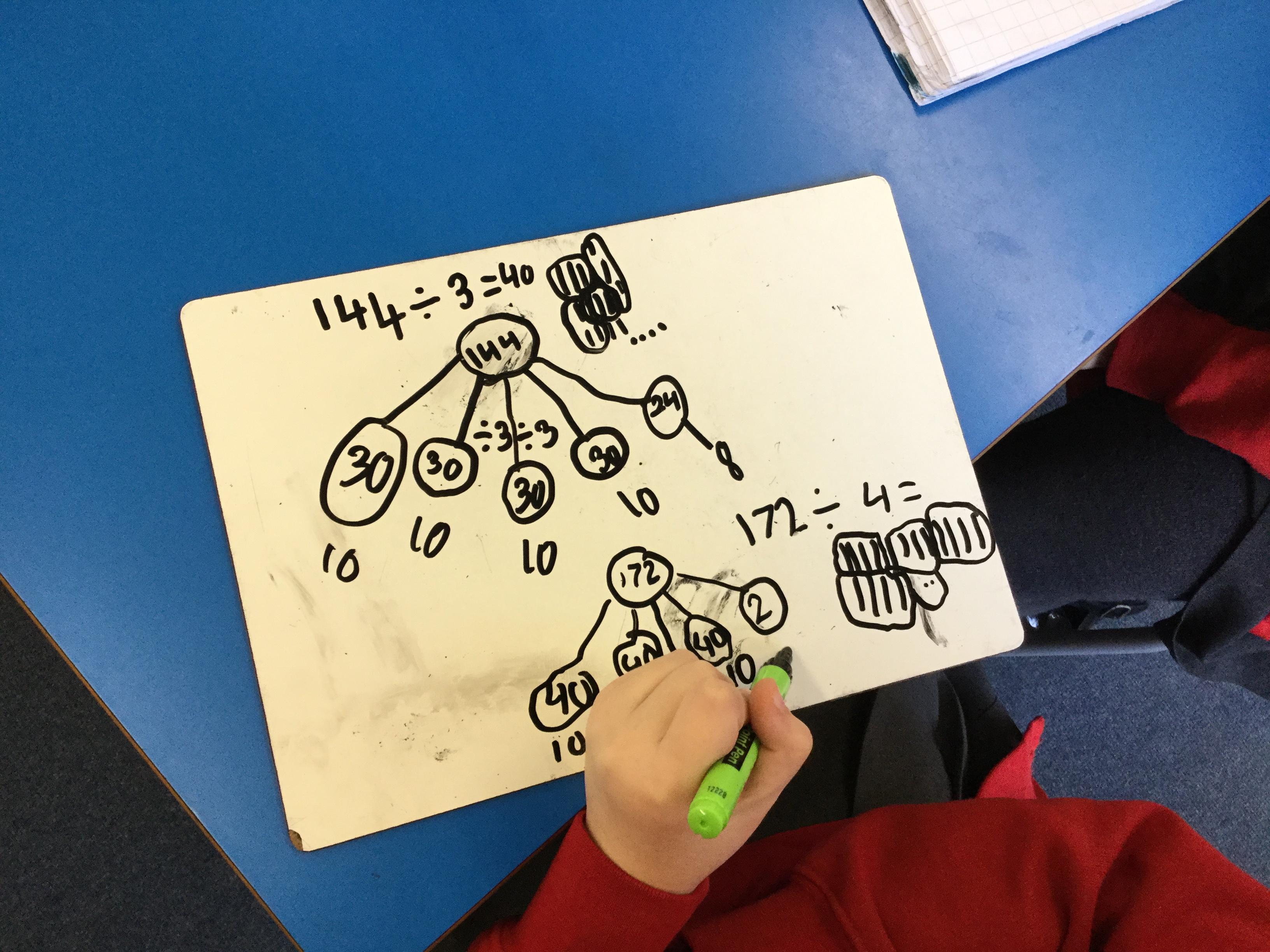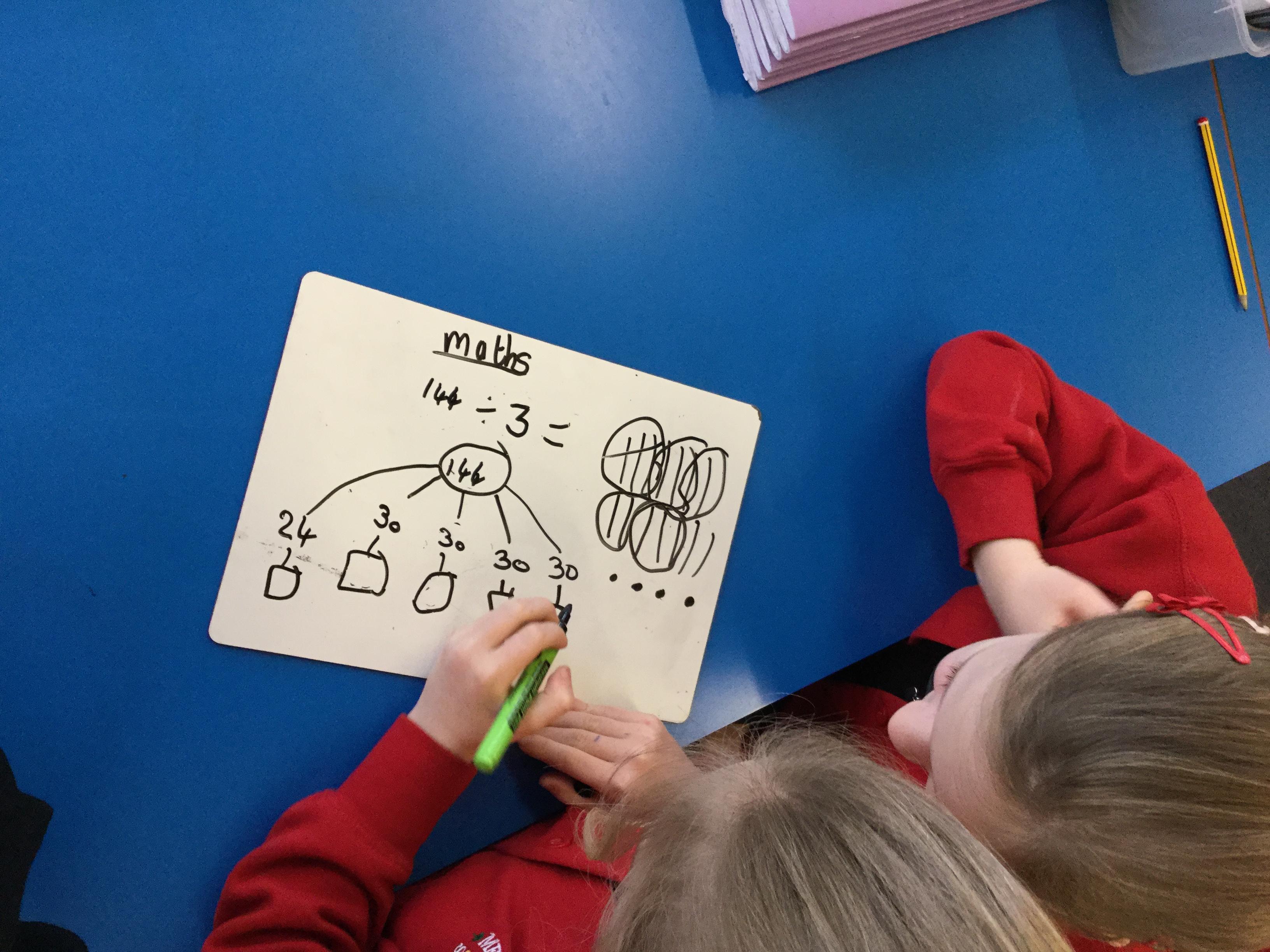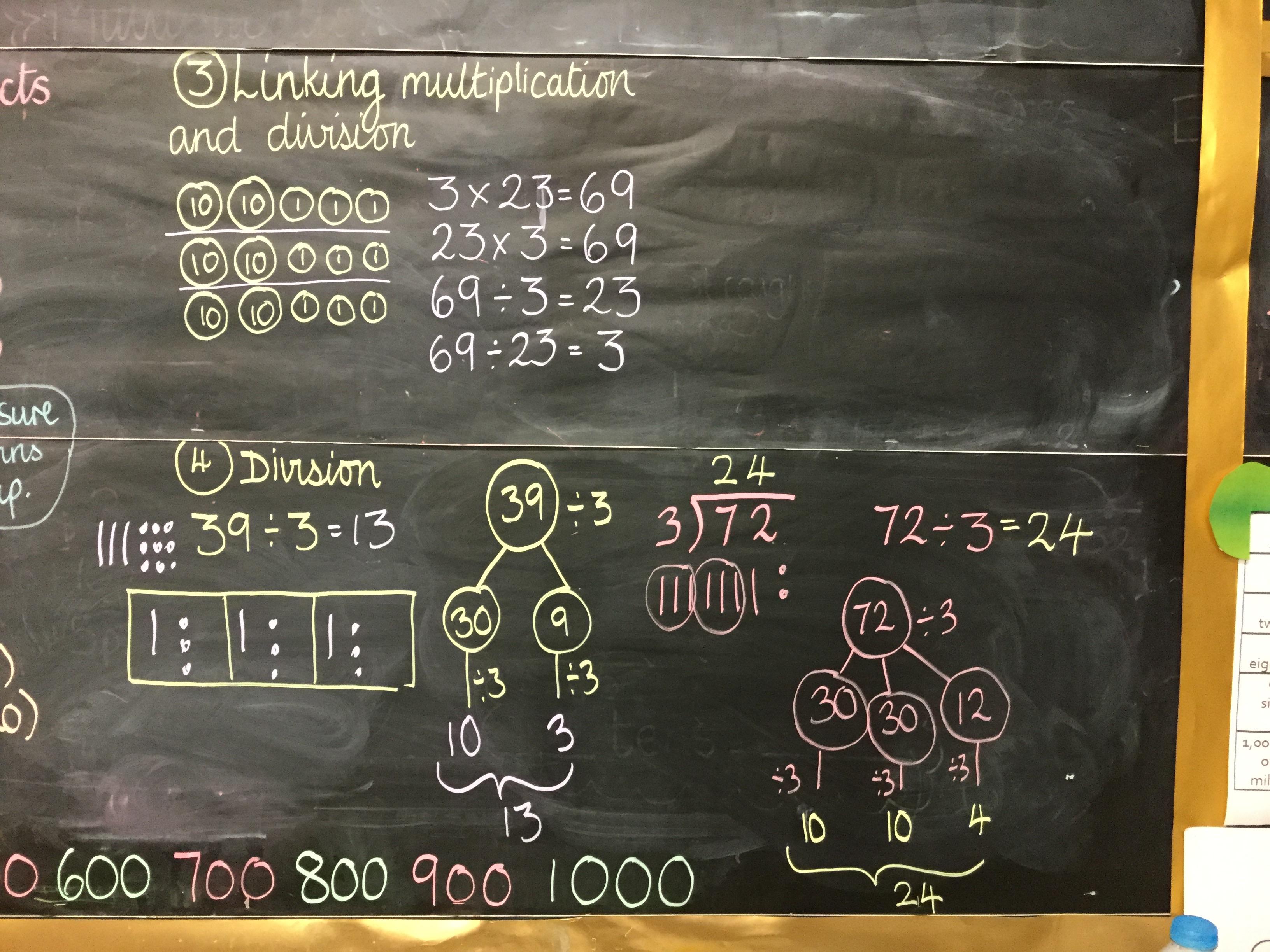 We have been looking at the link between multiplication and division and using our times tables to help us divide larger numbers.