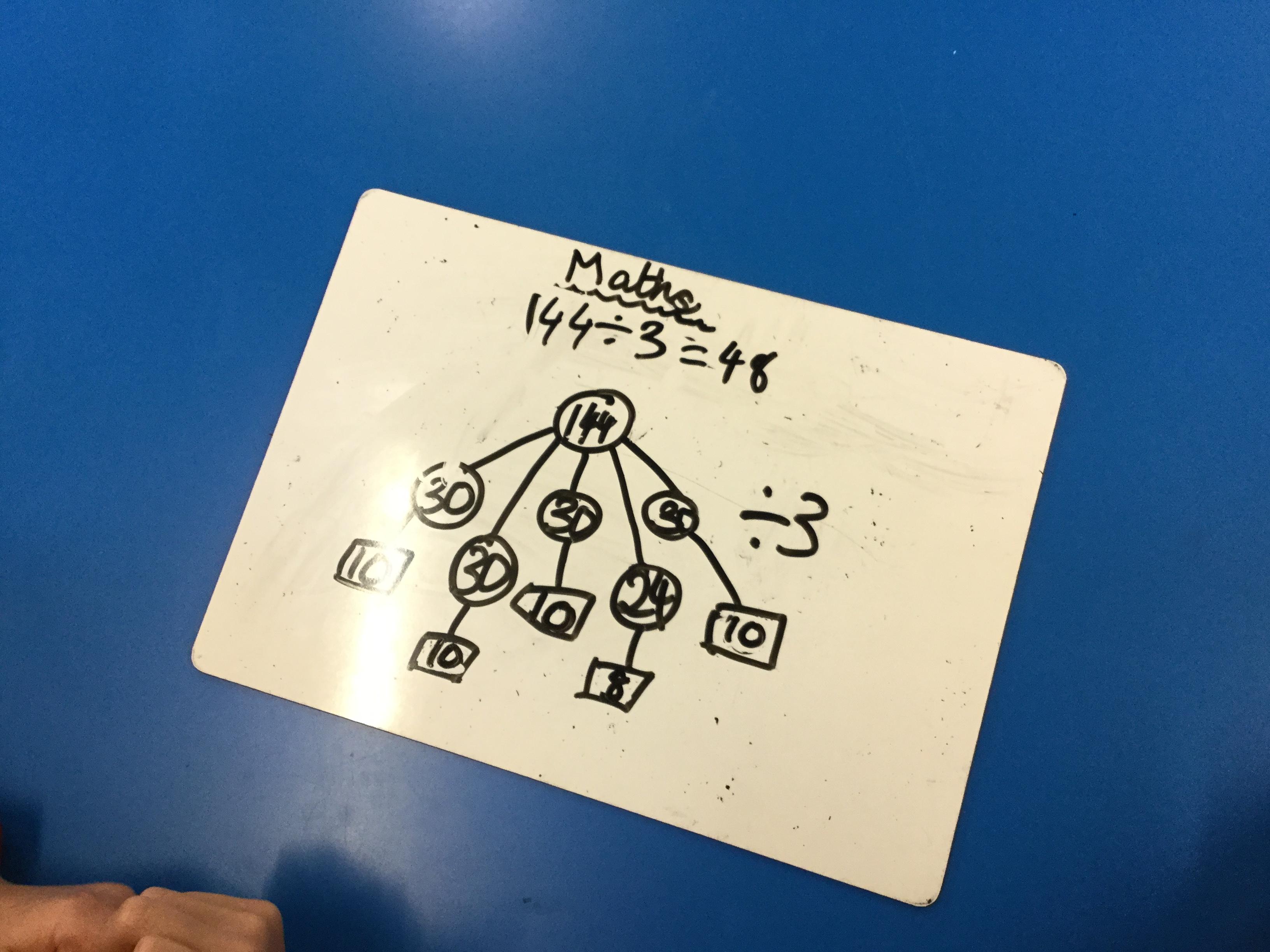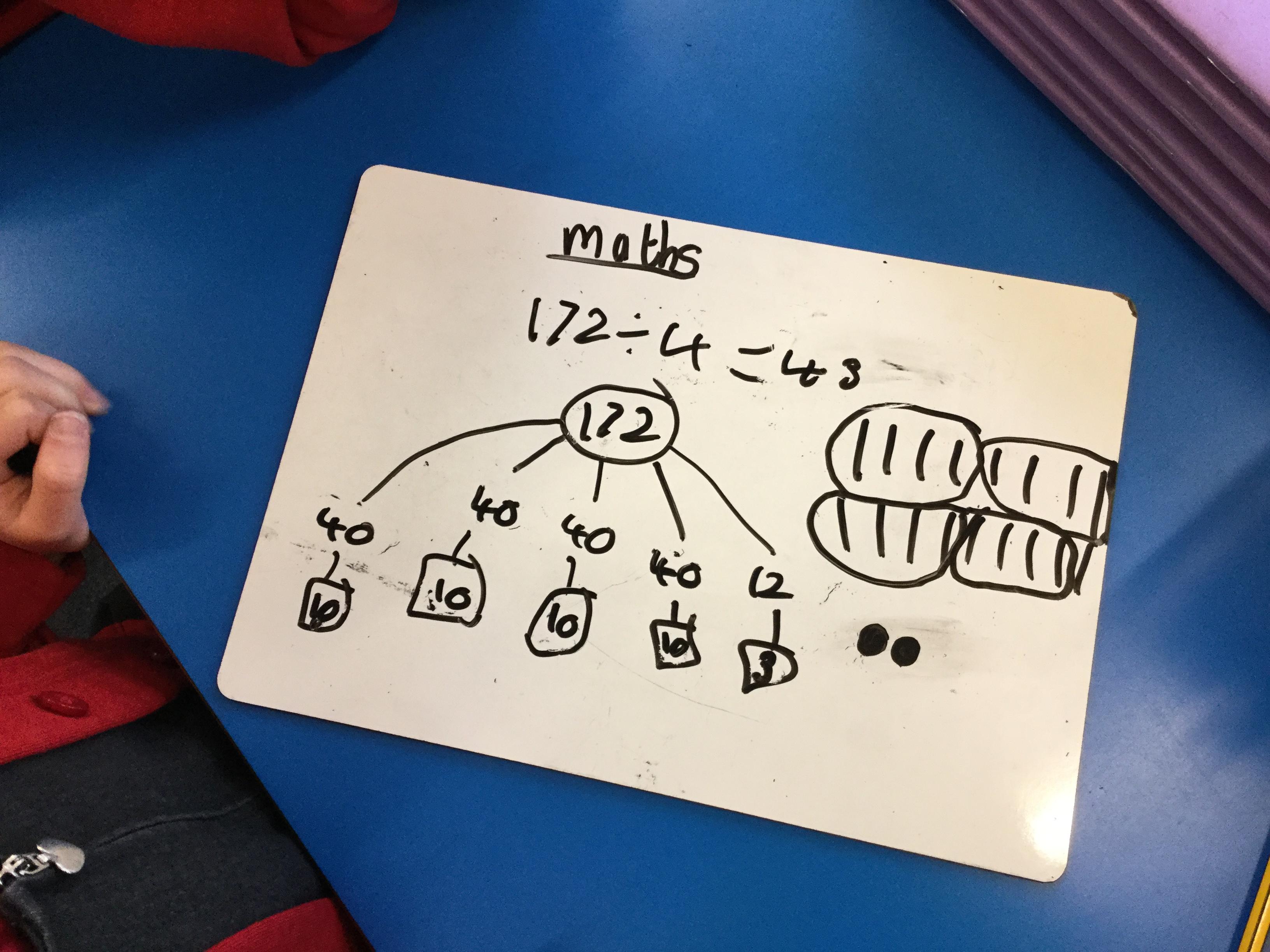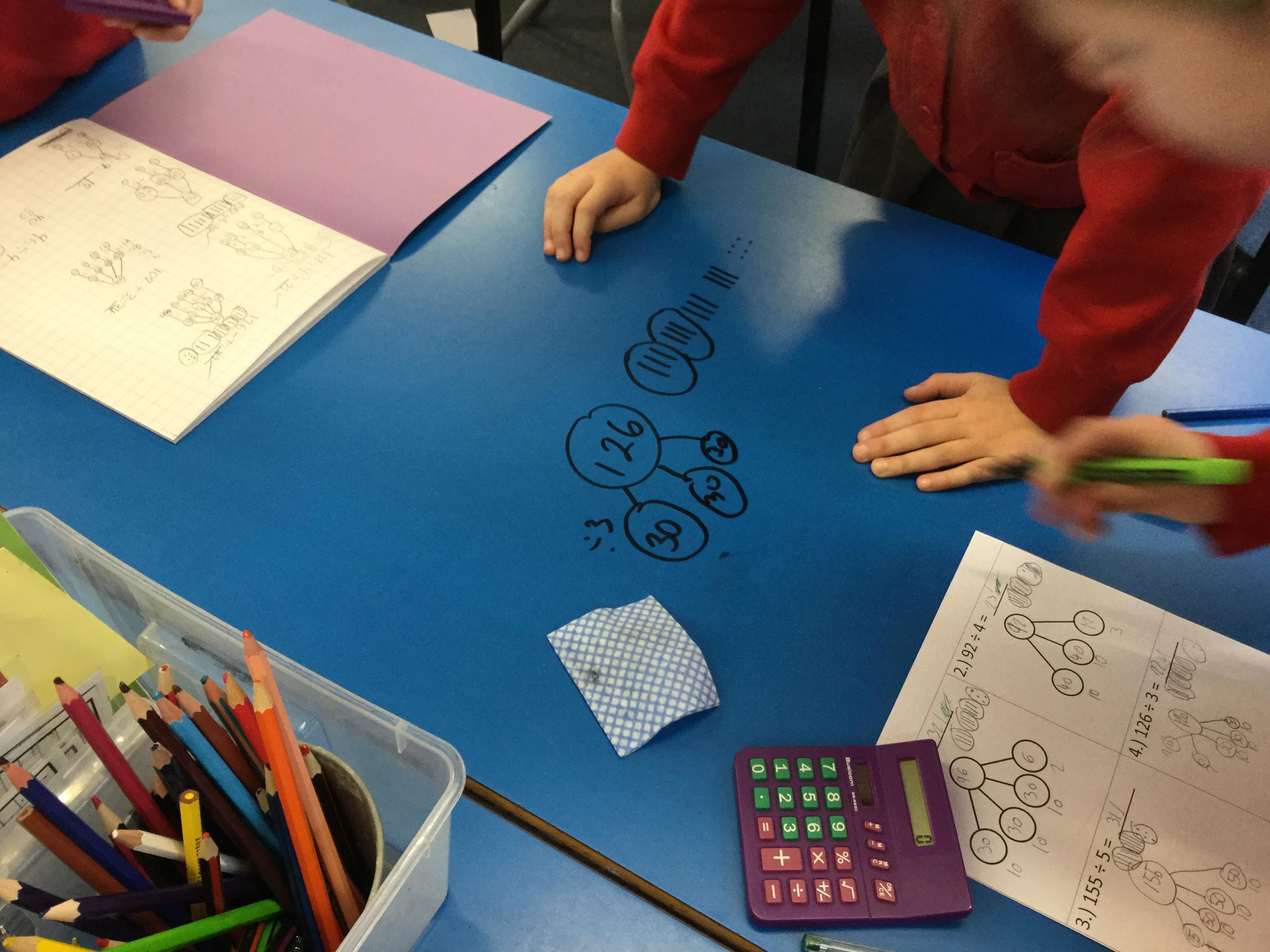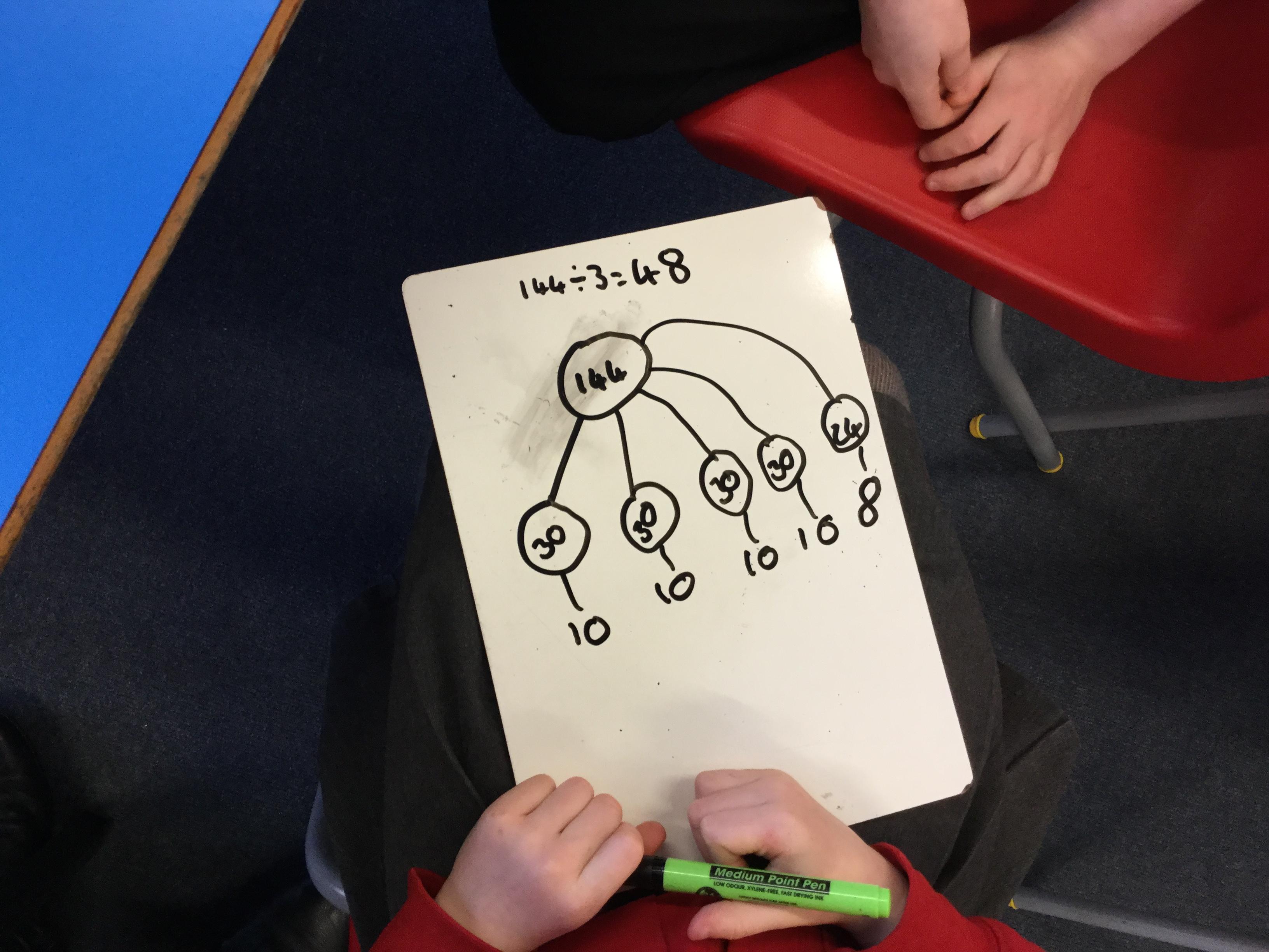 We have been looking at the link between multiplication and division and using our times tables to help us divide larger numbers.