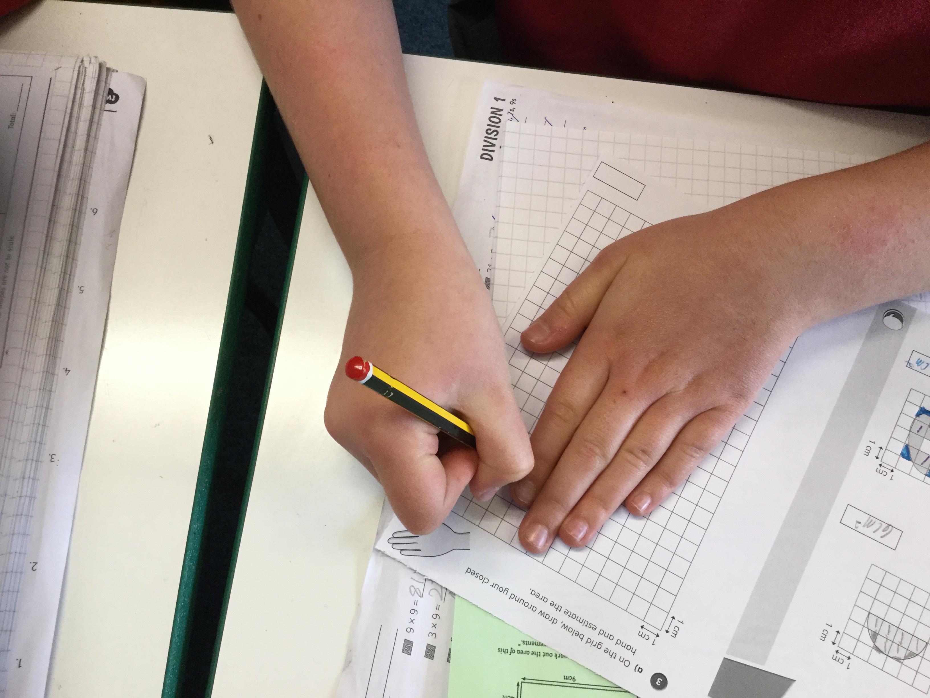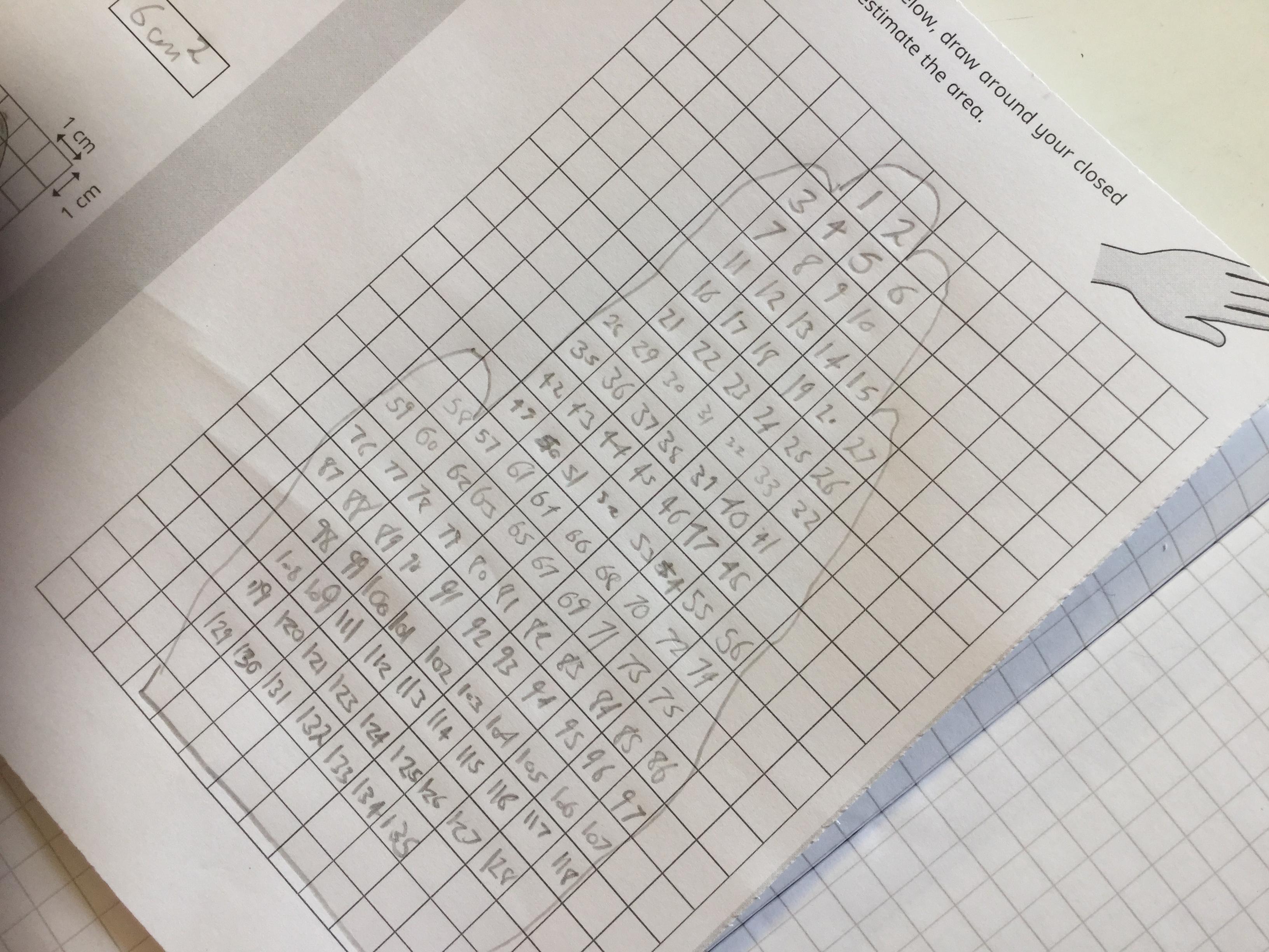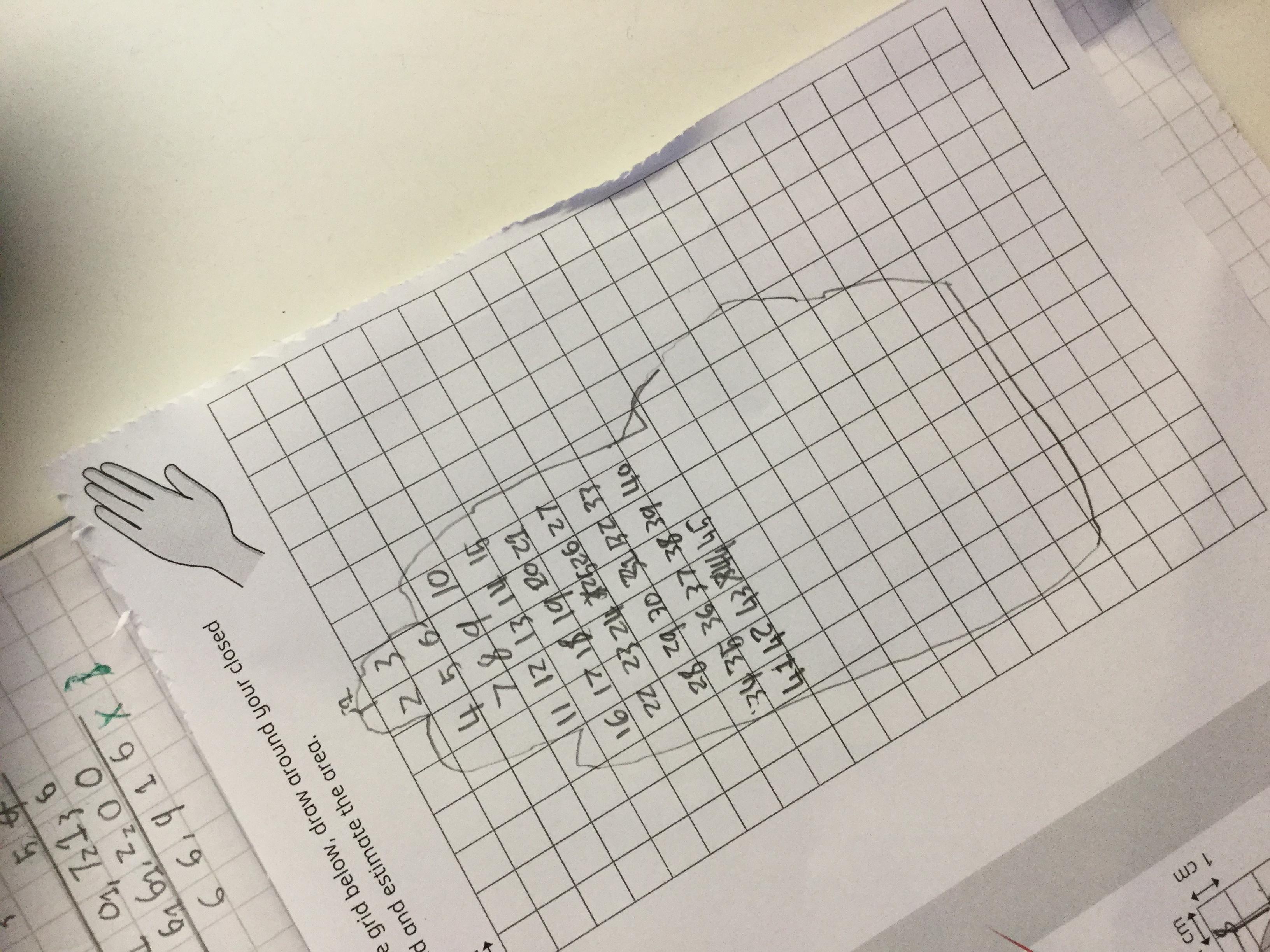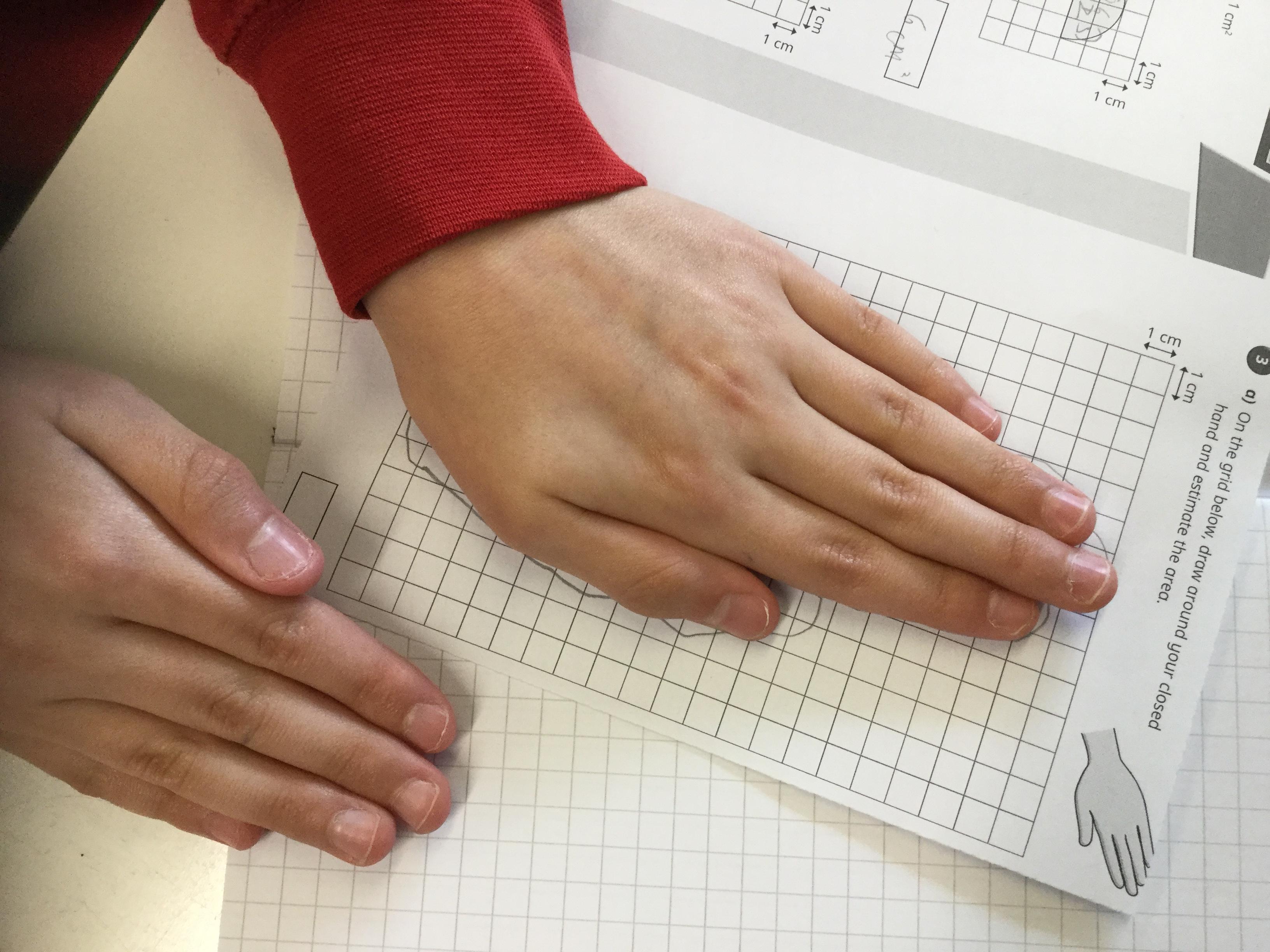 We have been learning how to calculate the area and perimeter of different shapes. Today we explored how to estimate the area of some tricky shapes, including our own hands!