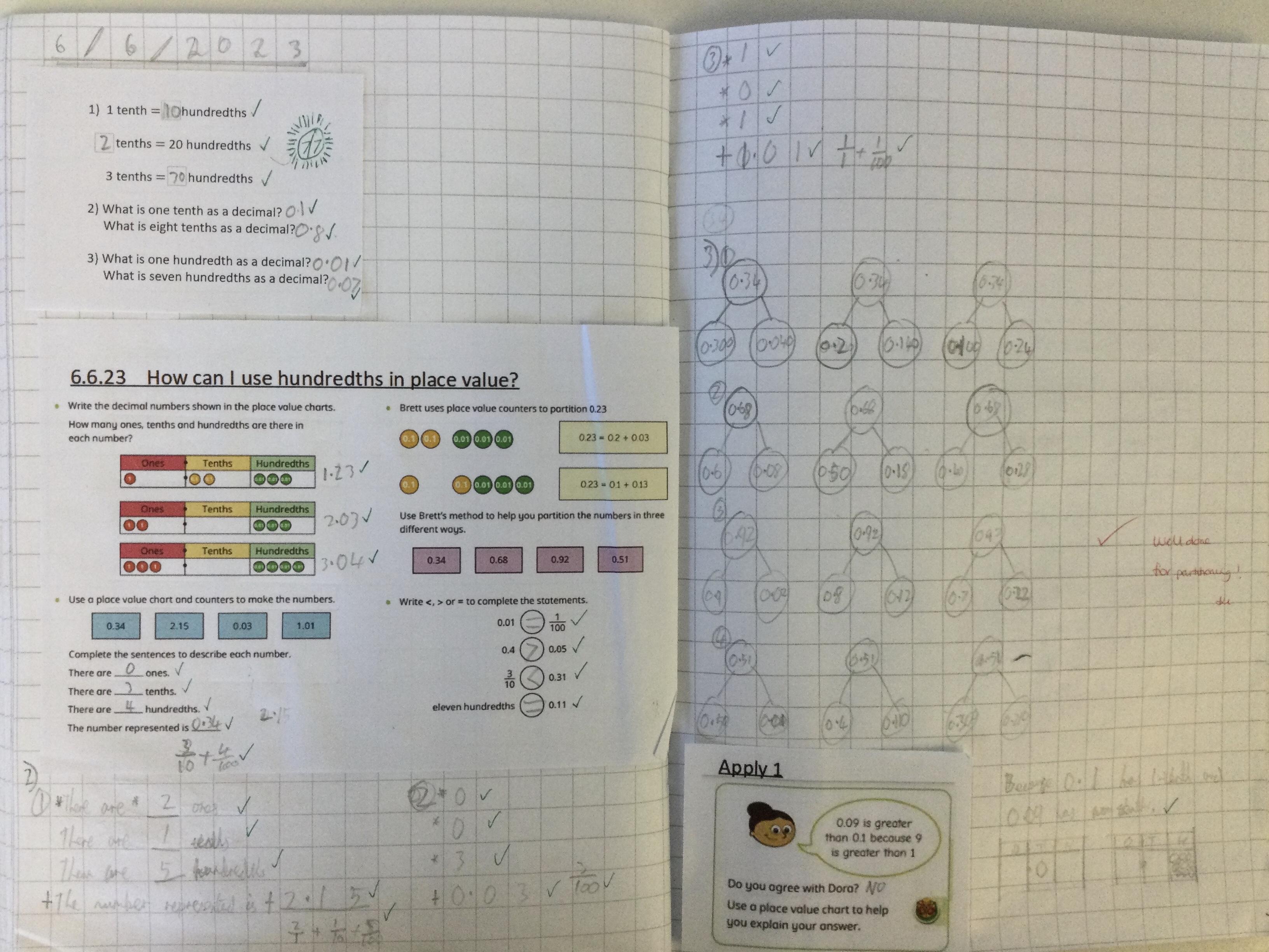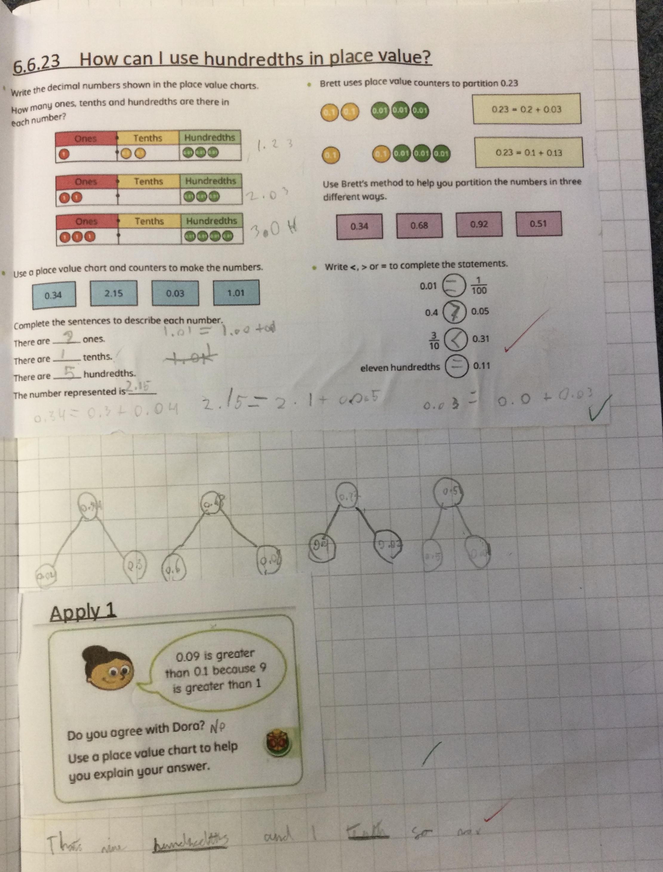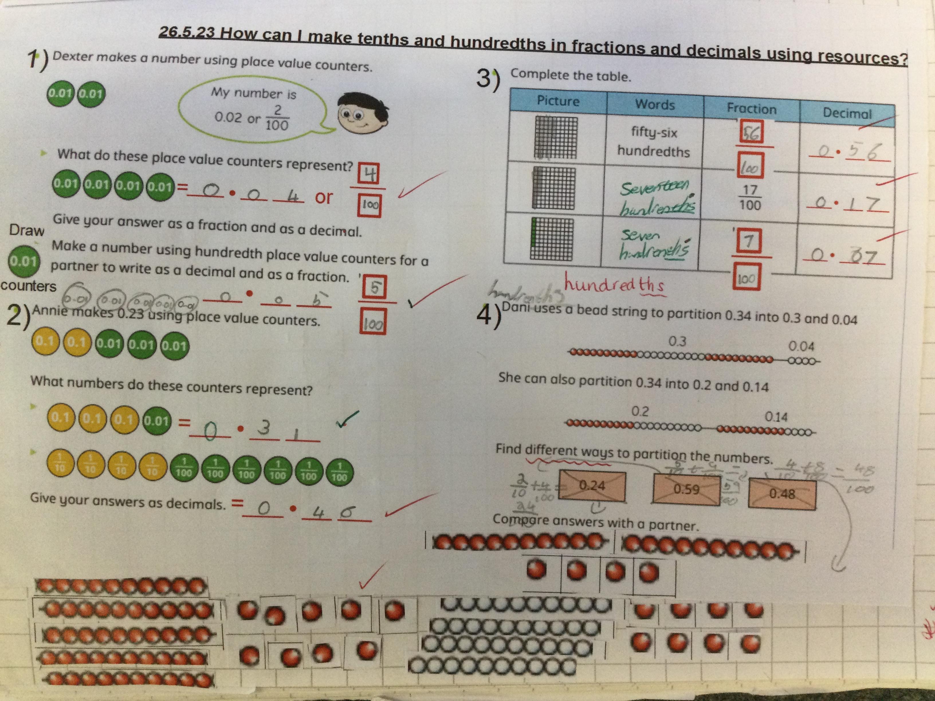 Year 4 have been continuing our work on tenths and hundredths using lots of resources and showing these in decimal and fraction form. We have also been partitioning the same decimal number in different ways.