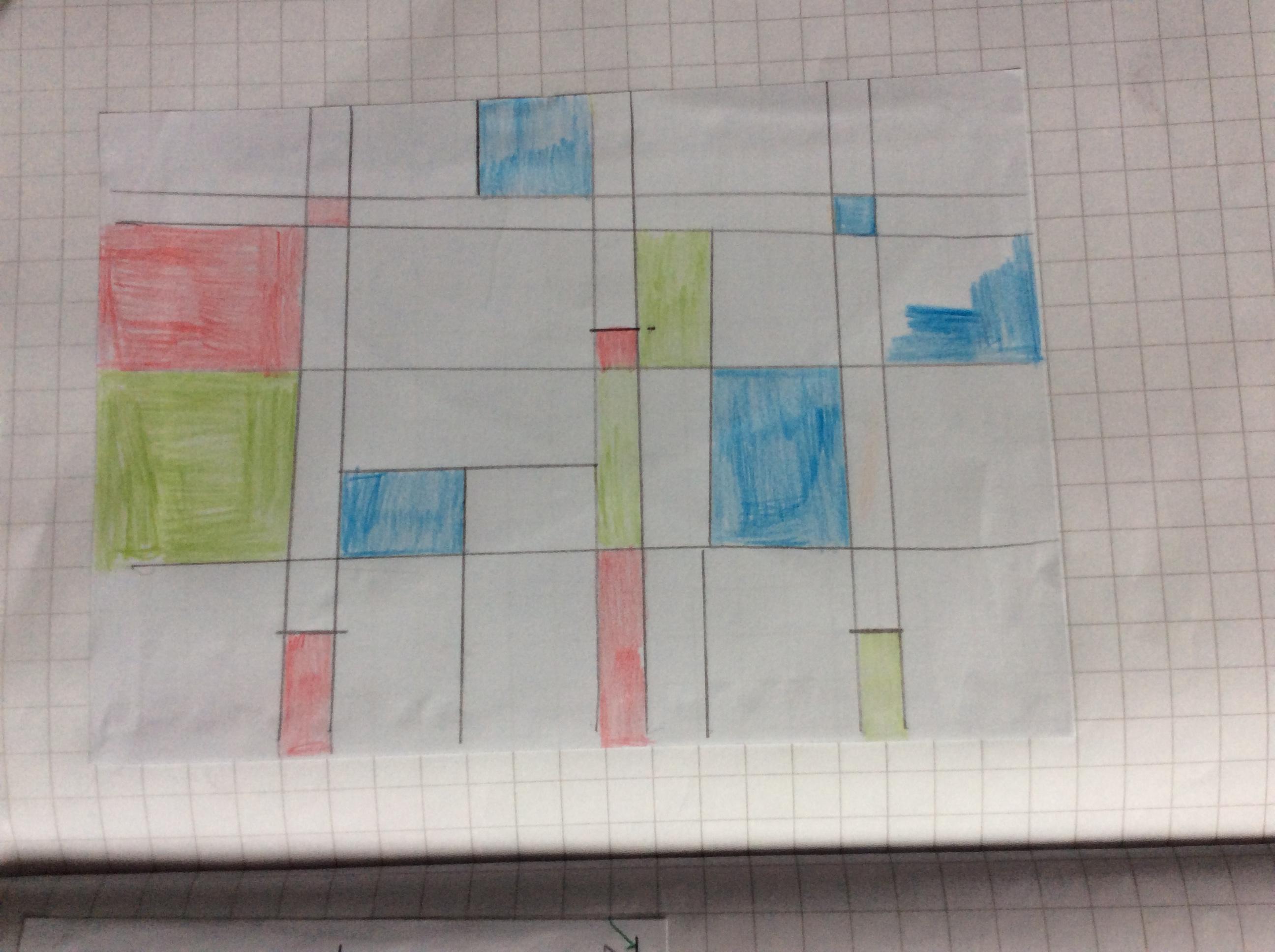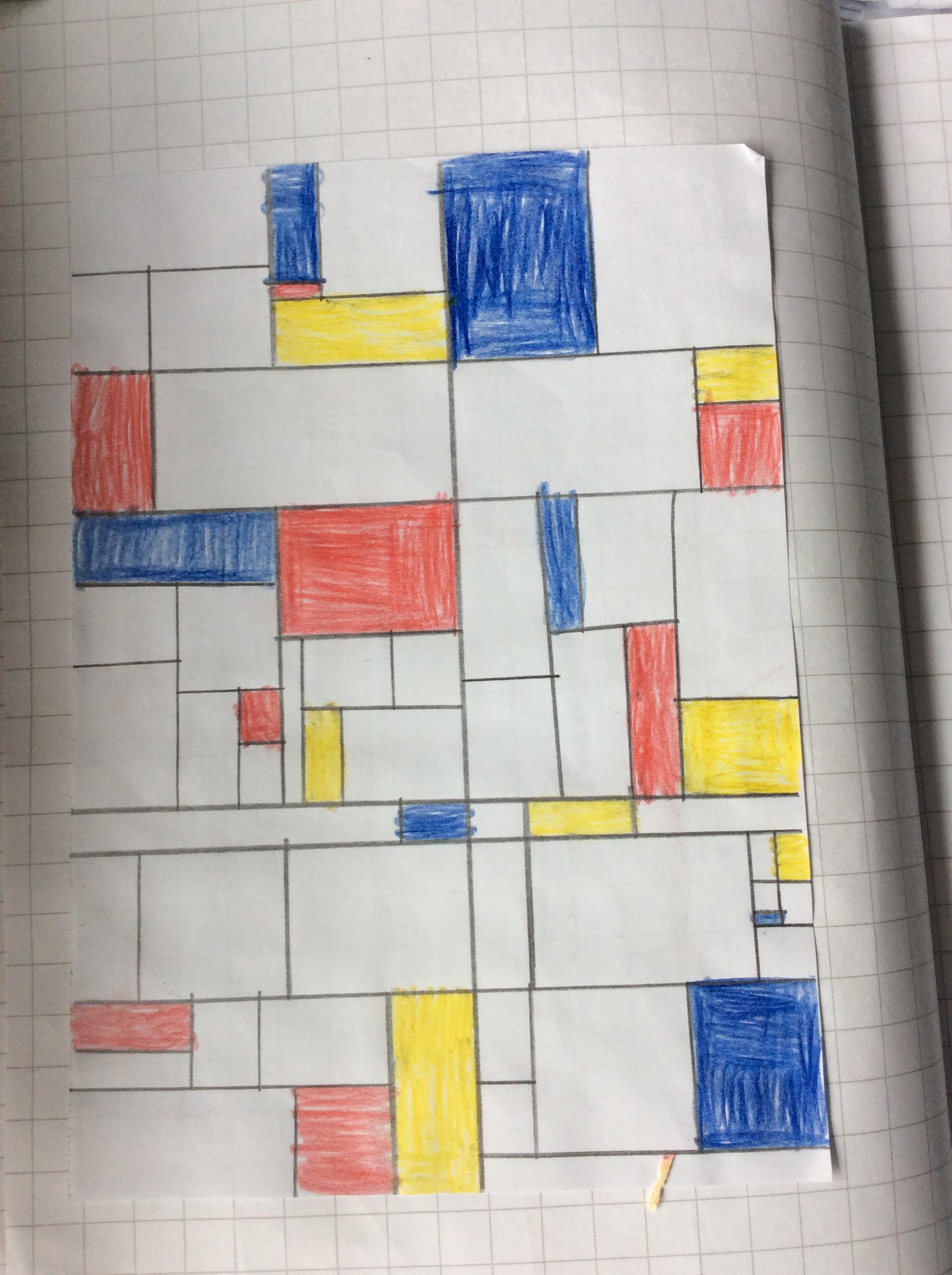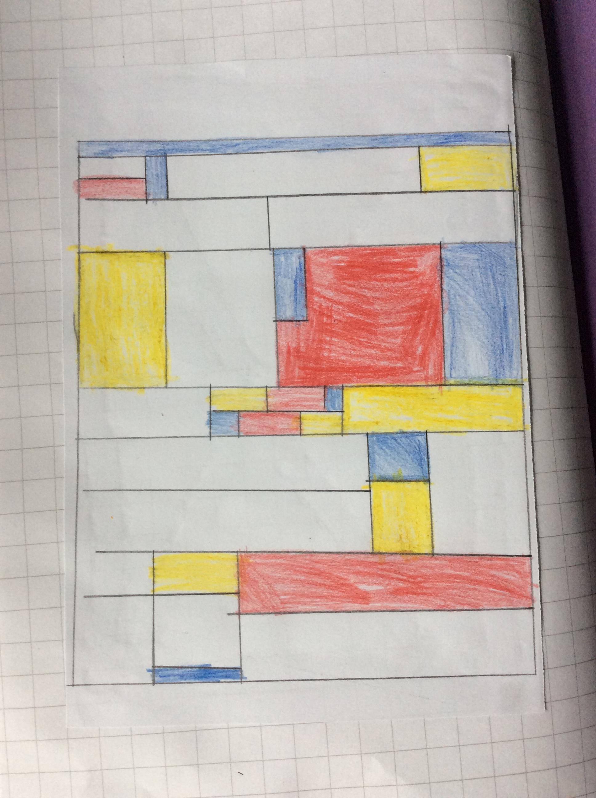 This week we have been starting our unit on shape and space, with learning about angles and lines. We placed our right angle eaters around the classroom and created artwork in the style of Piet Mondrian, with parallel, perpendicular, vertical and horizontal lines.