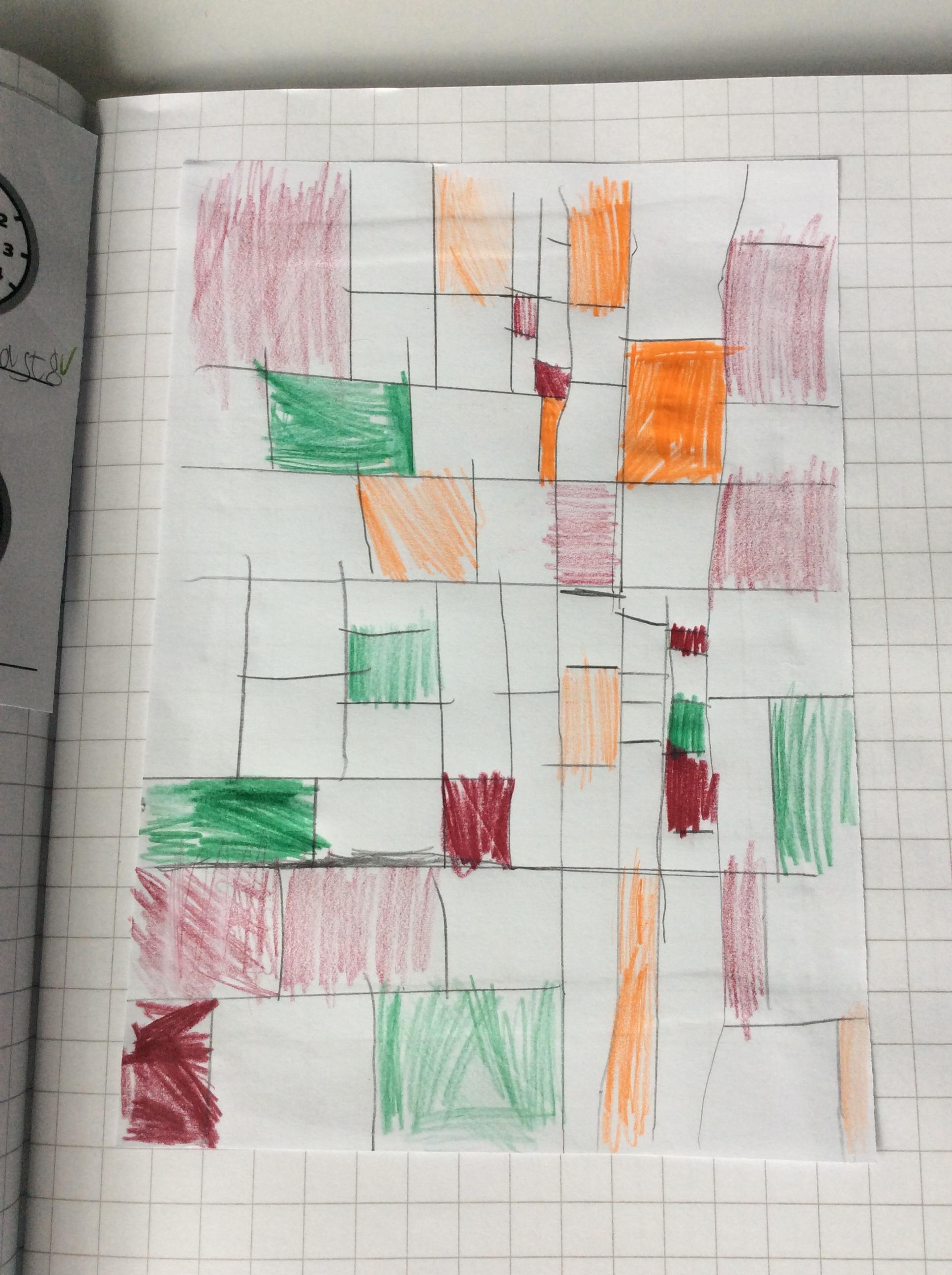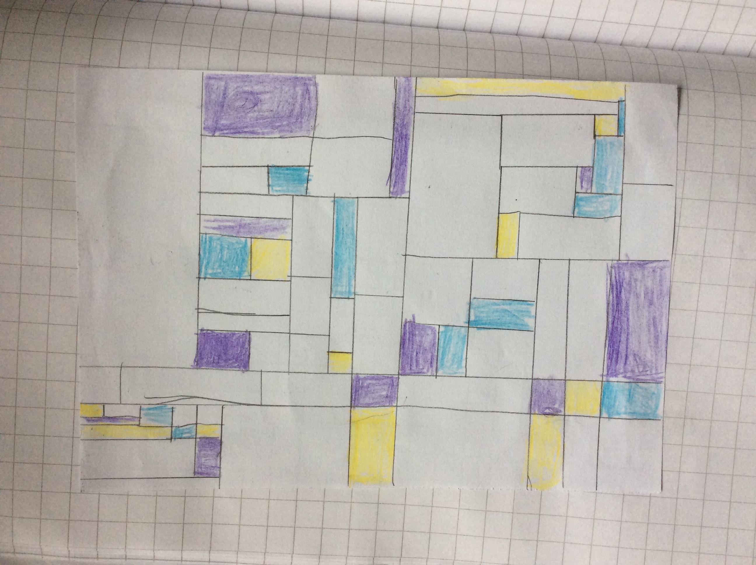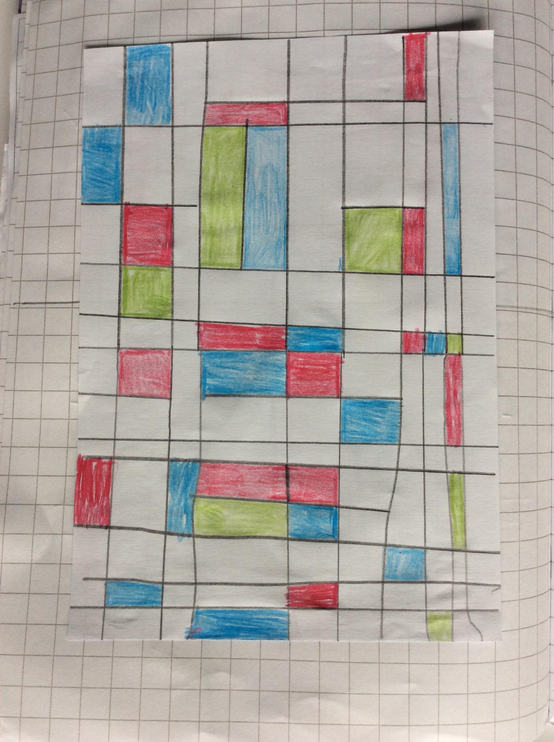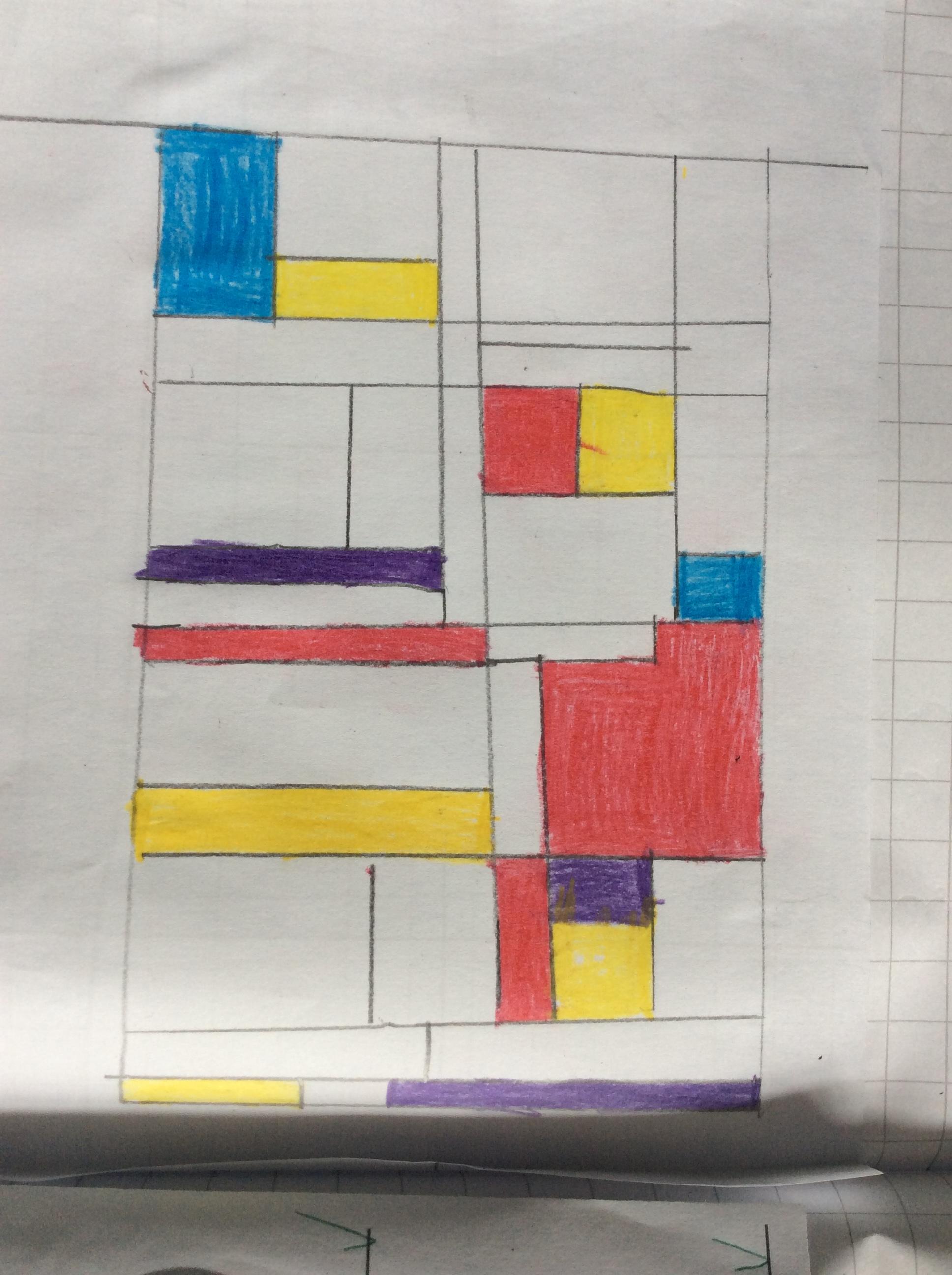 This week we have been starting our unit on shape and space, with learning about angles and lines. We placed our right angle eaters around the classroom and created artwork in the style of Piet Mondrian, with parallel, perpendicular, vertical and horizontal lines.