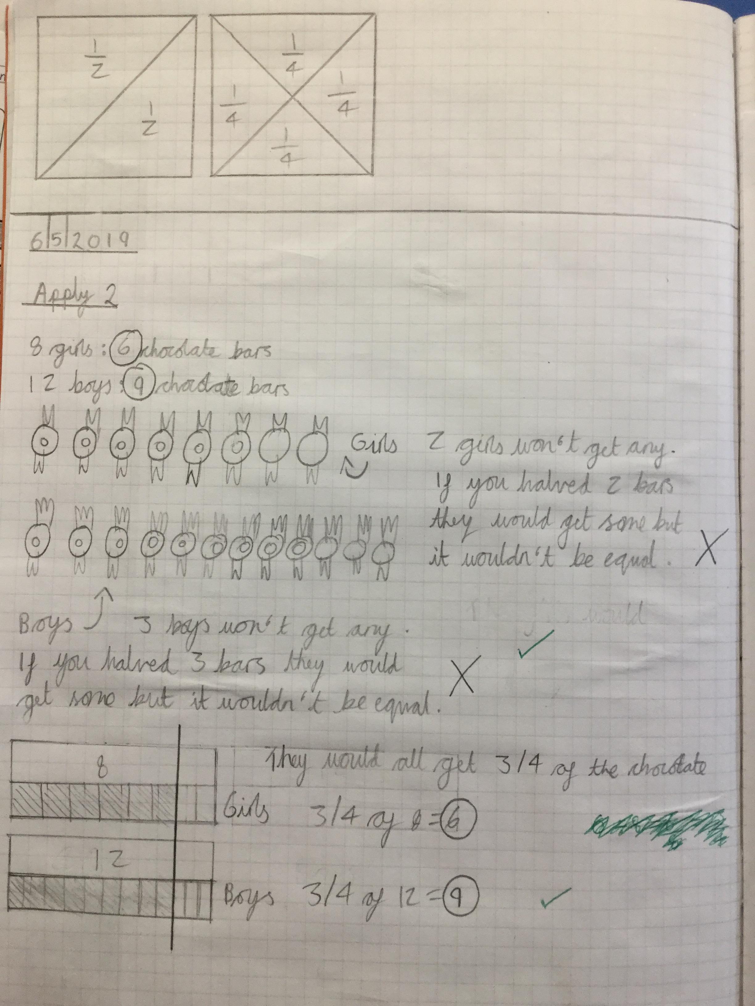 This term our focus is fractions, decimals and percentages. To begin to understand fractions, we explored how to find a quarter of a range of items.