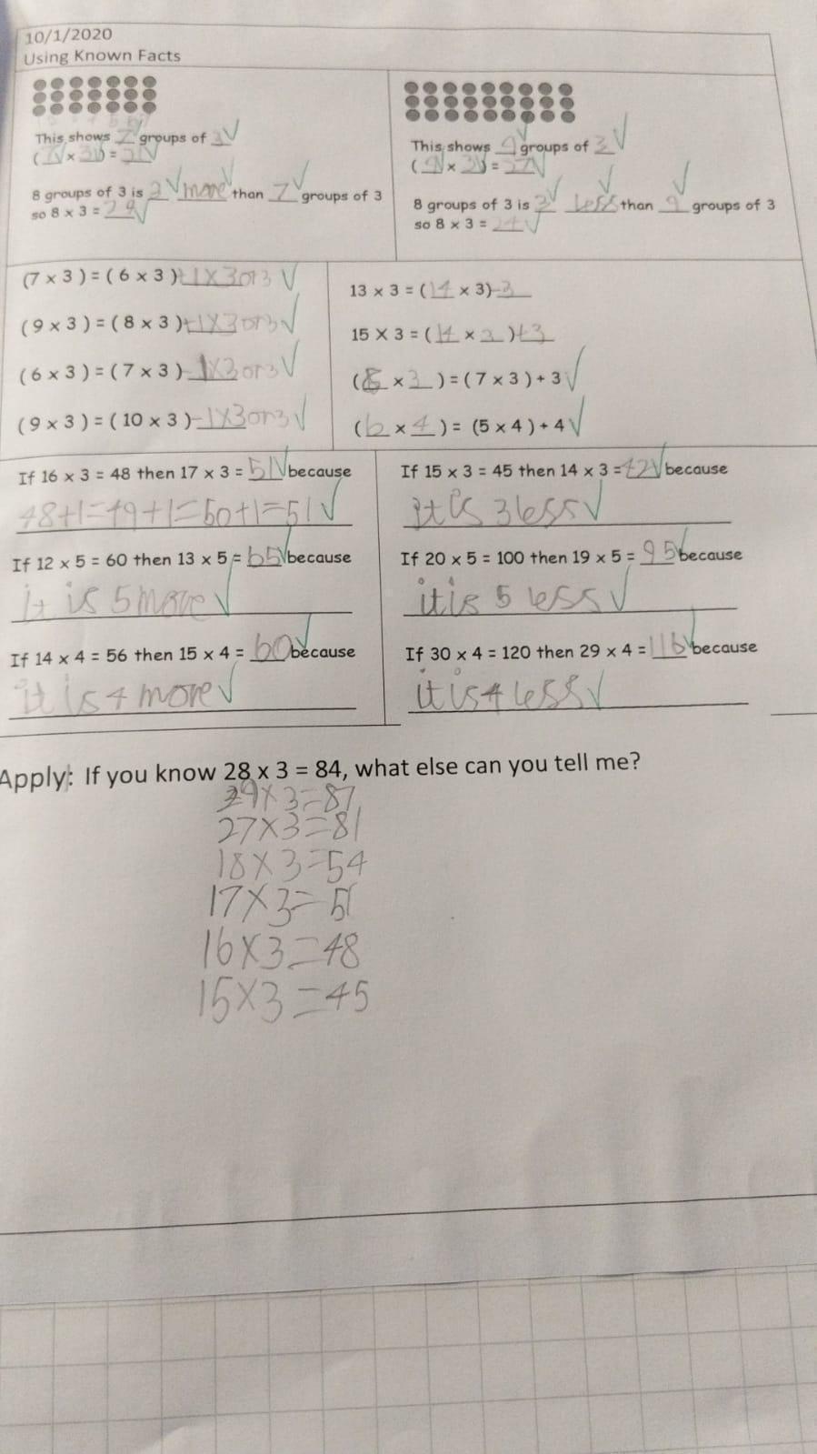 We also used a stem sentence to help us explain how we knew that 20 x 3 = 60.