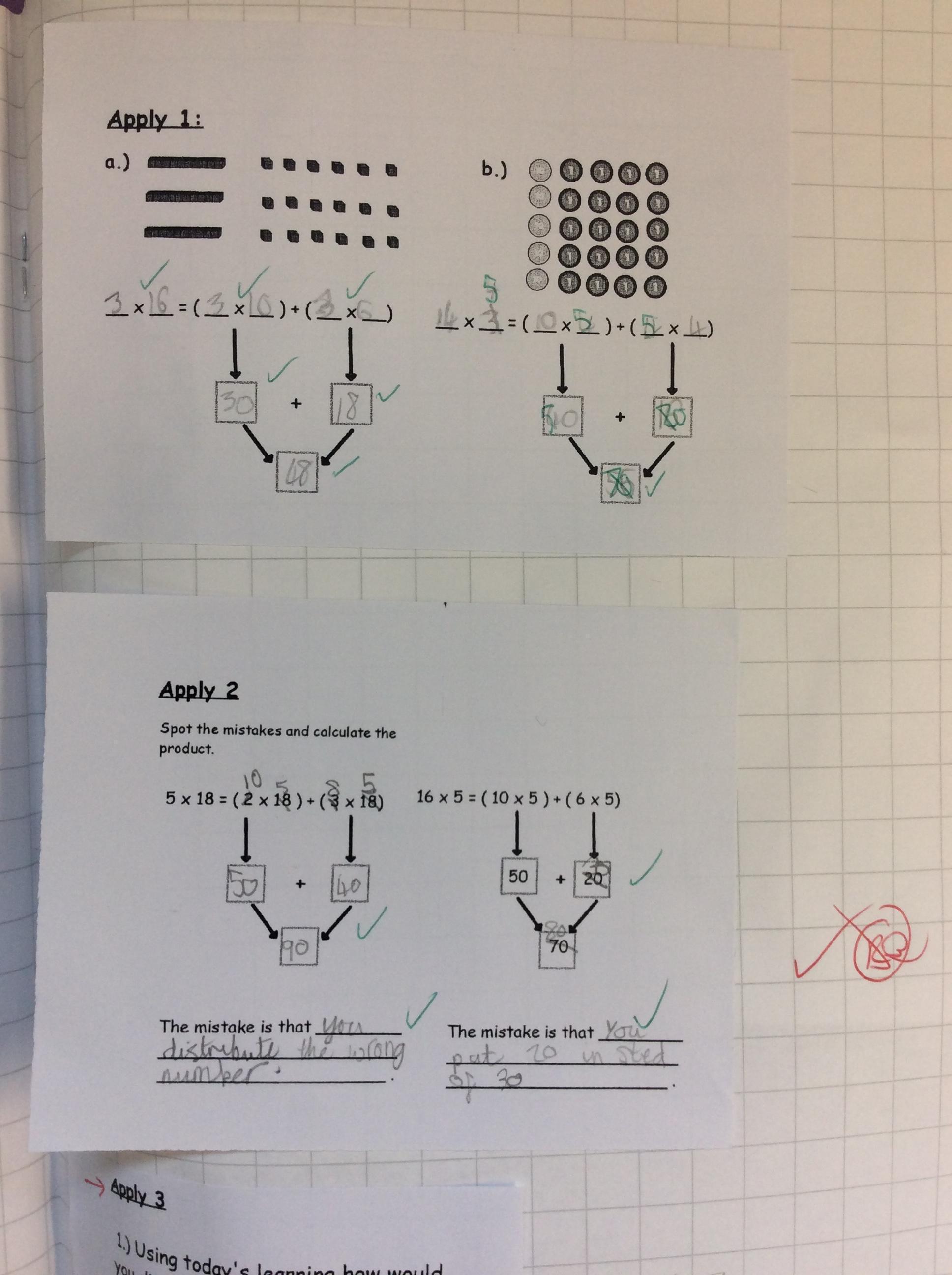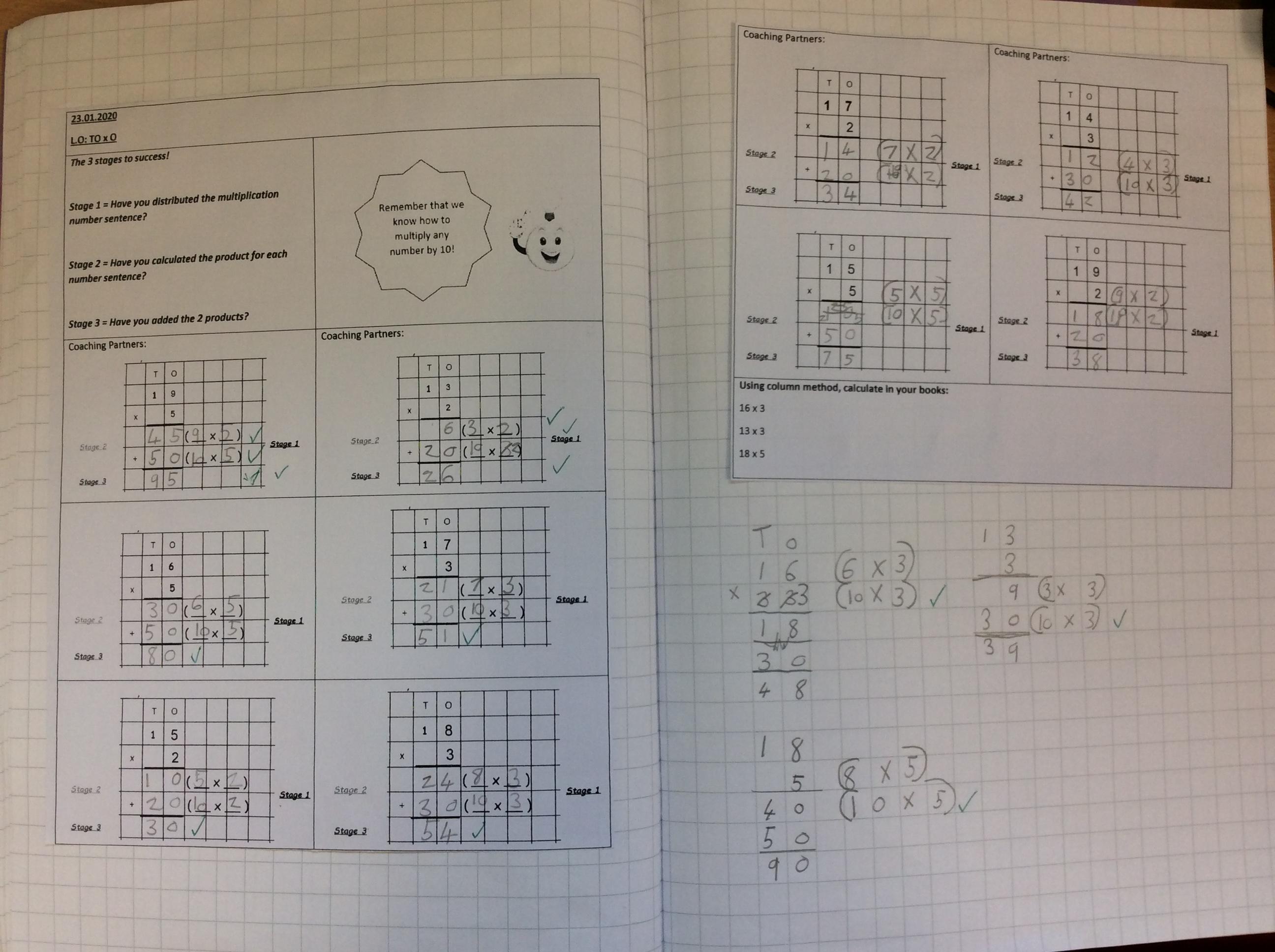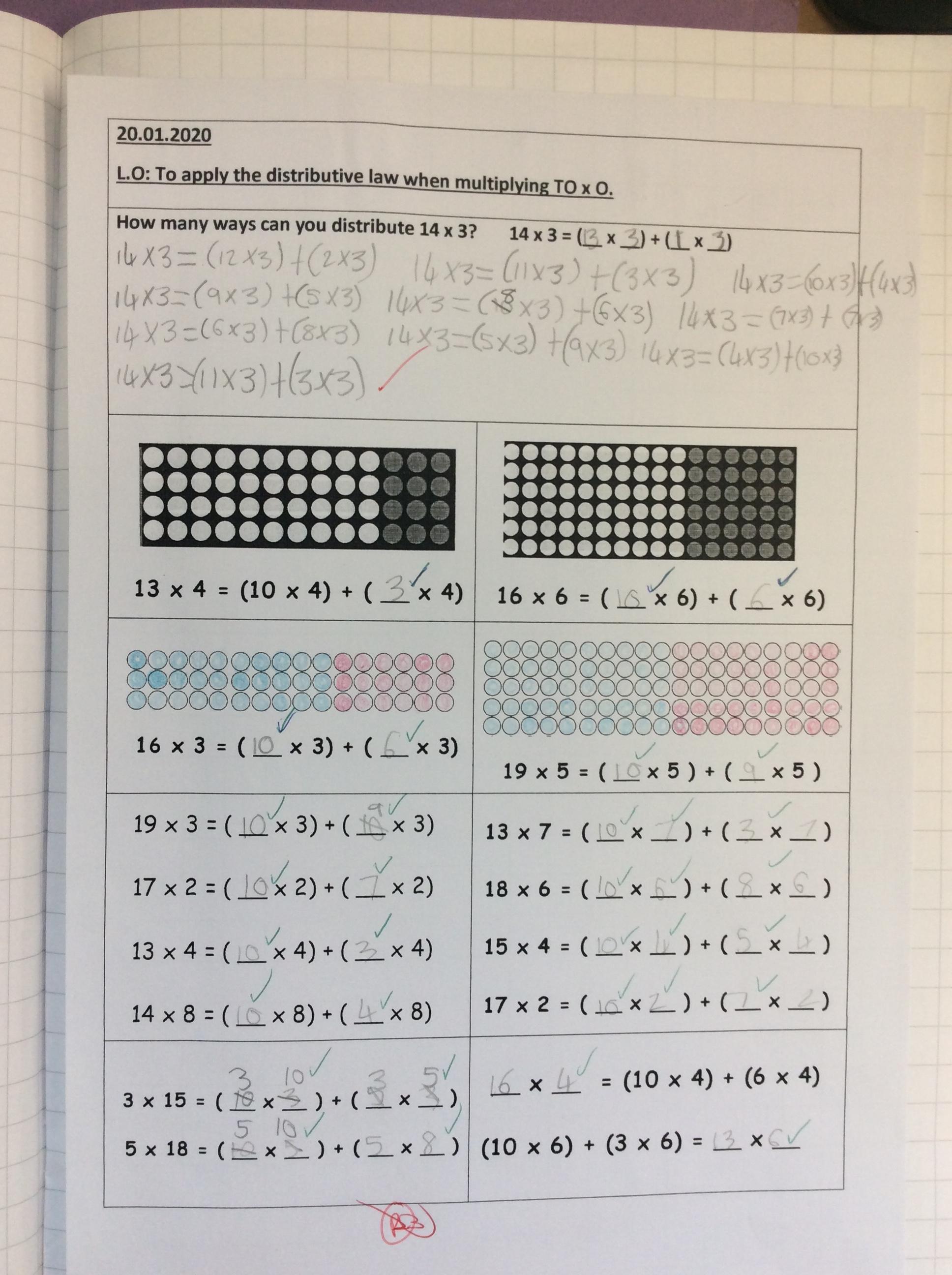 This week we have been applying our knowledge of our 2, 3 and 5 times tables to solve trickier multiplication calculations. Also, we drew on our knowledge of distributing and our special power of being able to multiply any number by 10 to help us with these calculations.