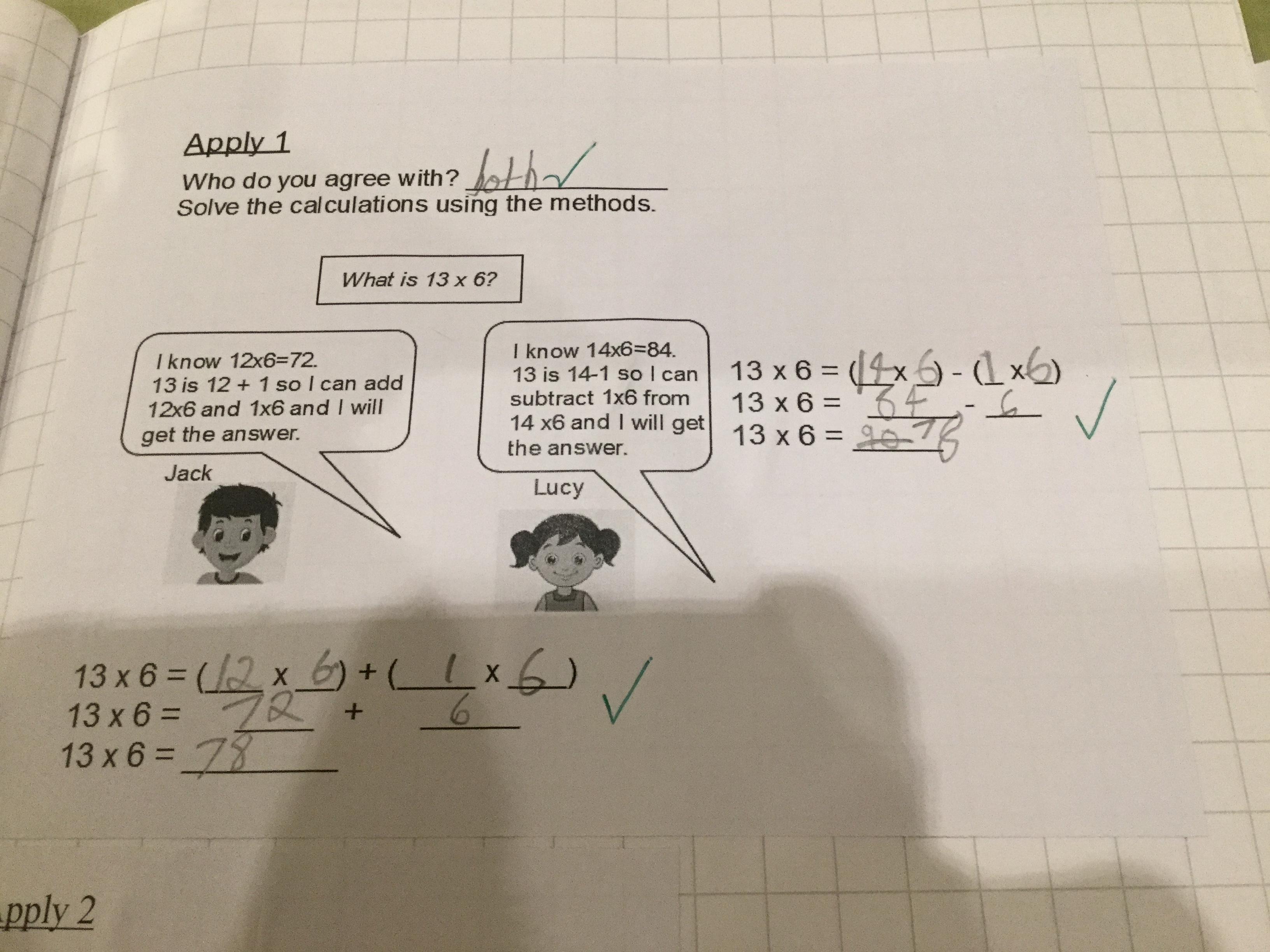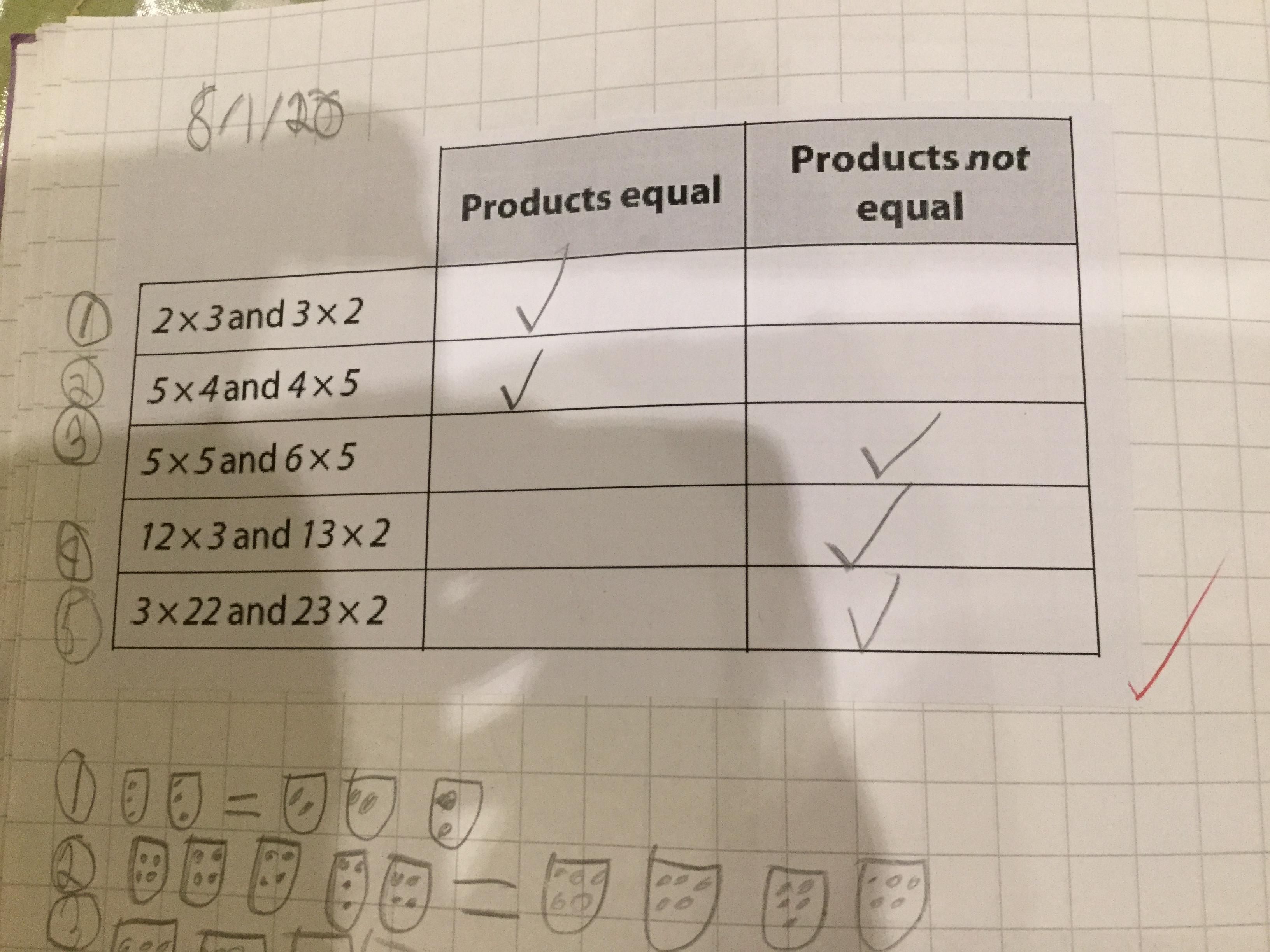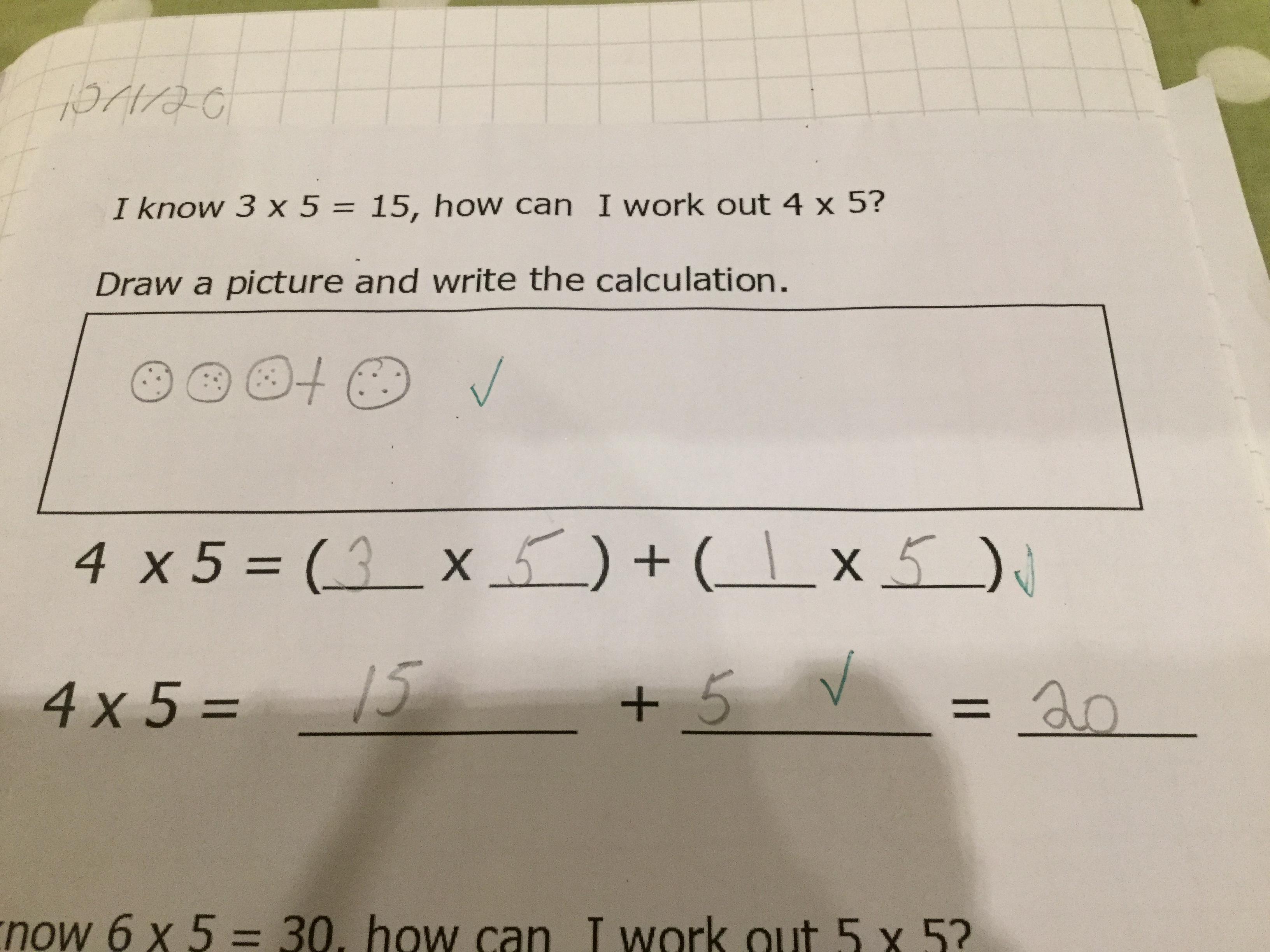 We also learnt about the distributive law- this is useful to help us use known multiplication facts to find unknown. For example, if we don’t know 9 x 7, we could do 10 x 7 - 1 x 7. This is trickier than it sounds so we spent quite a few lessons, taking small steps at a time in order to ensure we completely understand what we’re doing.