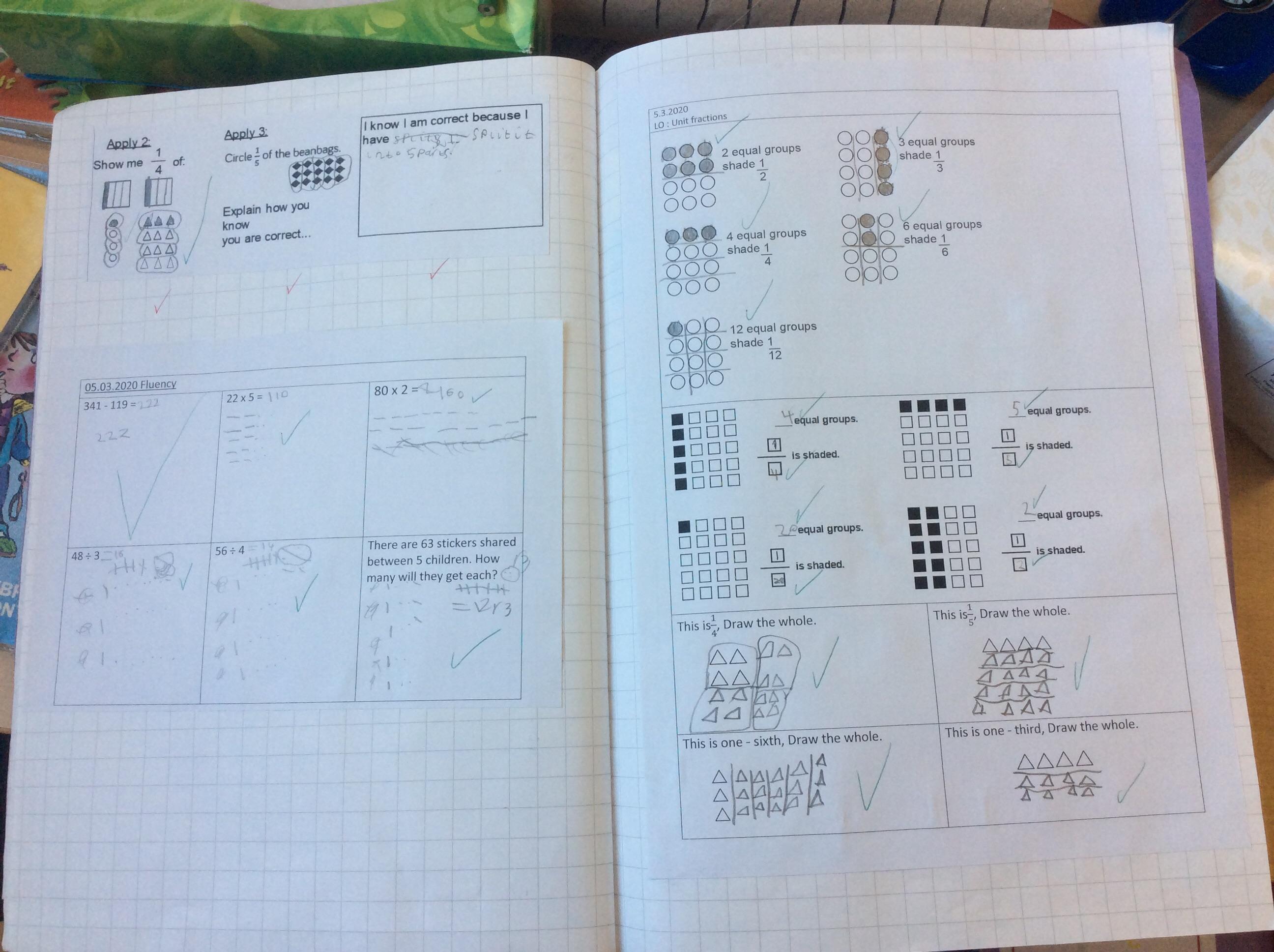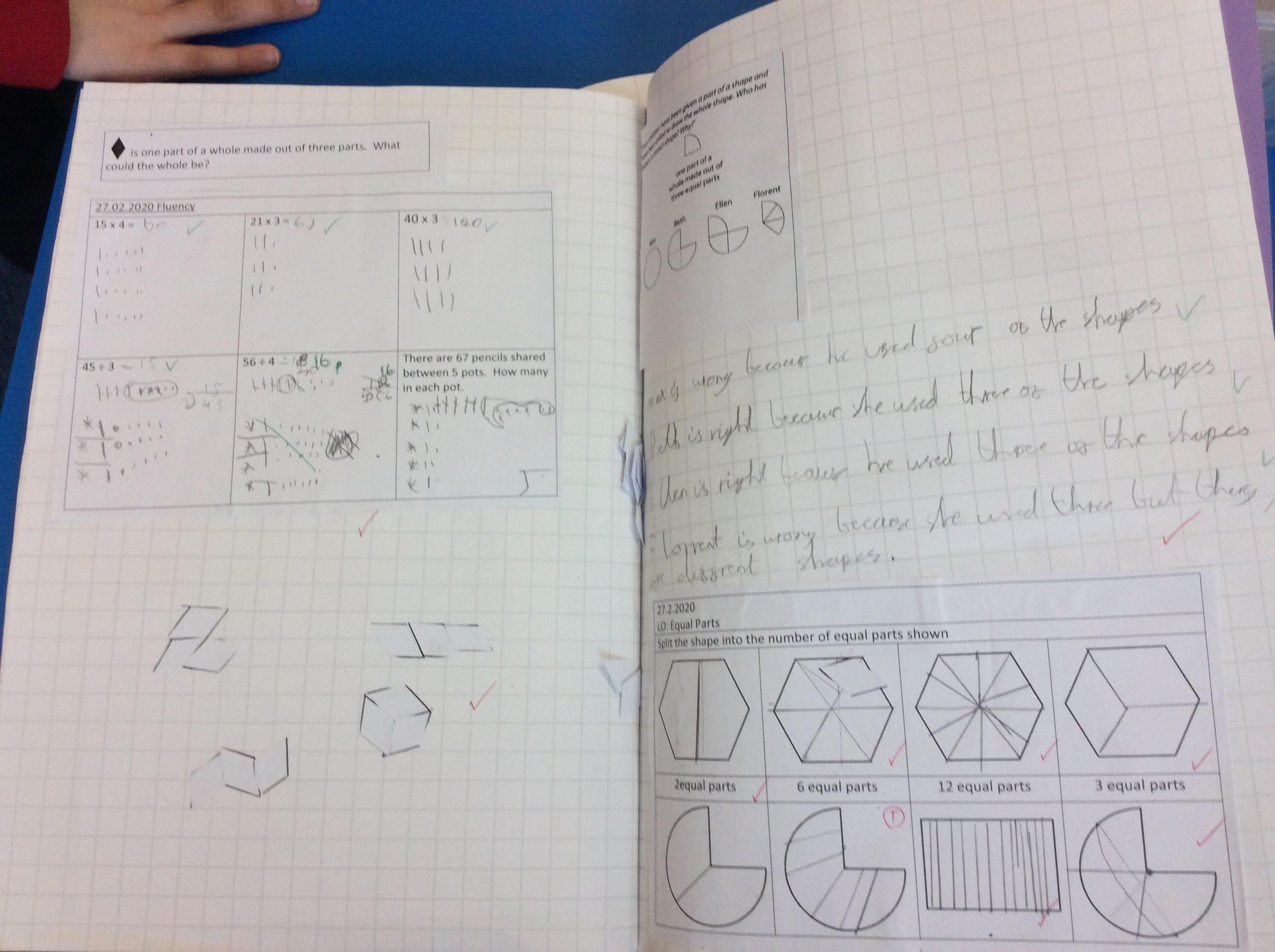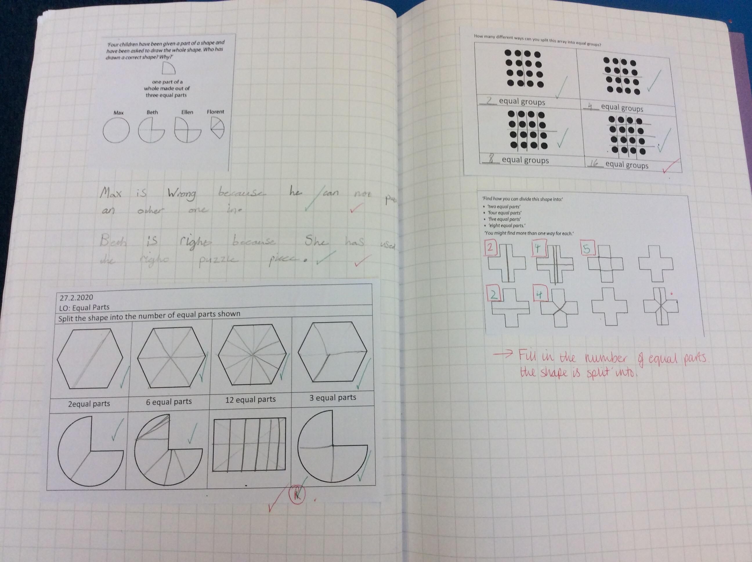 We have continued our work from last half term, looking at equal and unequal parts in a range of different contexts.