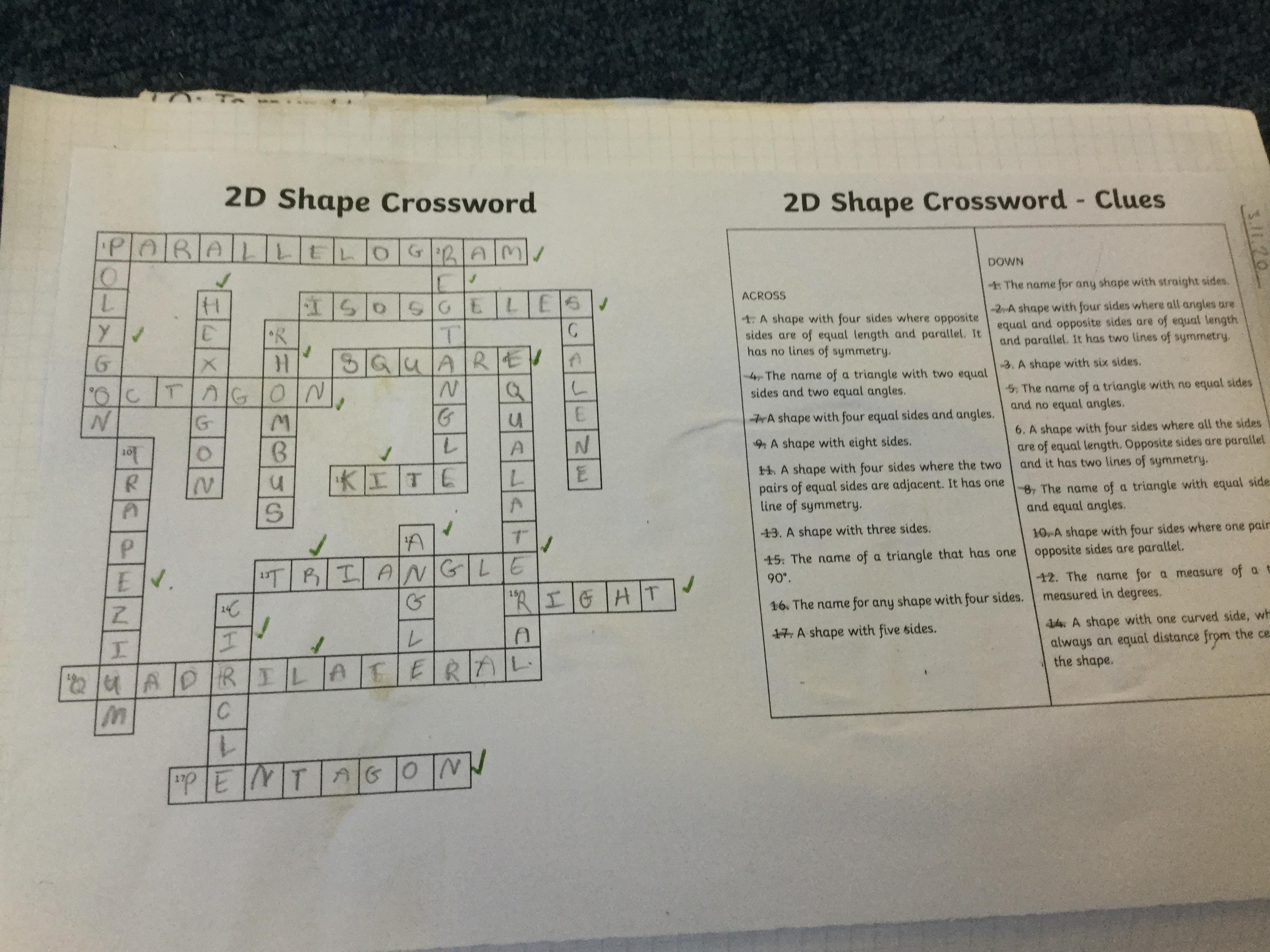 We did this crossword one morning as our early morning task to revise the names of common shapes.