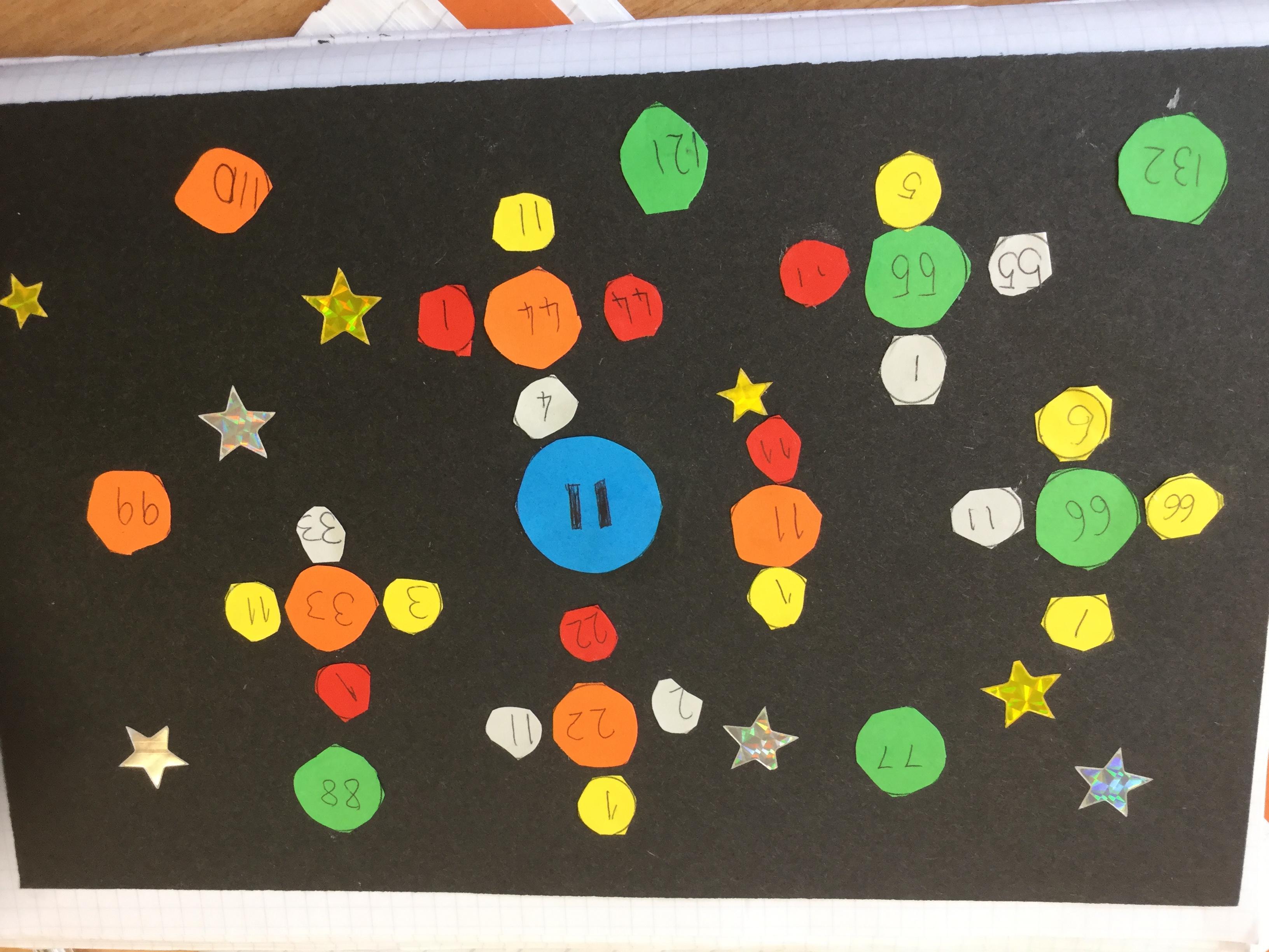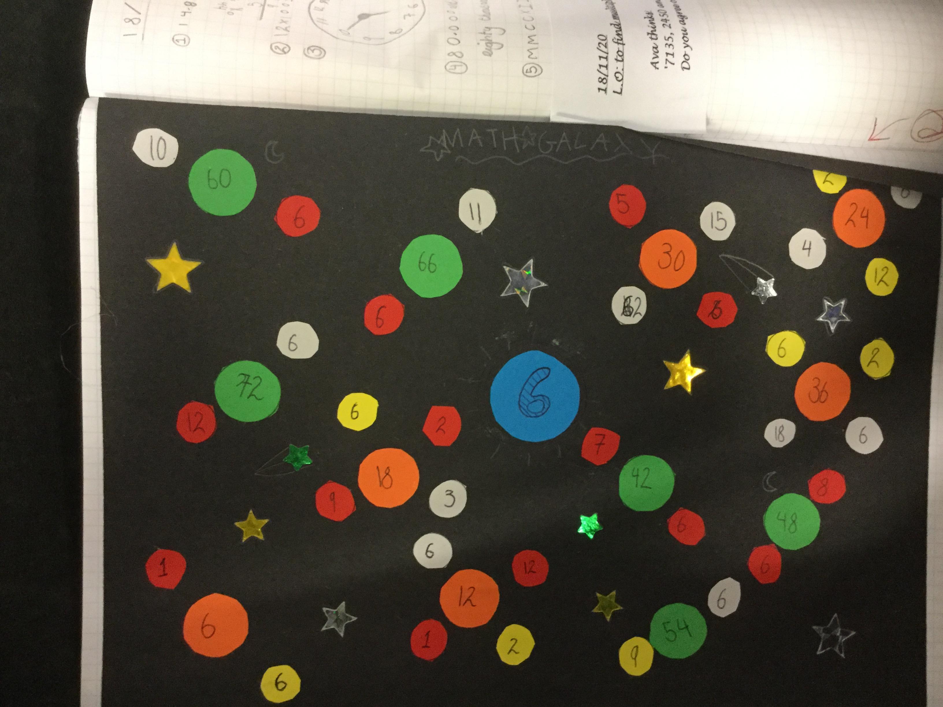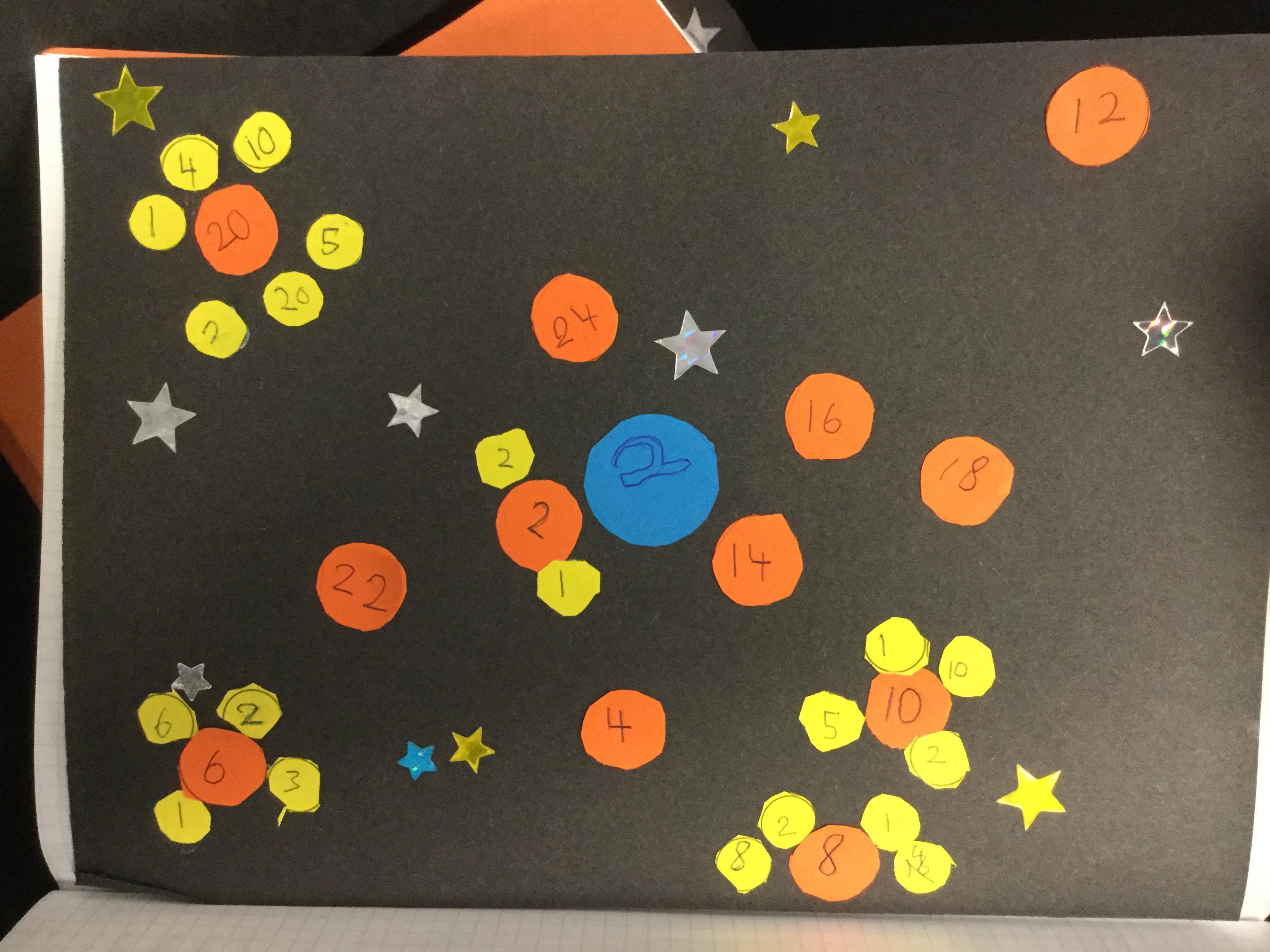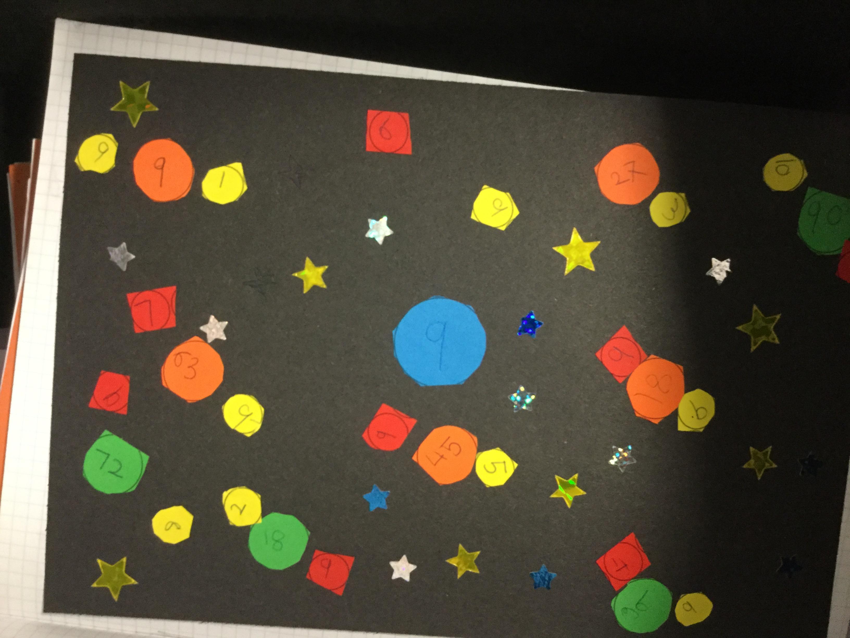 Today we had great fun making our own factor galaxies. We had to choose a times table that became the number on our sun. Then we had to make all its multiples into planets. Each planet was then orbited by its moons which were the factors of that number. Here are the results!