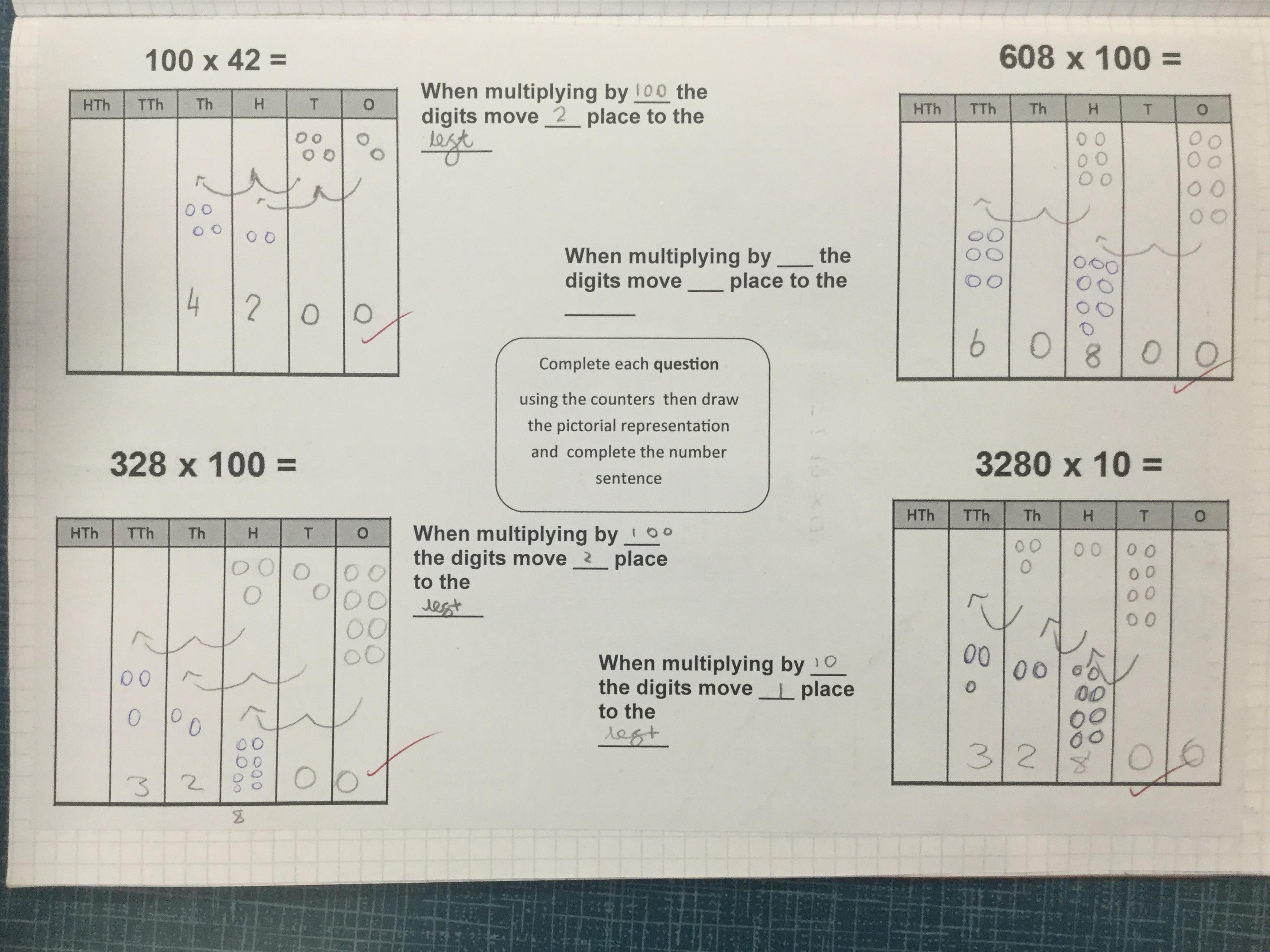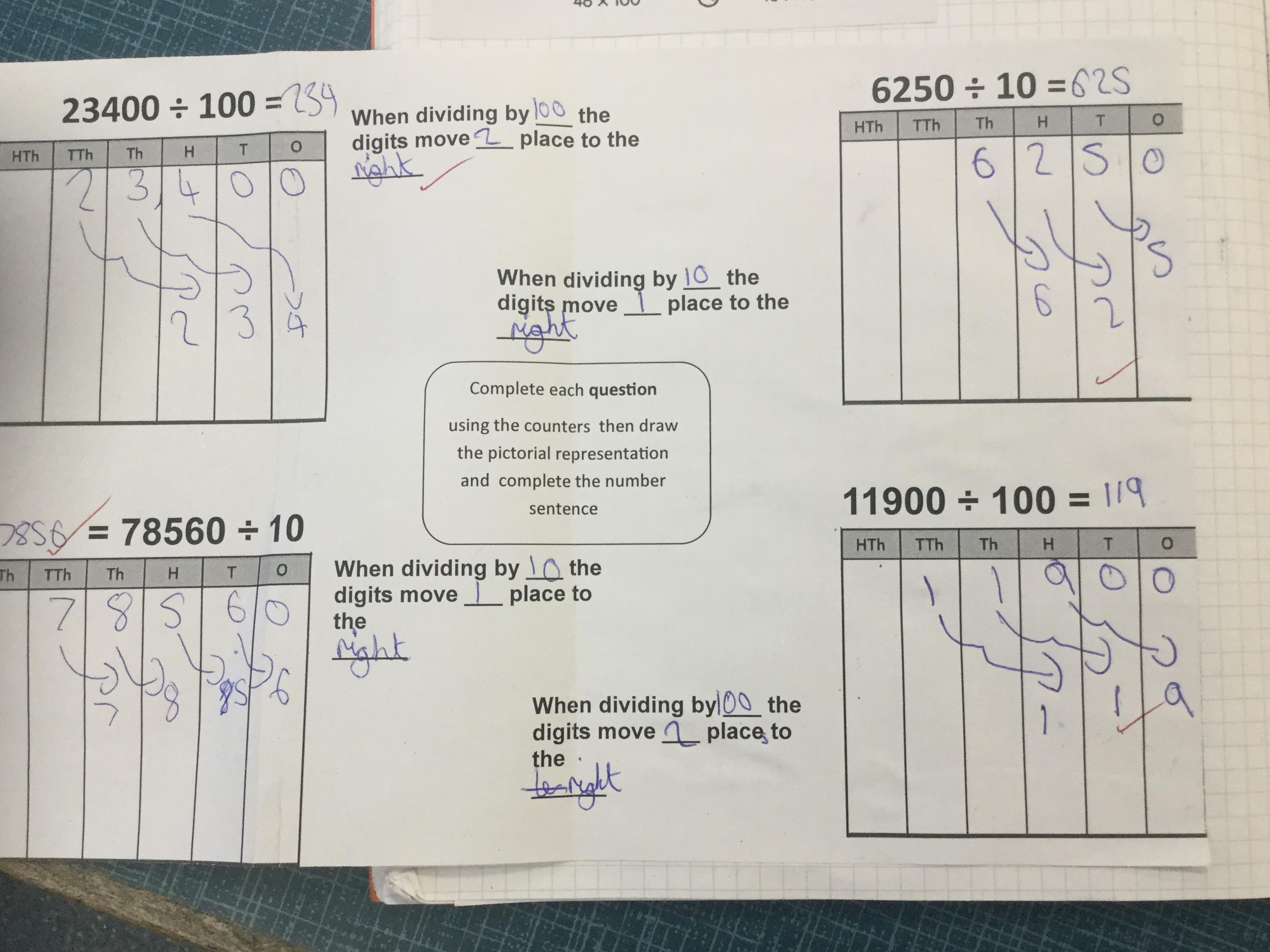 This week the children have been investigating multiplying and dividing by 10, 100 and 1000. They have been using concrete resources to understand what happens to the place value of a number when it is multiplied or divided by 10, 100 or 1000.