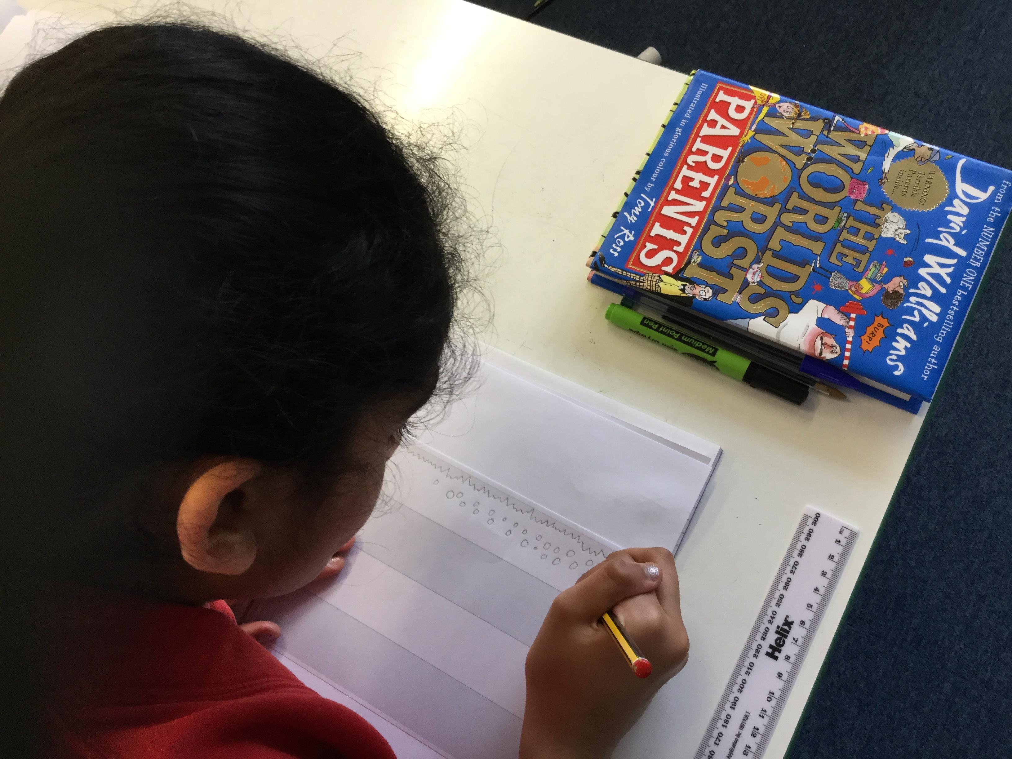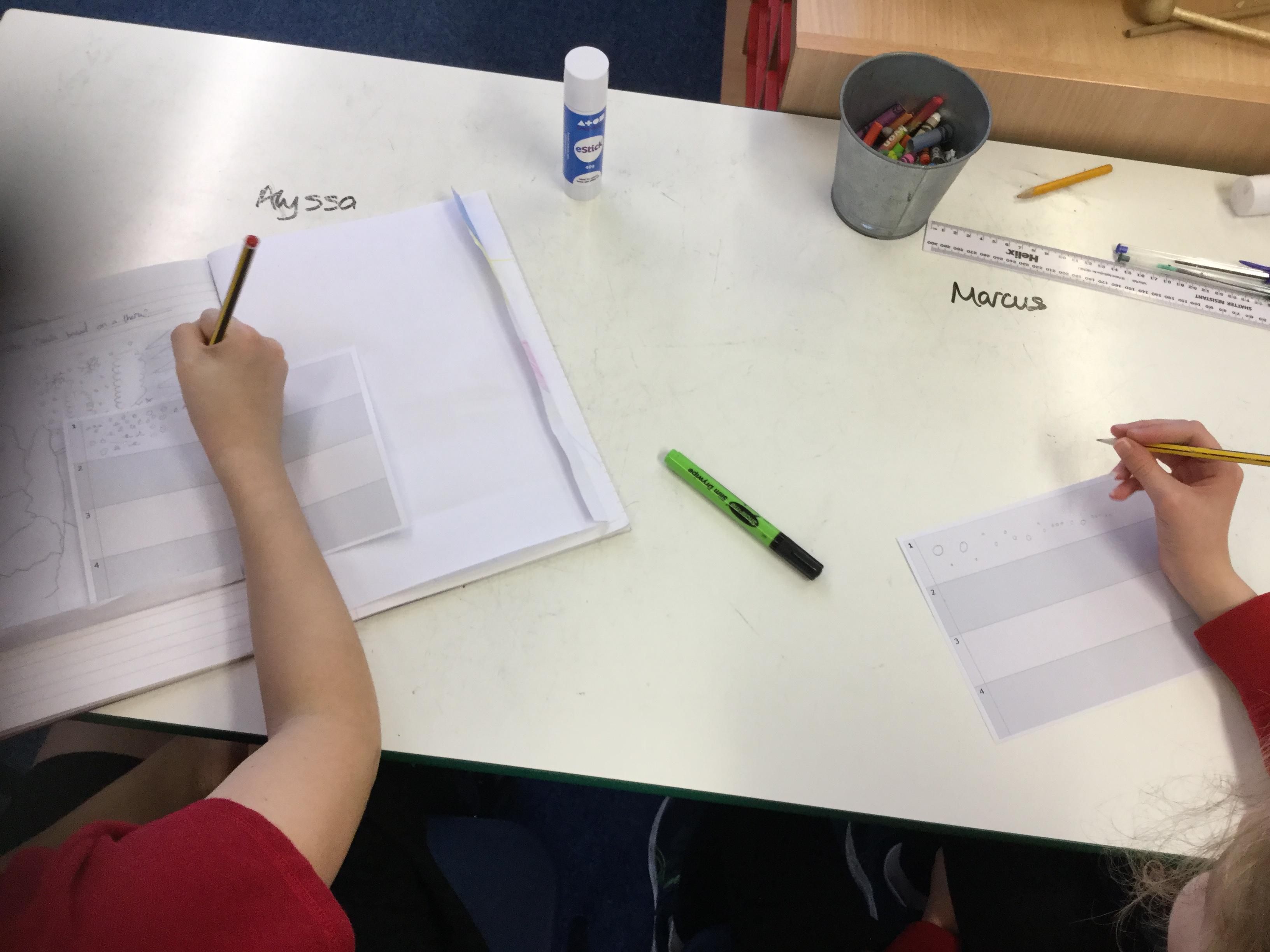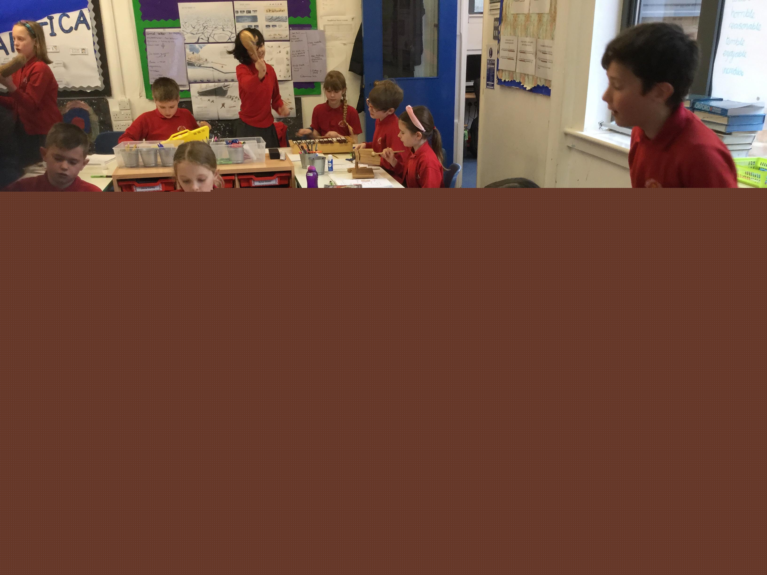 We started the day by listening to a piece of music called ‘Arctic Breath’. The children were asked to jot down words as they listened which they then discussed with their partner. The music was played again and this time the children were asked to represent the music using colour and shape. Finally the children were asked to draw an image to go with the music.