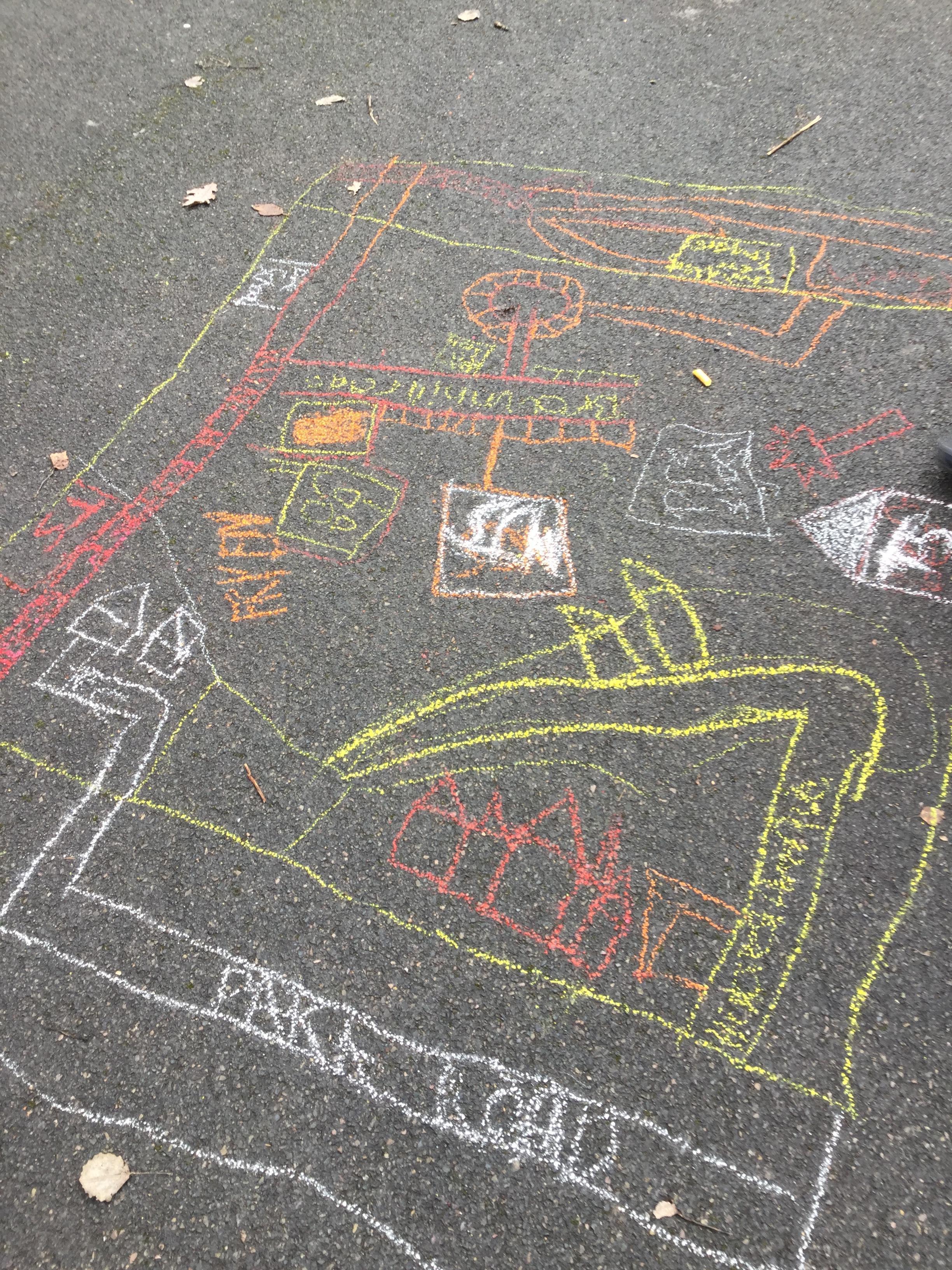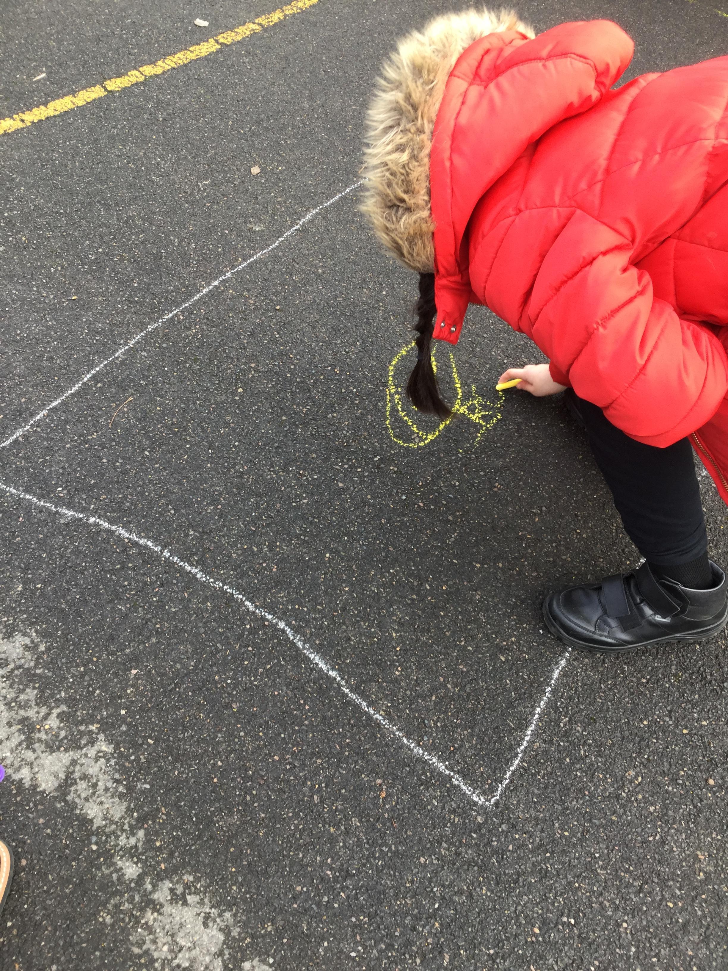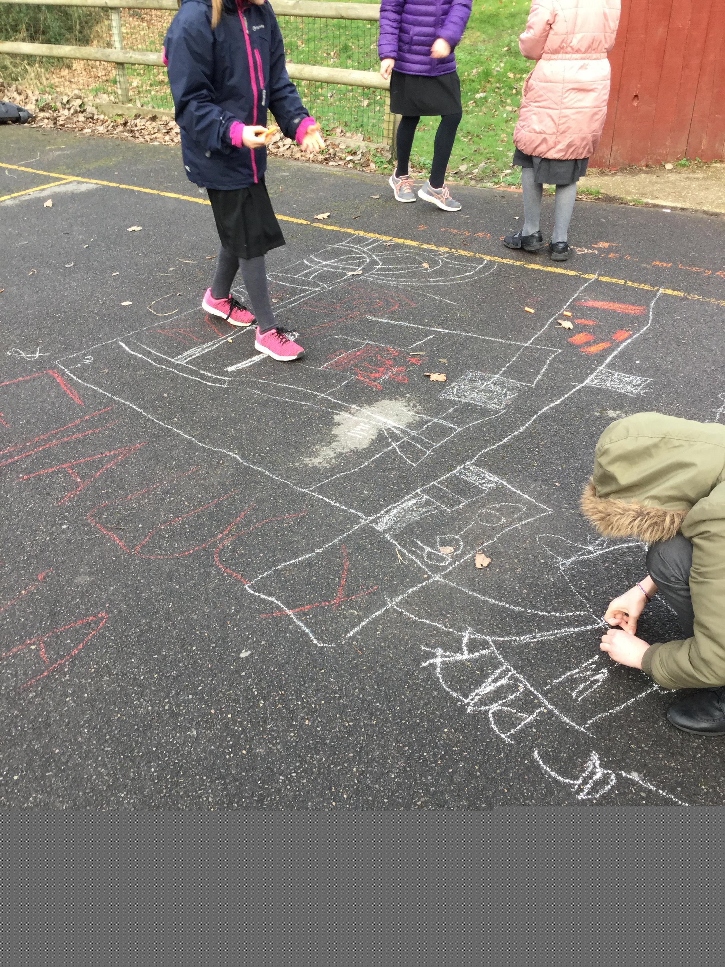 This afternoon we started looking at our local area of Chandlers Ford for our Geography topic ‘Adventure is out there.’ The children had to draw maps of the local area from memory on the playground.