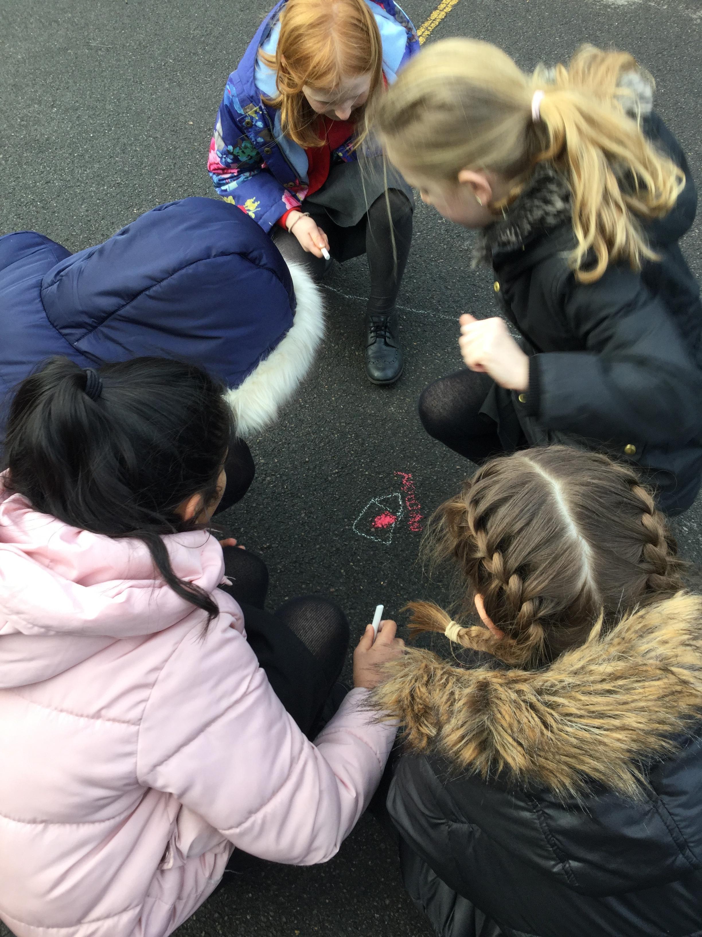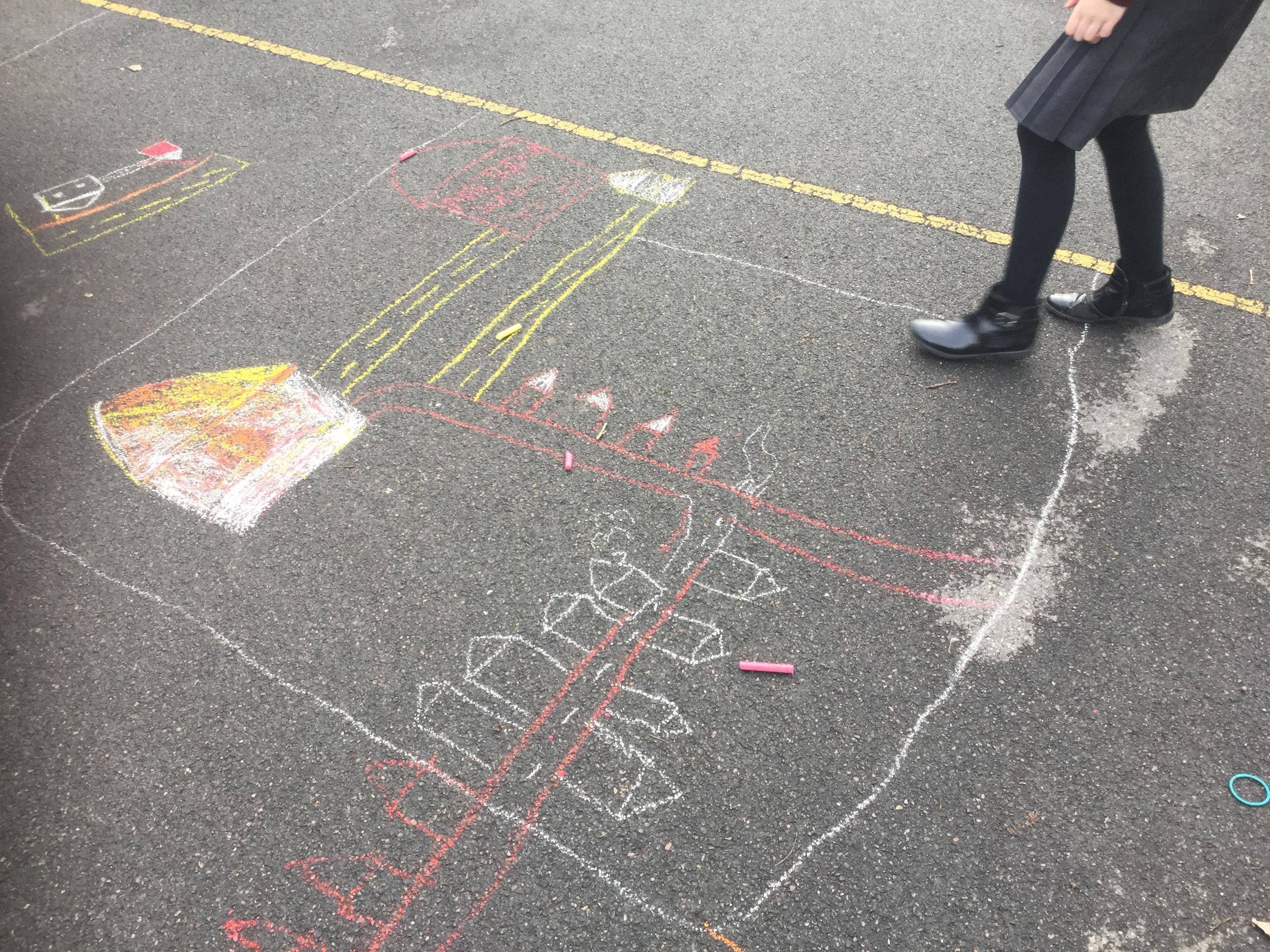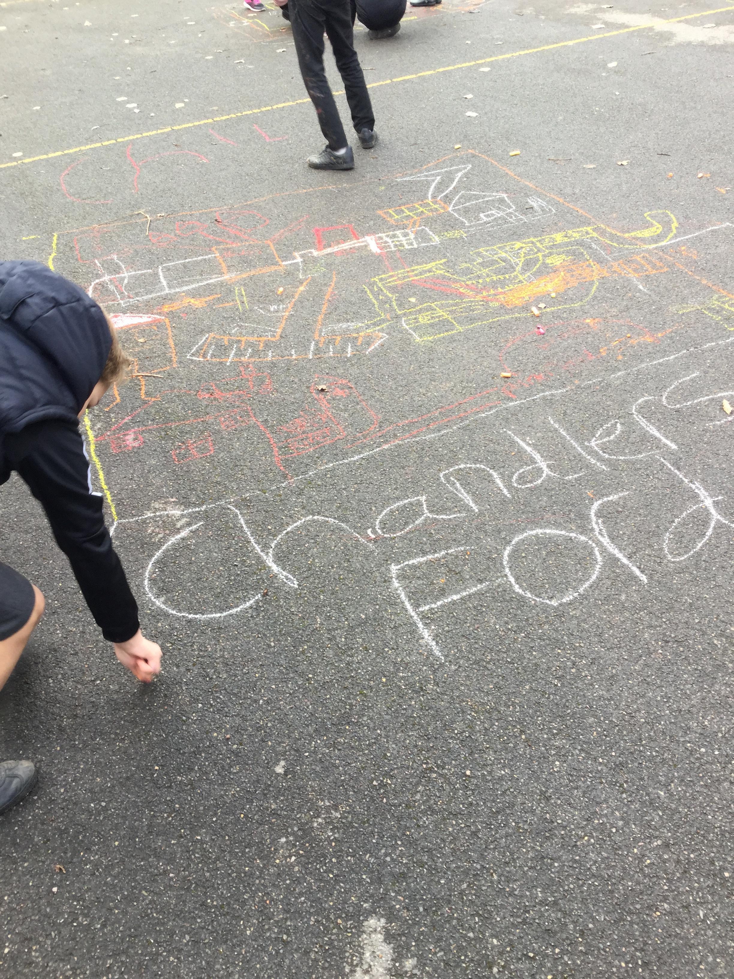 This afternoon we started looking at our local area of Chandlers Ford for our Geography topic ‘Adventure is out there.’ The children had to draw maps of the local area from memory on the playground.