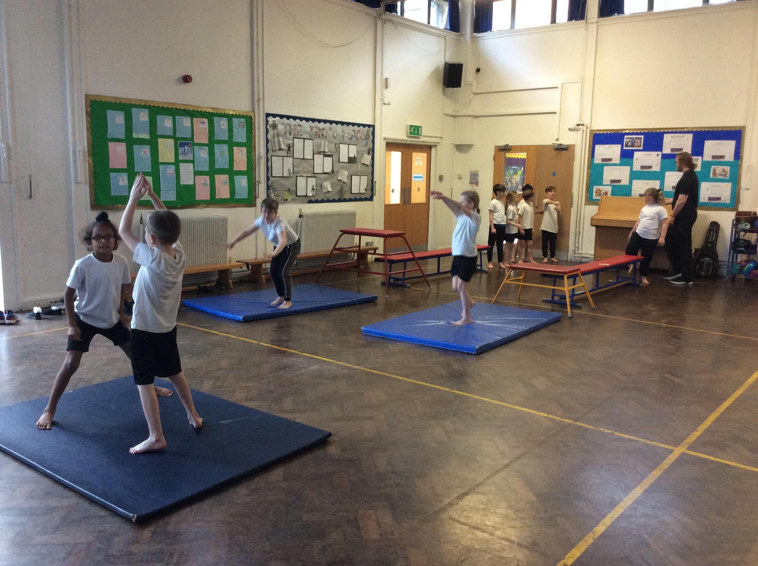 We worked on putting shapes together to make sequences; mirroring our partner.