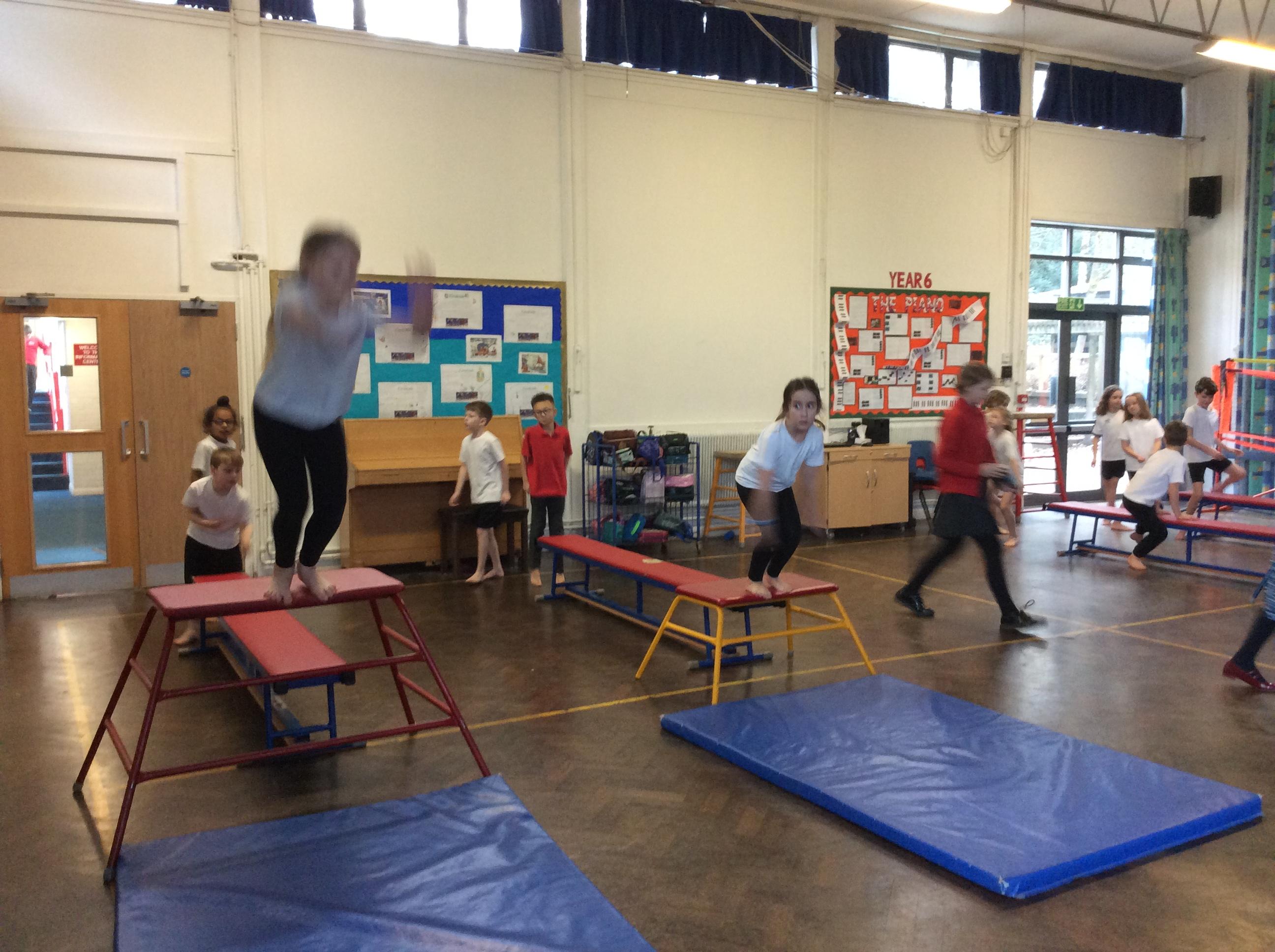 When on the apparatus, we tried to jump and land safely, making clear shapes in the air.