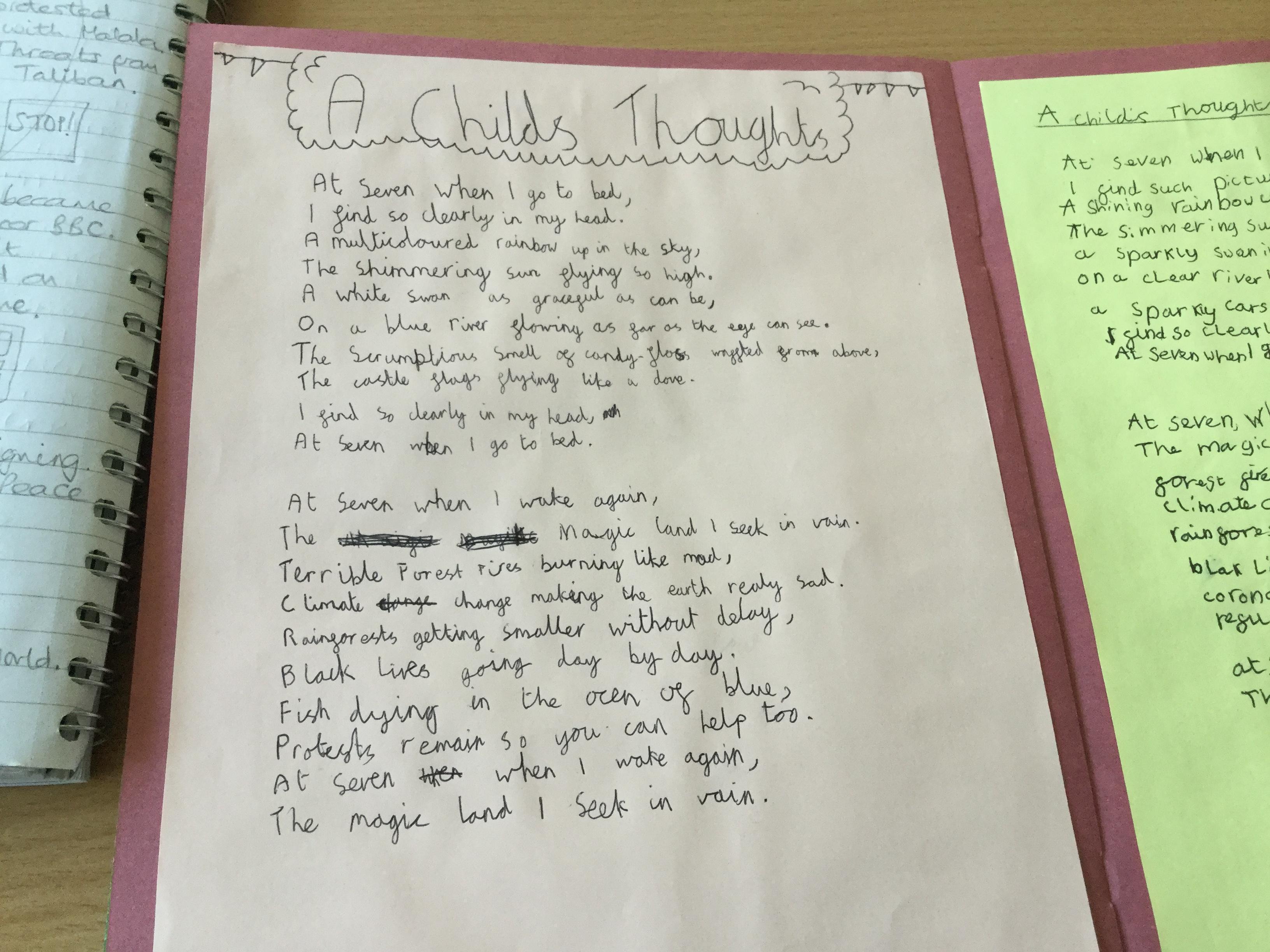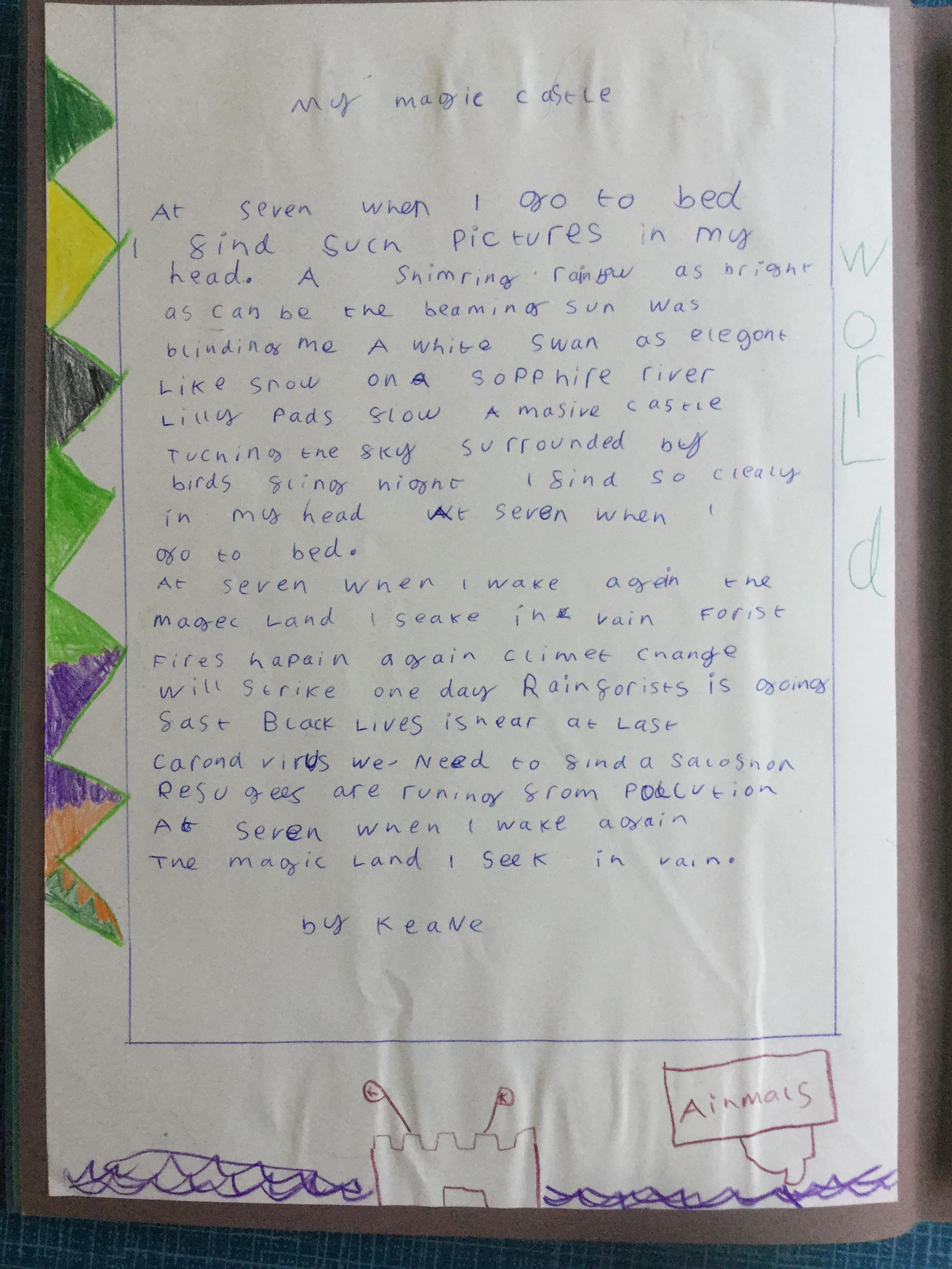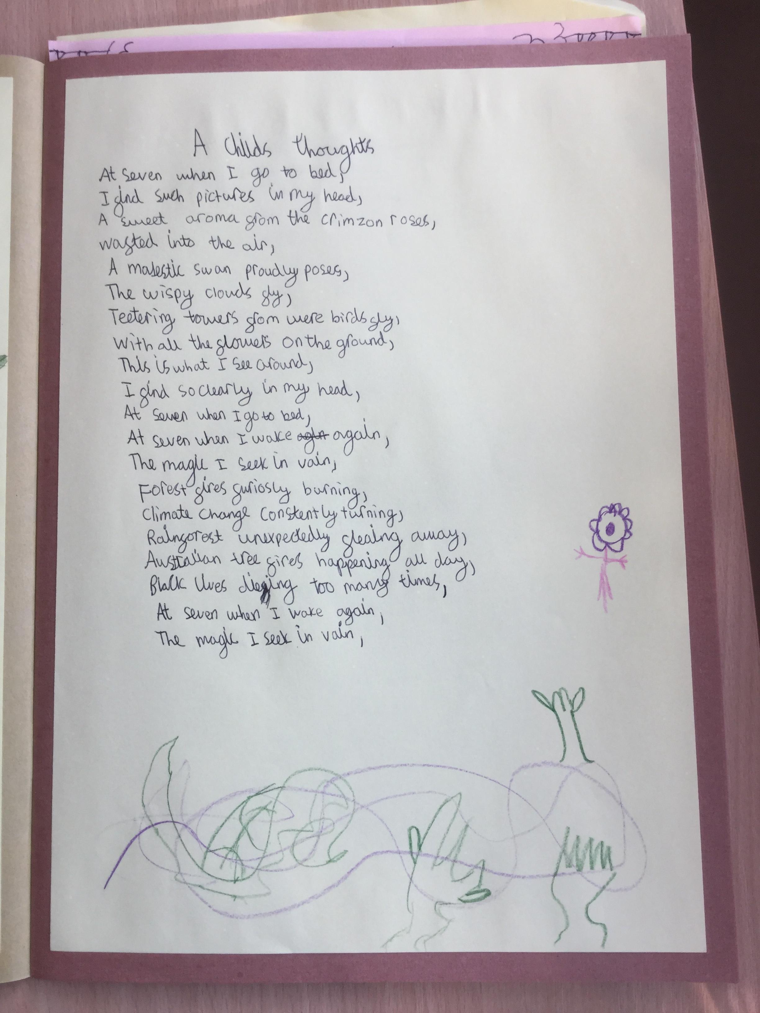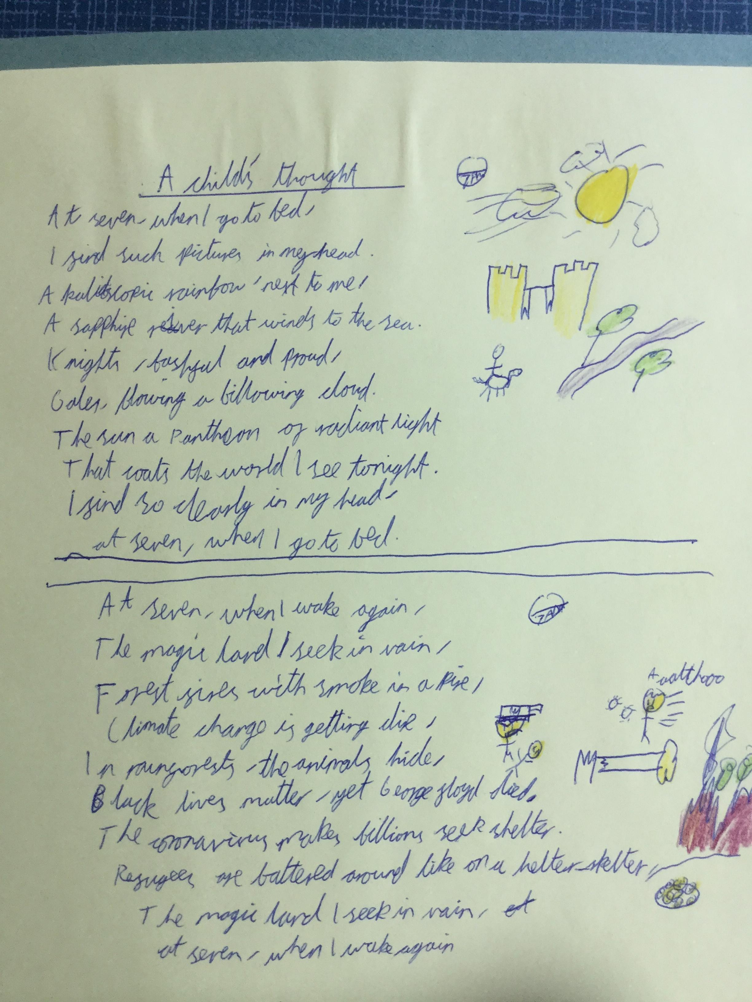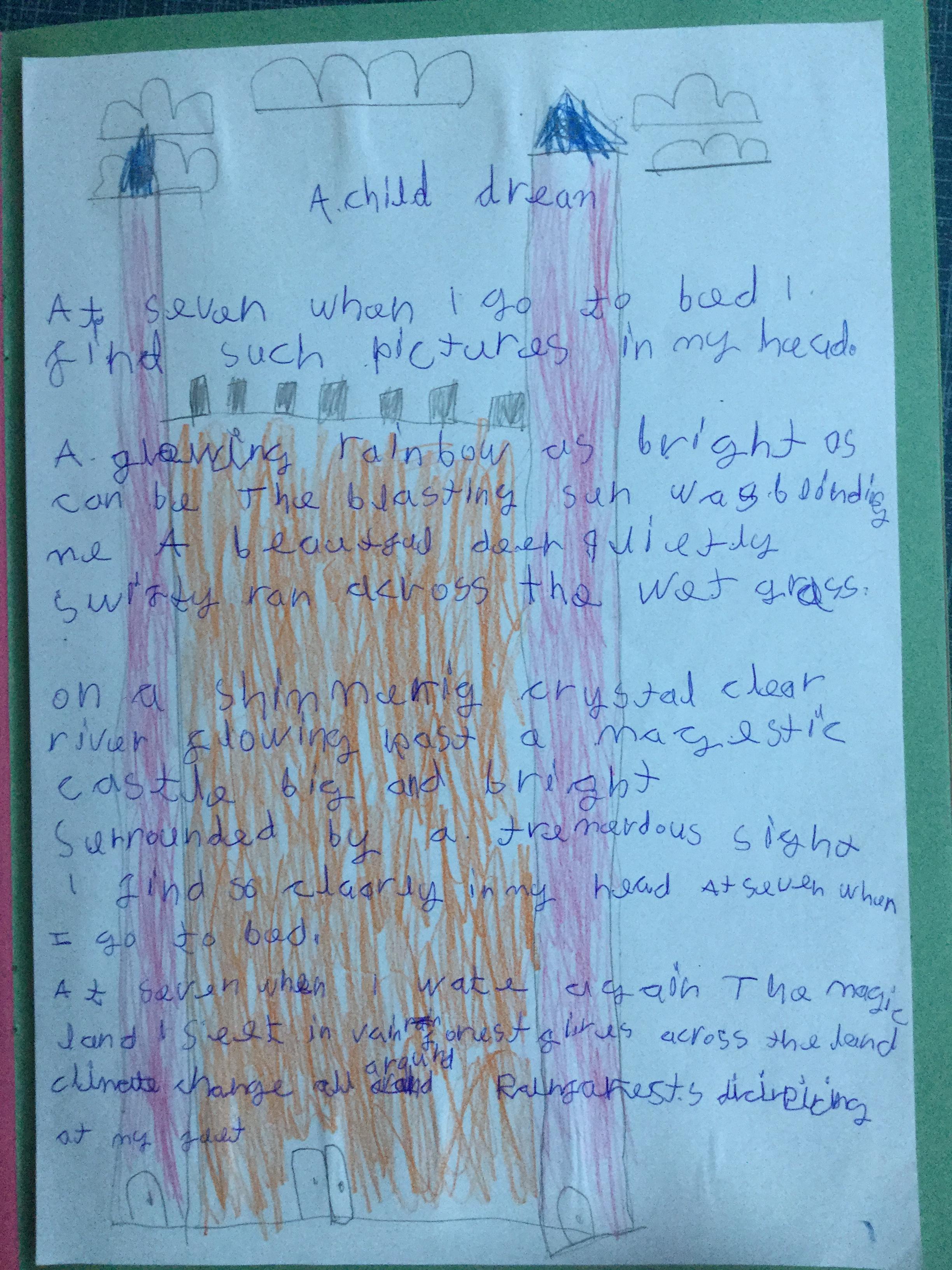 This week the children have been studying and imitating the work of Robert Lewis Stevenson about a child’s thought. This poem is about a dreamland vs reality of life. Across the week we have widened our vocabulary thinking about: verbs, nouns, adverbs, adjectives, thoughts, feelings and 5 senses to create poems with imagery and meaning. To start with we imitated the poet using the image given and then created our own based on a new dreamworld and the reality of life that is happening in the world around us such as: lockdown, coronavirus, black lives matter, deforestation, politics, technology, climate change, protests, war, fires amongst others. All ideas were from the children. It was a great week of creativity and poetry from Year 5!