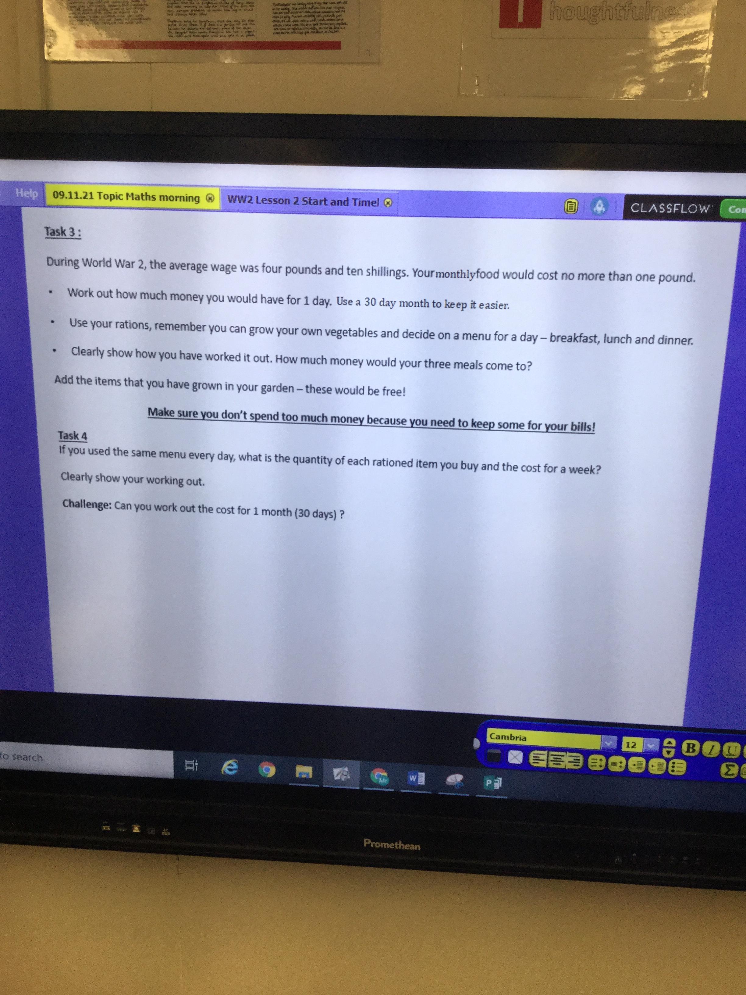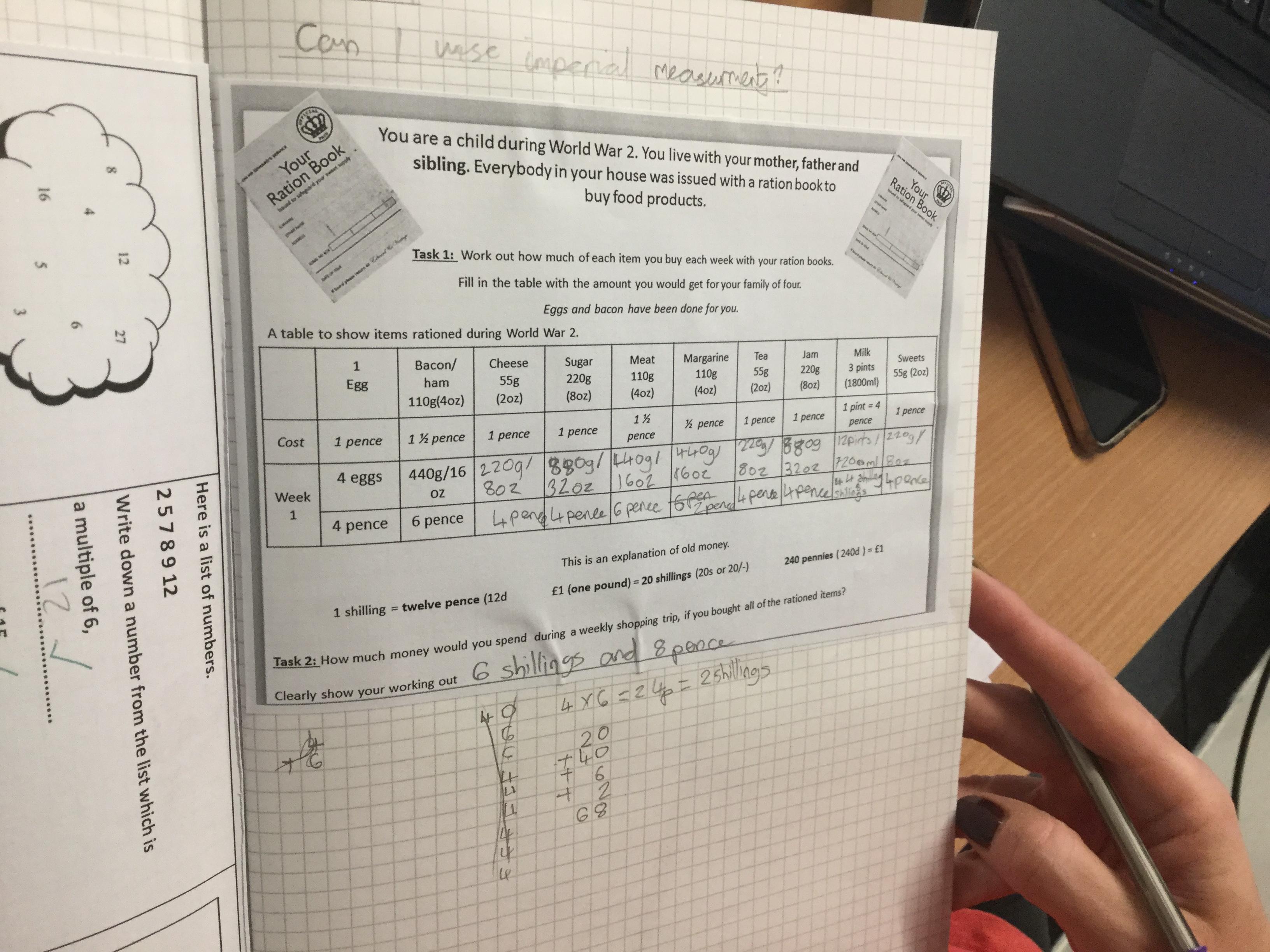 Continuing from our maths learning at Hooke Court, we worked in groups to solve problems relating converting money, weights and rations. We then went onto working out a daily budget before attempting to create a daily meal planner that fit within our budgets.