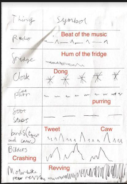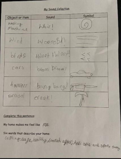 As part of our music learning at home, we collected and annotated sounds we heard.