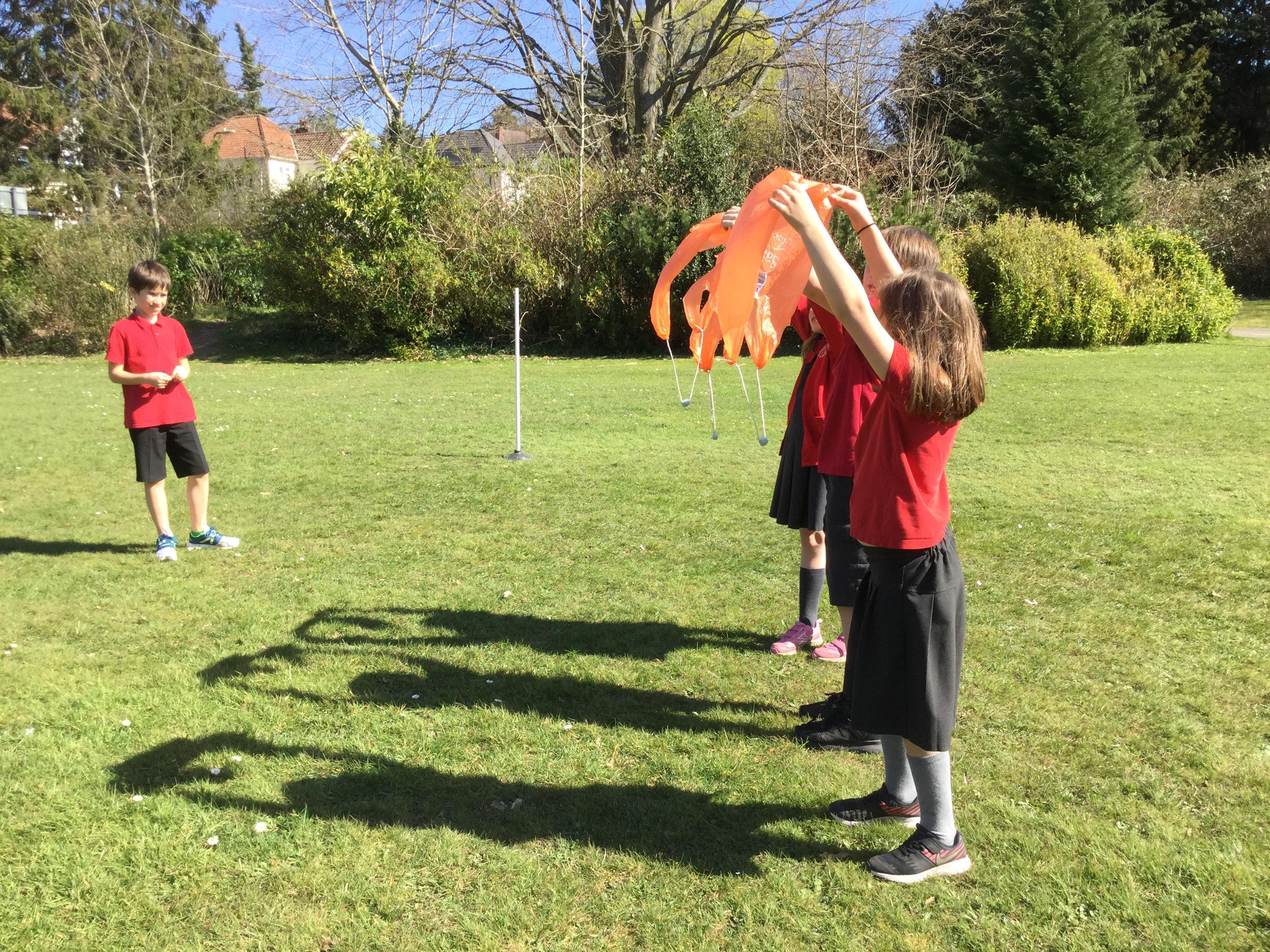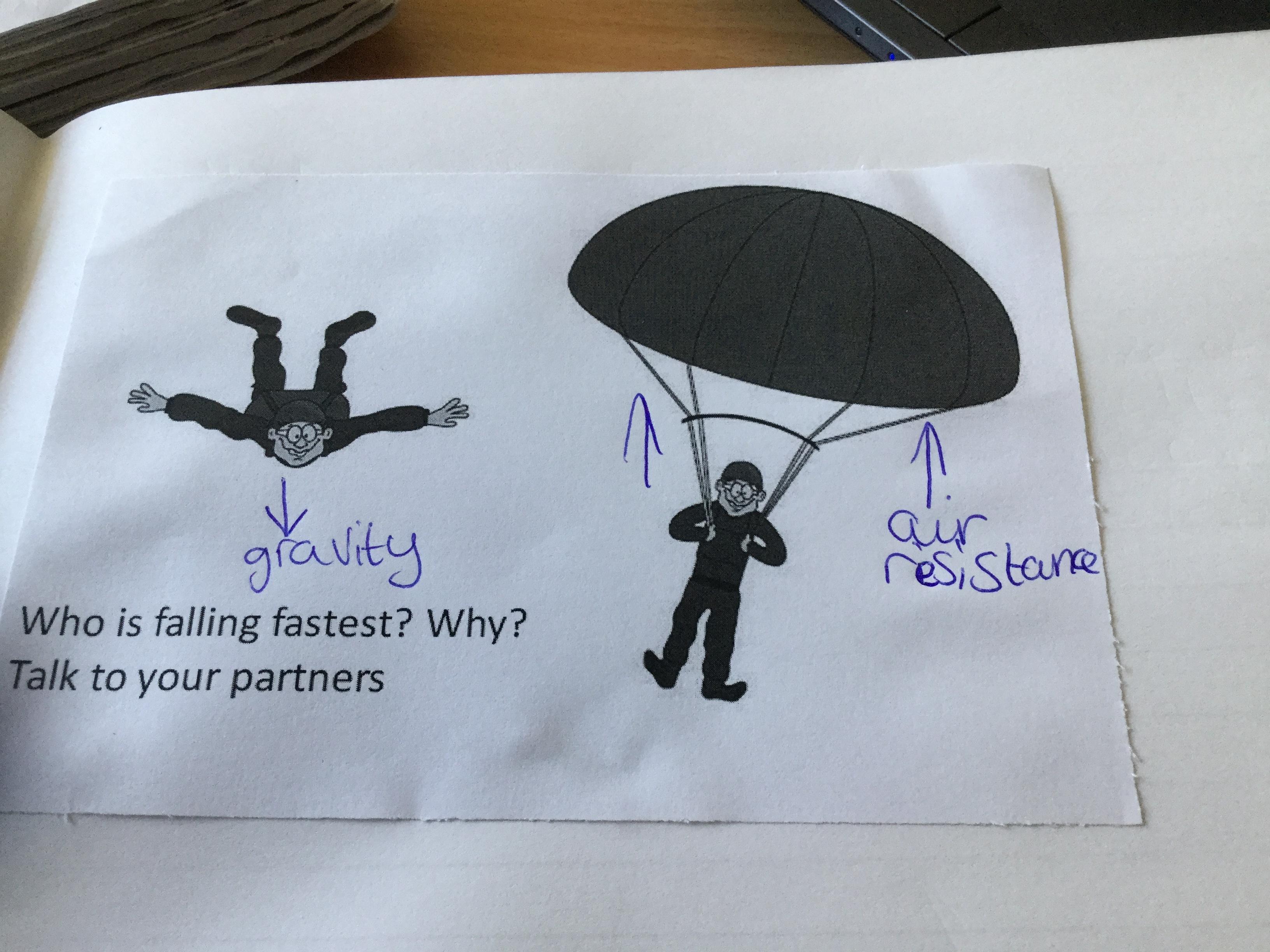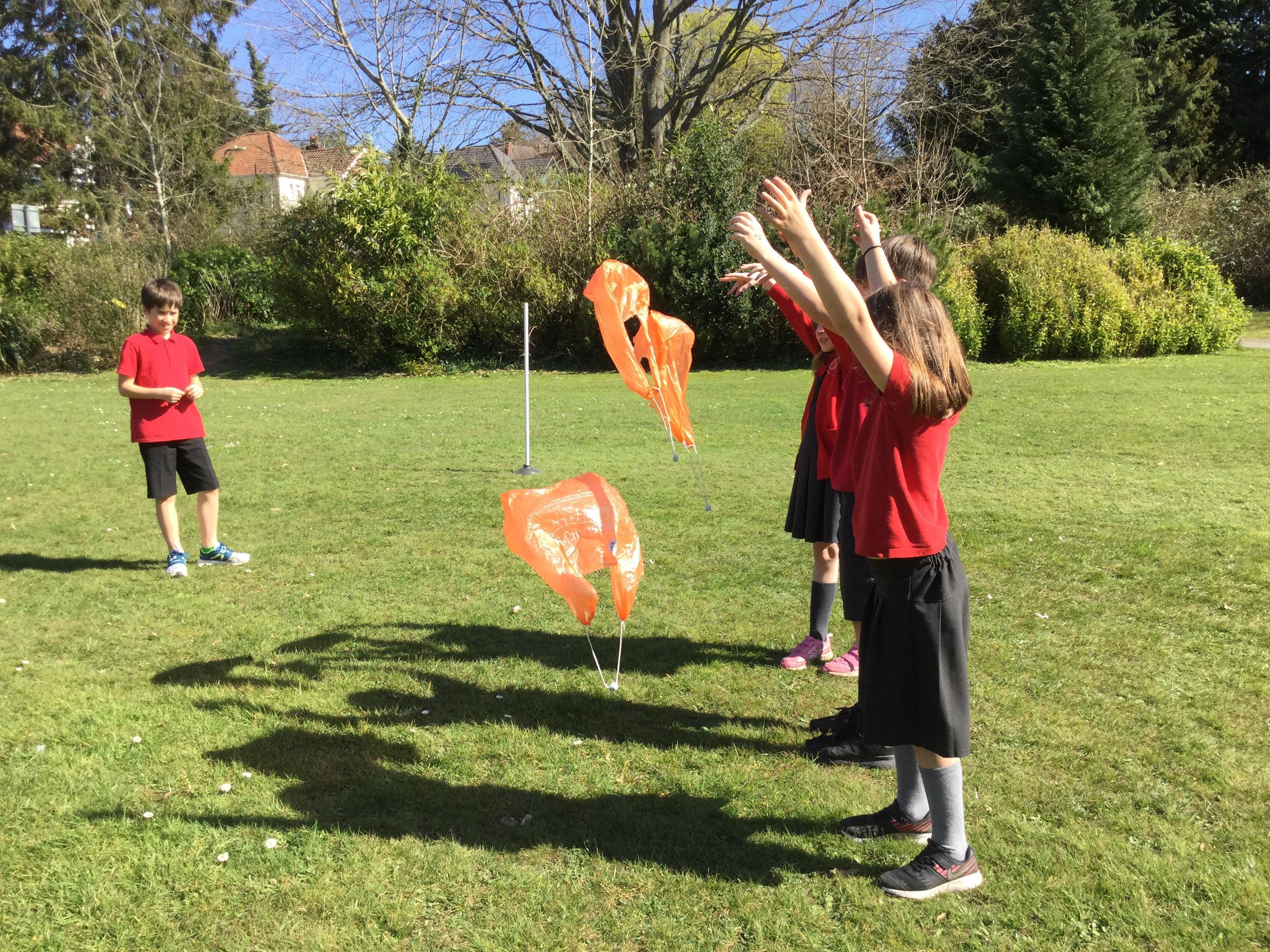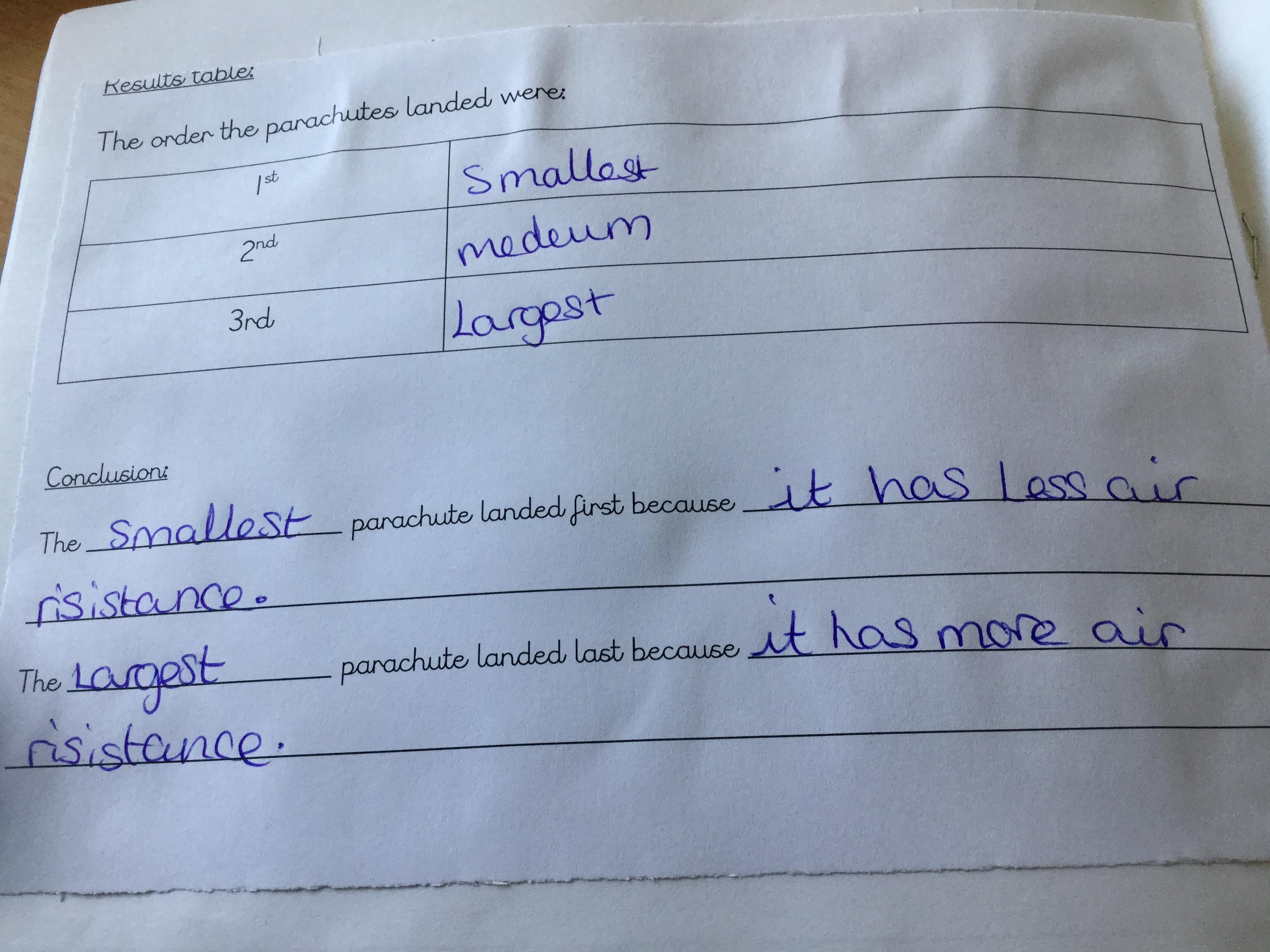 Today we watching videos of bikes travelling down a hill, parachutes falling from the sky and lorries driving along a road. We discussed the forces acting on each vehicle or object and learnt how air resistance is another force. We then investigated the effects of air resistance on the size of parachutes.