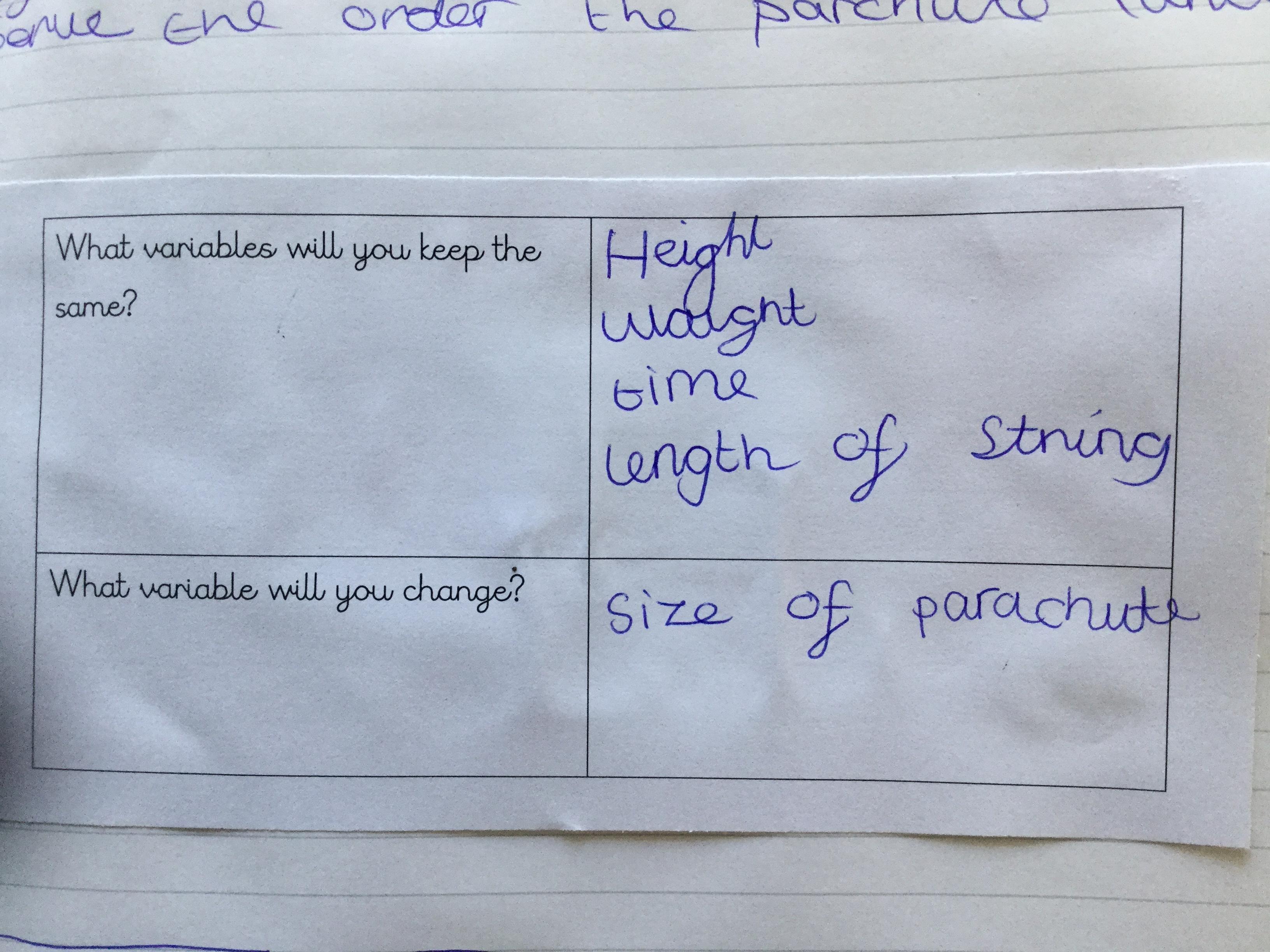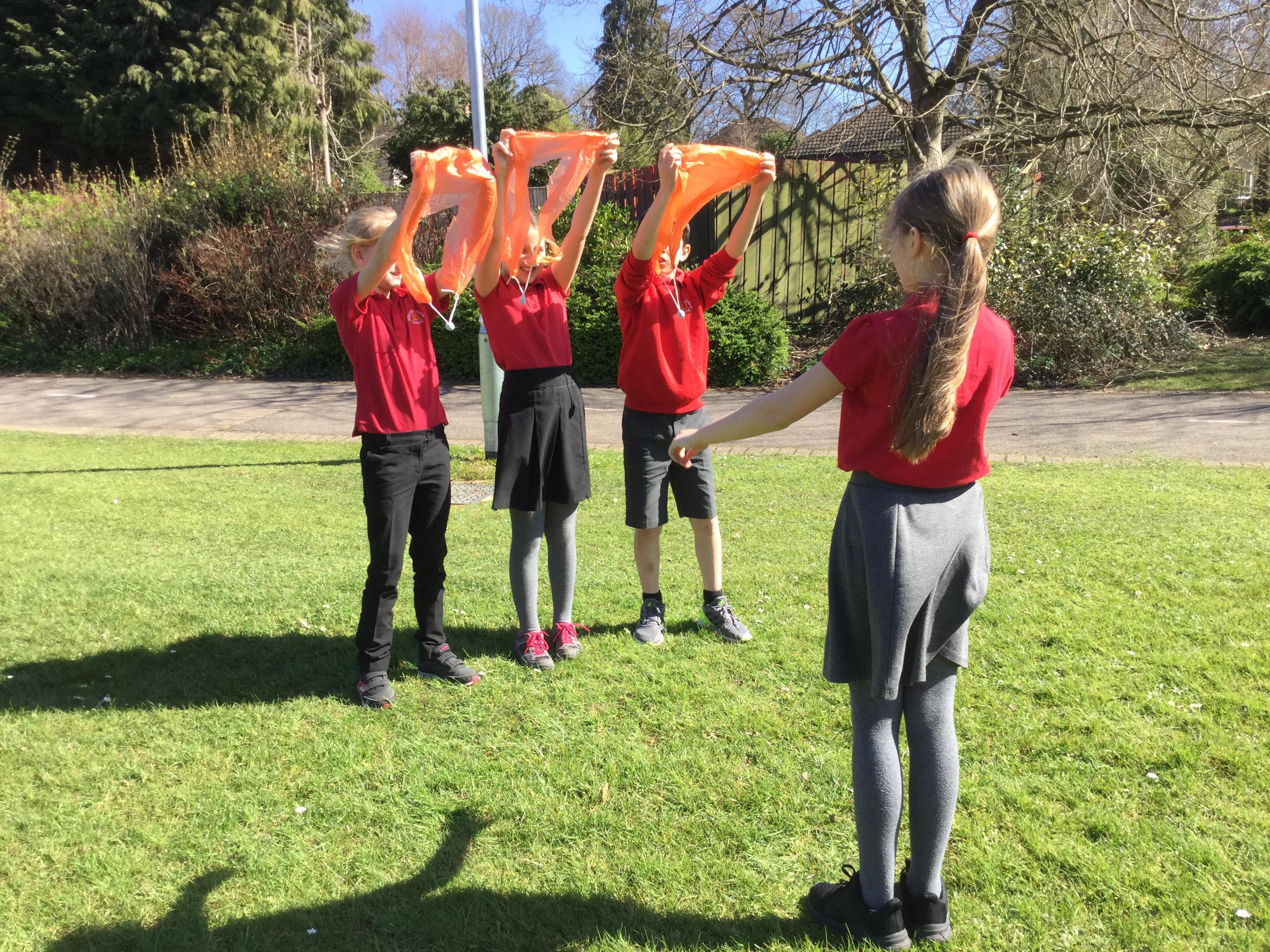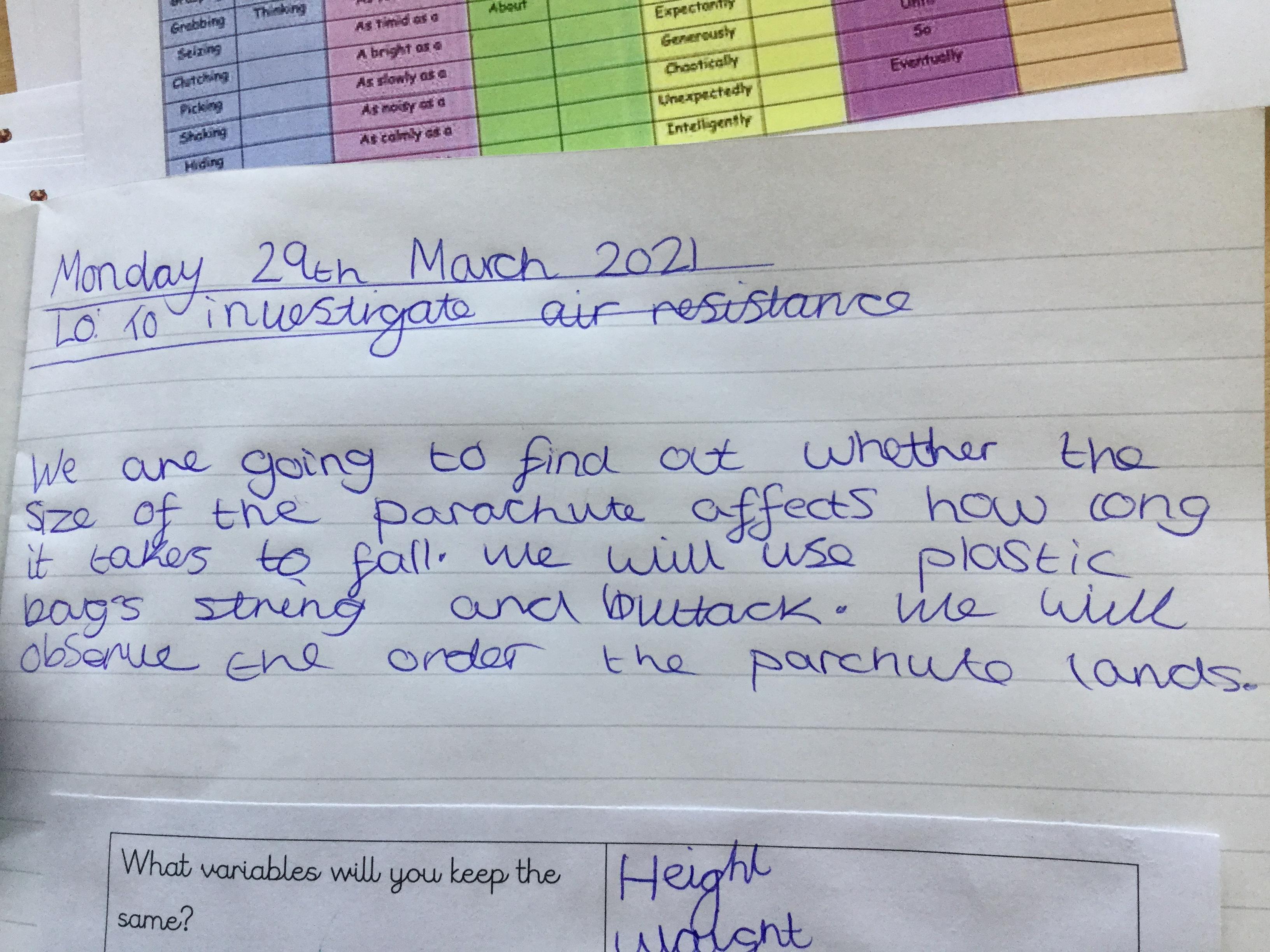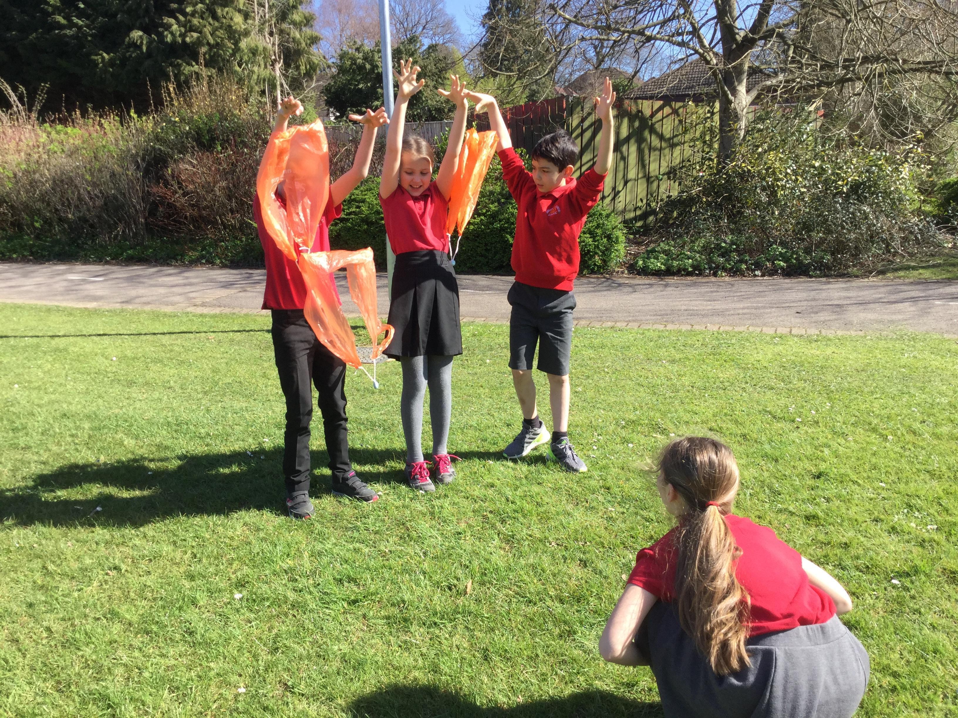 Today we watching videos of bikes travelling down a hill, parachutes falling from the sky and lorries driving along a road. We discussed the forces acting on each vehicle or object and learnt how air resistance is another force. We then investigated the effects of air resistance on the size of parachutes.
