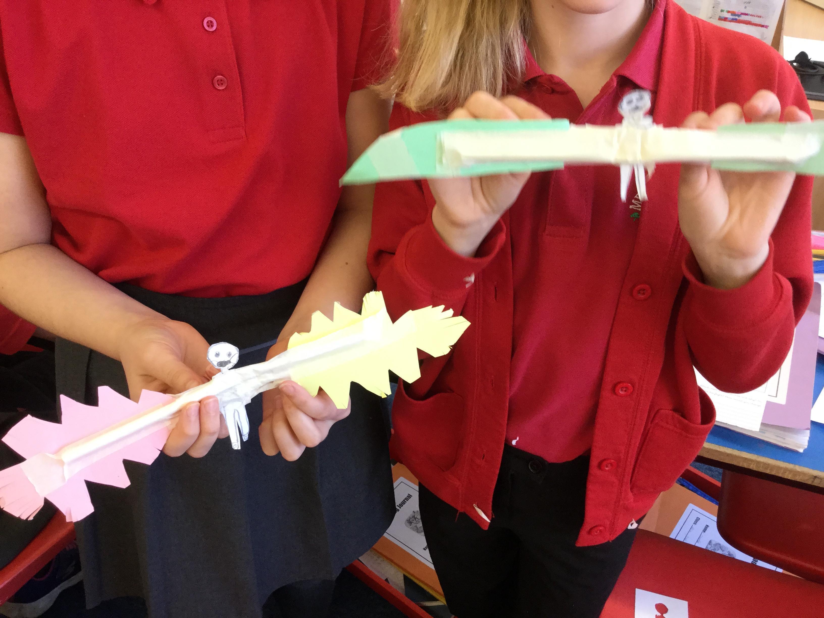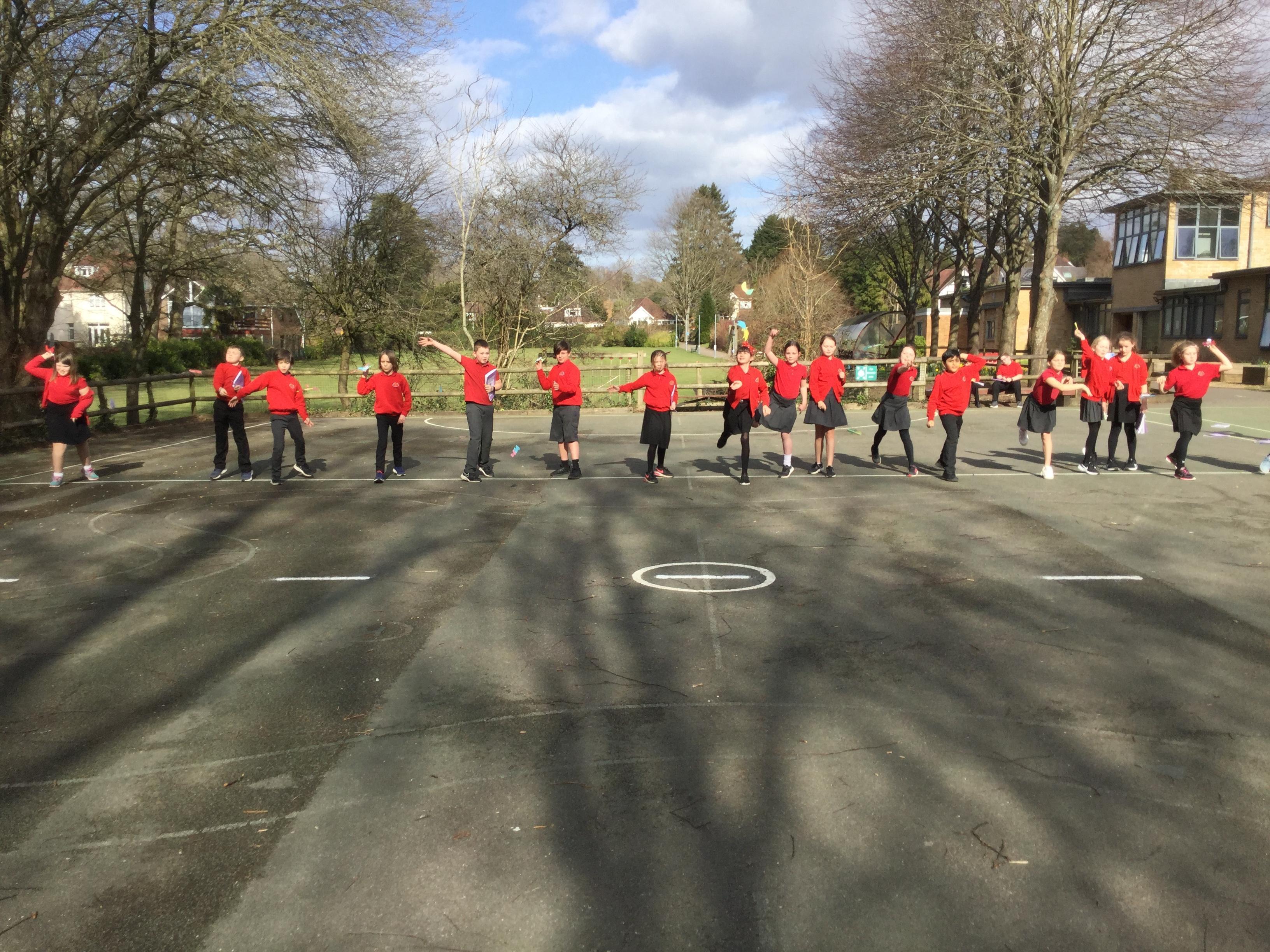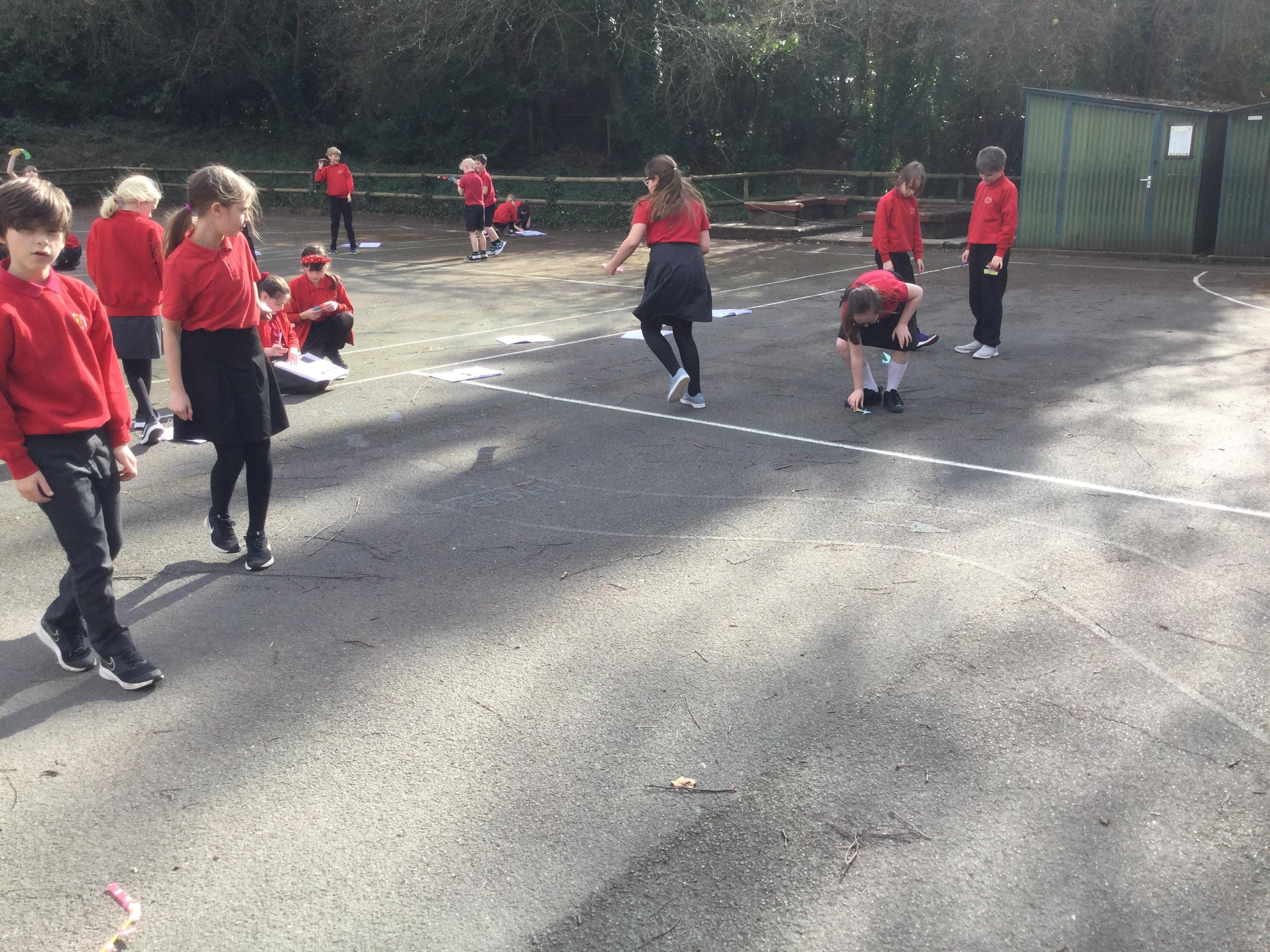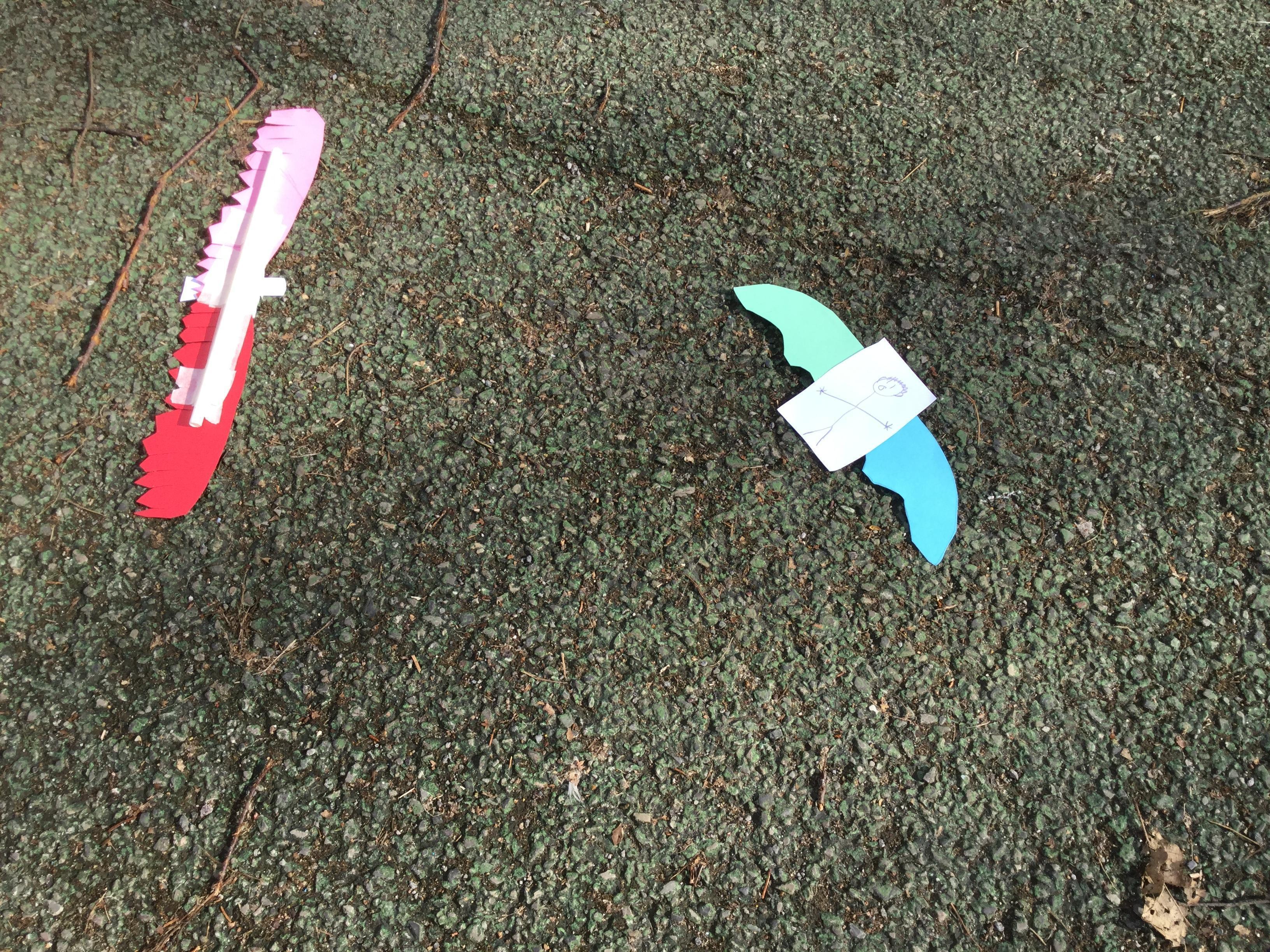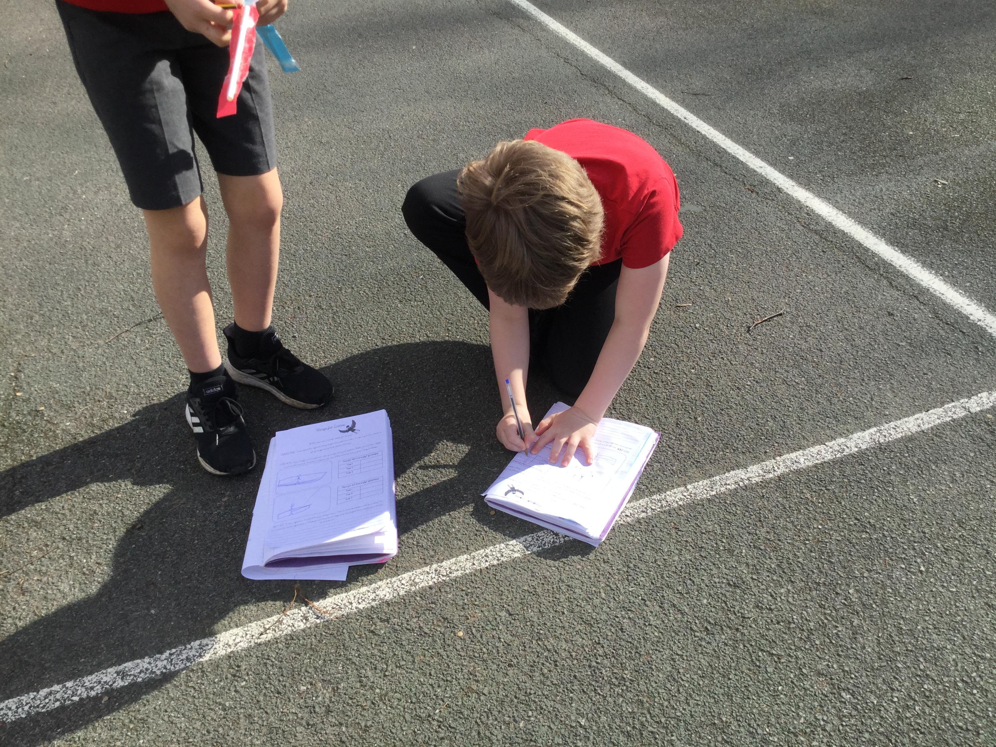 Once we had completed and made our wings, we went outside to test fly them and measure how far they travelled. Here are some photographs of our investigations!