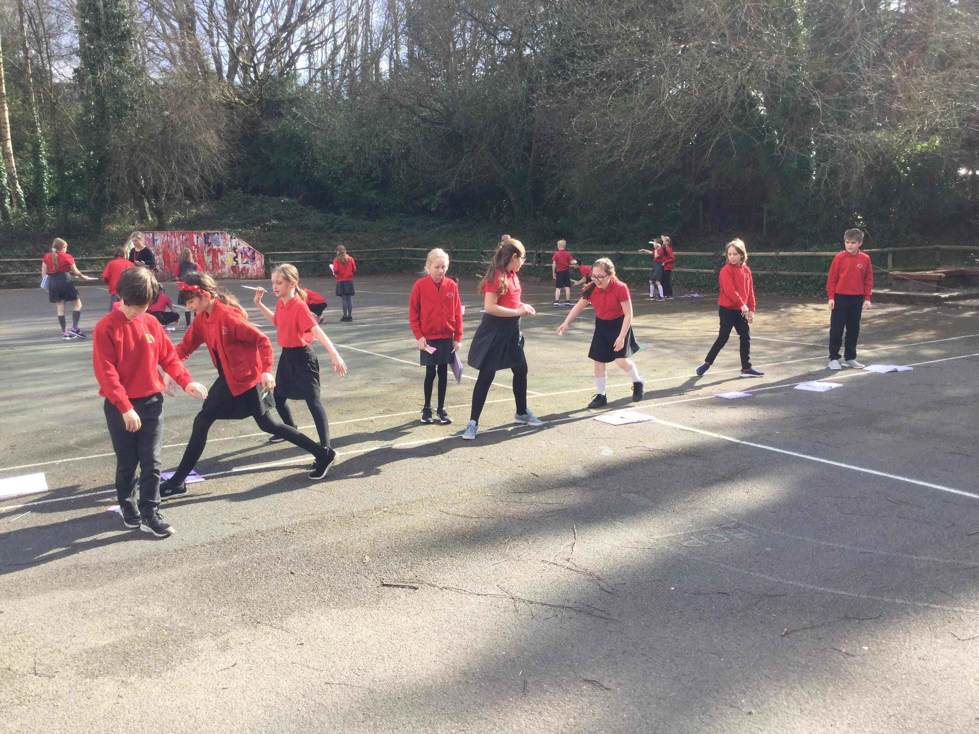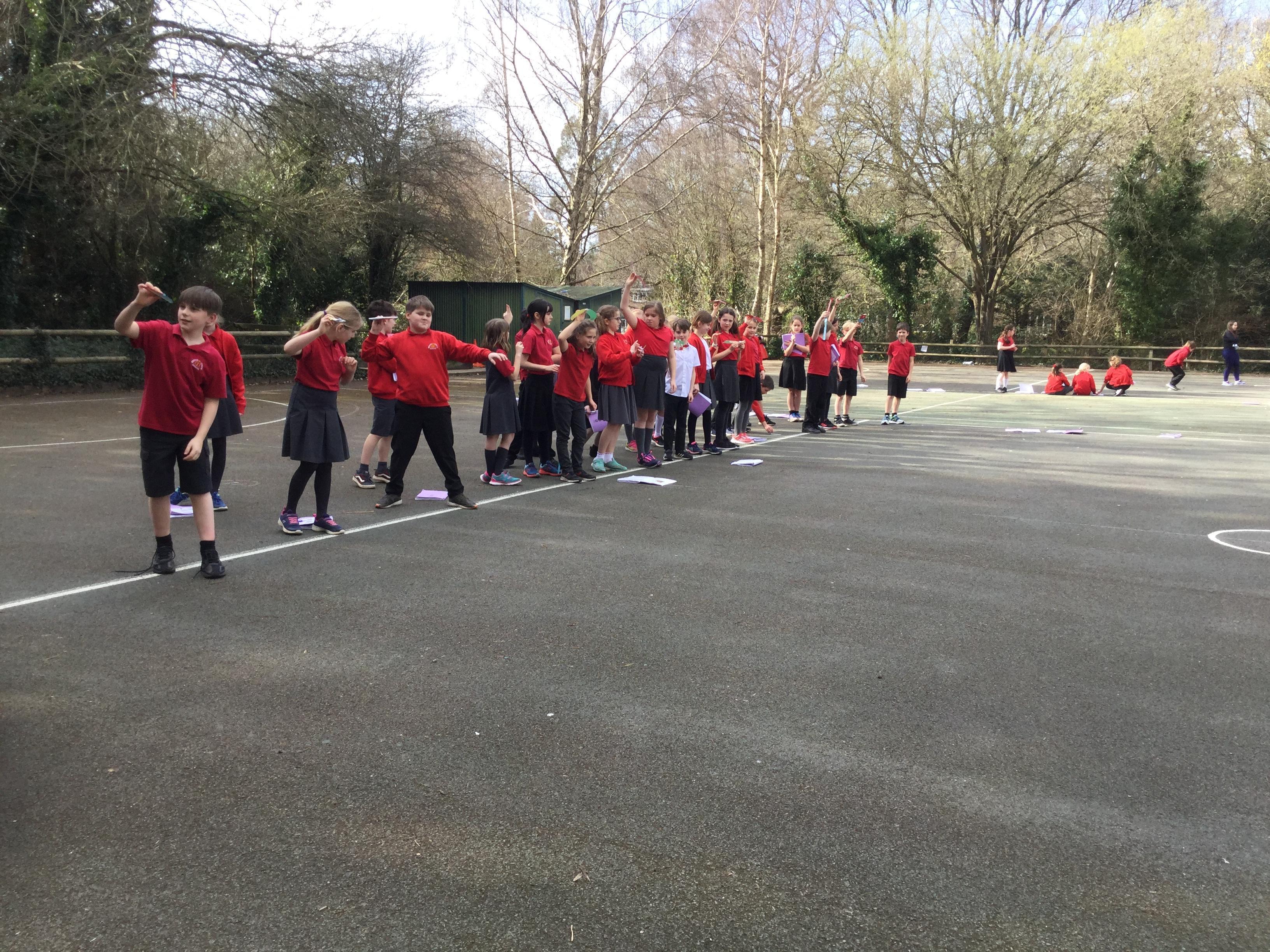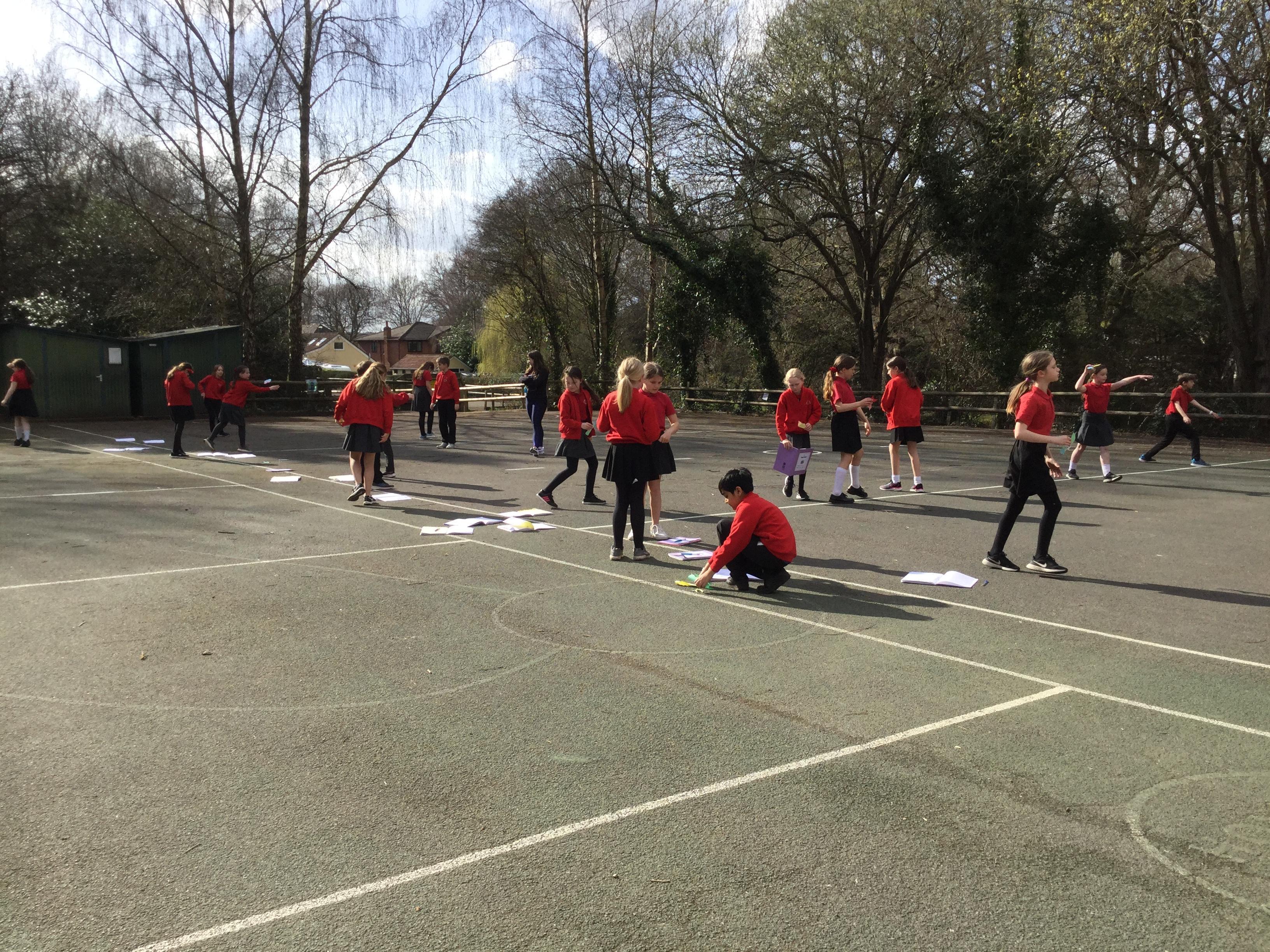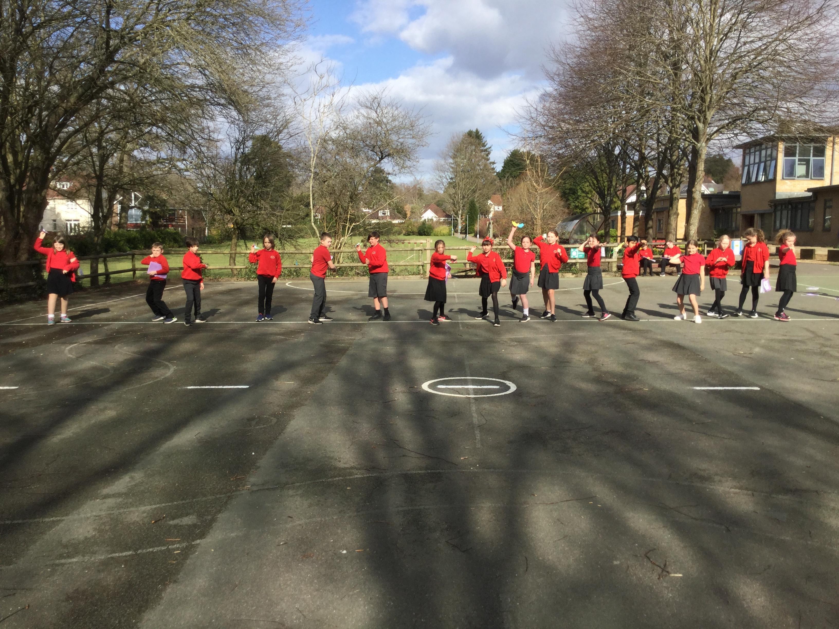Once we had completed and made our wings, we went outside to test fly them and measure how far they travelled. Here are some photographs of our investigations!