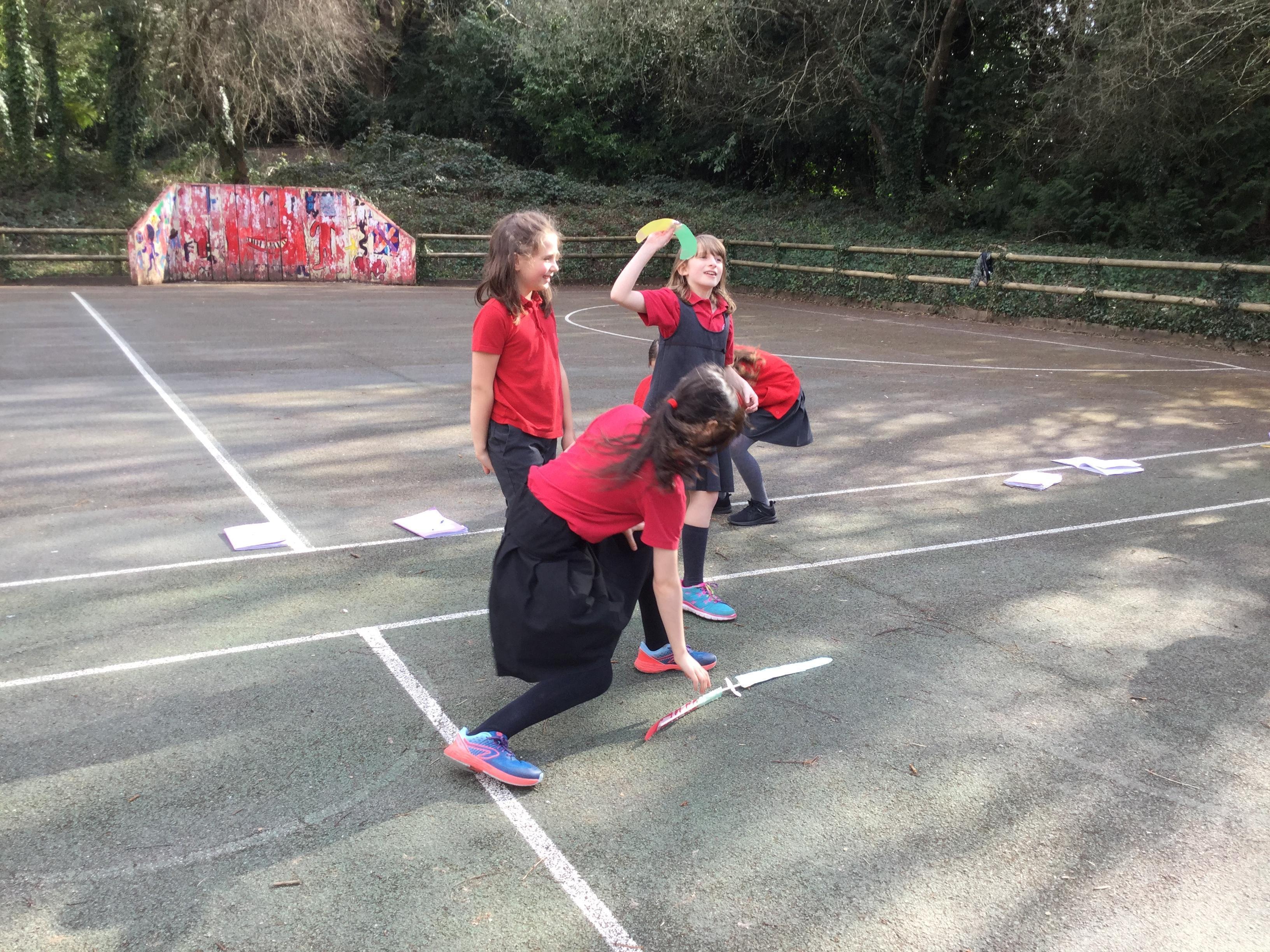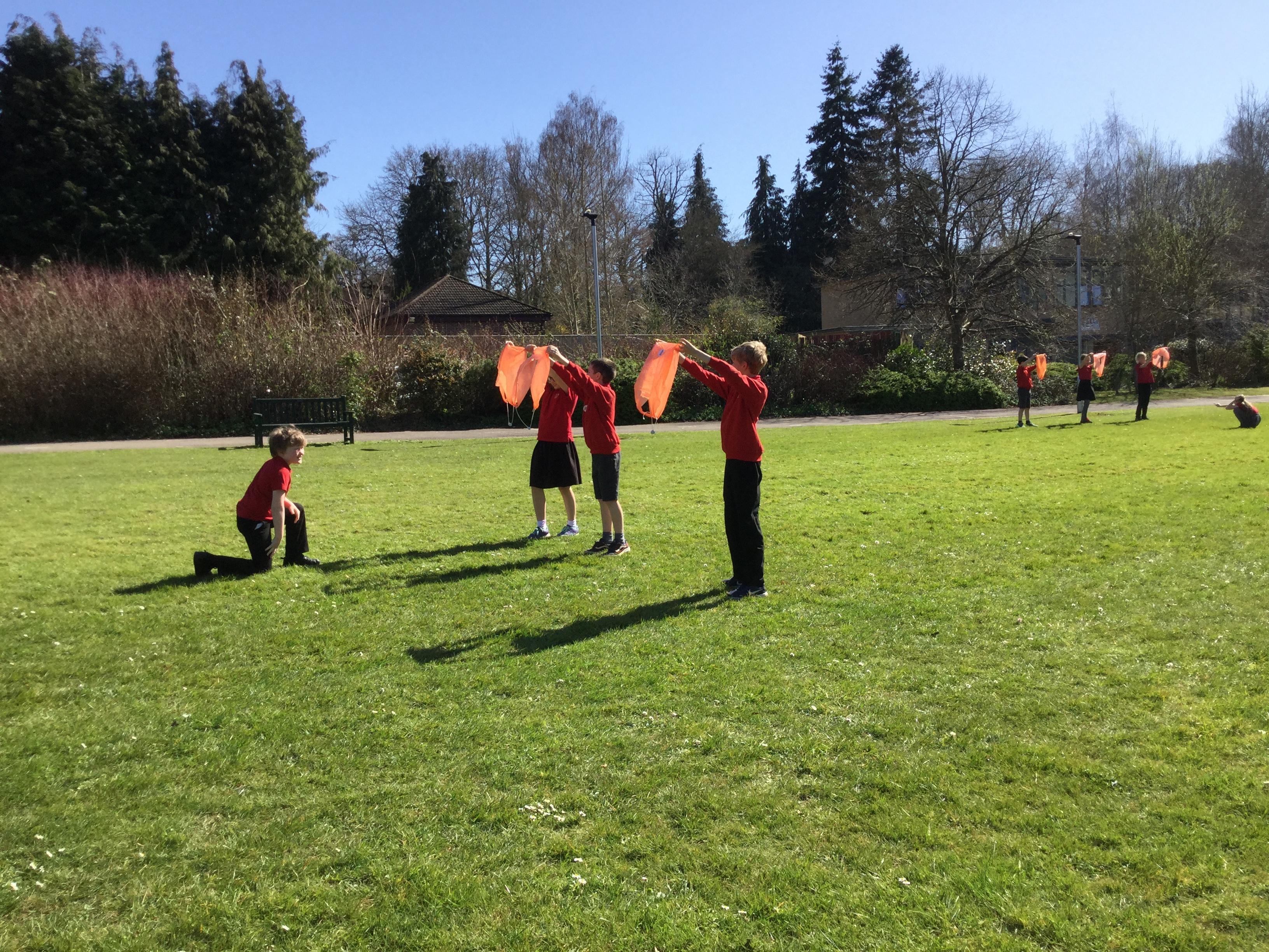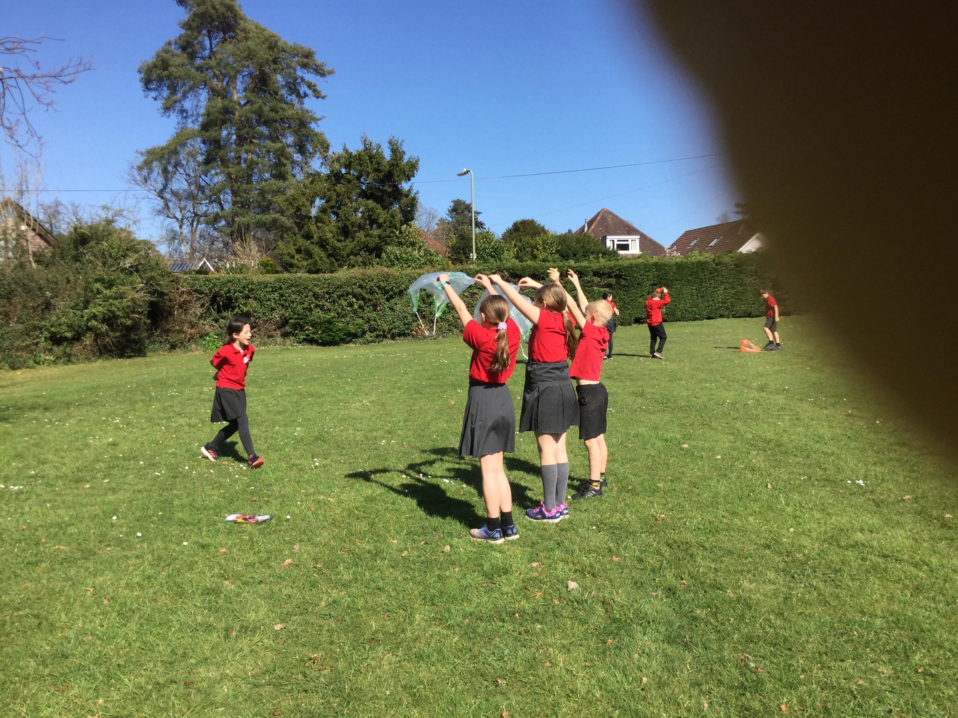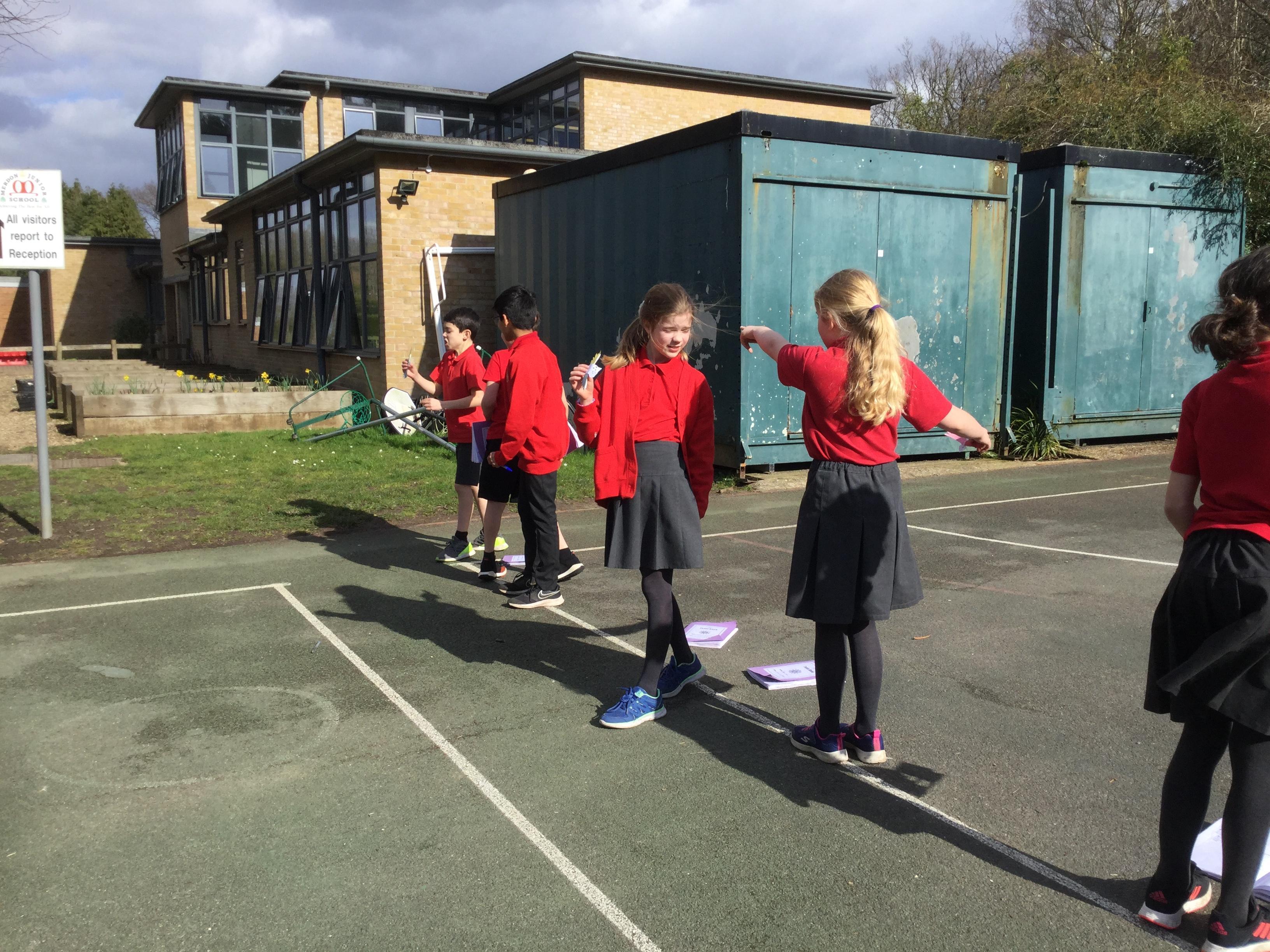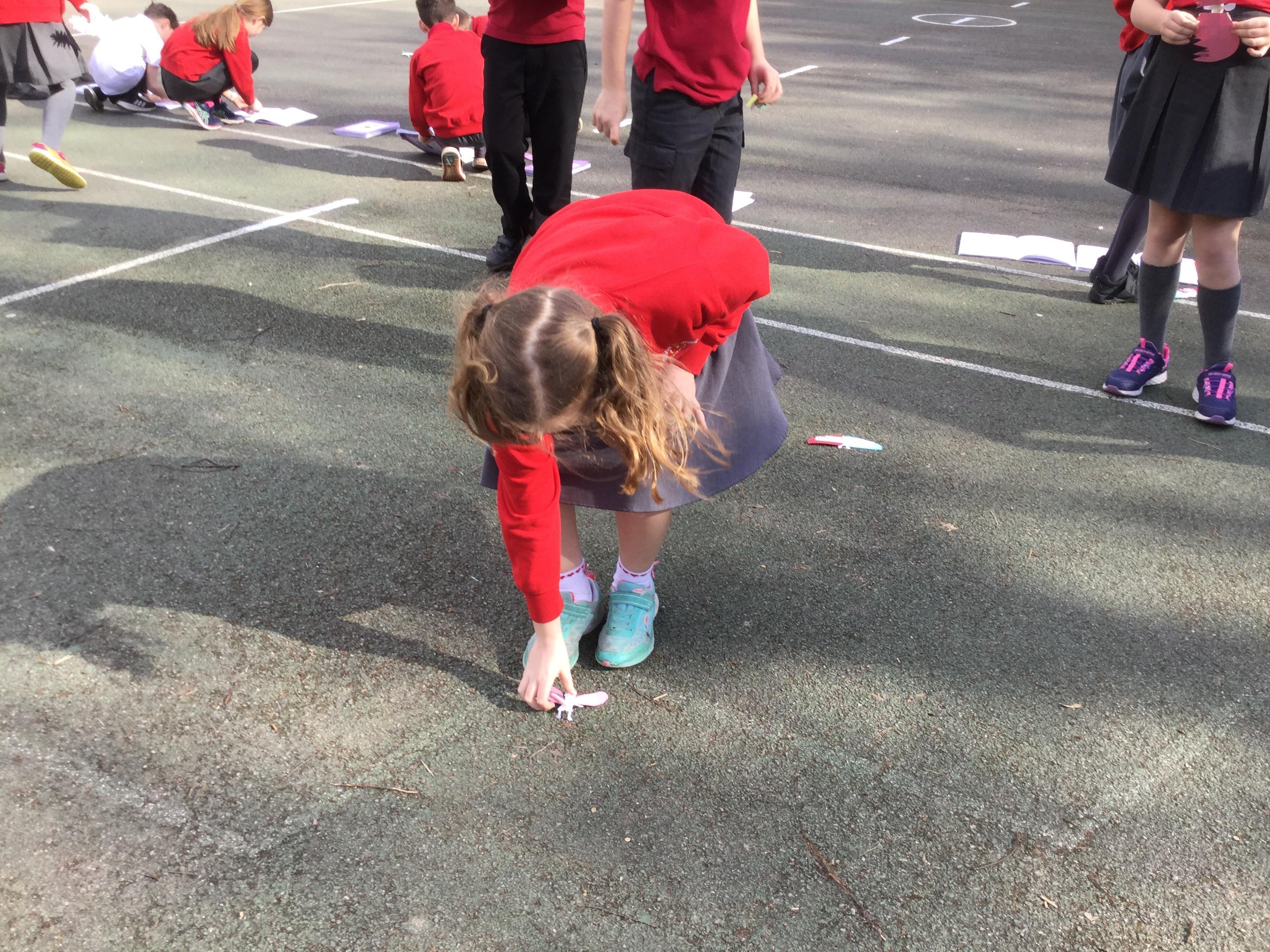 Once we had completed and made our wings, we went outside to test fly them and measure how far they travelled. Here are some photographs of our investigations!