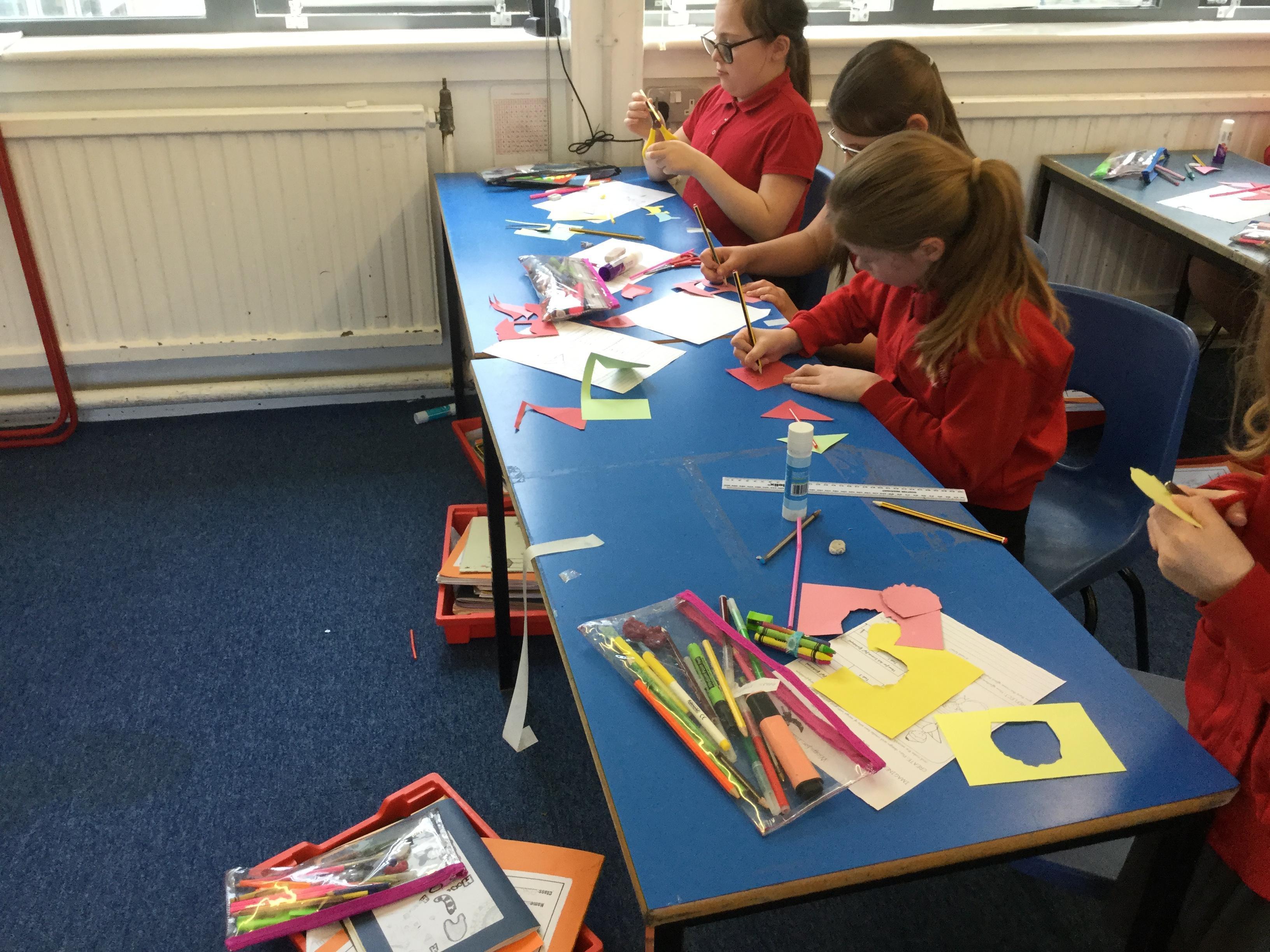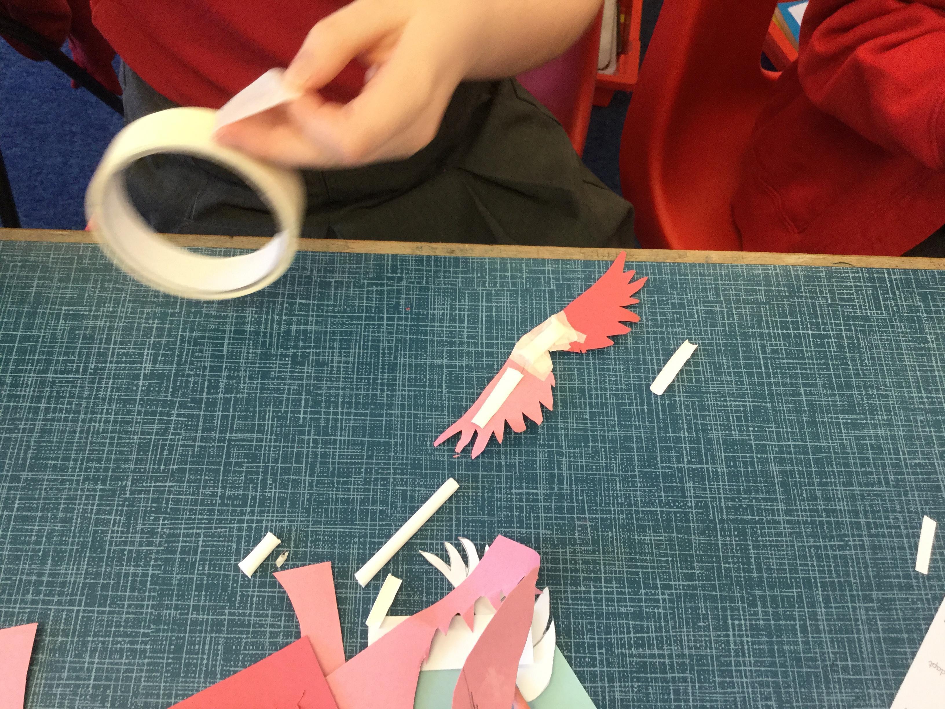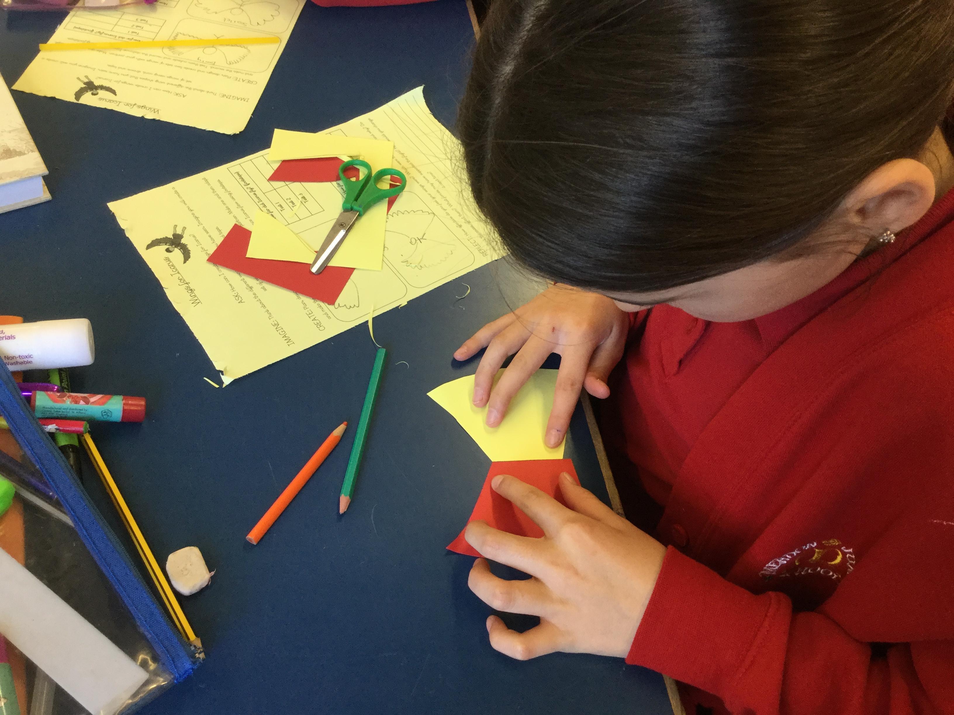 In English today, we read the story of Daedalus and Icarus. Icarus went too close the sun and the wax on his wings melted, resulting in him falling to his death.In pairs, we made pairs of wings using a limited set of resources. We investigated different shapes and designs.