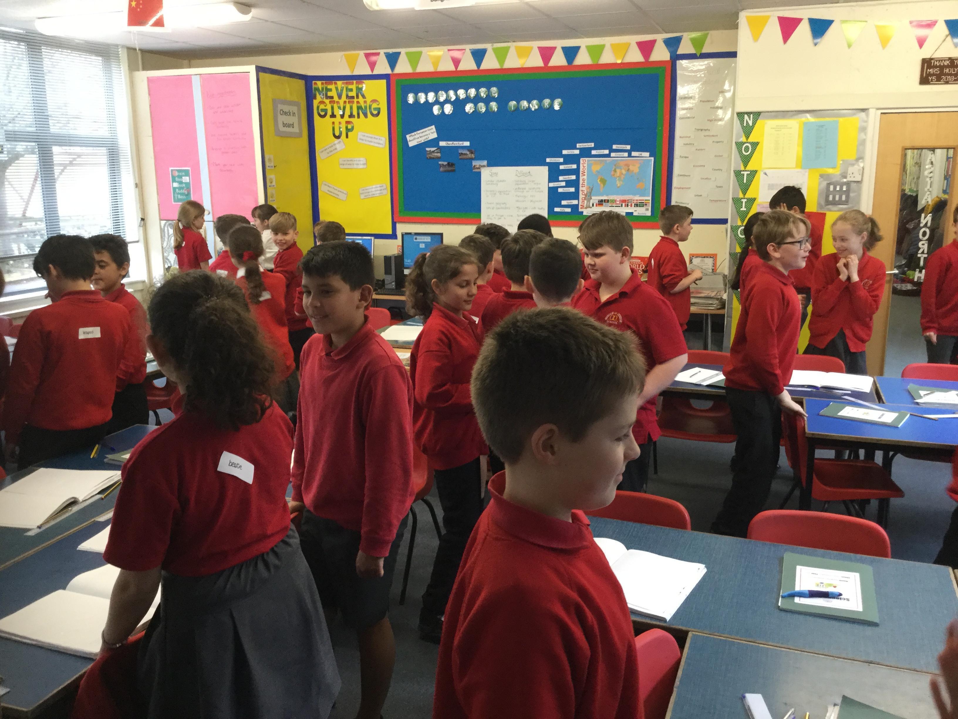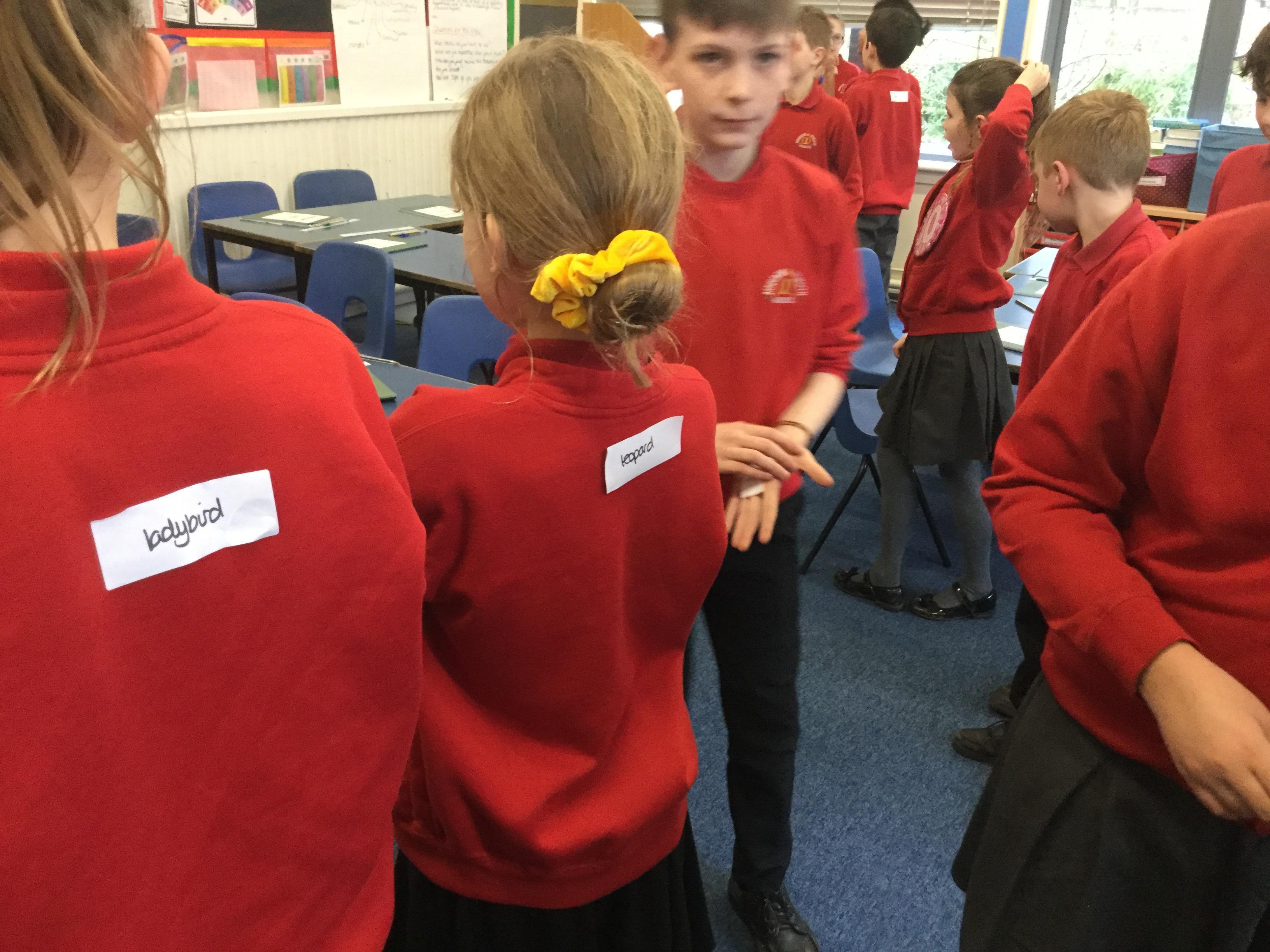 The children were all wearing a sticker with the name of an animal on it. They had to ask each other questions to work out the identity of their animal! The salamander was tricky!! Once they knew, they had to sort into four groups: mammals, birds, amphibians and insects. Using books and iPads they researched the characteristics of their group, before presenting their findings tot her set of the class.