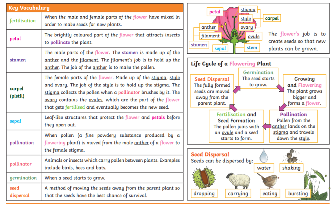 Label the parts of the flower and their functions - https://www.bbc.co.uk/teach/class-clips-video/science-ks1-ks2-ivys-plant-workshop-the-anatomy-of-the-flower/zjmhkmn