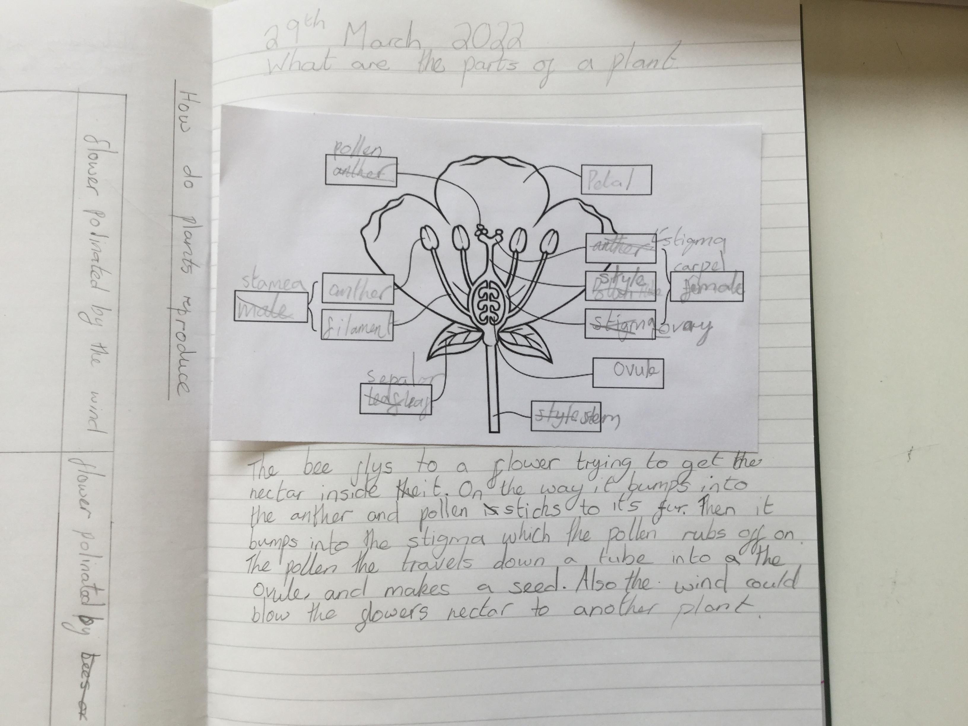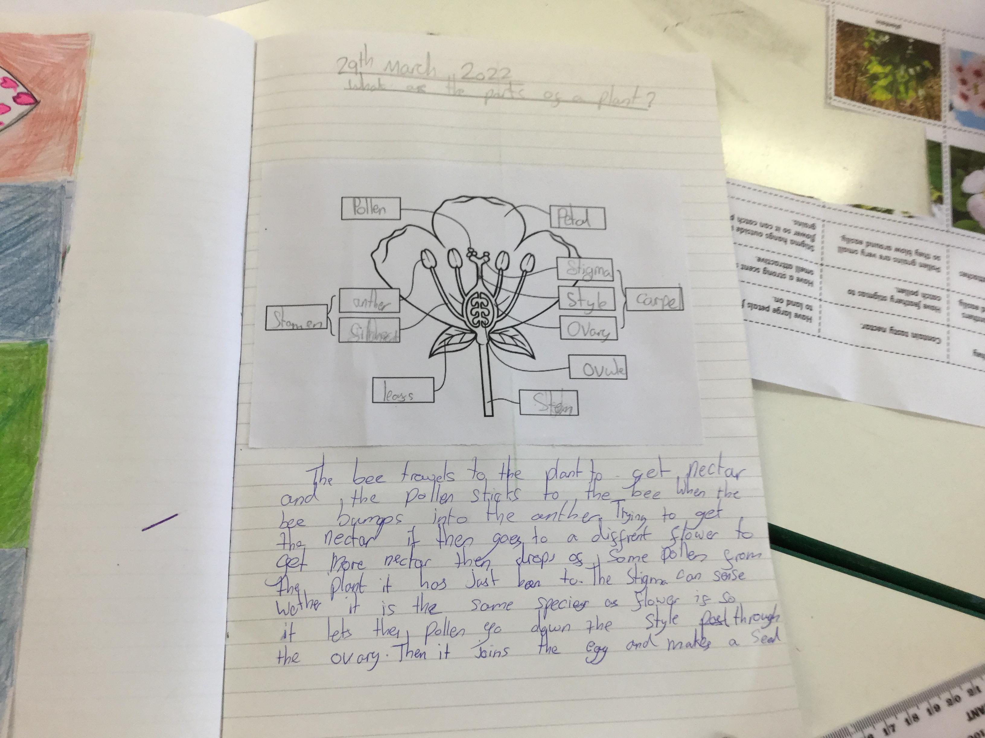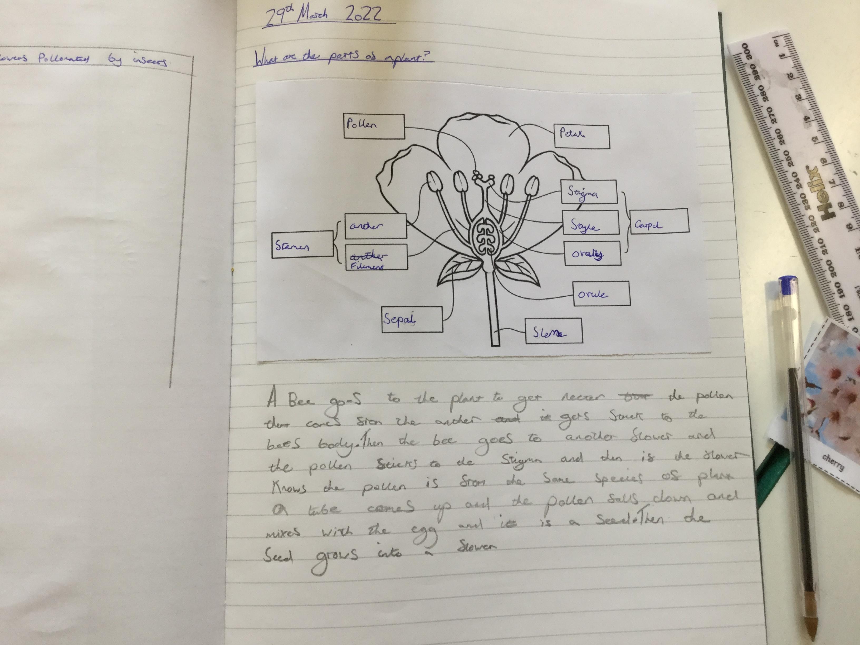 Following this we labelled a diagram of a flower and then found out through other video research how flowers reproduce to make more flowers so that their lifecycle and continue.