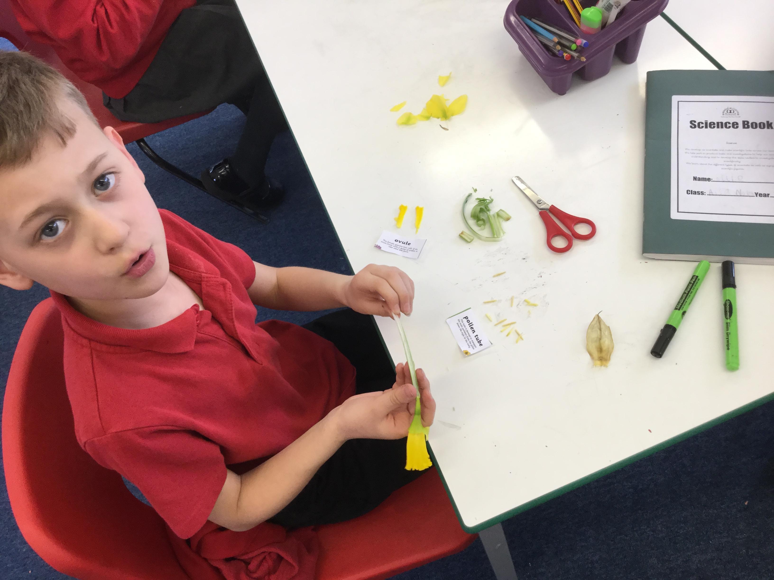 We started today’s lesson by dissecting a daffodil and tried to use our knowledge and clues to label the different parts. Then we watched a video that revealed the answers and we adapted our labels accordingly!