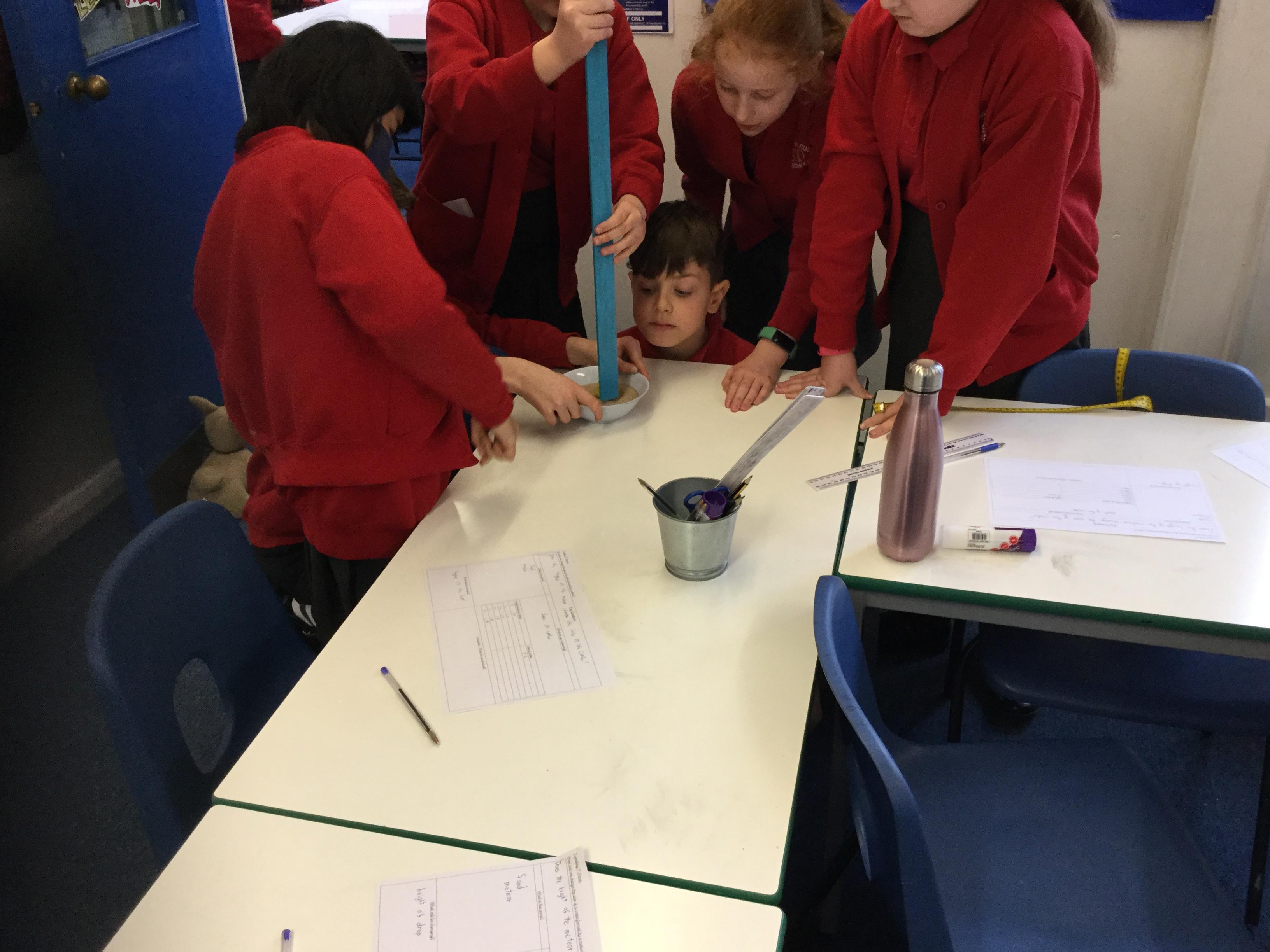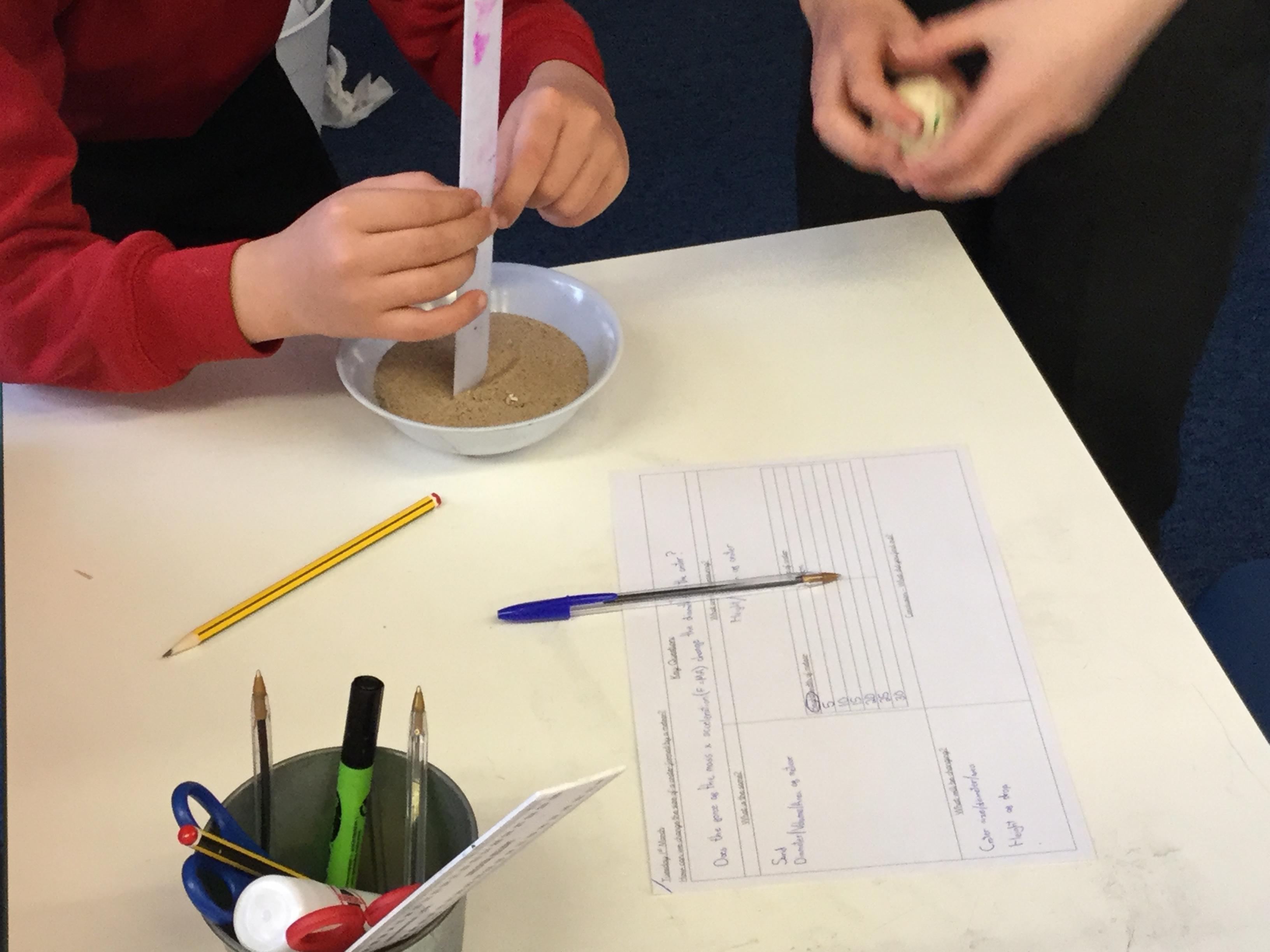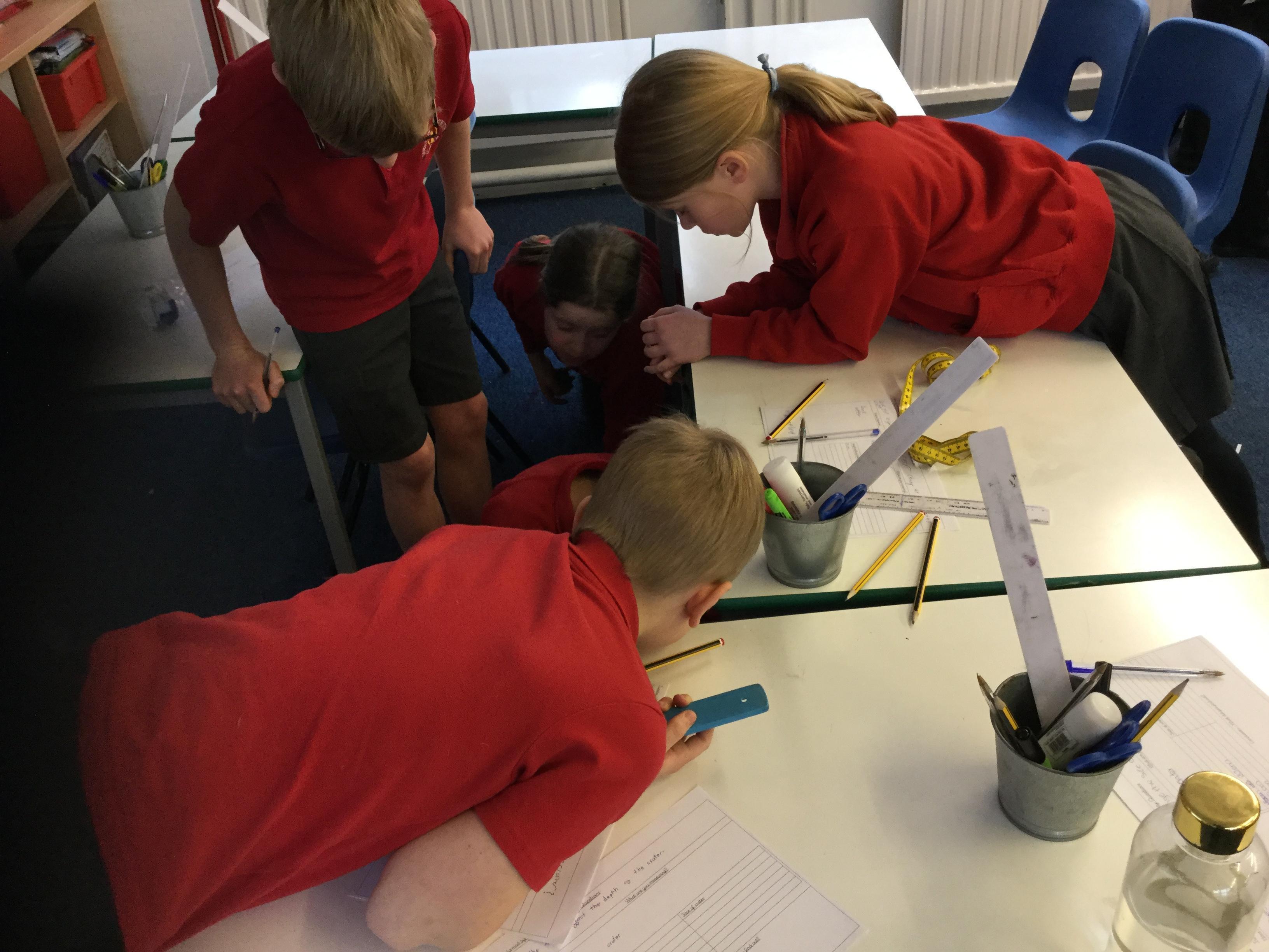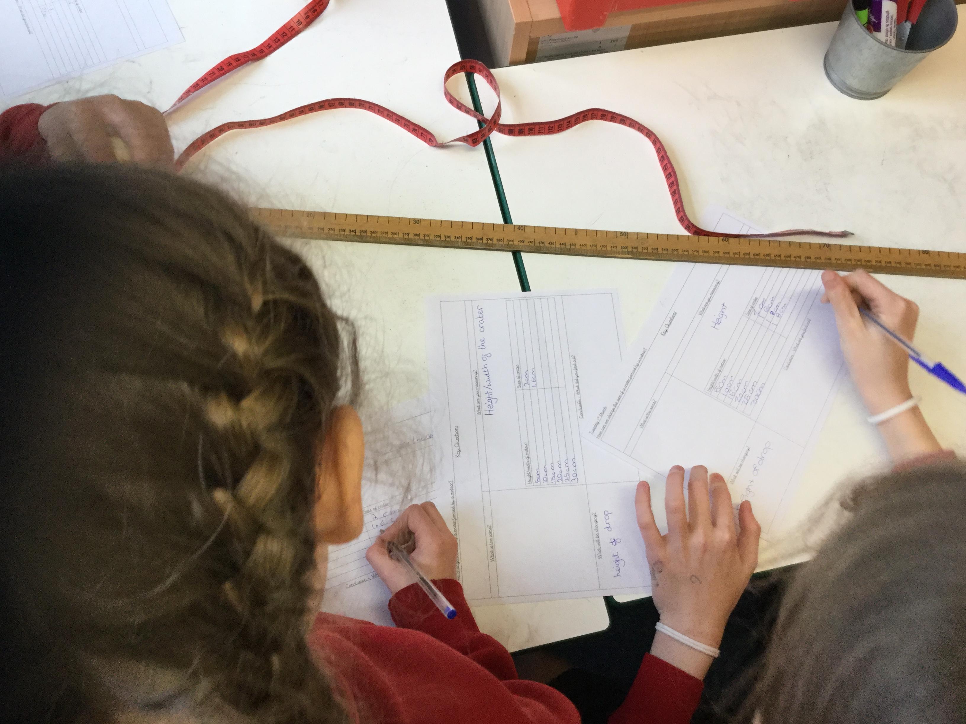The children had to decide whether to change the size of the meteor or the height it was dropped from. They then had to measure and record their results.