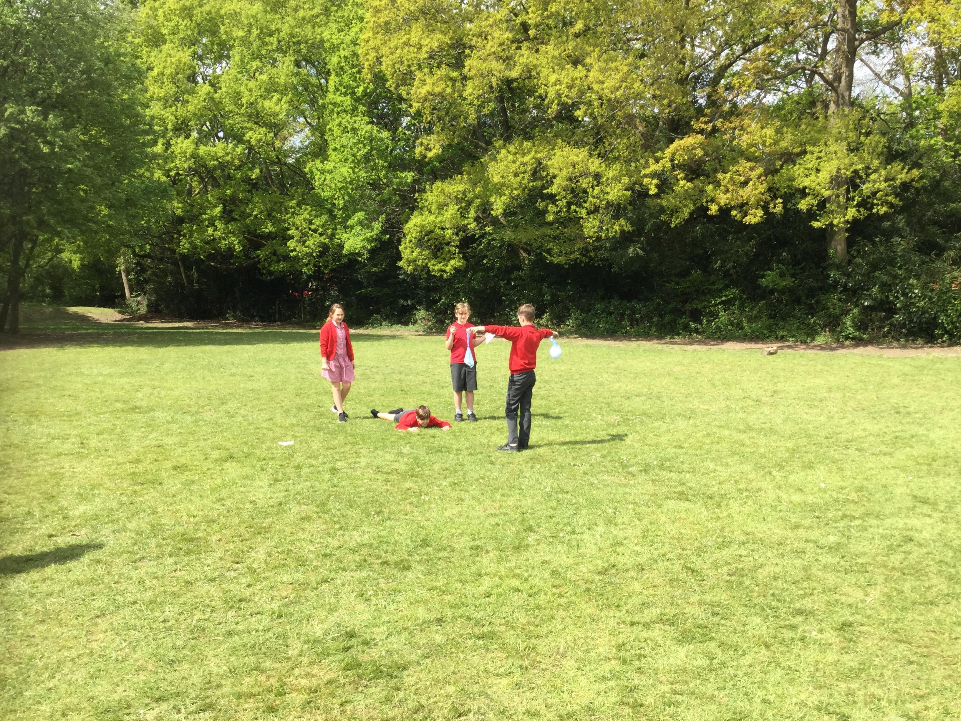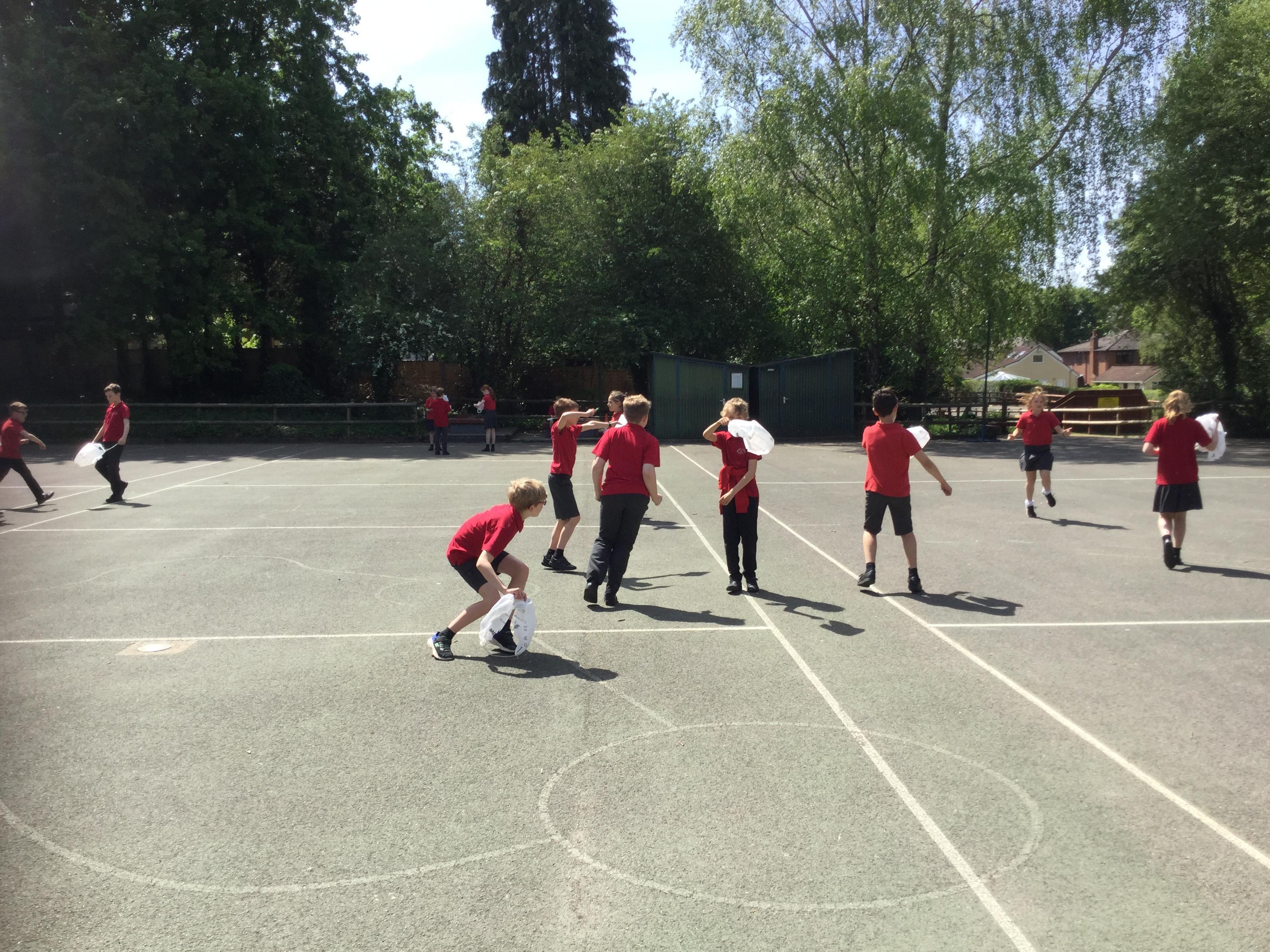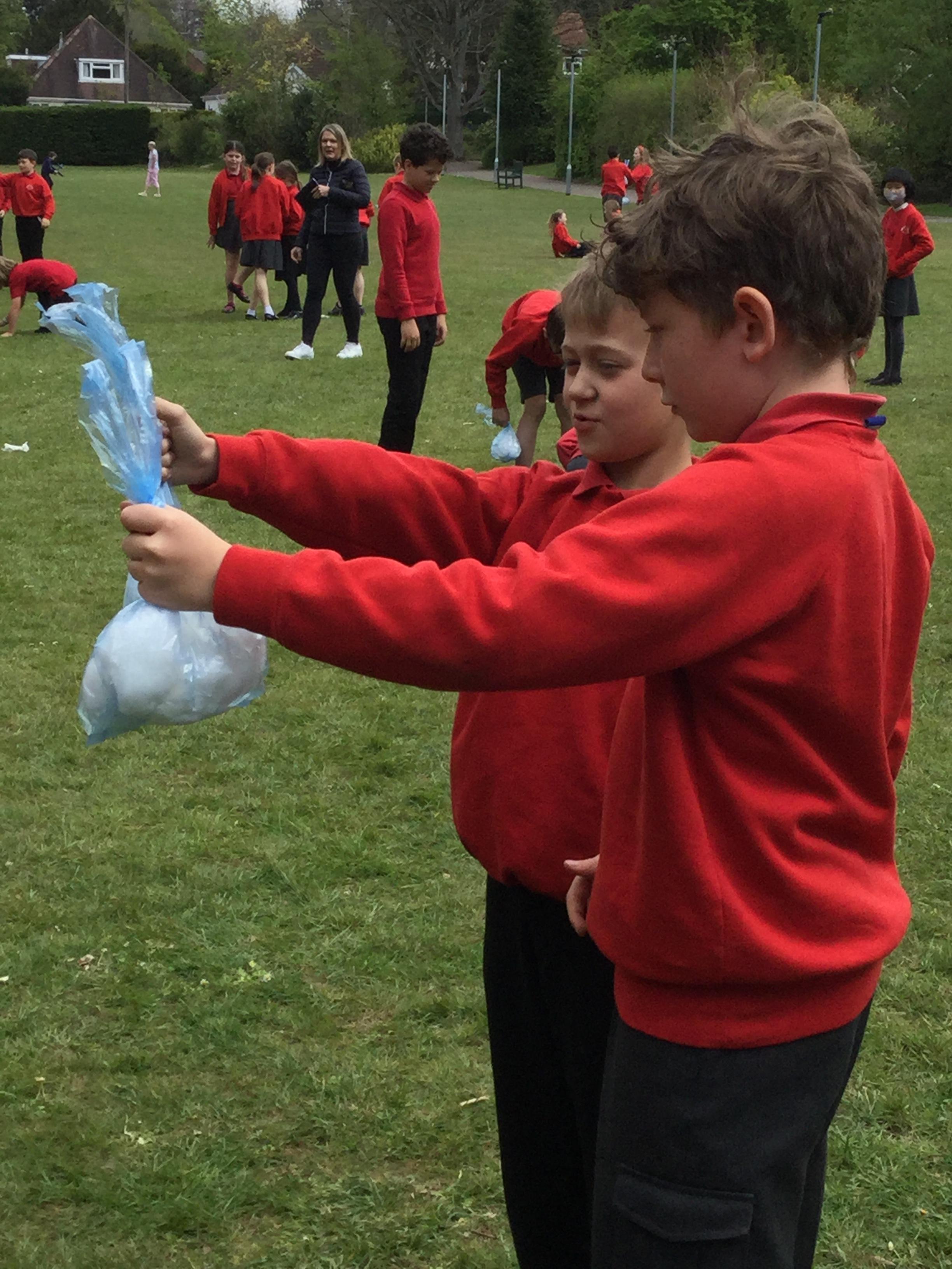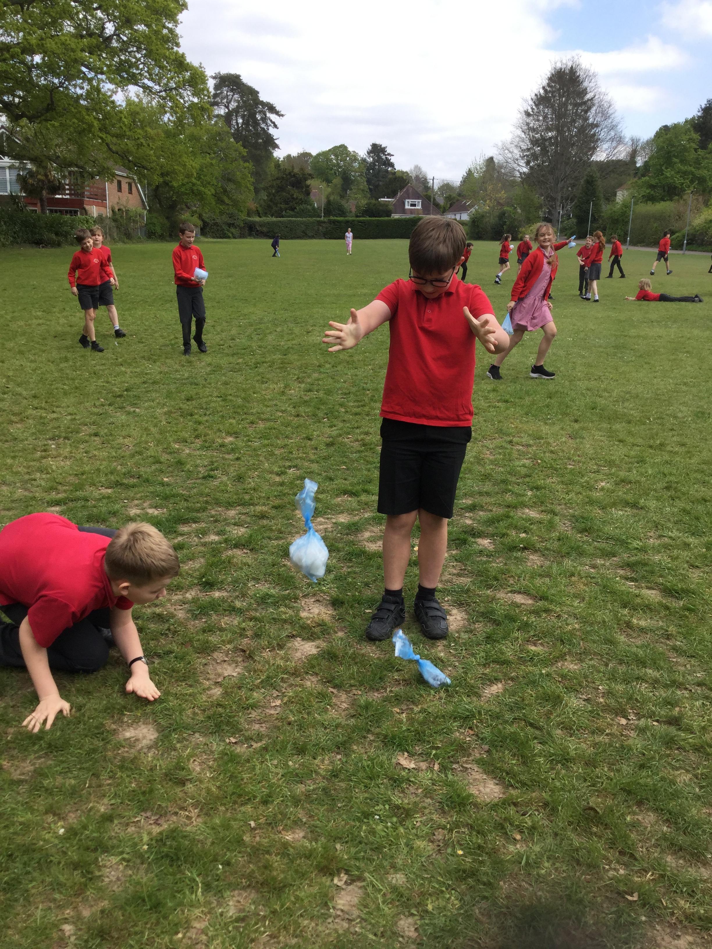 Today we explored air resistance and how it can slow moving objects.  We investigated whether the size of a parachute would make a difference to the amount of time it stayed in the air.  Plastic bags were used to make three different sized parachutes then we headed outside to observe what happened when they were dropped!