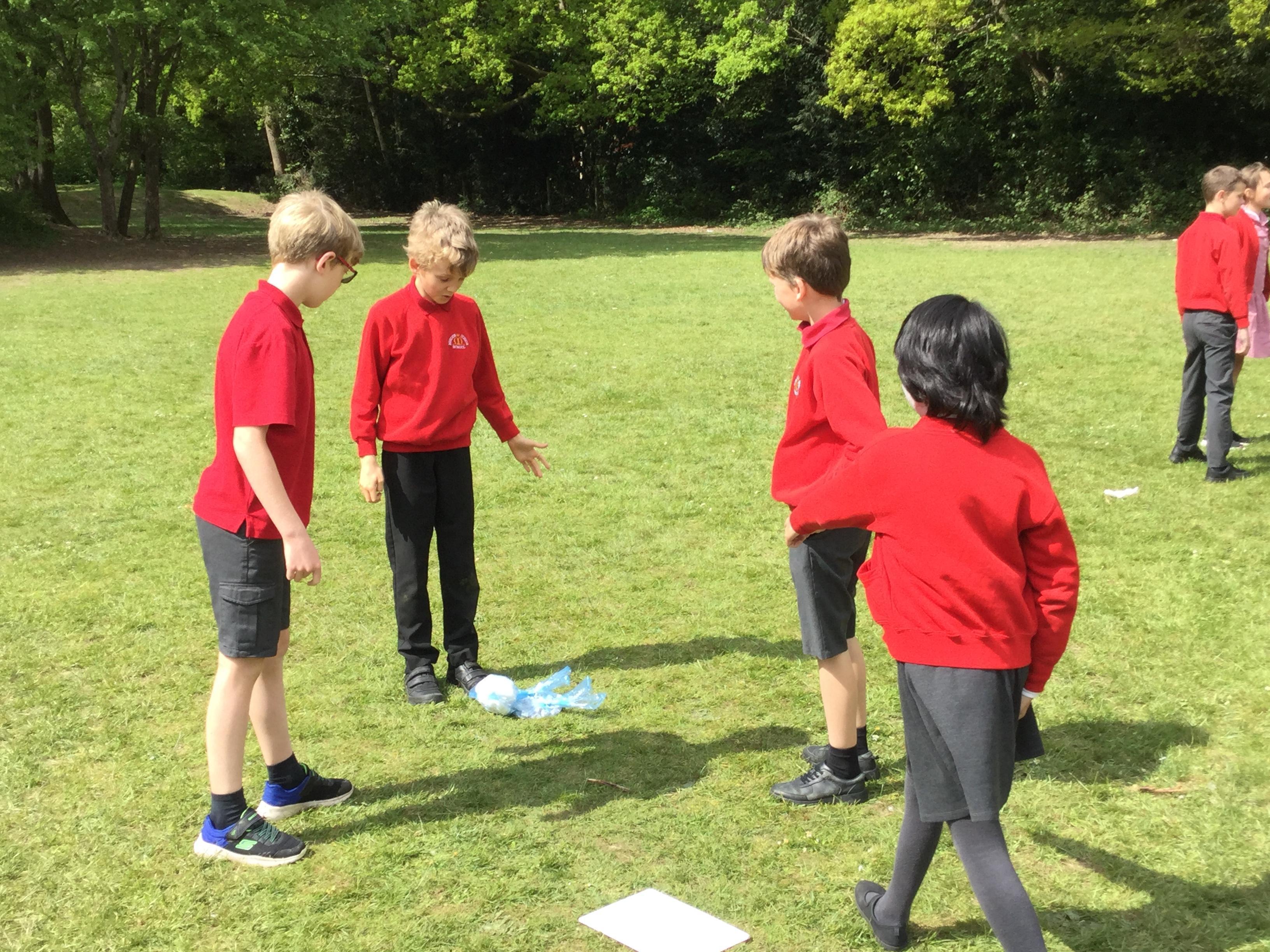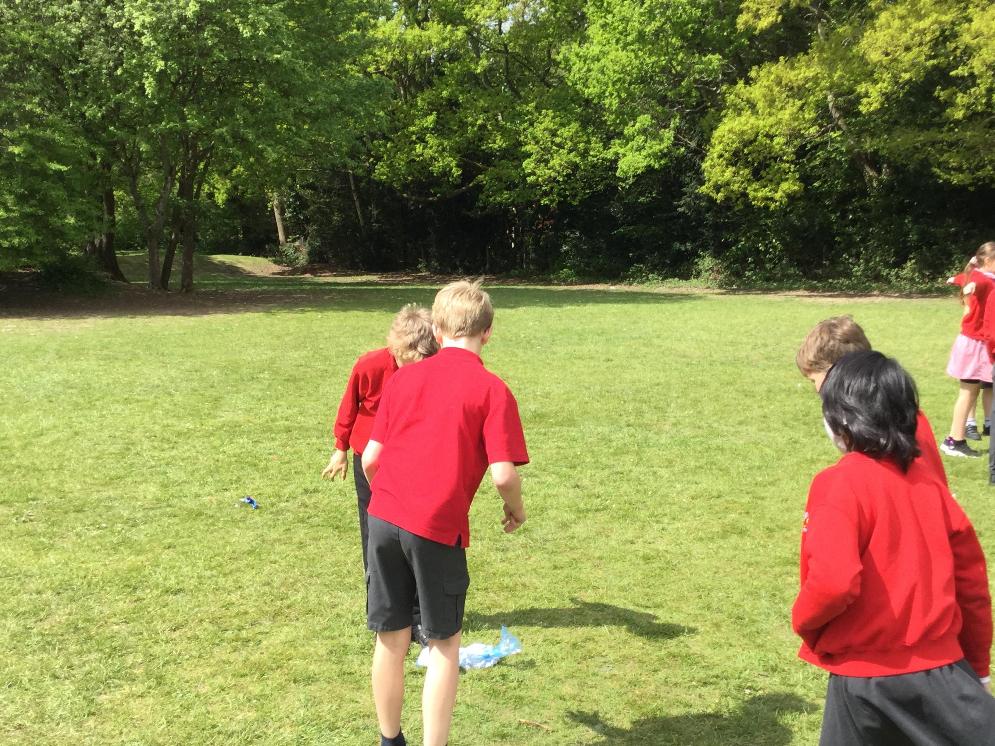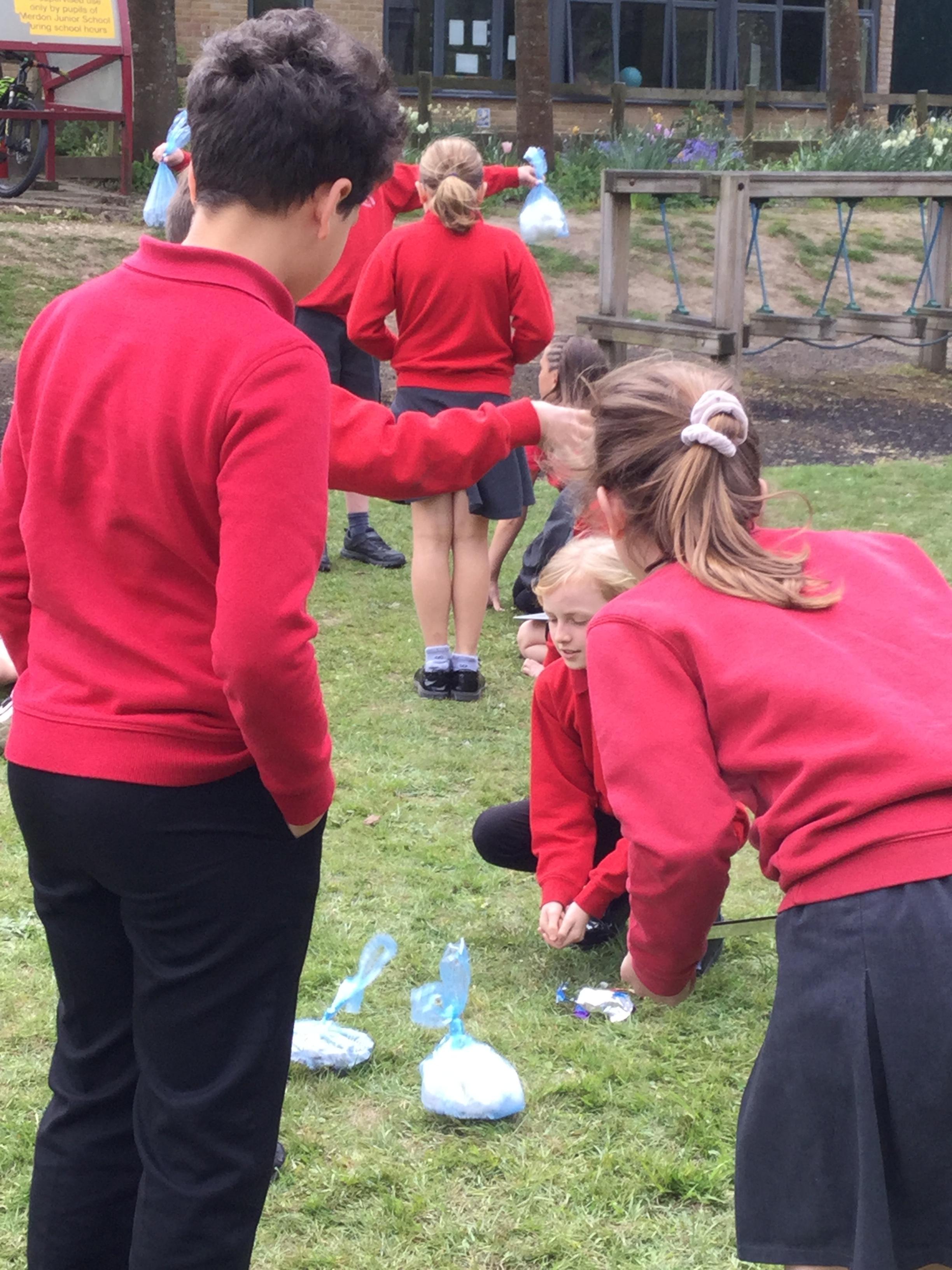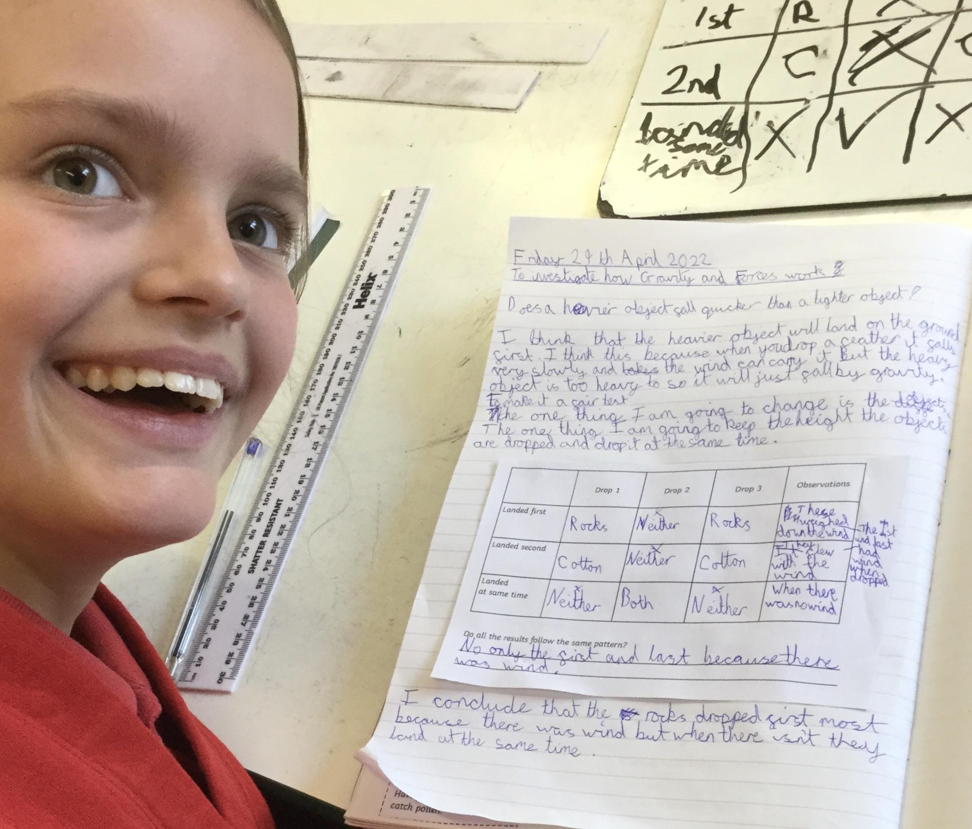 Using bags of stones and bags of cotton wool, the children carried out a fair test to see if they could answer the question.  Our results were mixed!  We discovered that gravity has the same pull toward the centre of the earth regardless of weight, however in some of our investigations the stones hit the ground first.  We concluded that our results were changed by the wind, which we could not control.