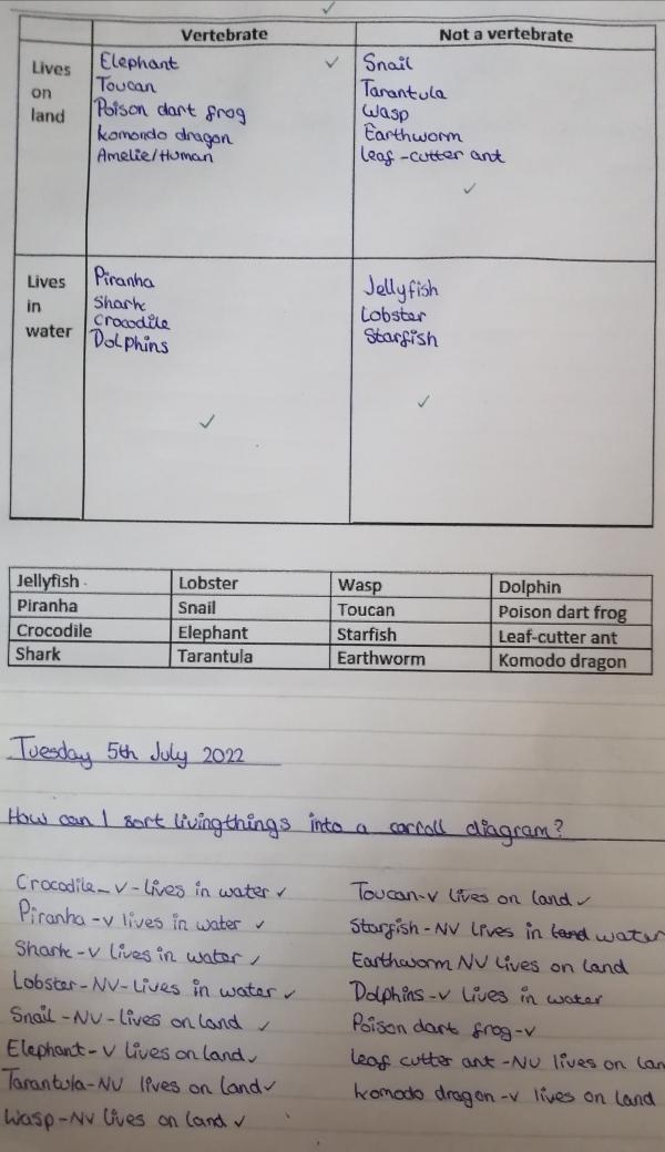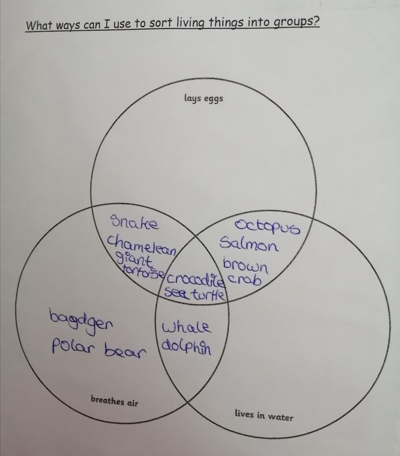 We looked at features of living things and progressed to sorting these into a triple venn diagram using different sorting criteria.