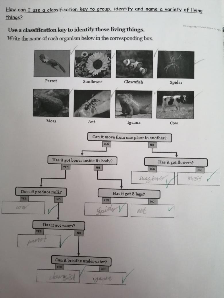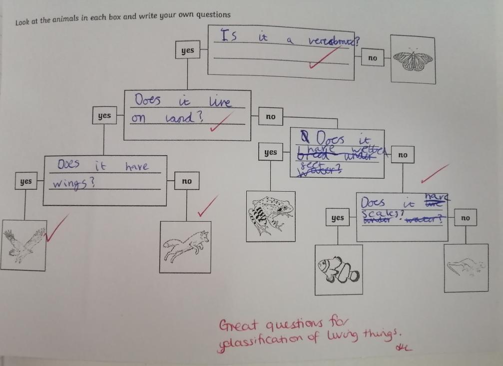 Next, we looked at classification keys and experimented with different questions and then completed one. Some of us even designed our own.  It was quite tricky but we persevered!