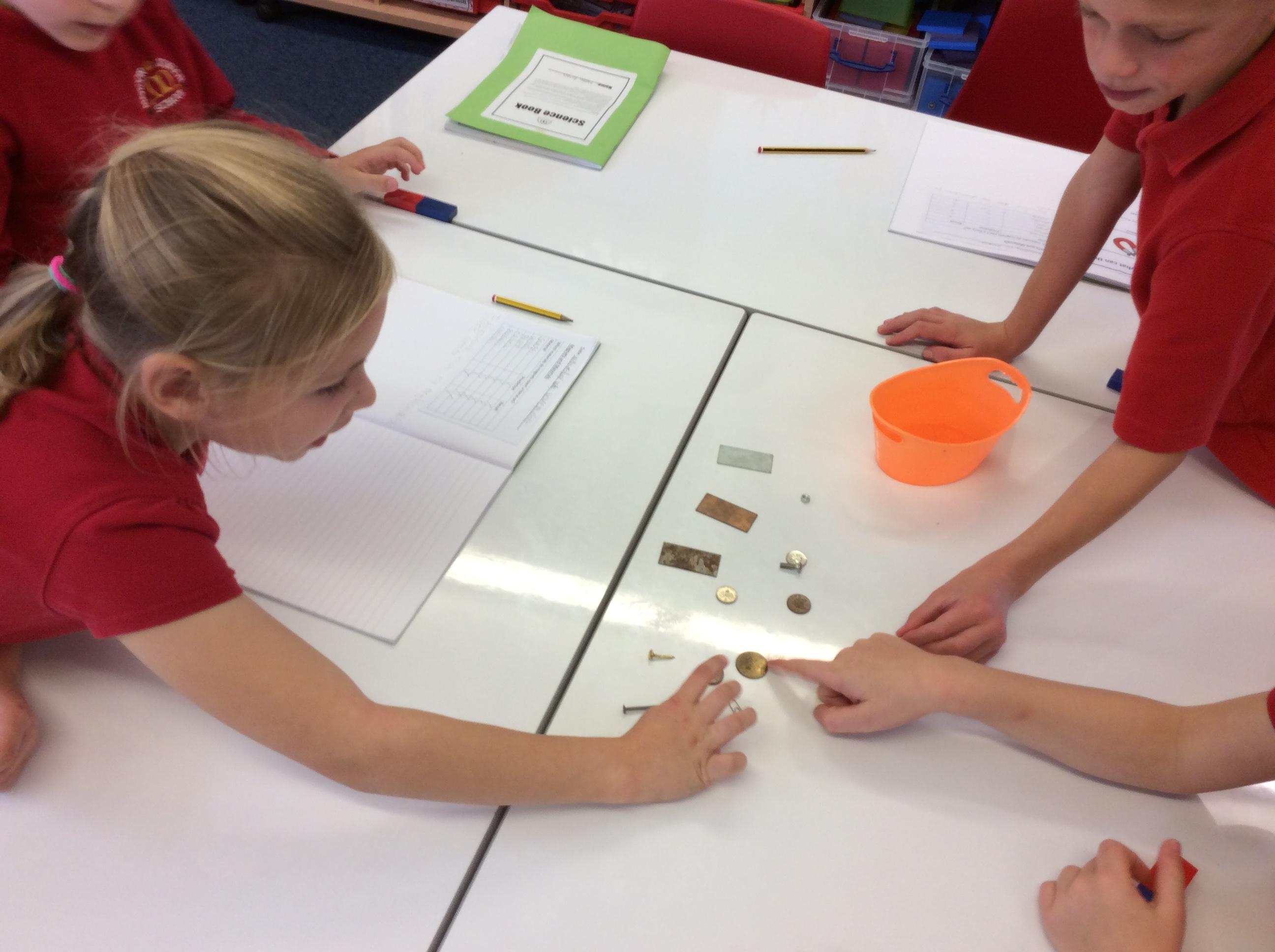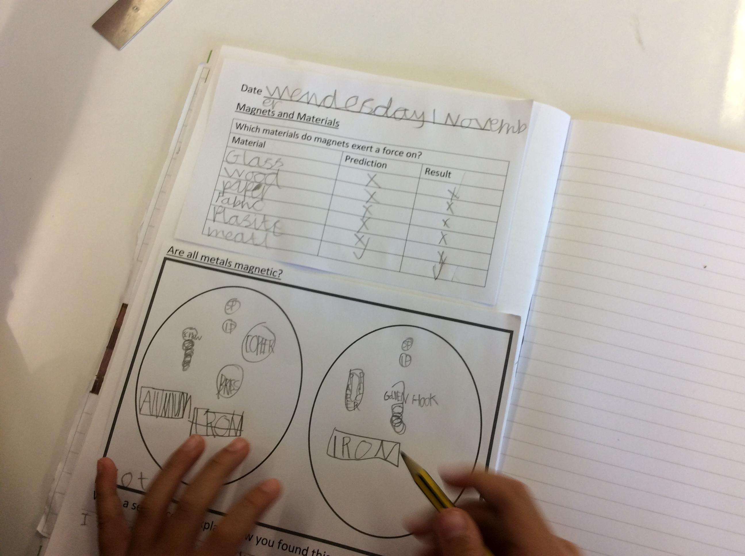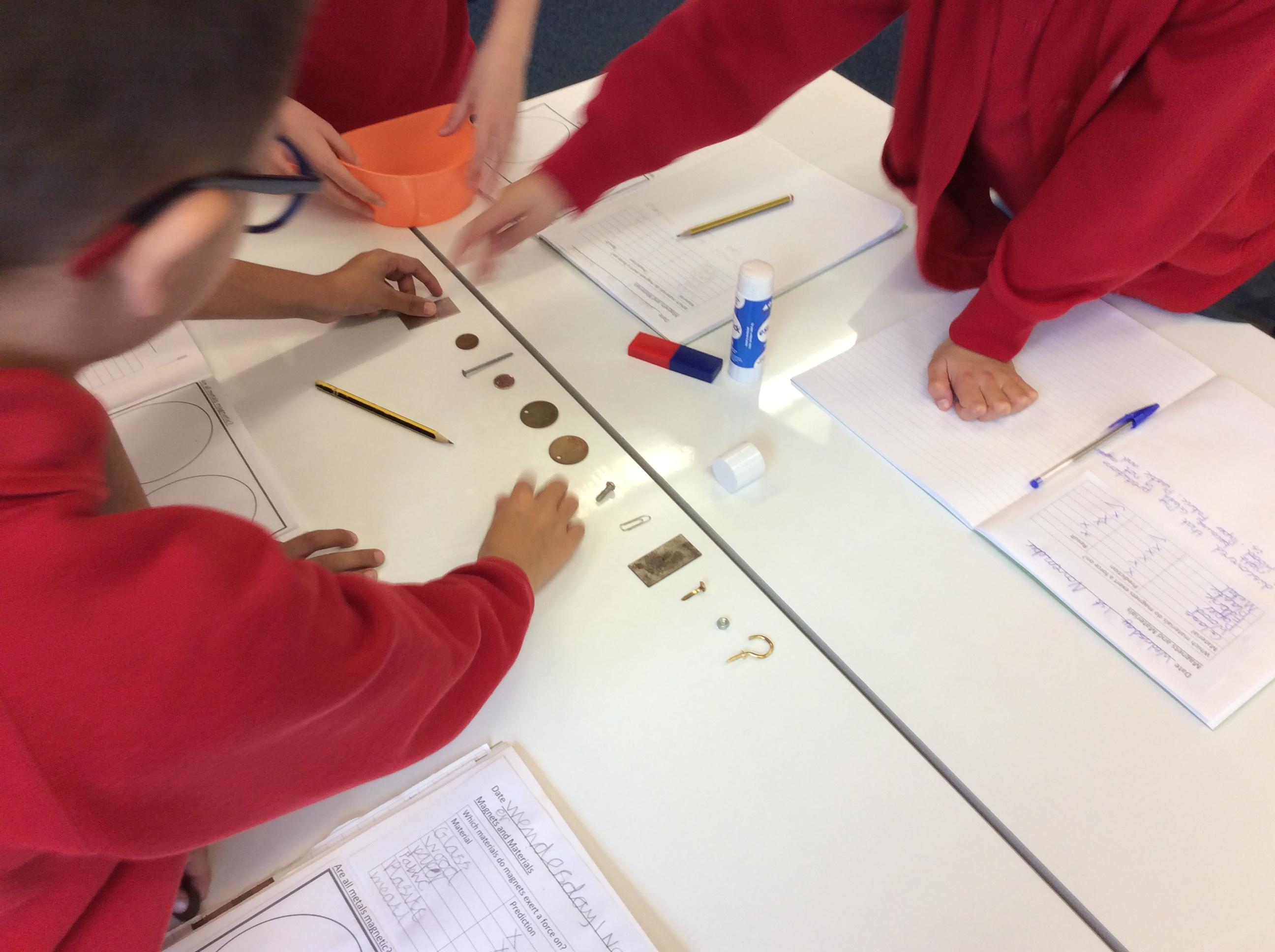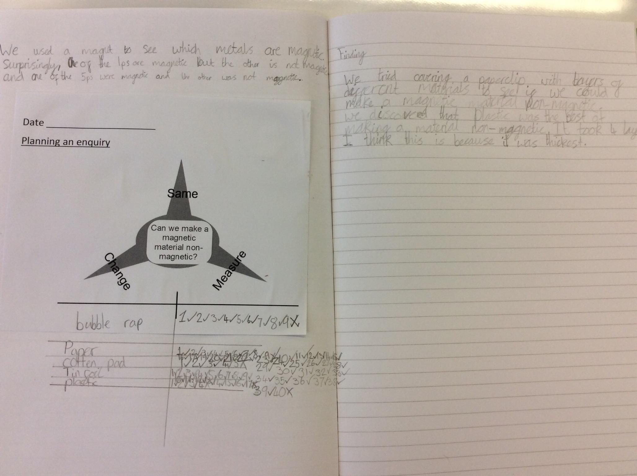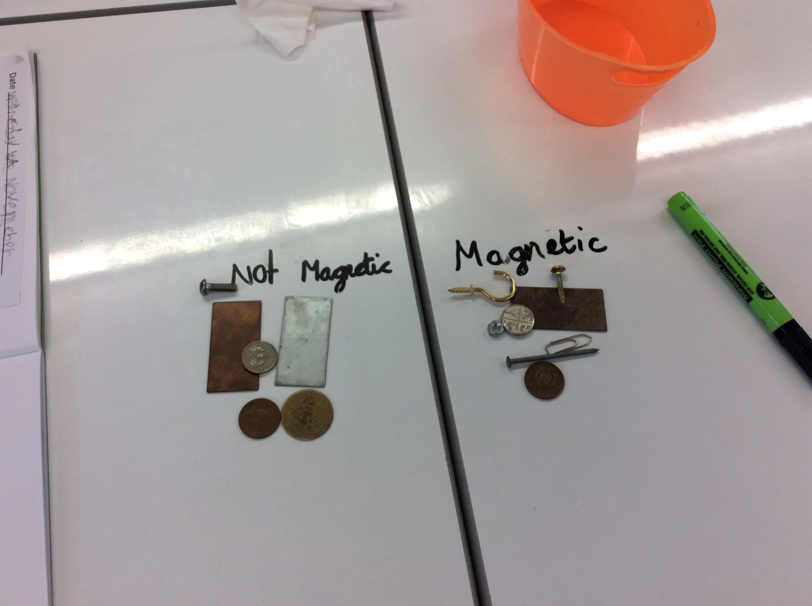 This week, we have been working on our enquiry skills.  We used our planning map and discussed as a class what we were going to do.  We were trying to find out which of a selection of materials would be best at stopping a paper clip being attracted to a magnet.