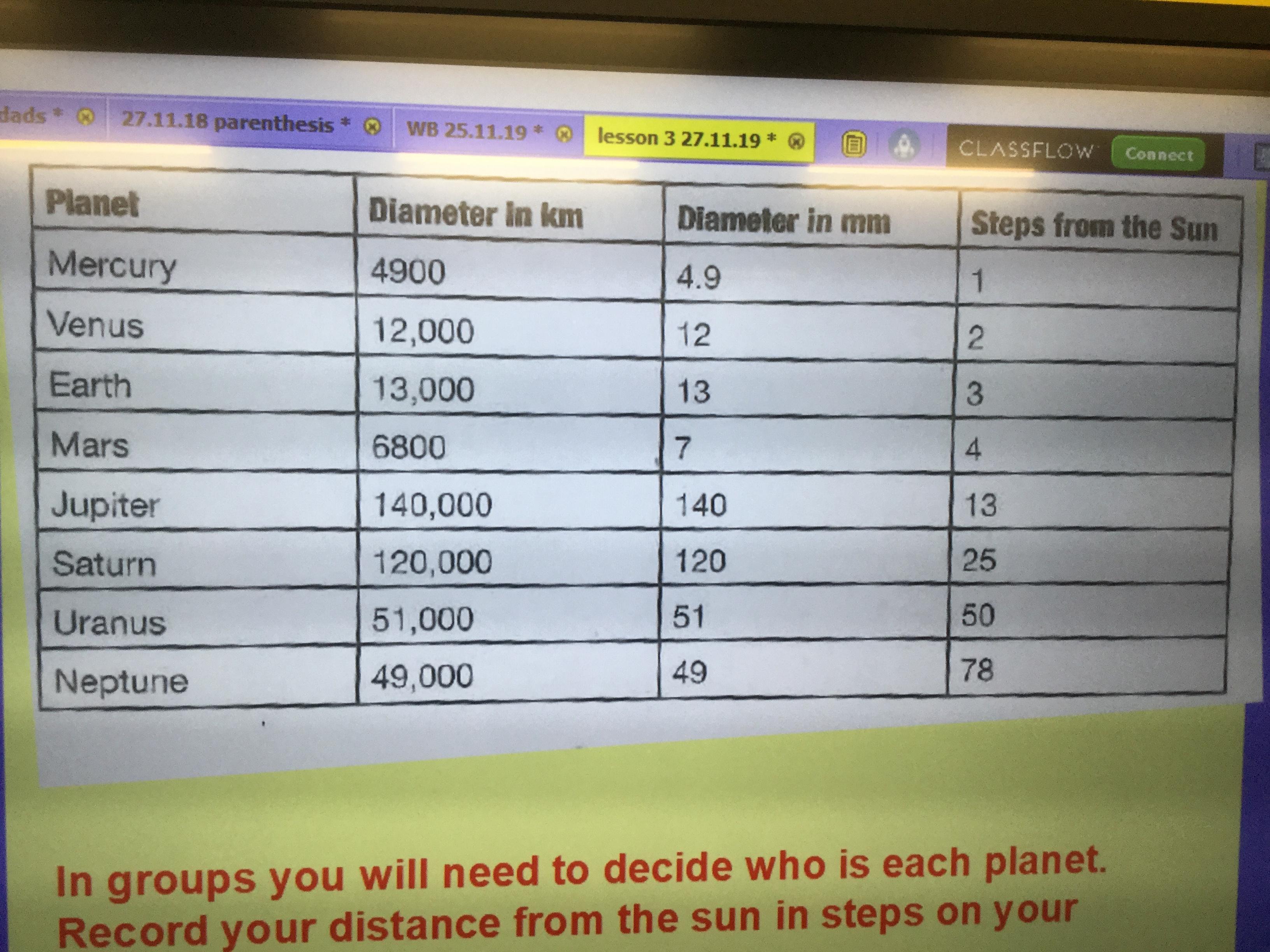 To develop our knowledge of the solar system, we went outside to show a representation of the distances between the planets and how they orbit the sun.