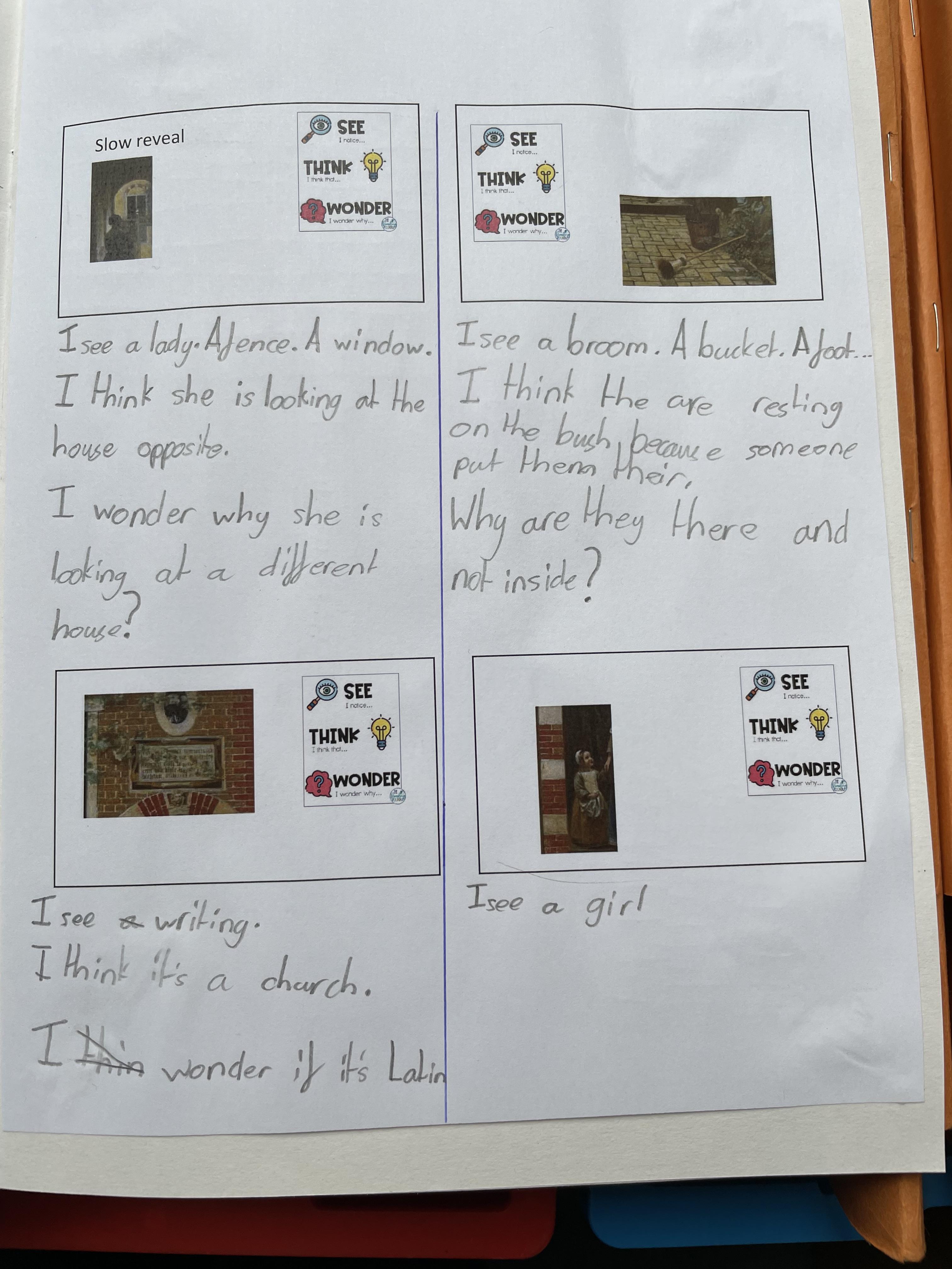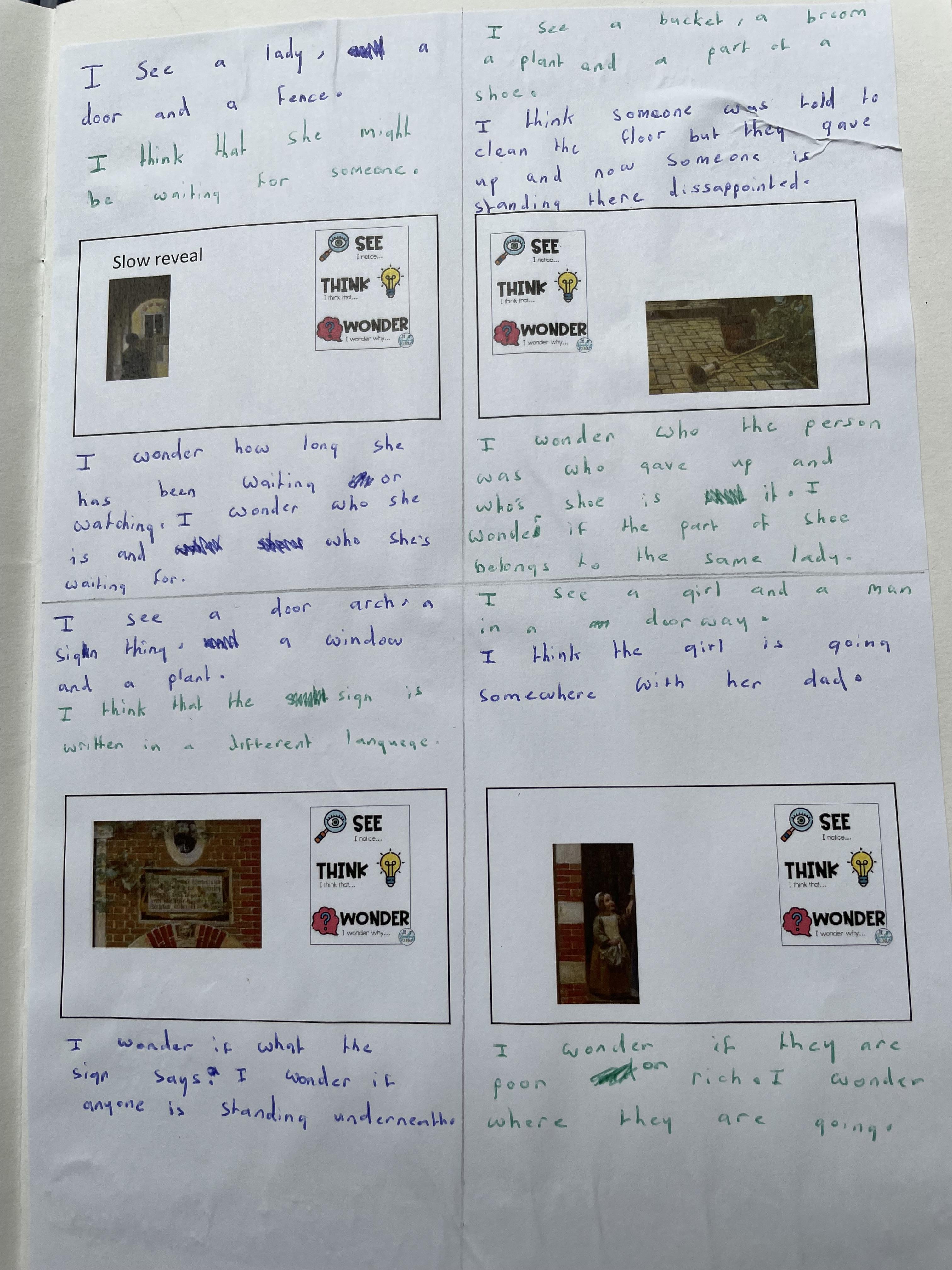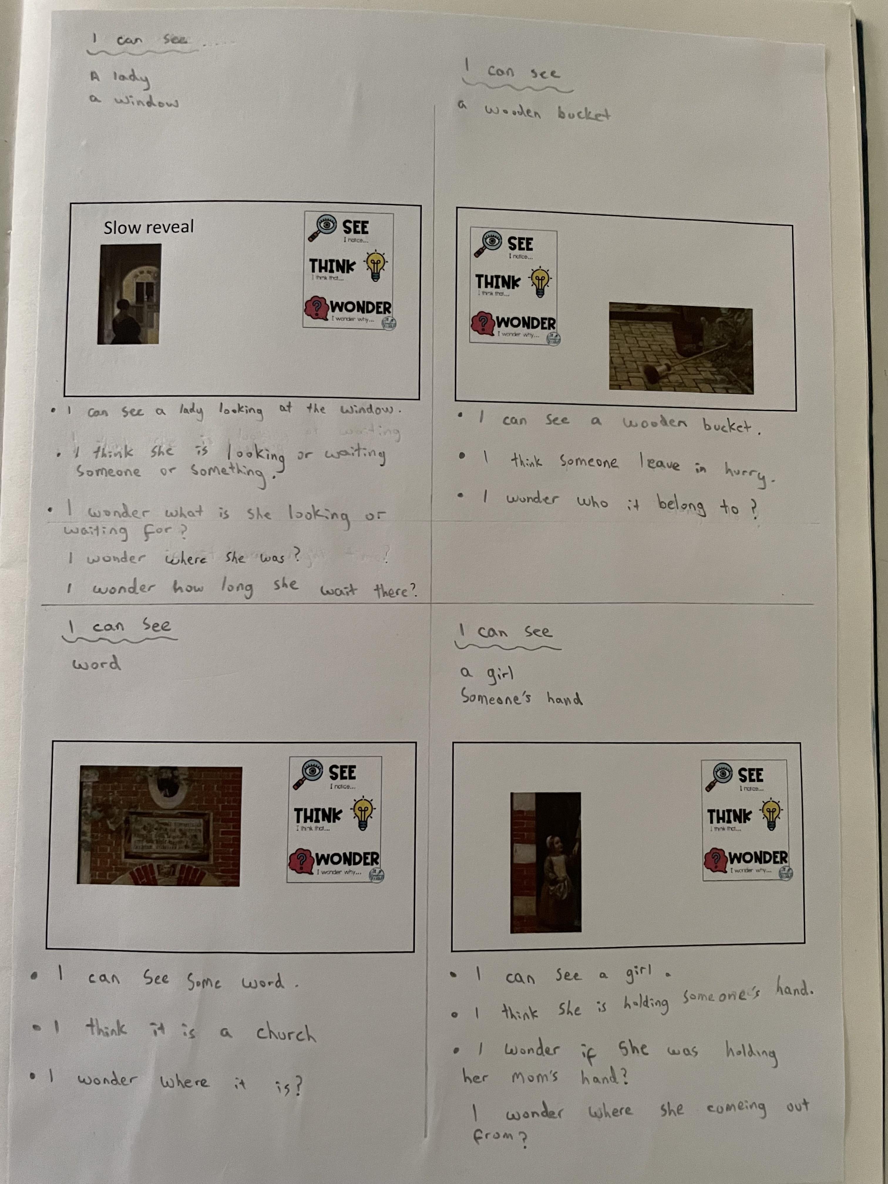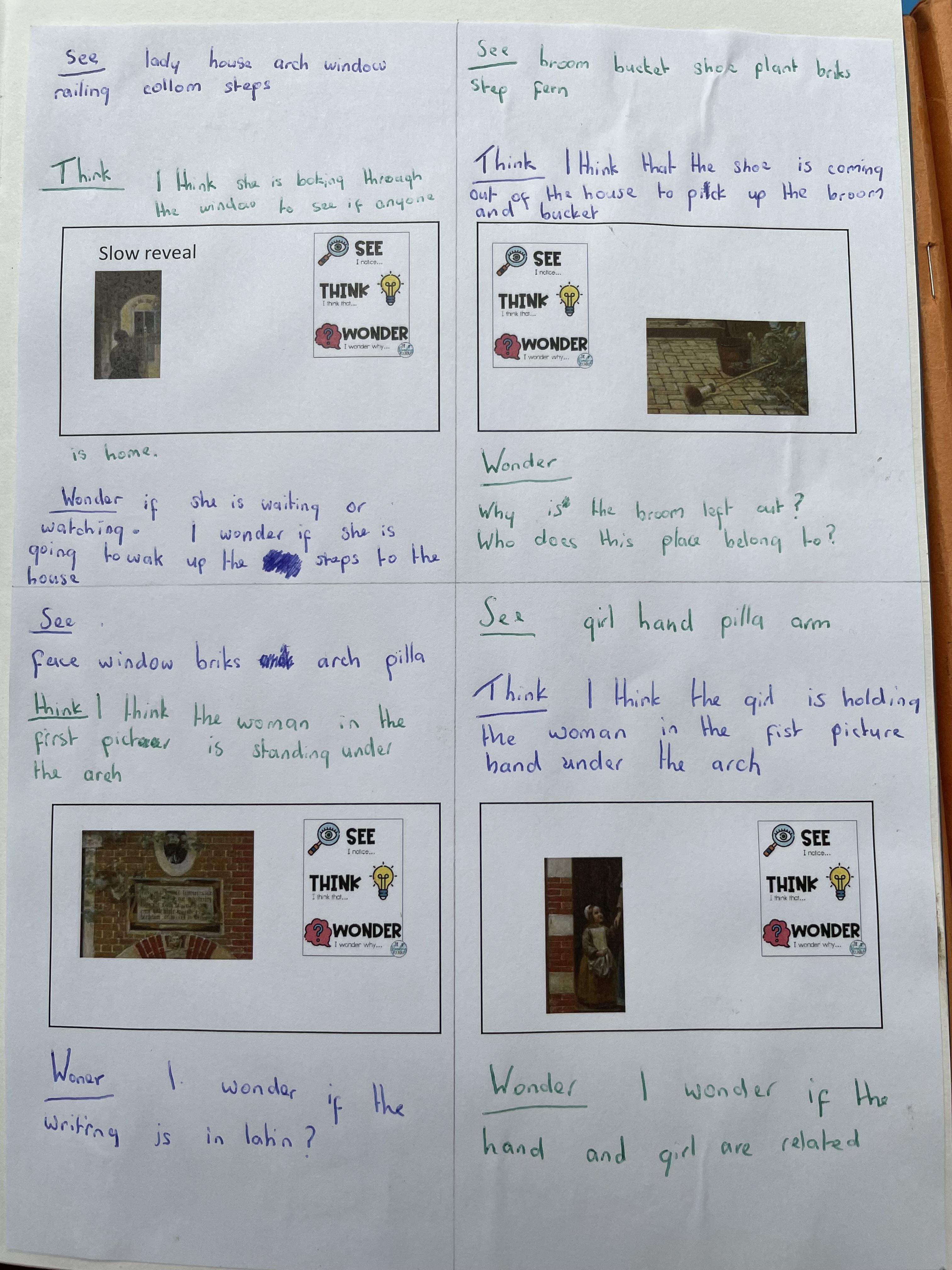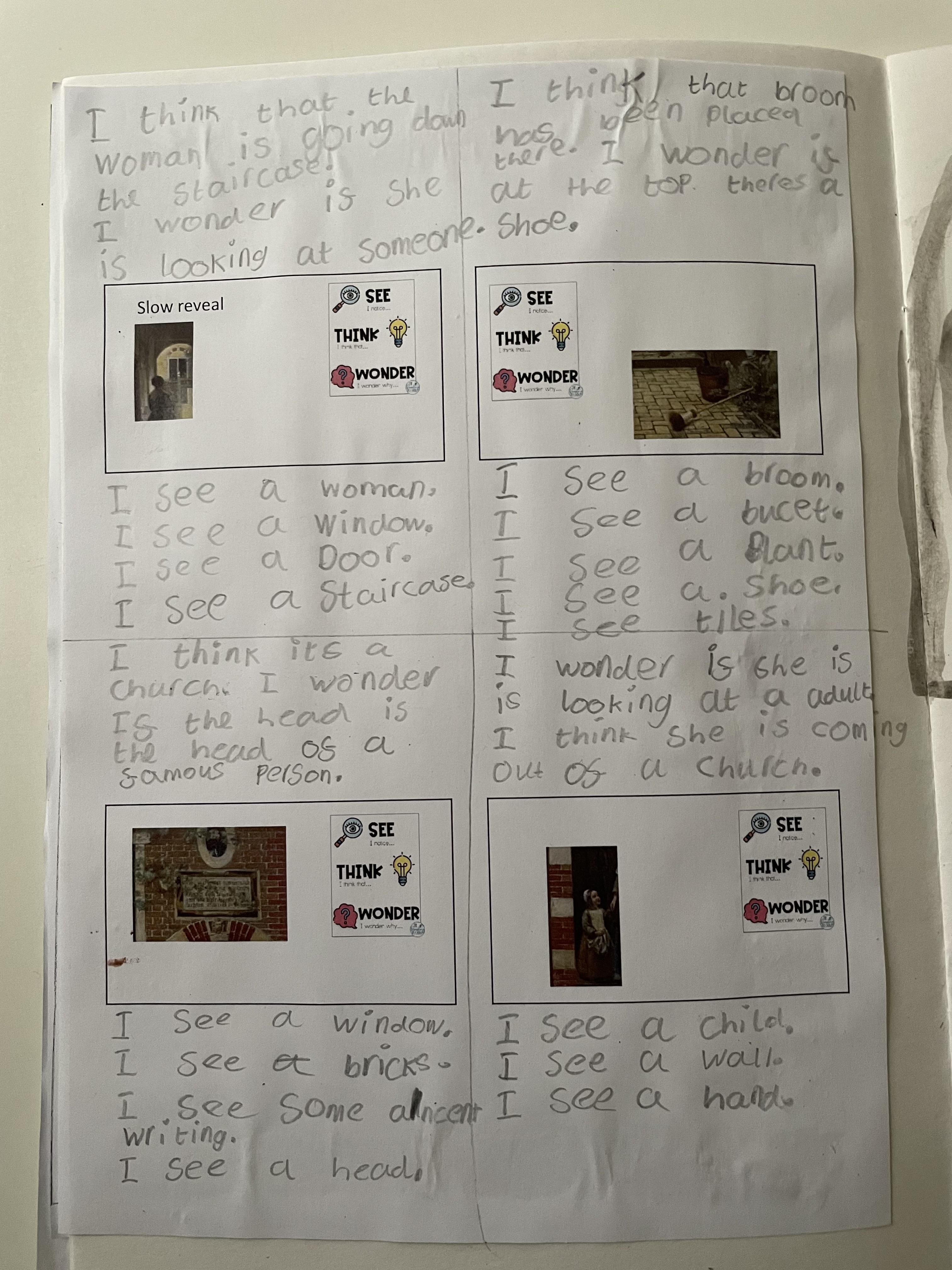 Though looking at different parts of the painting we said what we could see. We then thought about what the images made us think and then we discussed what we wondered.
