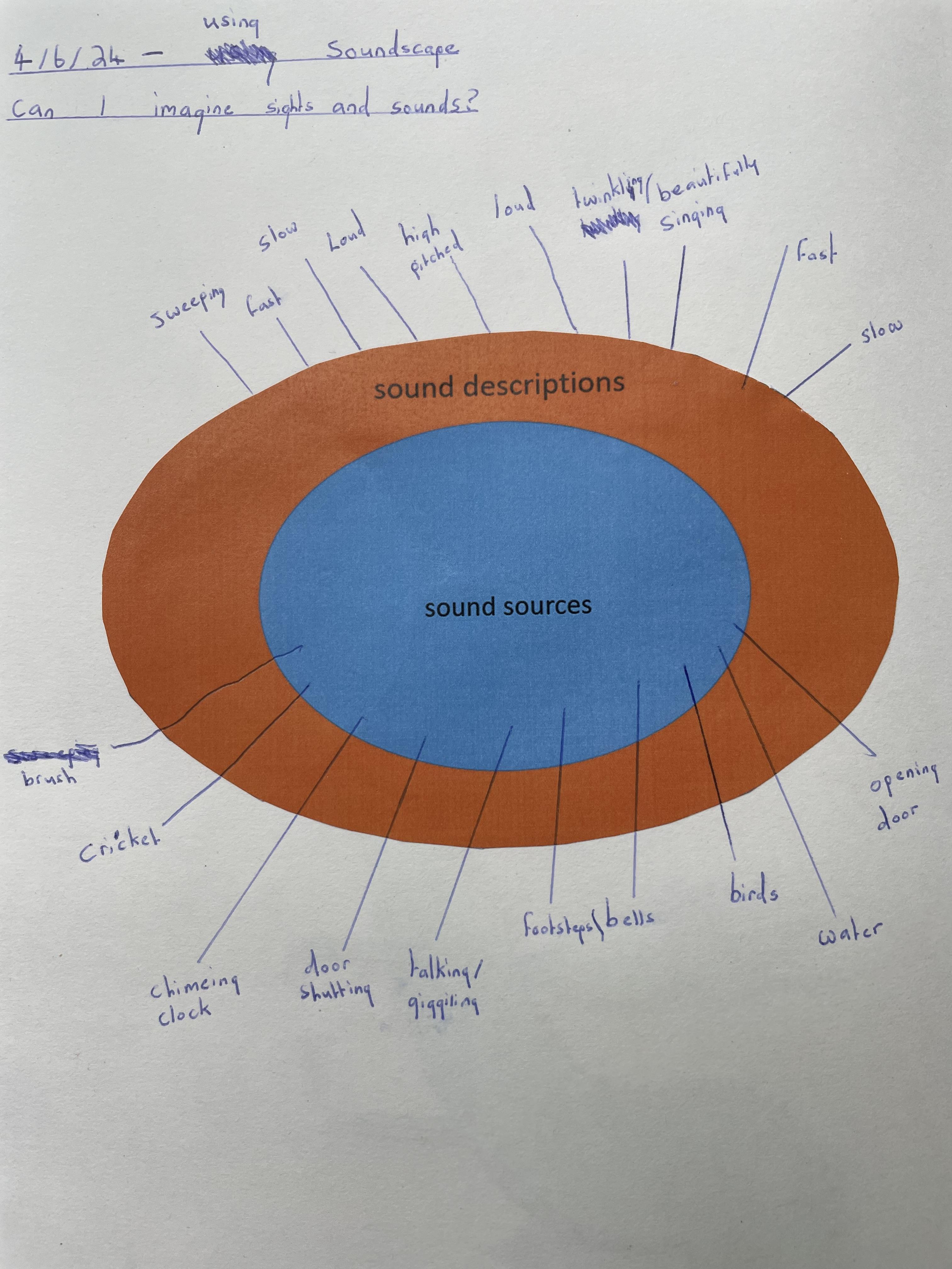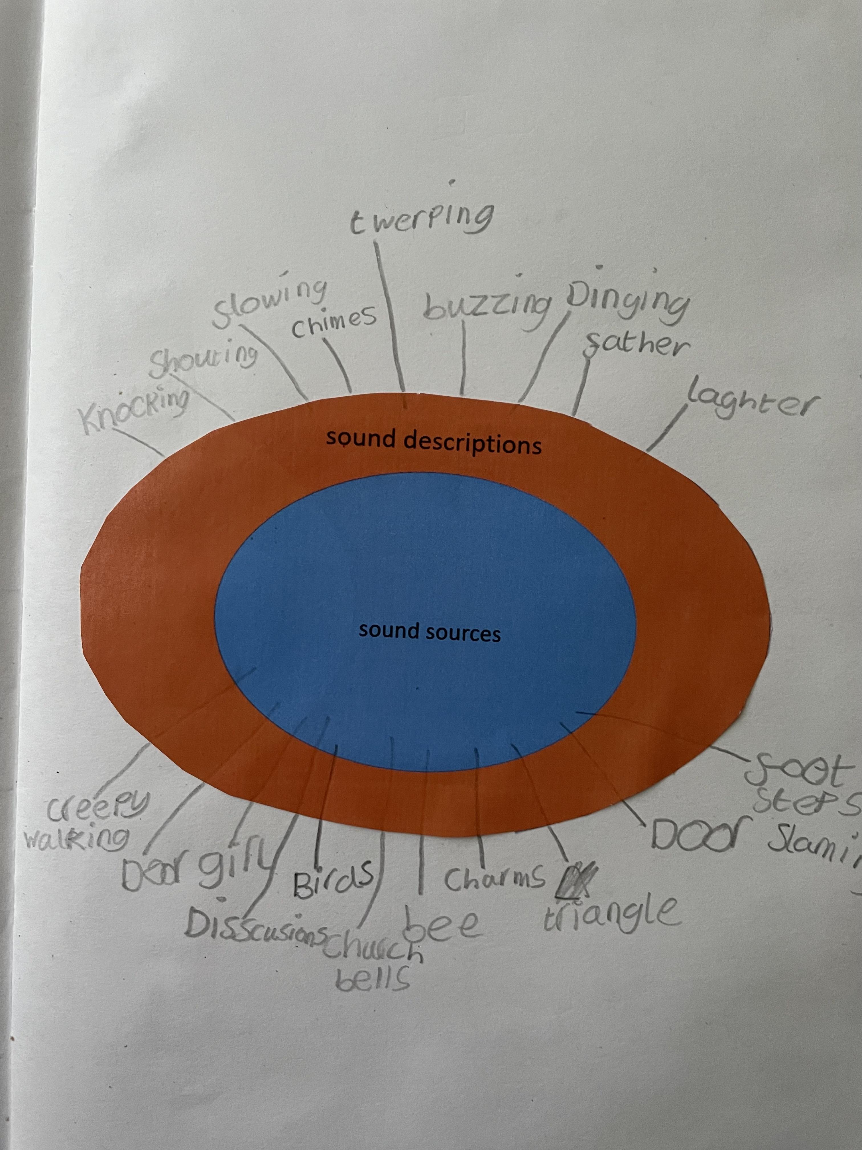 To start our Arts Week we listened to a soundscape. We listened to the sounds and discuss the different sources of the sound and what the sounds made use think. Some great discussions and differences about how the sounds made us feel.