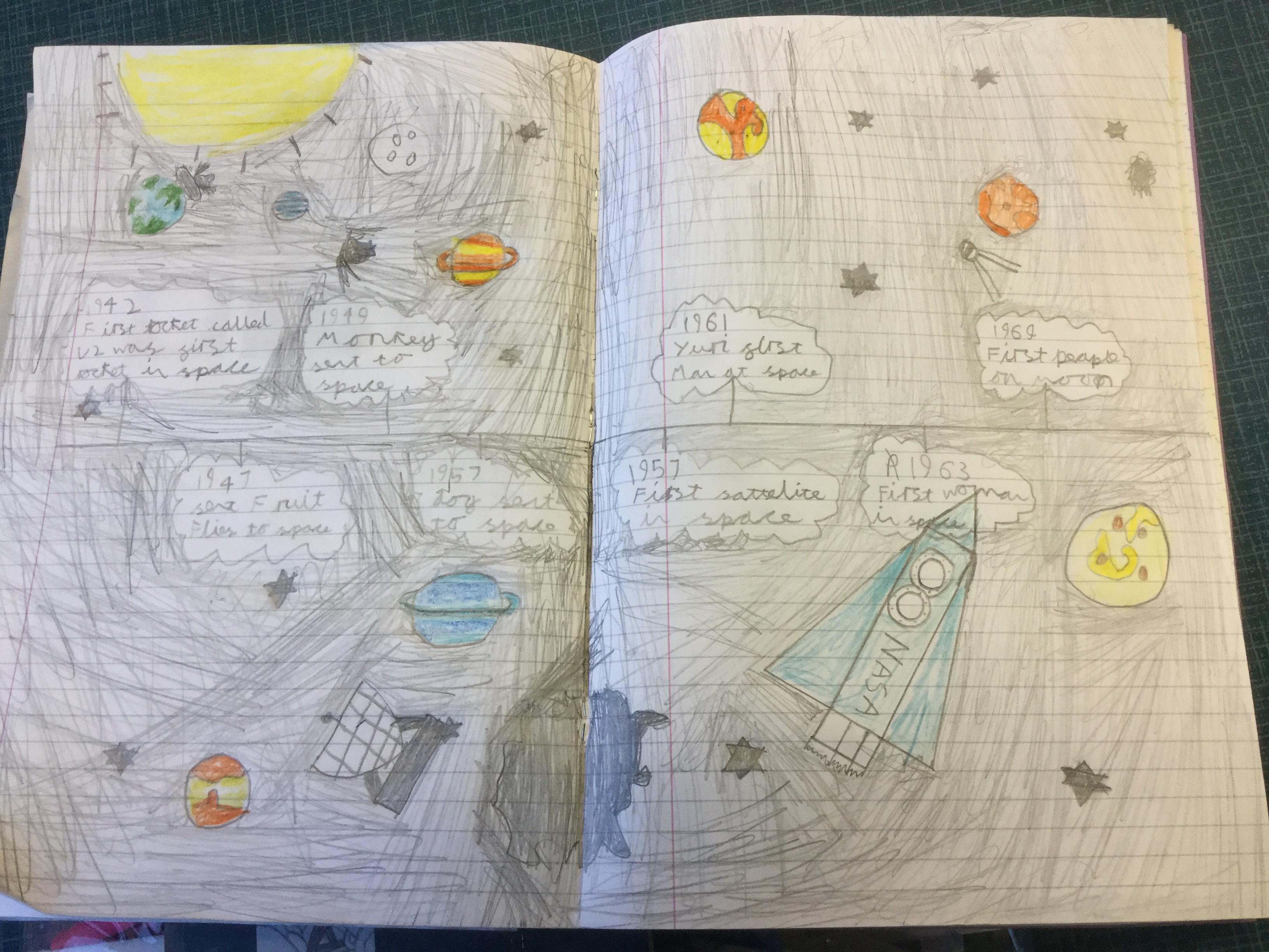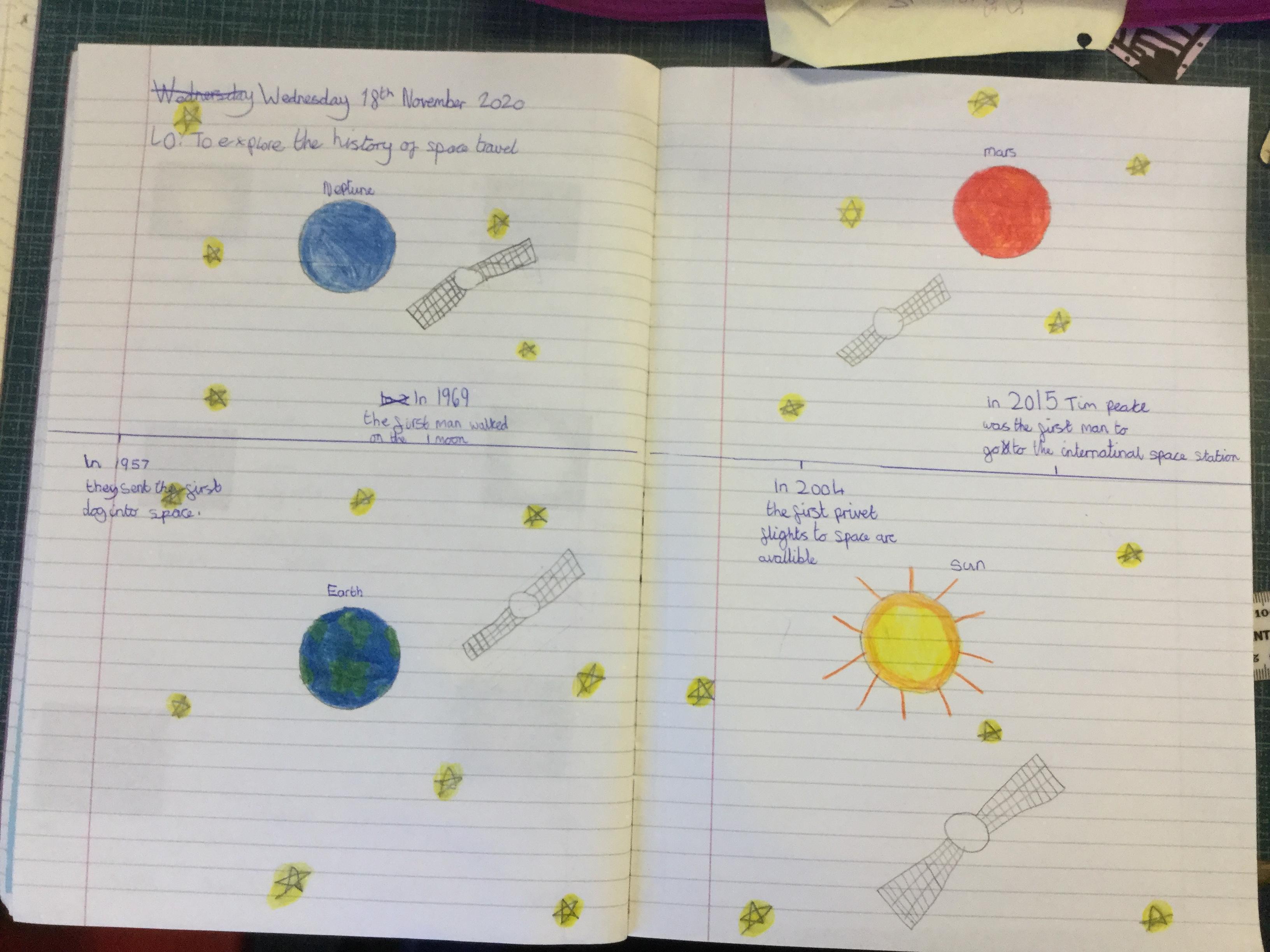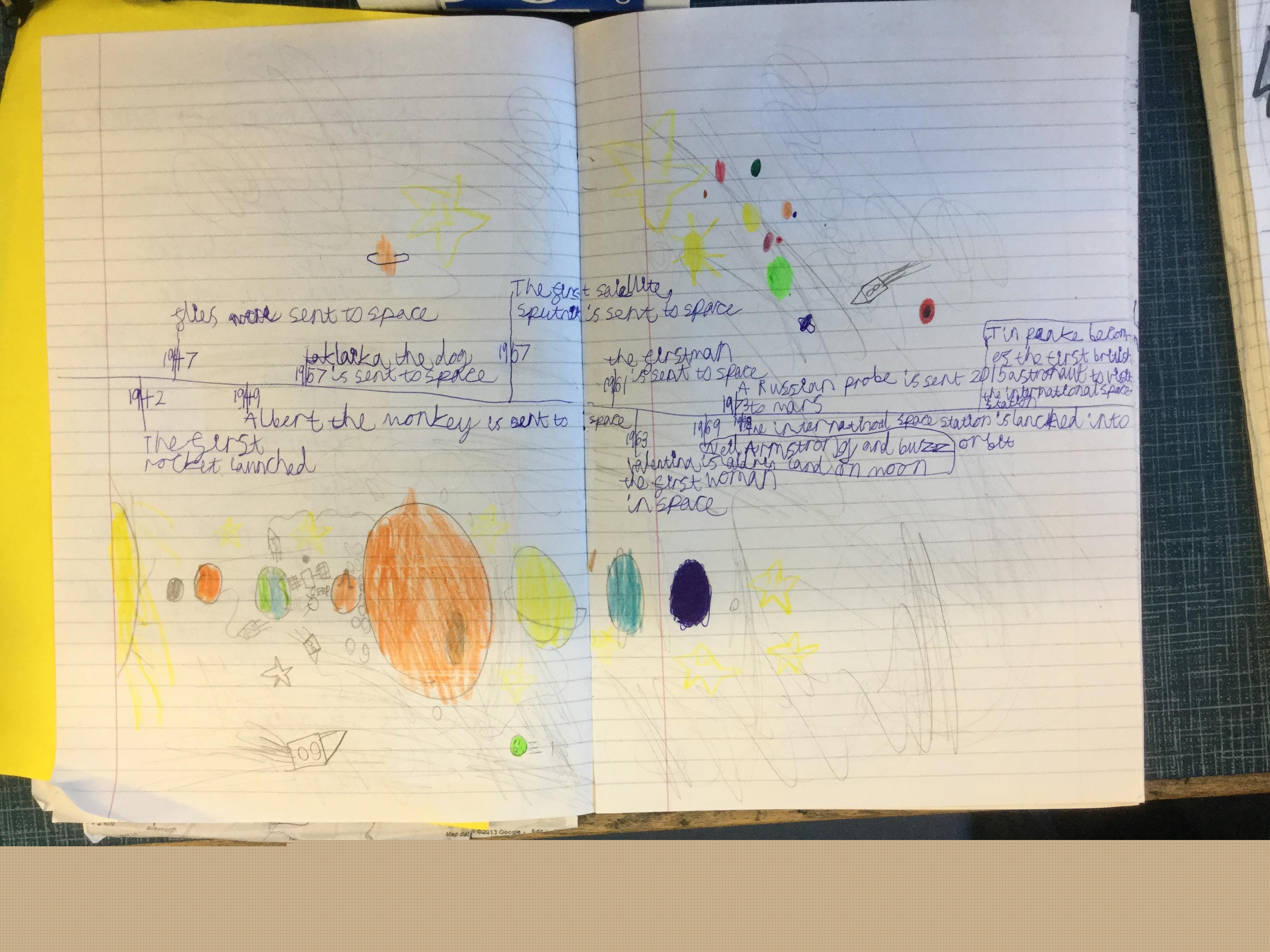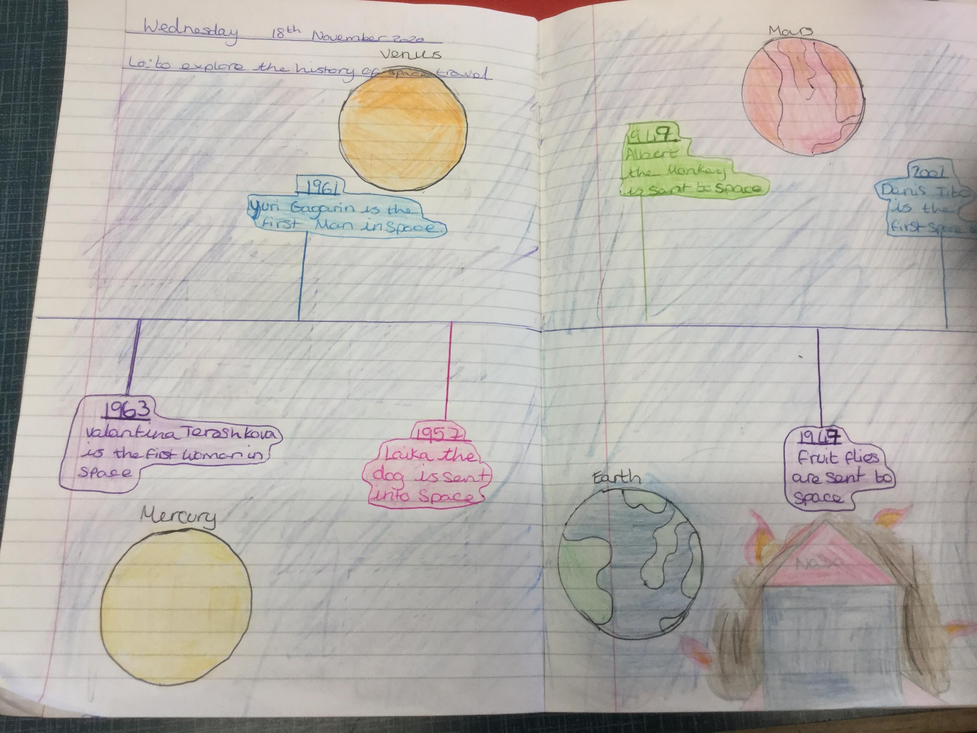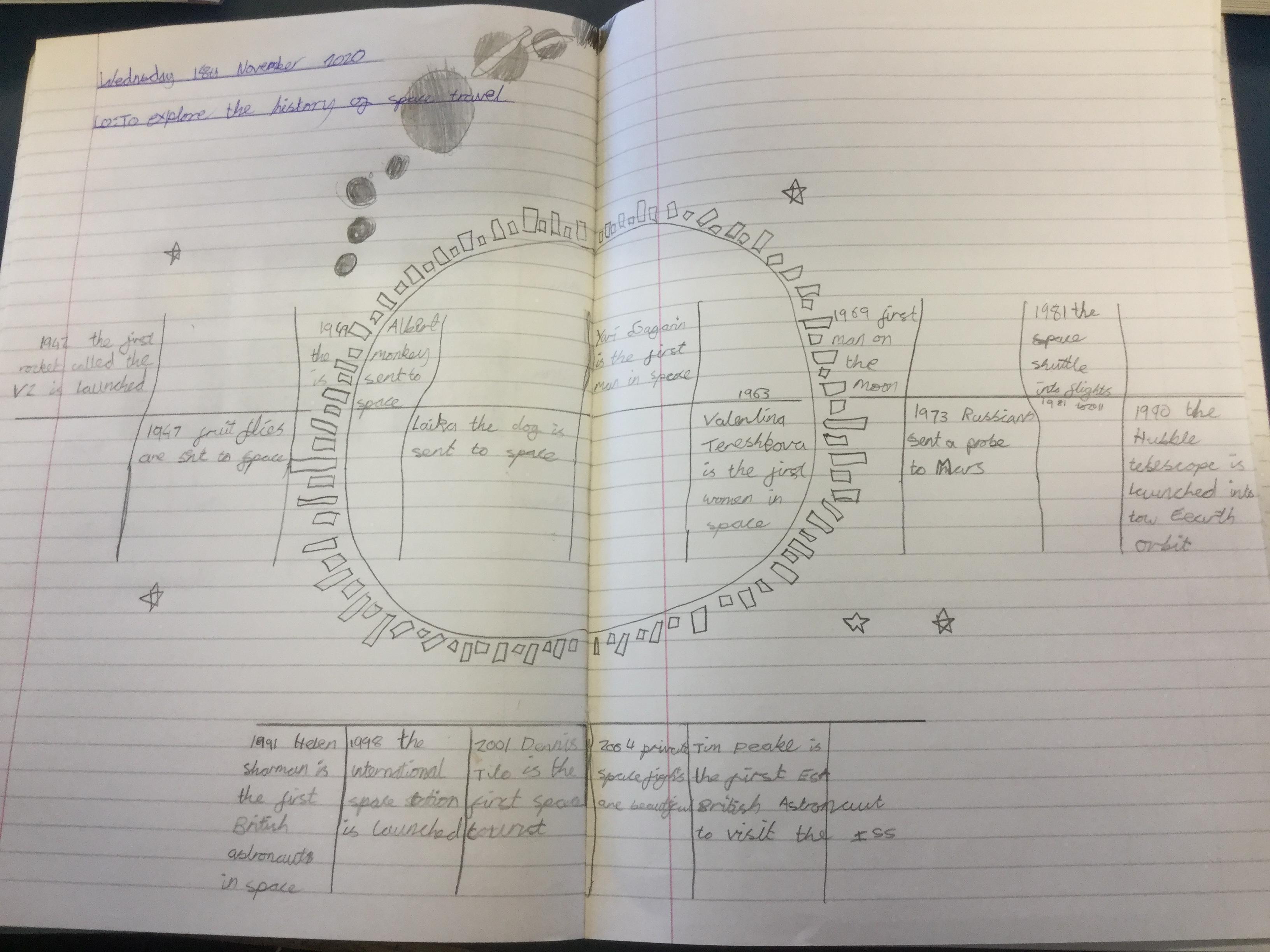 Today the children learnt about the history of space travel, discussing and ordering key events. The children then created their own timelines of events in any way they wished. The year groups efforts were amazing, books looking brilliant! Take a look at all their hard work.