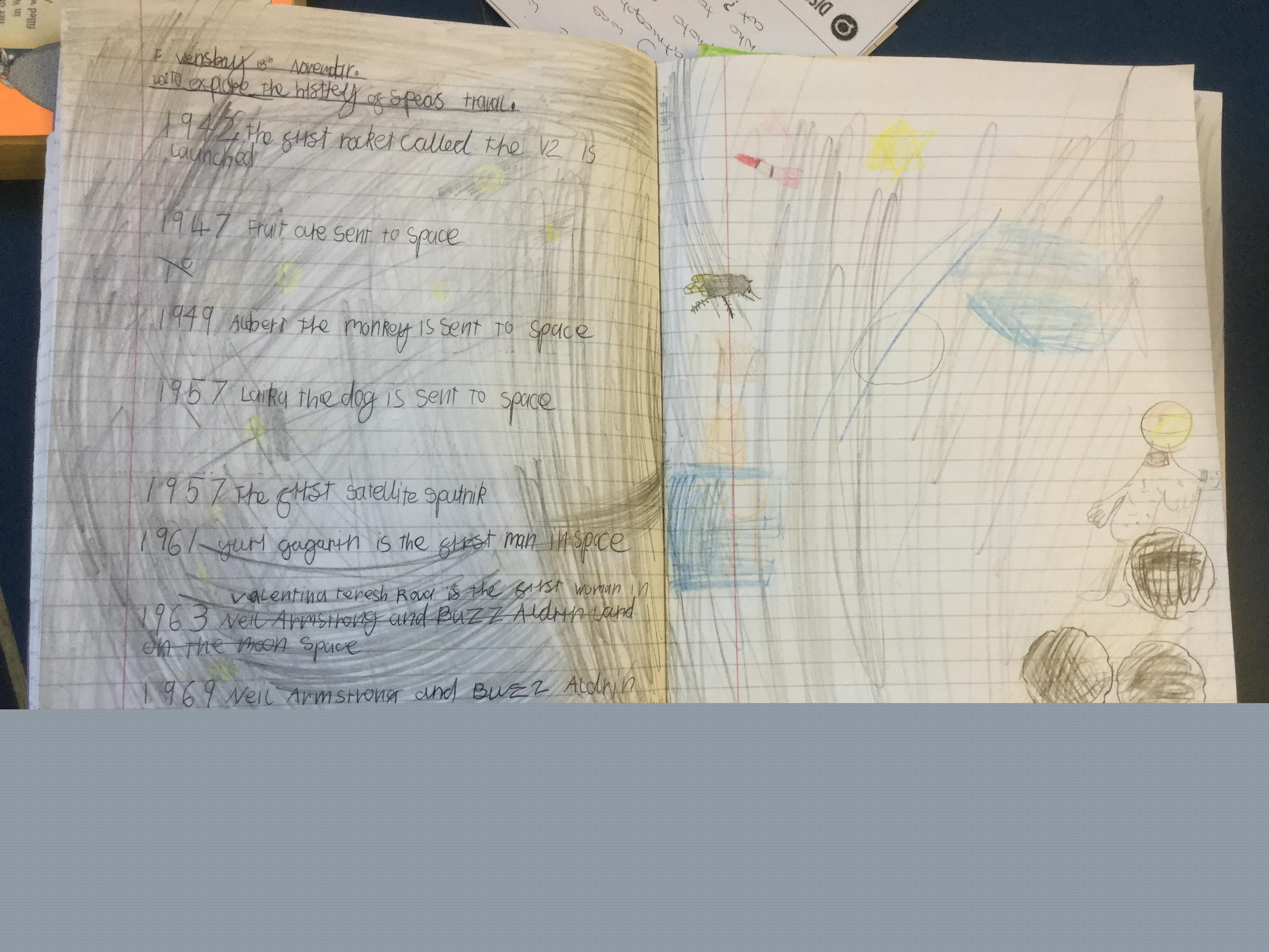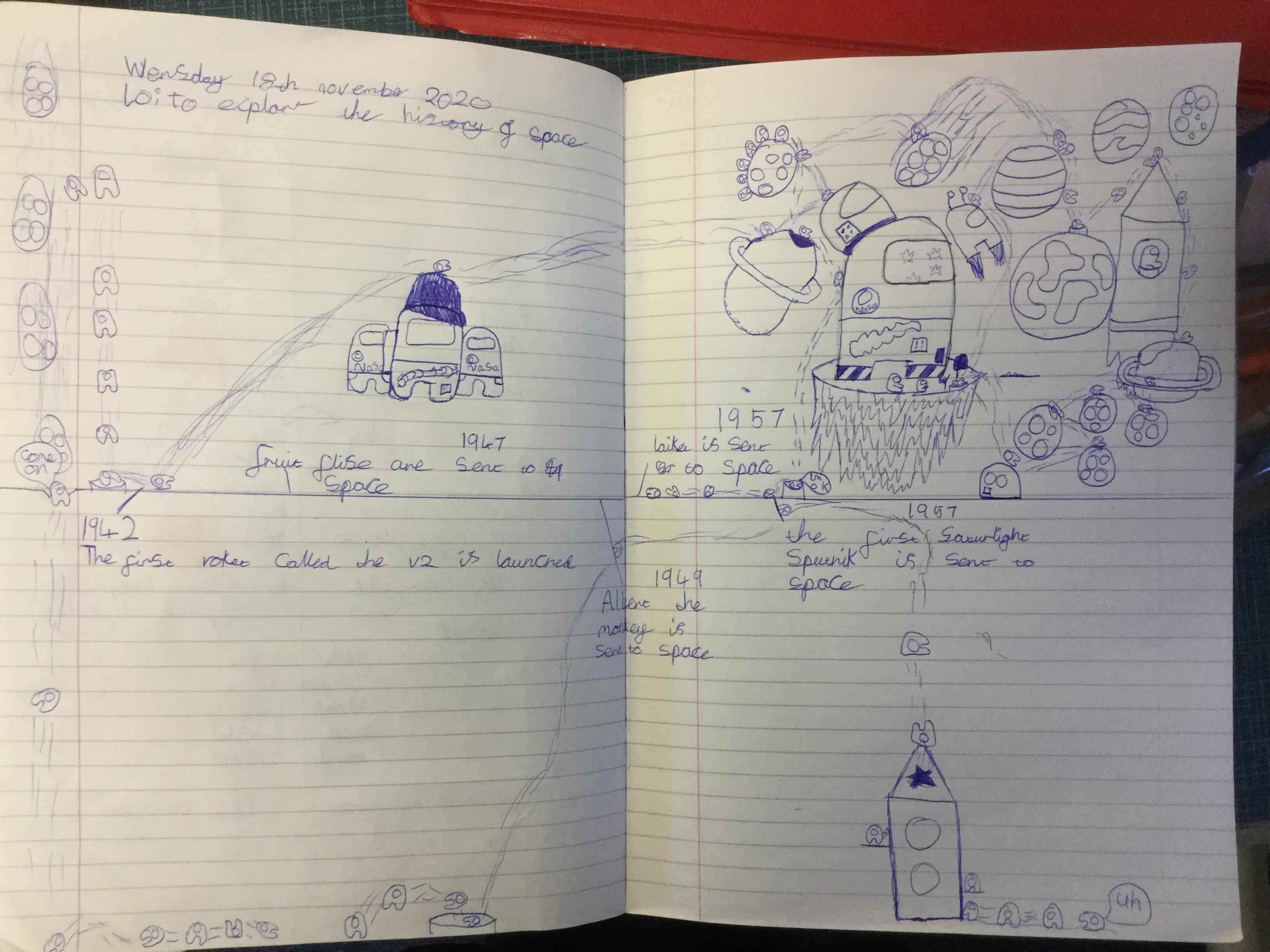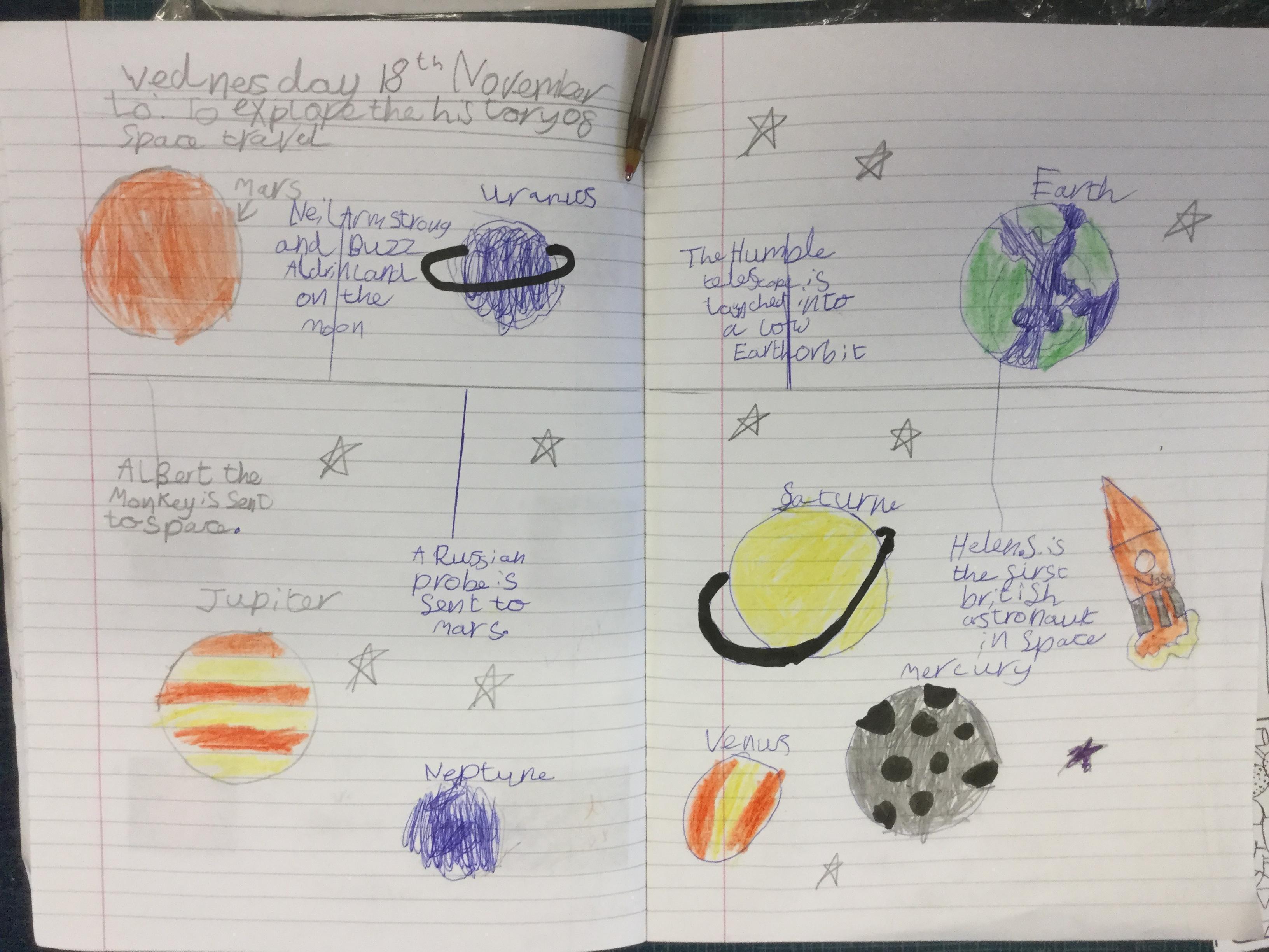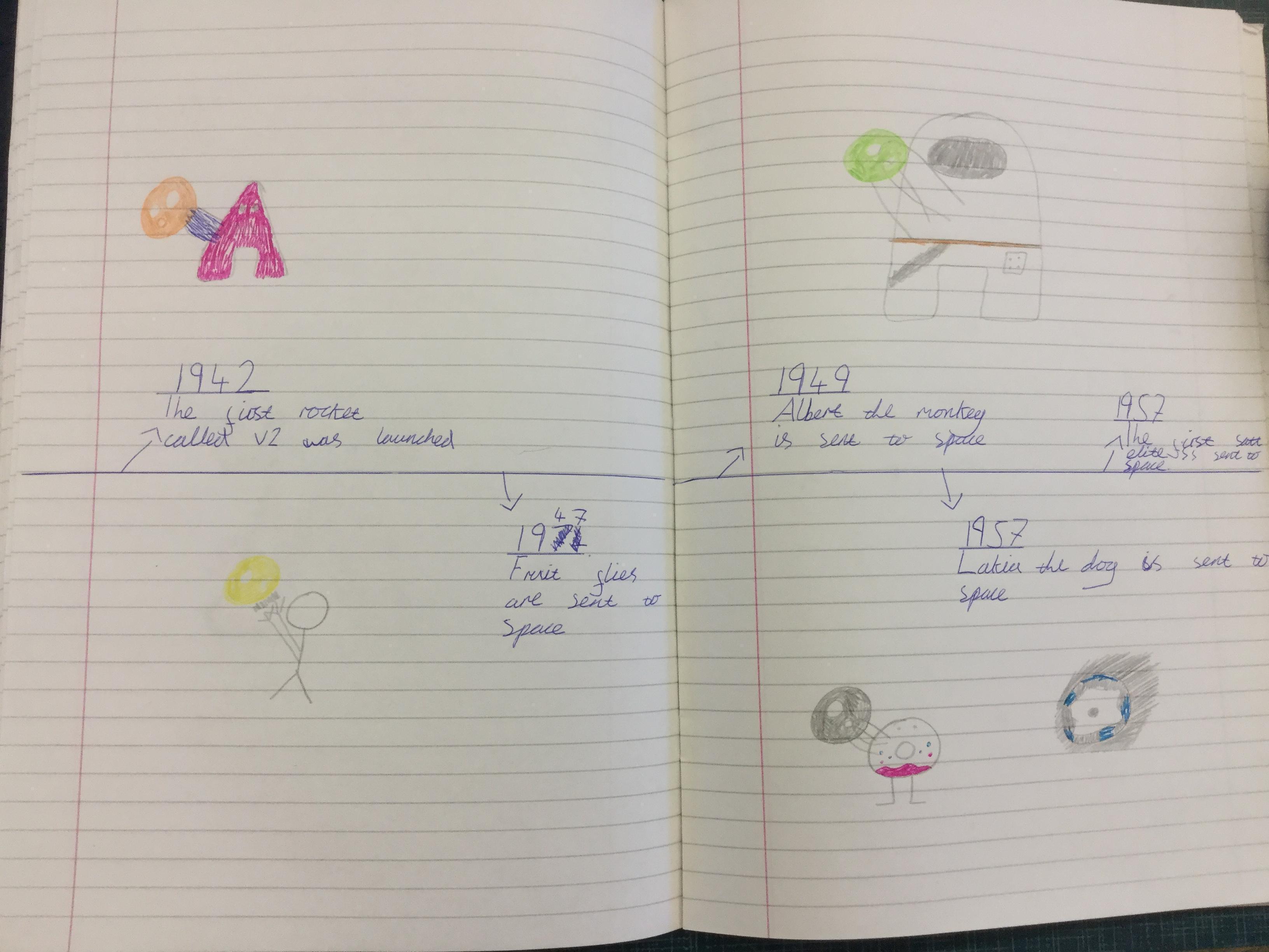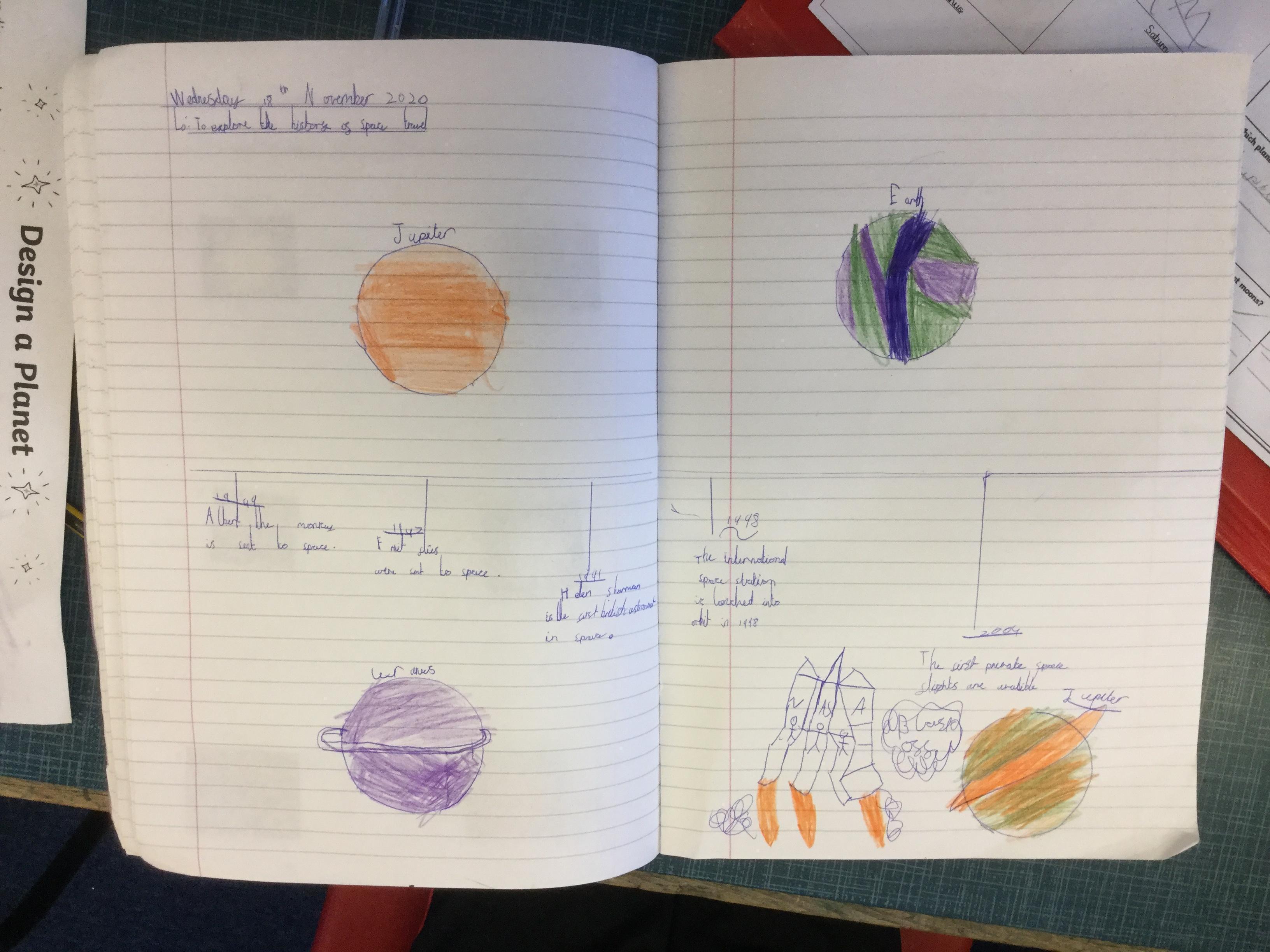 Today the children learnt about the history of space travel, discussing and ordering key events. The children then created their own timelines of events in any way they wished. The year groups efforts were amazing, books looking brilliant! Take a look at all their hard work.