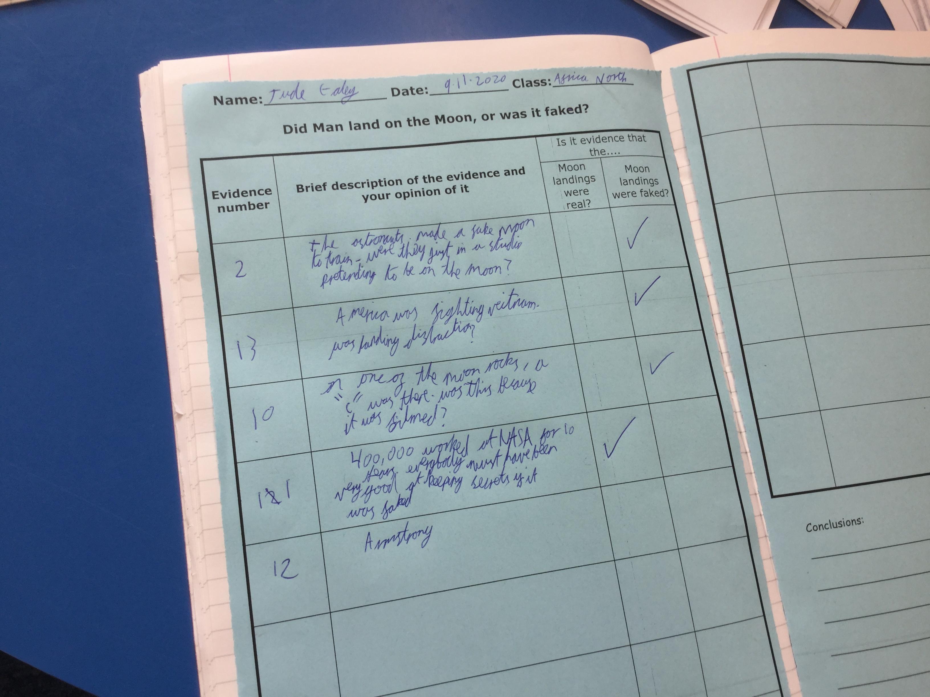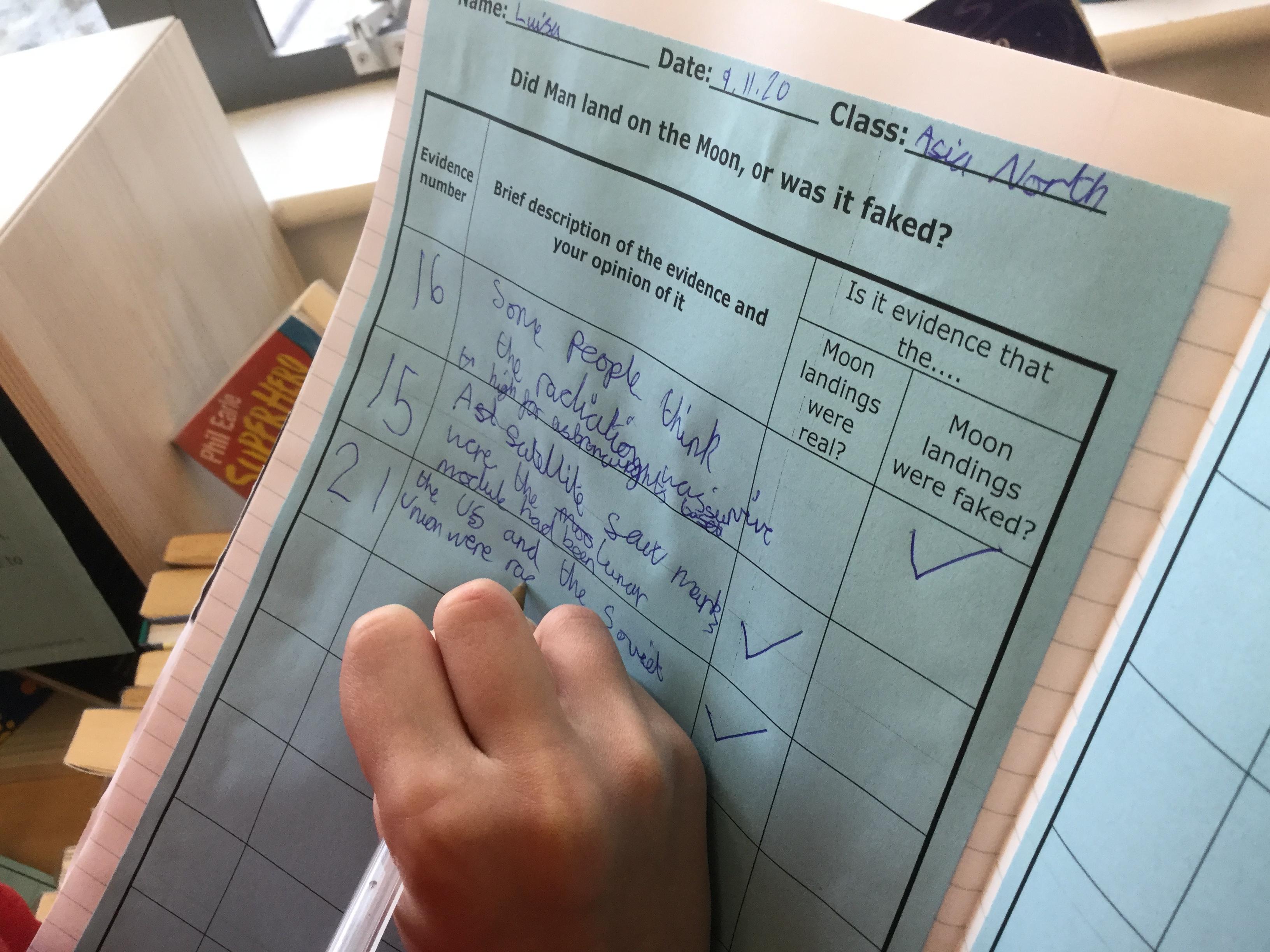 The children’s task was to collect the evidence and then use it to draw conclusions about whether they felt the landing was real or not!