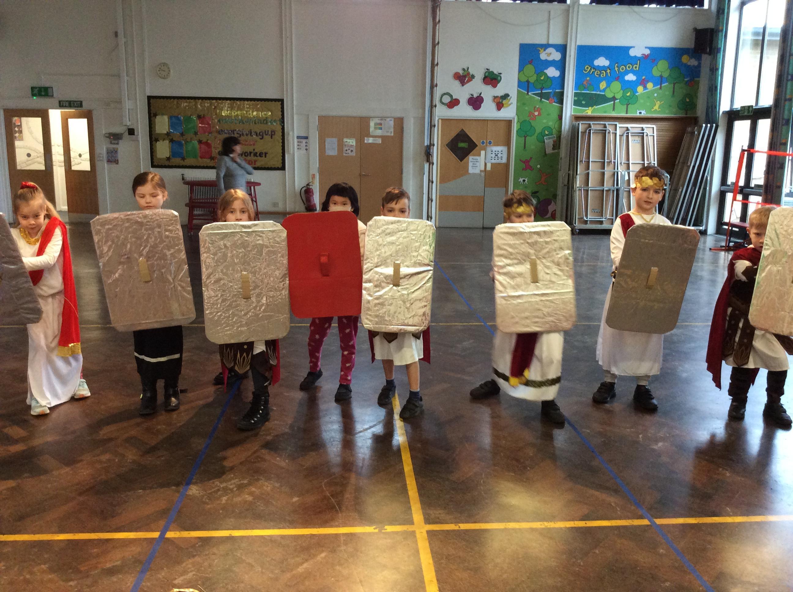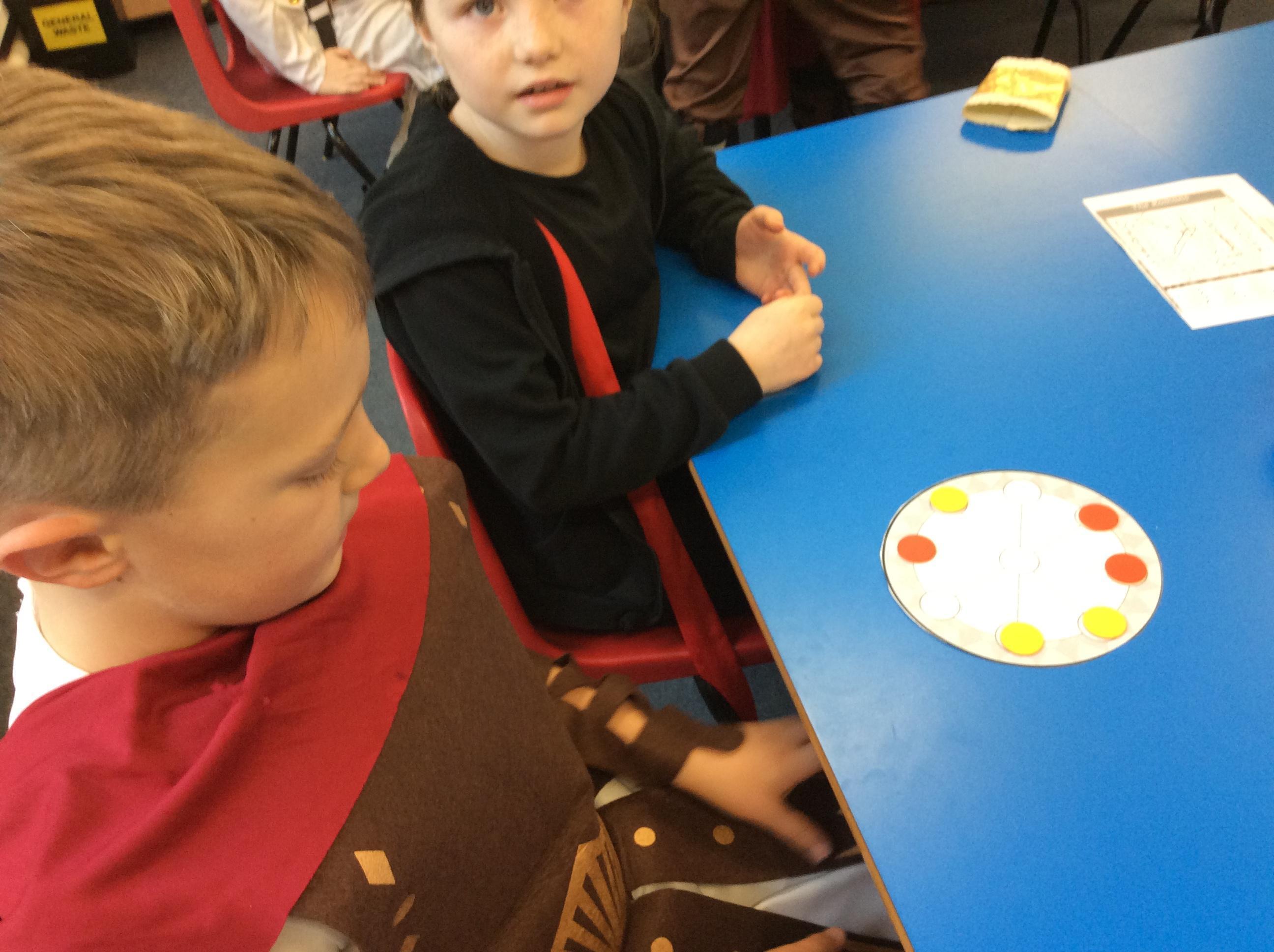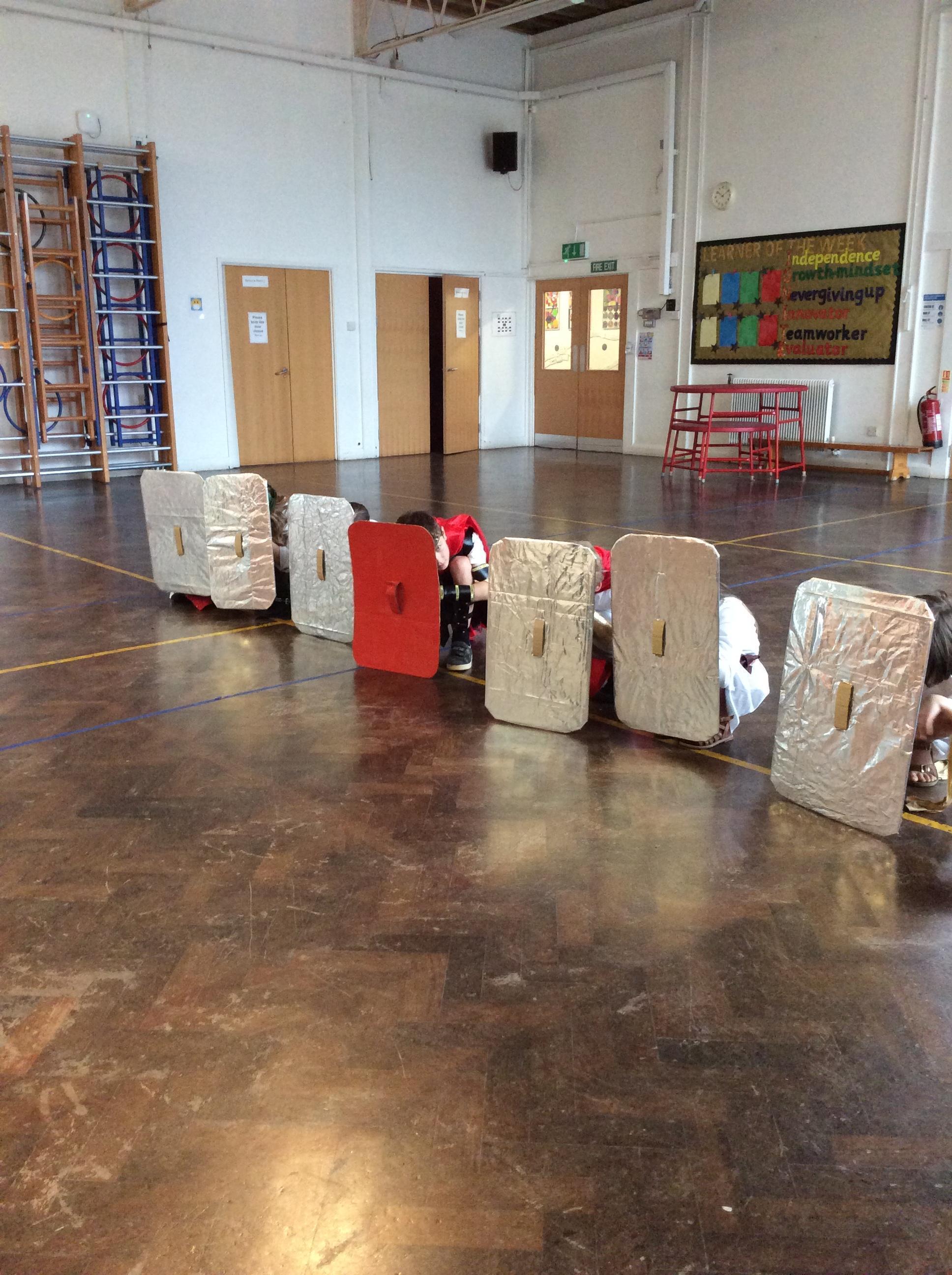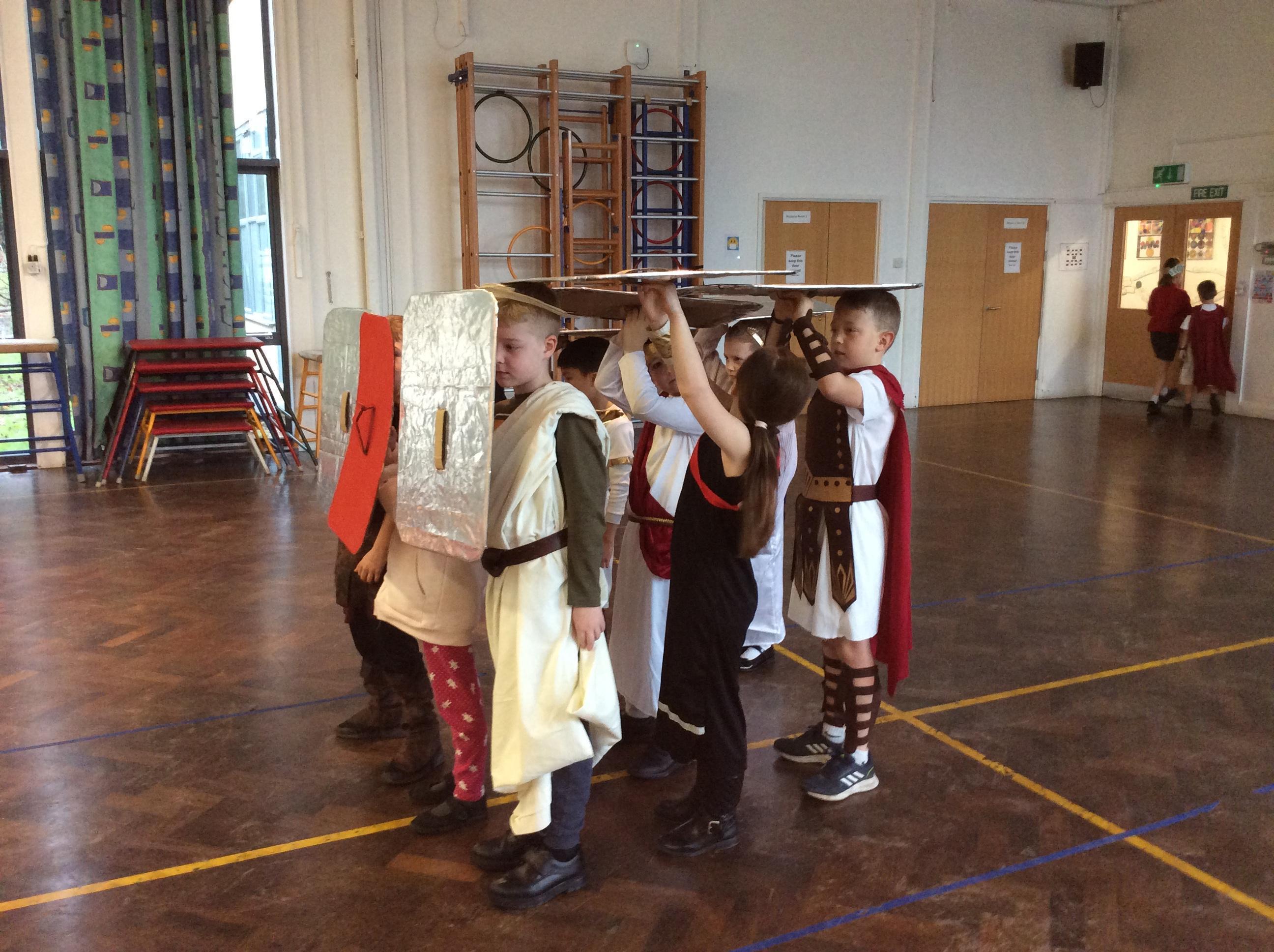 We learned how to play the Roman game “rota”, practised our Testudo (tortoiseshell formation) with Roman shields, made colourful mosaics, learned Roman numerals and created shield designs... phew! Take a look to see how we got on: