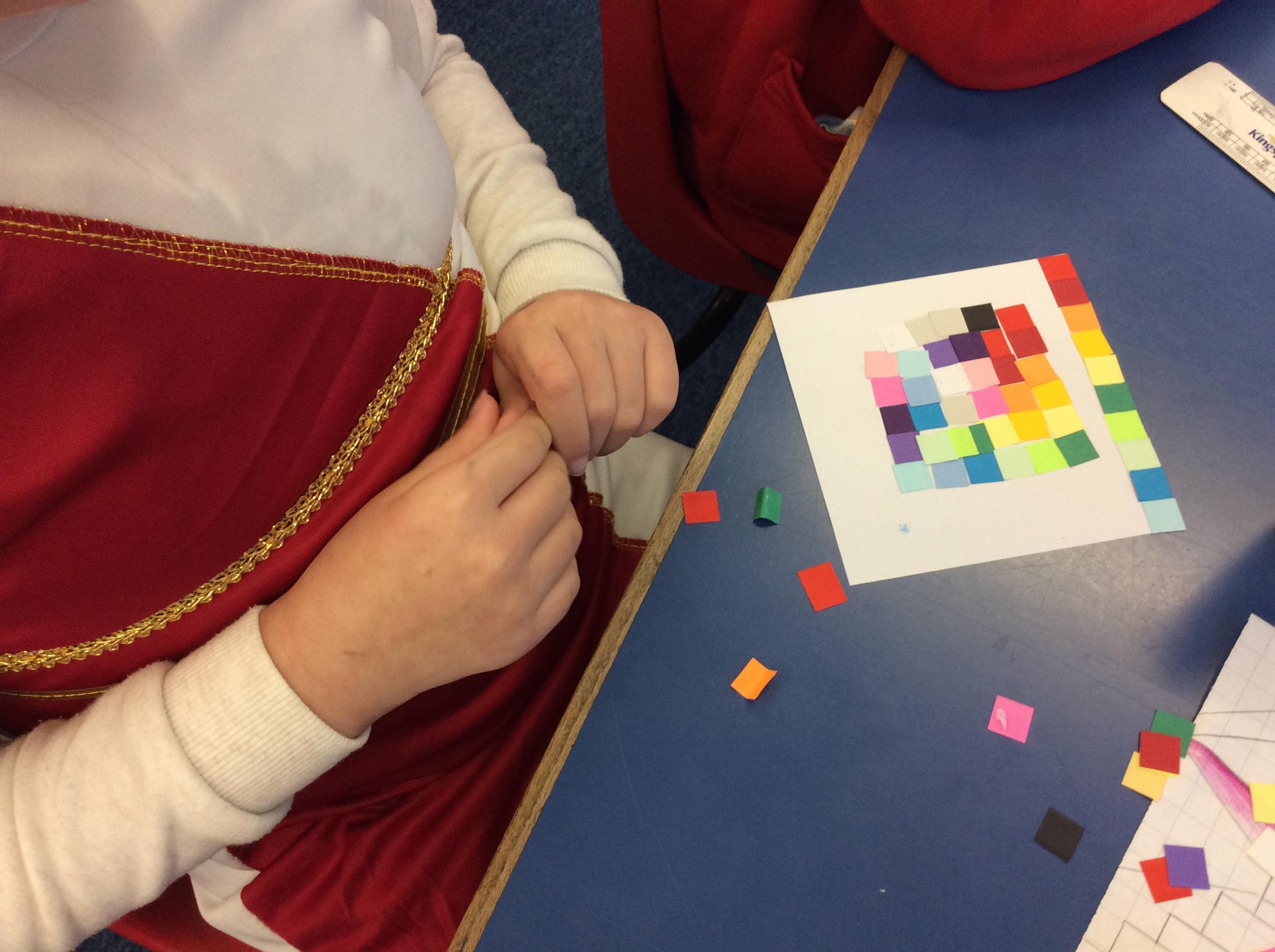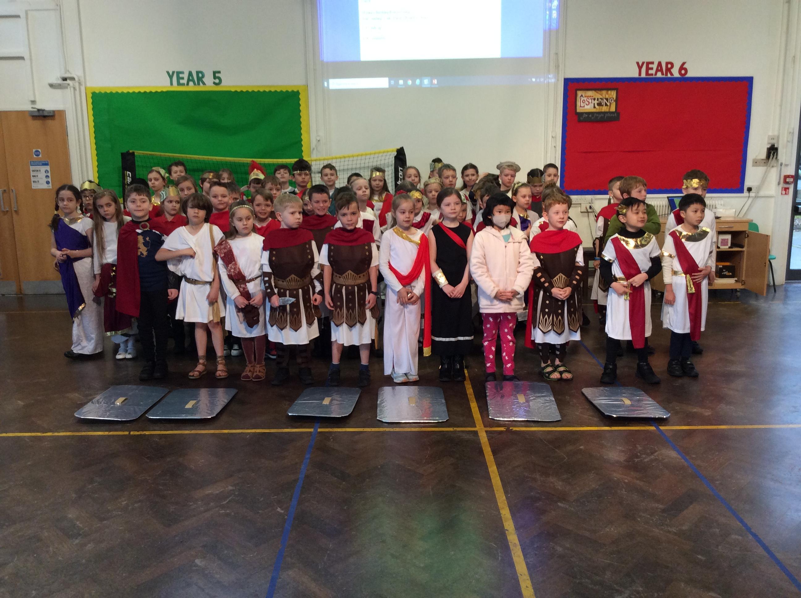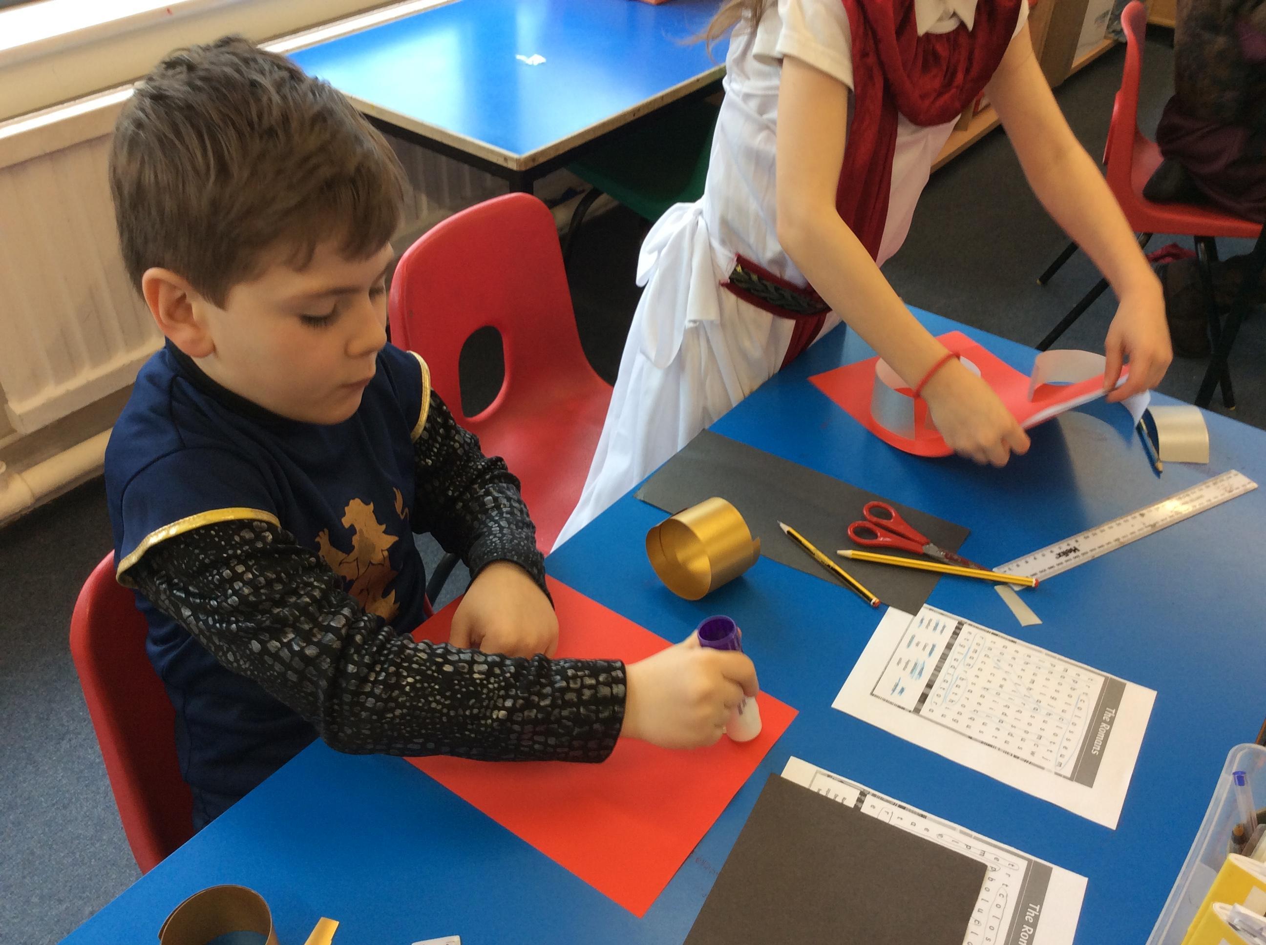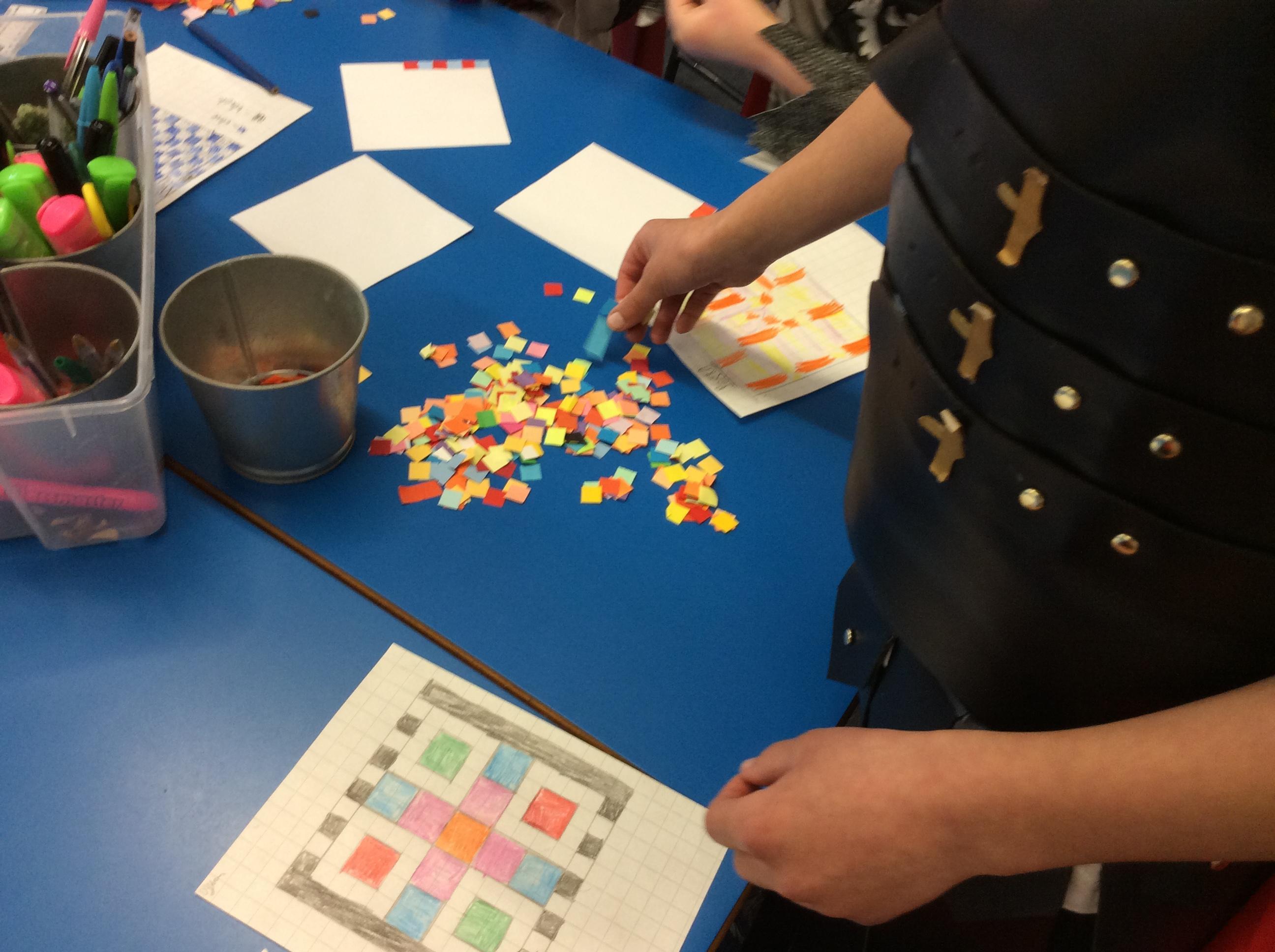 We learned how to play the Roman game “rota”, practised our Testudo (tortoiseshell formation) with Roman shields, made colourful mosaics, learned Roman numerals and created shield designs... phew! Take a look to see how we got on: