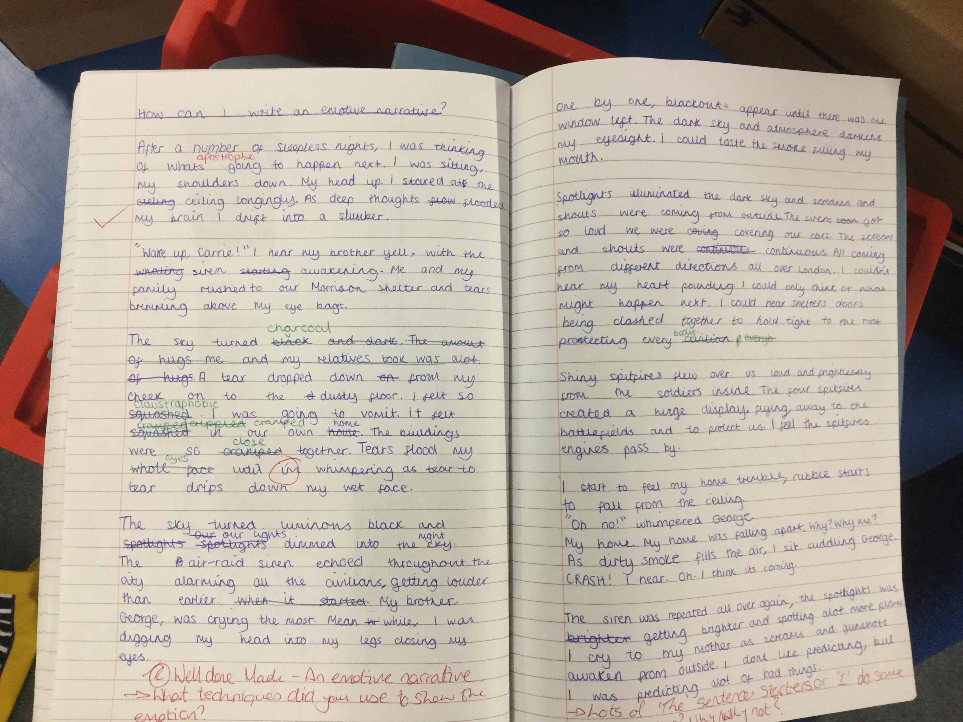 We have planned and written emotive narratives based on a short film about a night during the Blitz.
