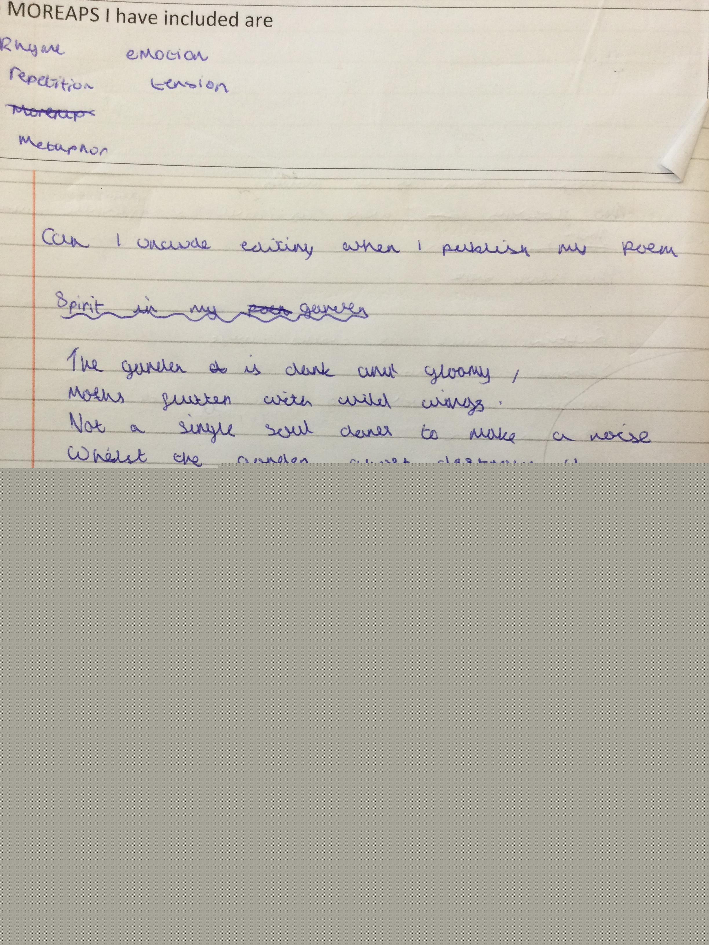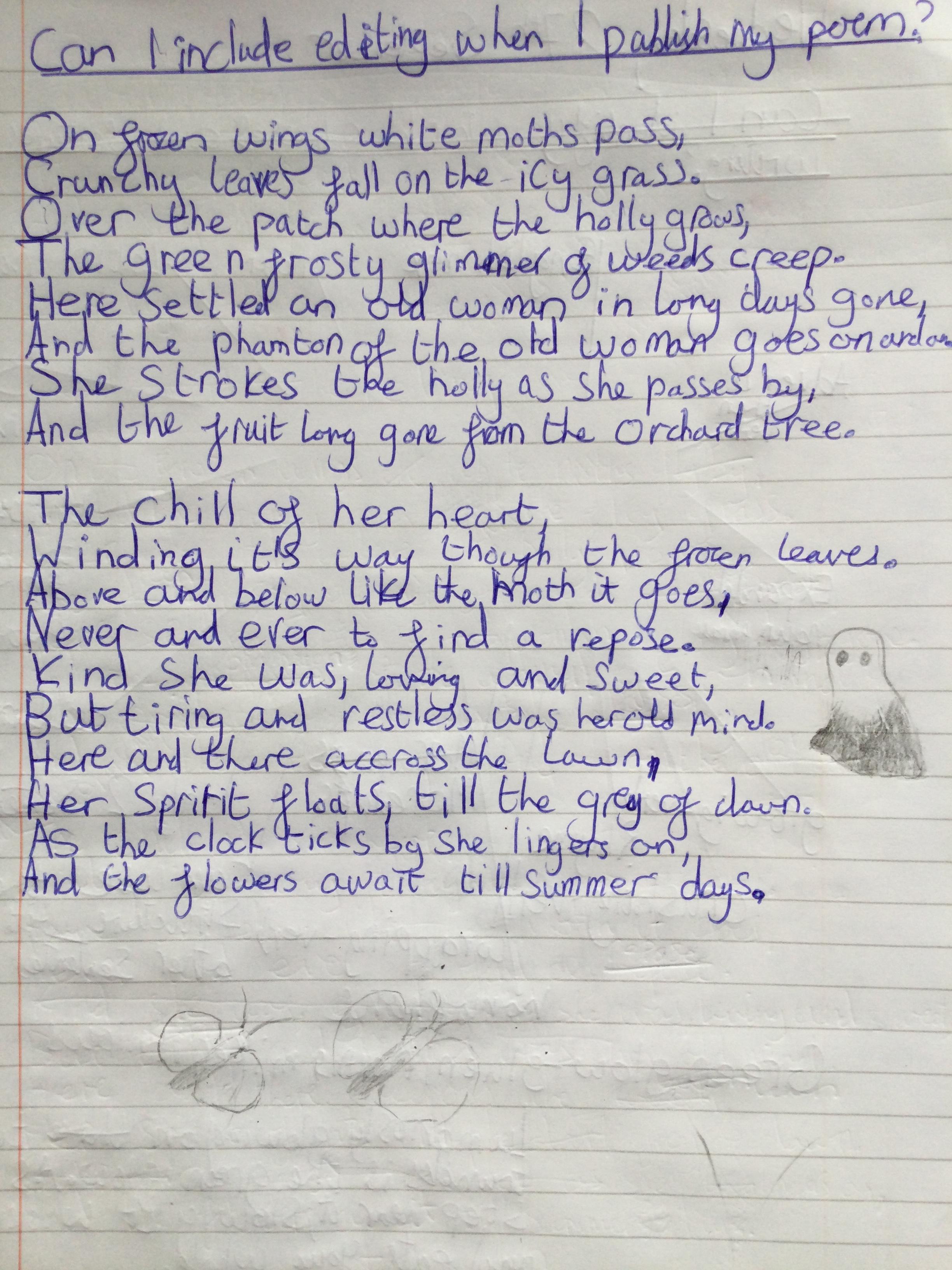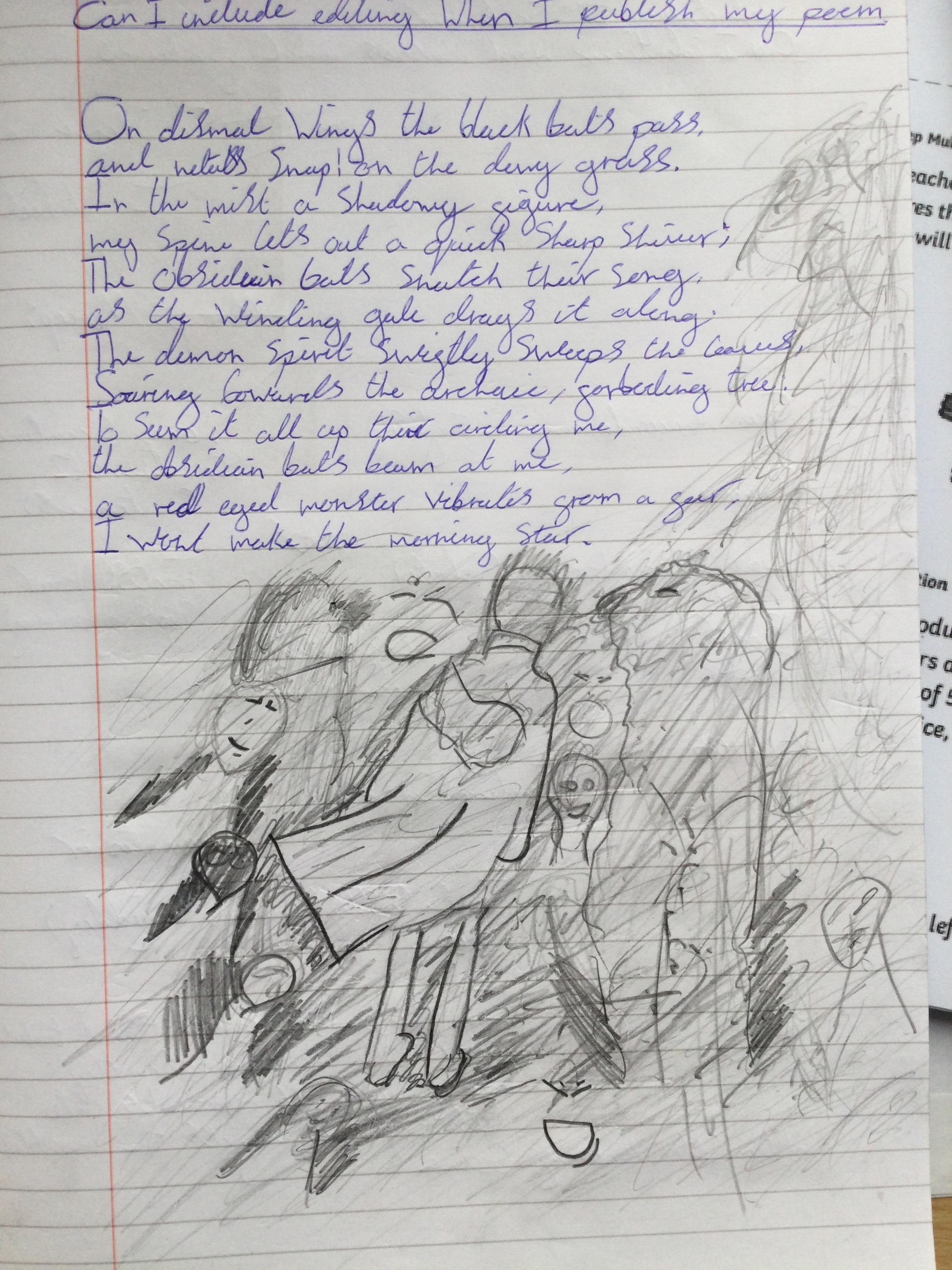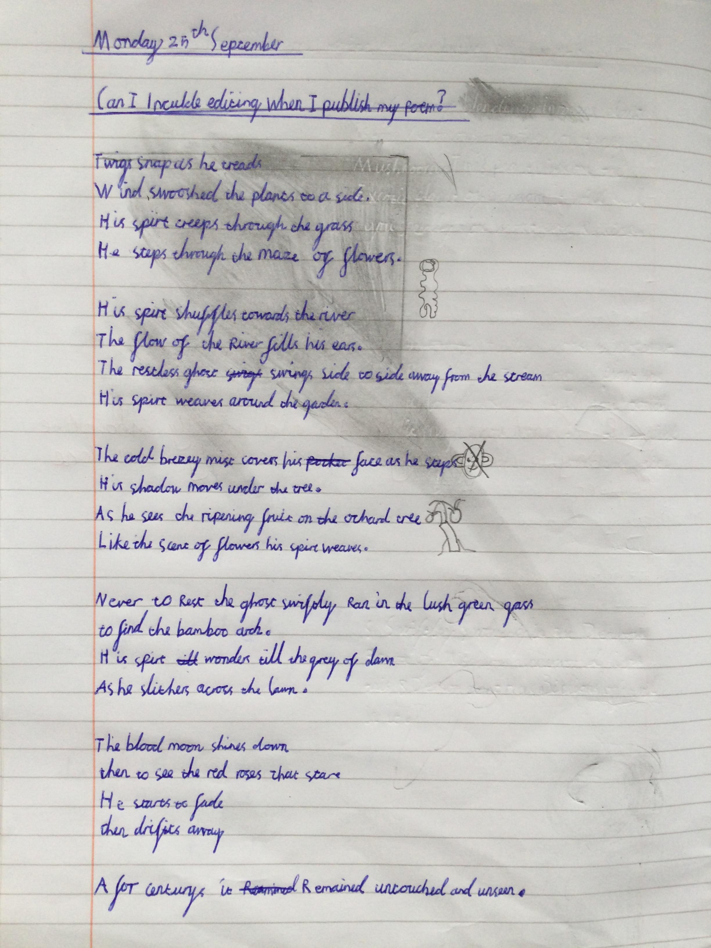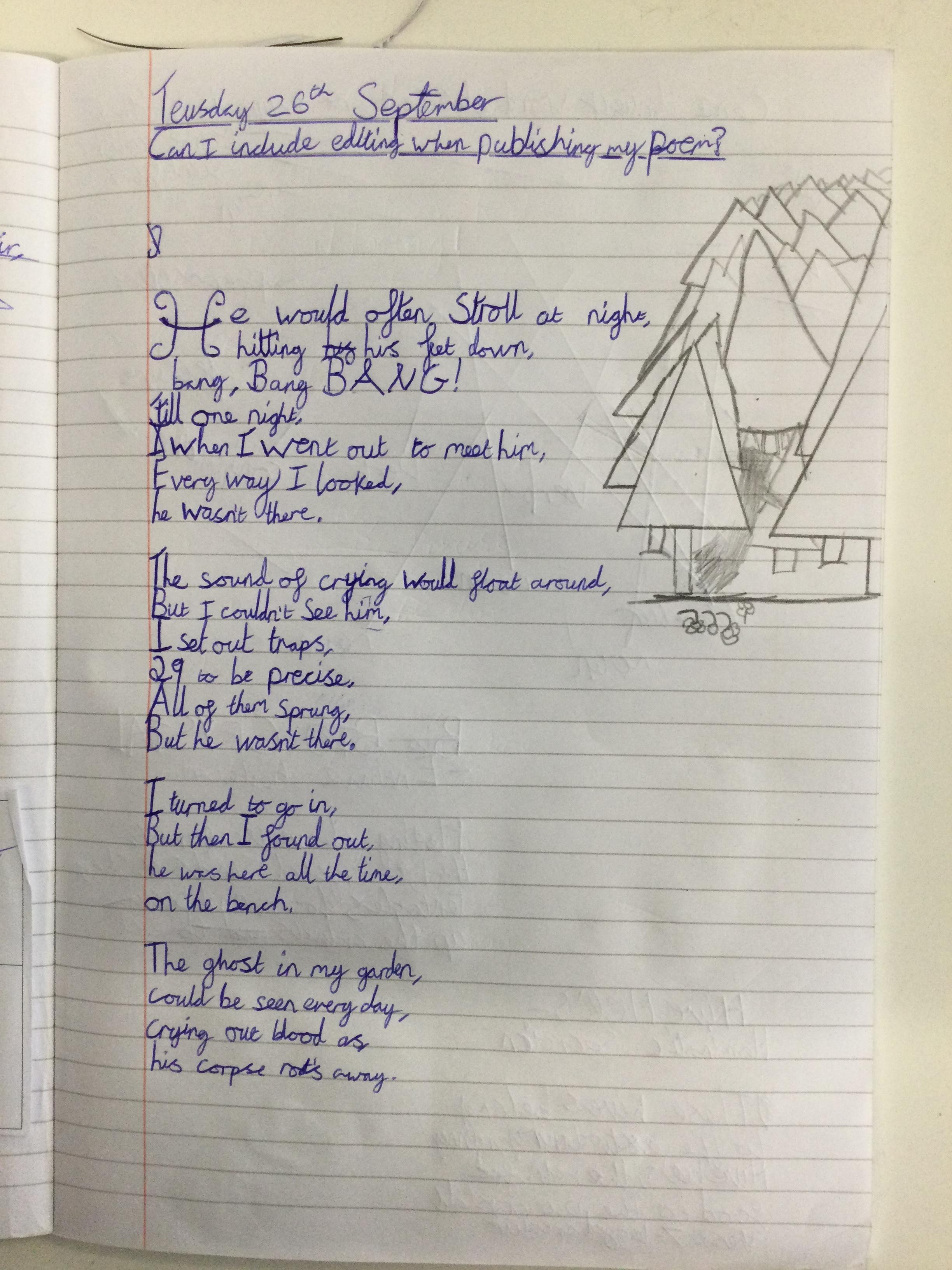 We analysed and unpicked two poems: A Ghost in the Garden and A Garden at Night before going onto innovating and imitating them to create our own. After editing, we published and illustrated our poems in the style of Chris Riddell’s ‘Poems to live your life by’